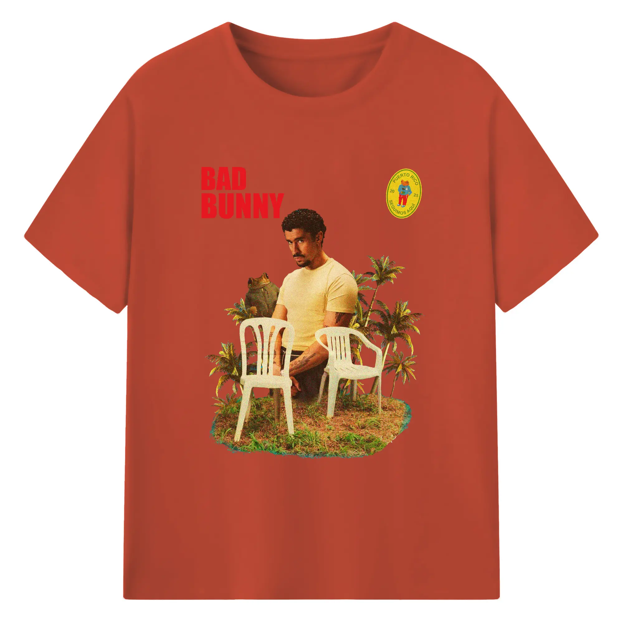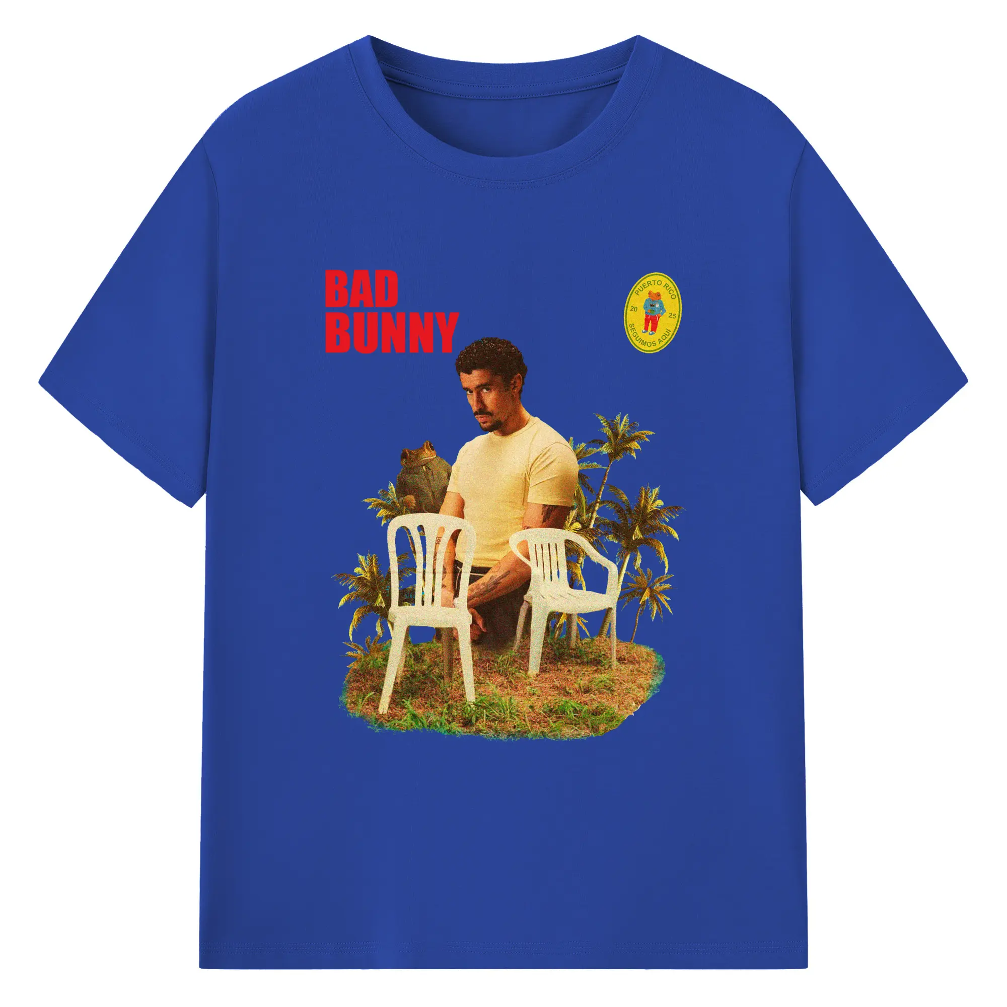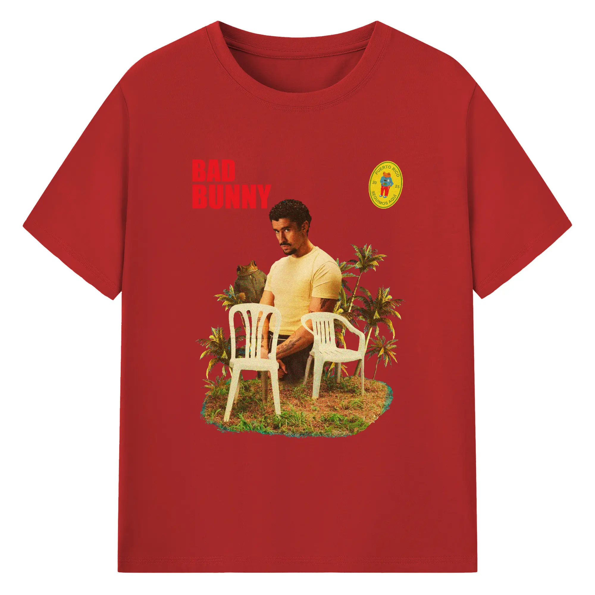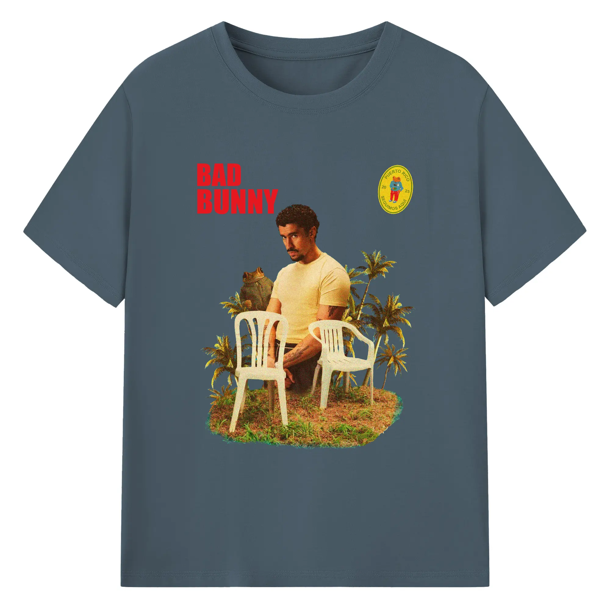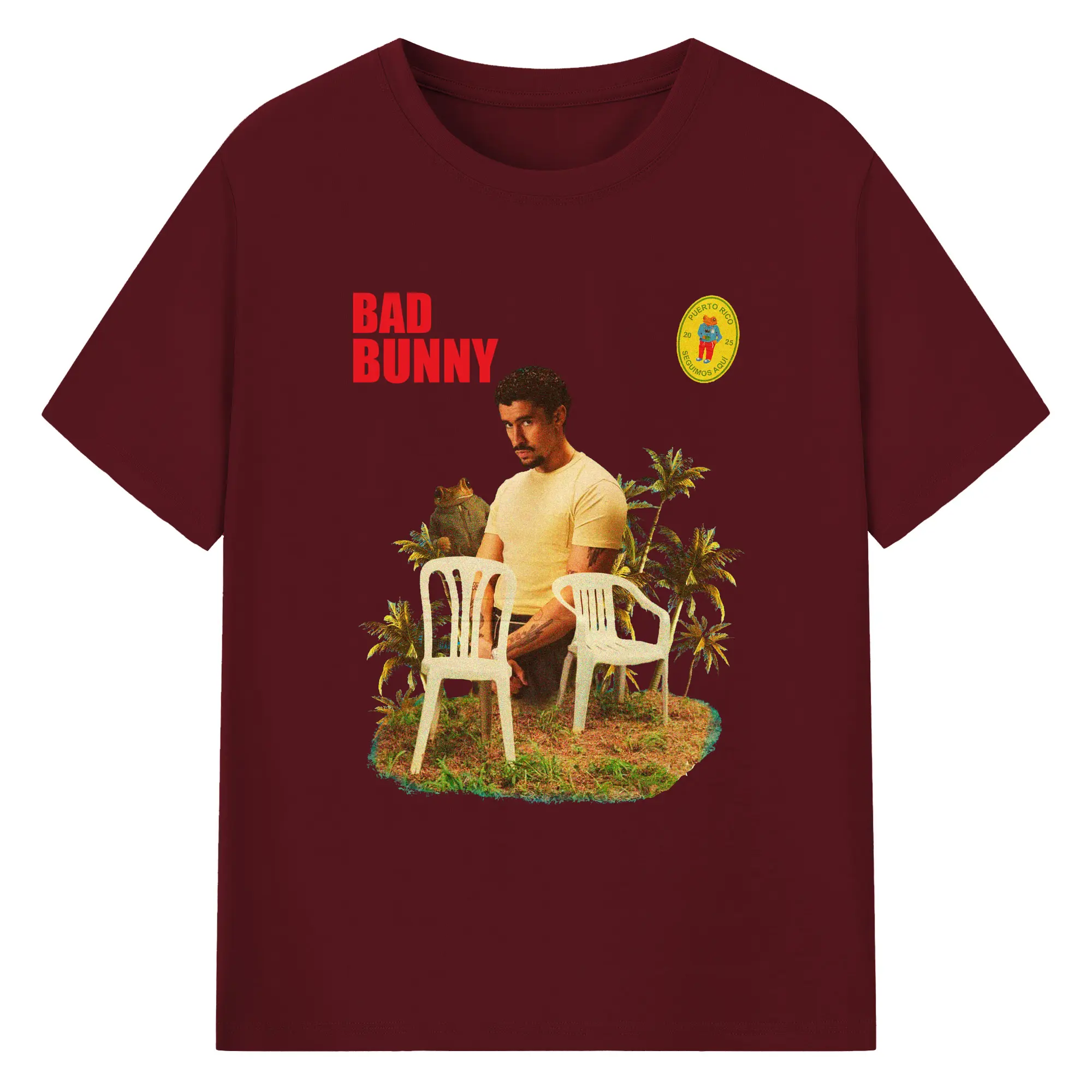 Bad Bunny Puerto Rico Retro Collage DIY - 180g Cotton T-Shirt With Front Heat Transfer Print – Soft, Lightweight, Fitted Design – Comfortable Casual Wear For Sports & Everyday Use