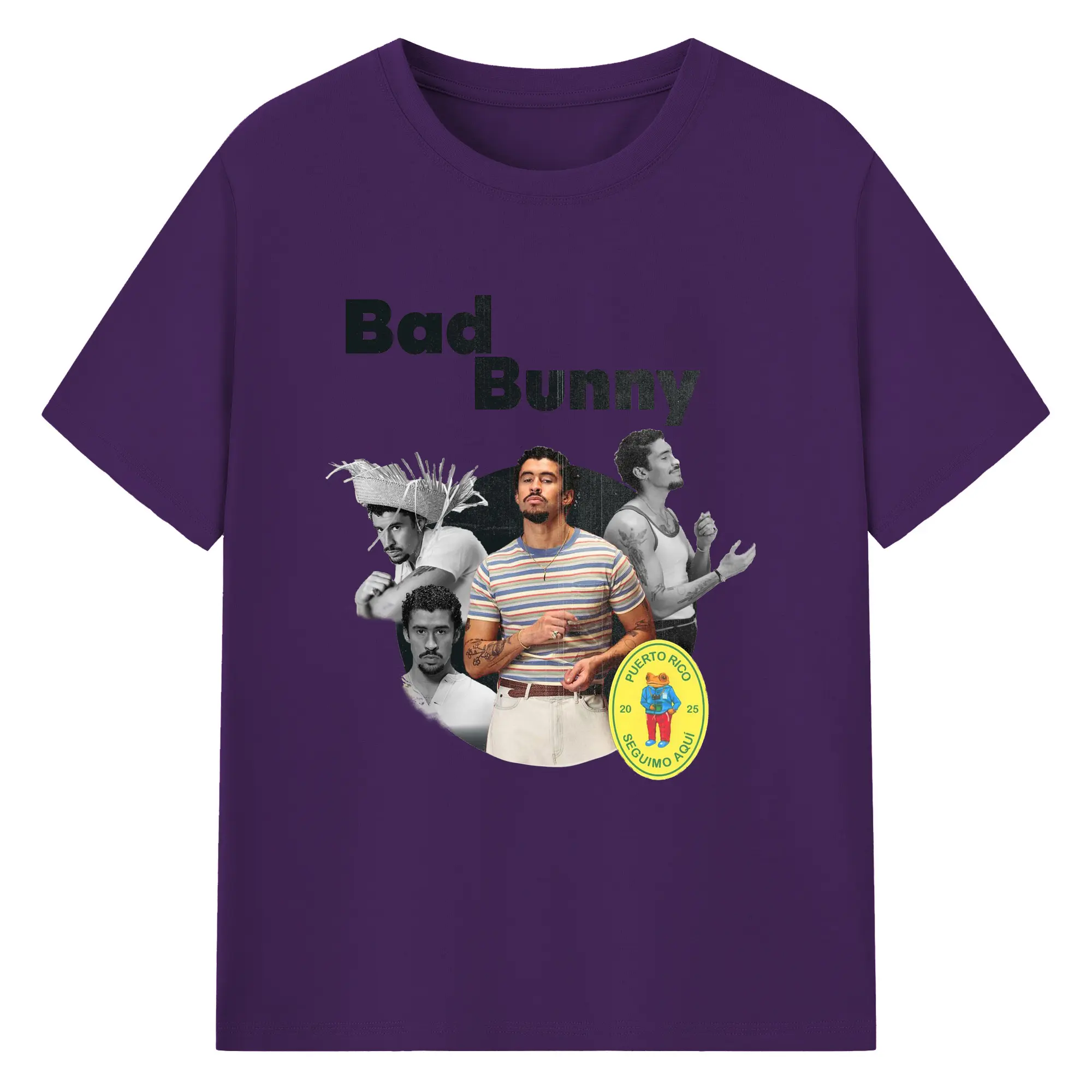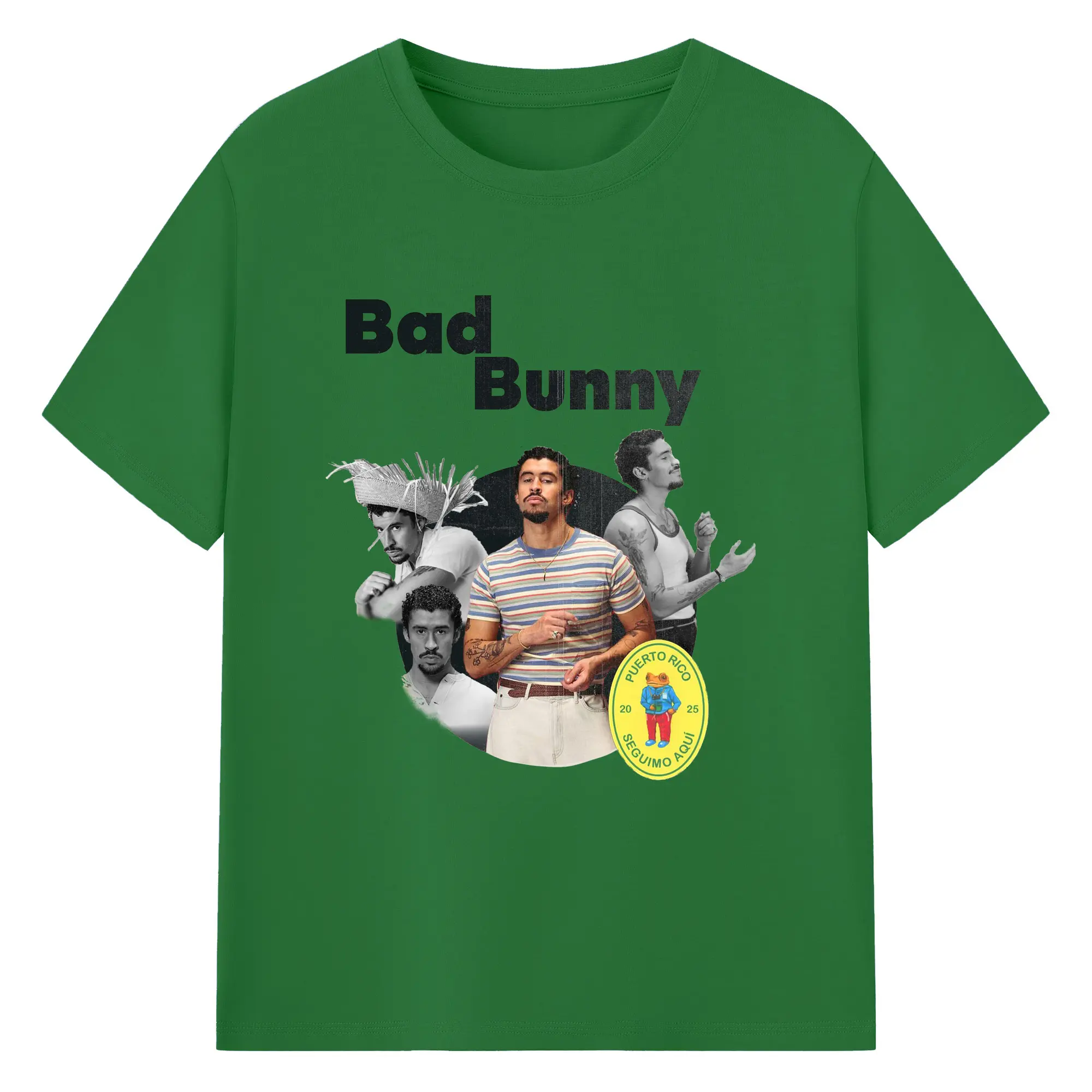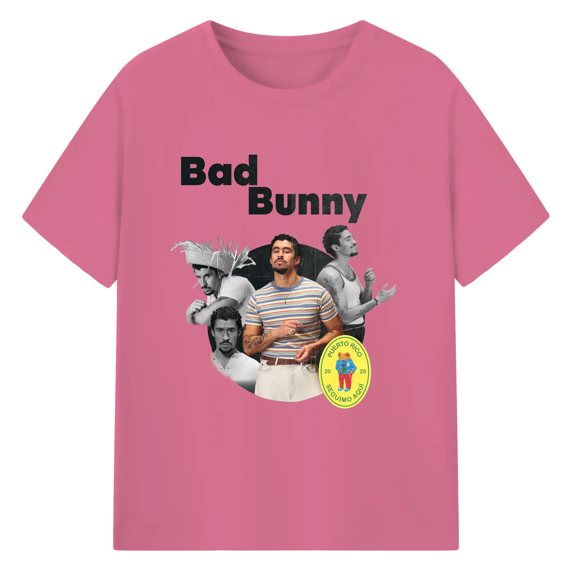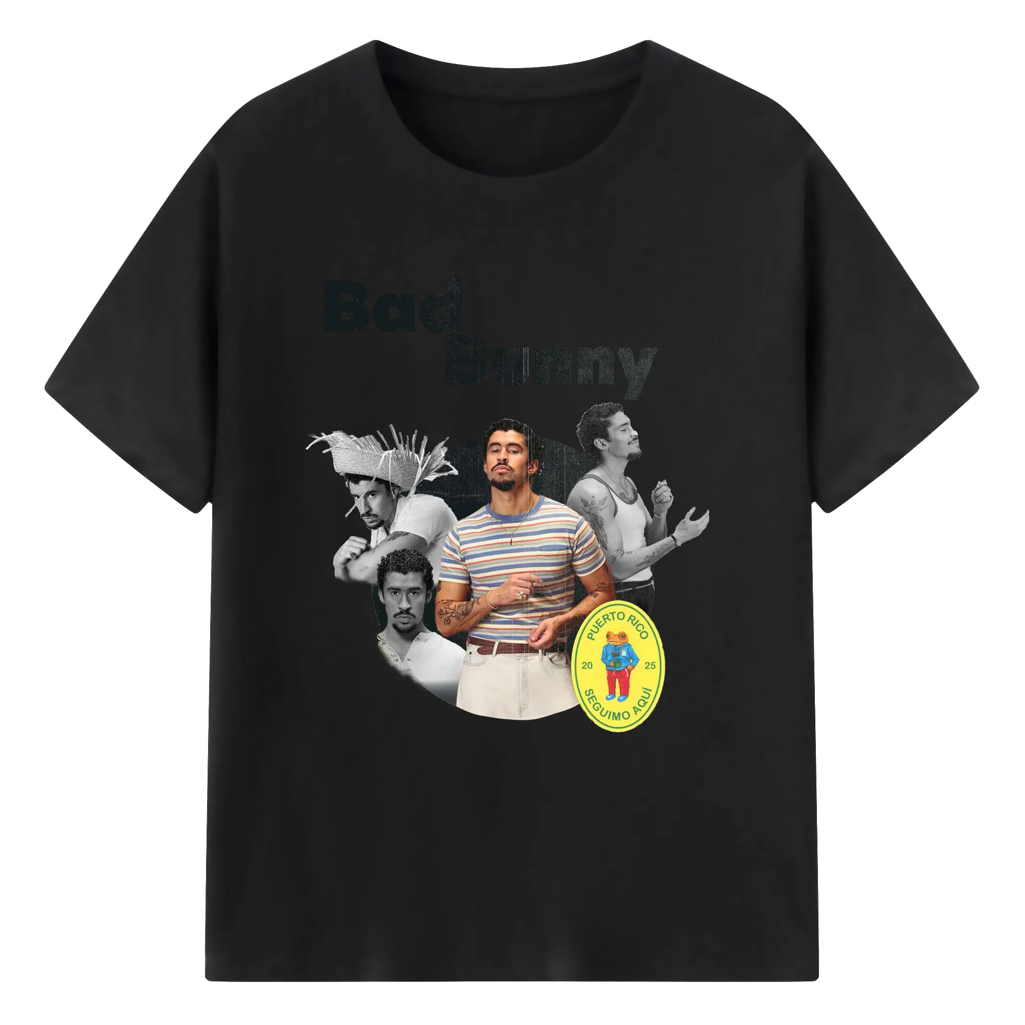 Bad Bunny PUERTO RICO SEGUIMOS AQUÍ DIY - 180g Cotton T-Shirt With Front Heat Transfer Print – Soft, Lightweight, Fitted Design – Comfortable Casual Wear For Sports & Everyday Use
