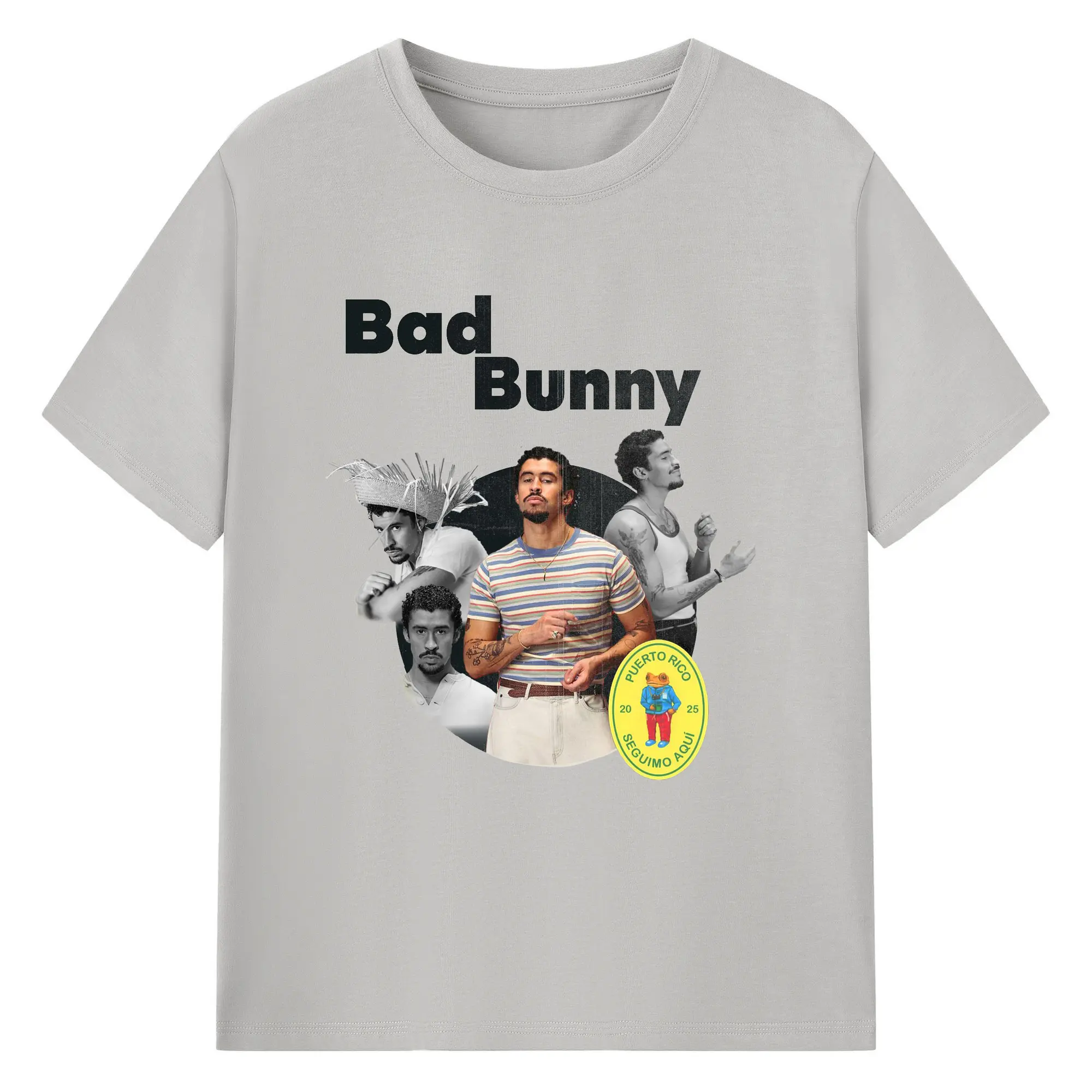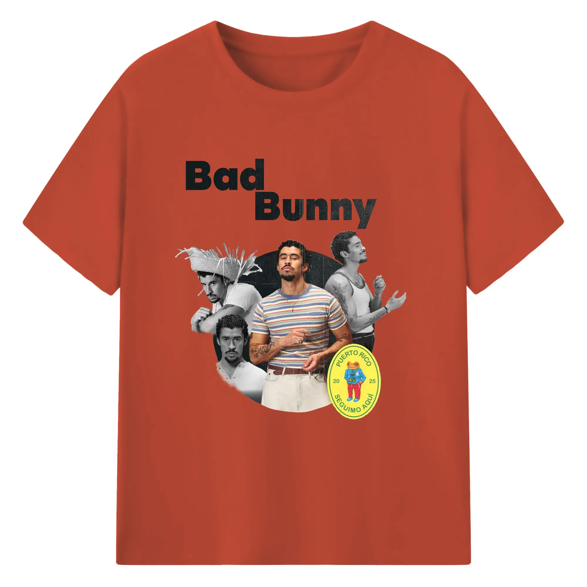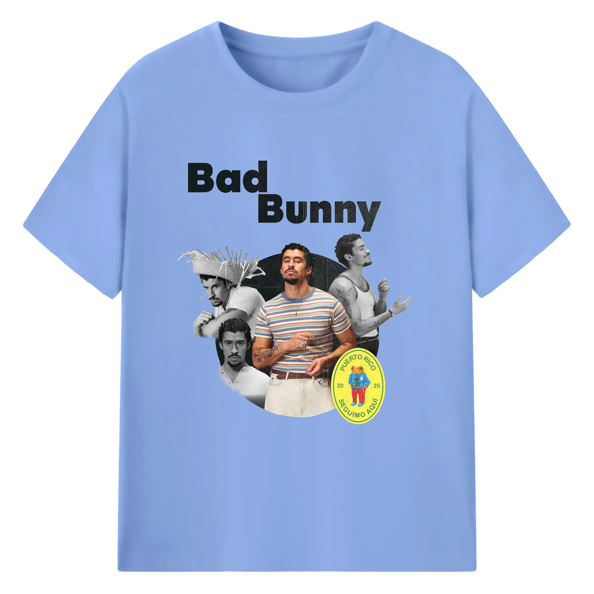 Bad Bunny PUERTO RICO SEGUIMOS AQUÍ DIY - 180g Cotton T-Shirt With Front Heat Transfer Print – Soft, Lightweight, Fitted Design – Comfortable Casual Wear For Sports & Everyday Use