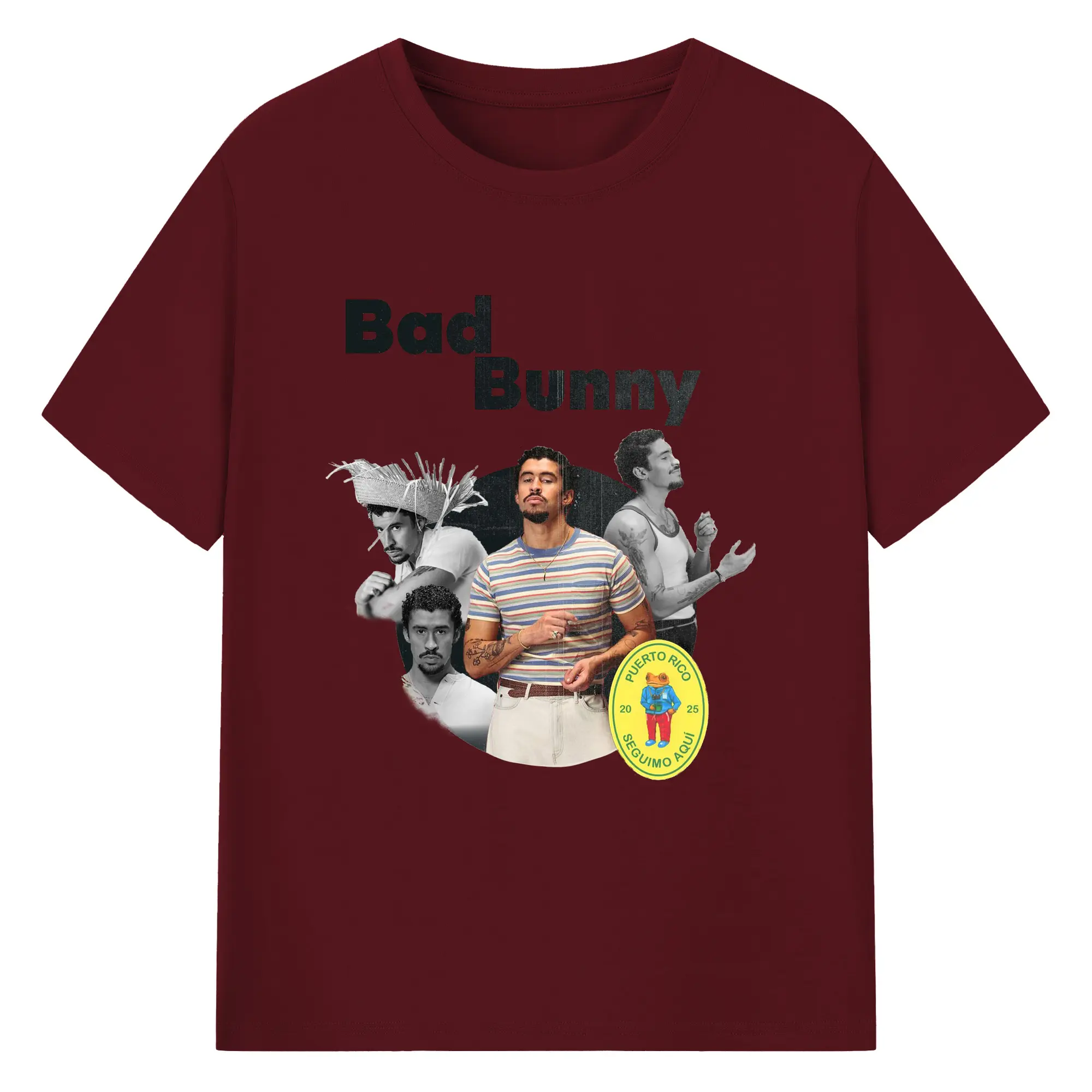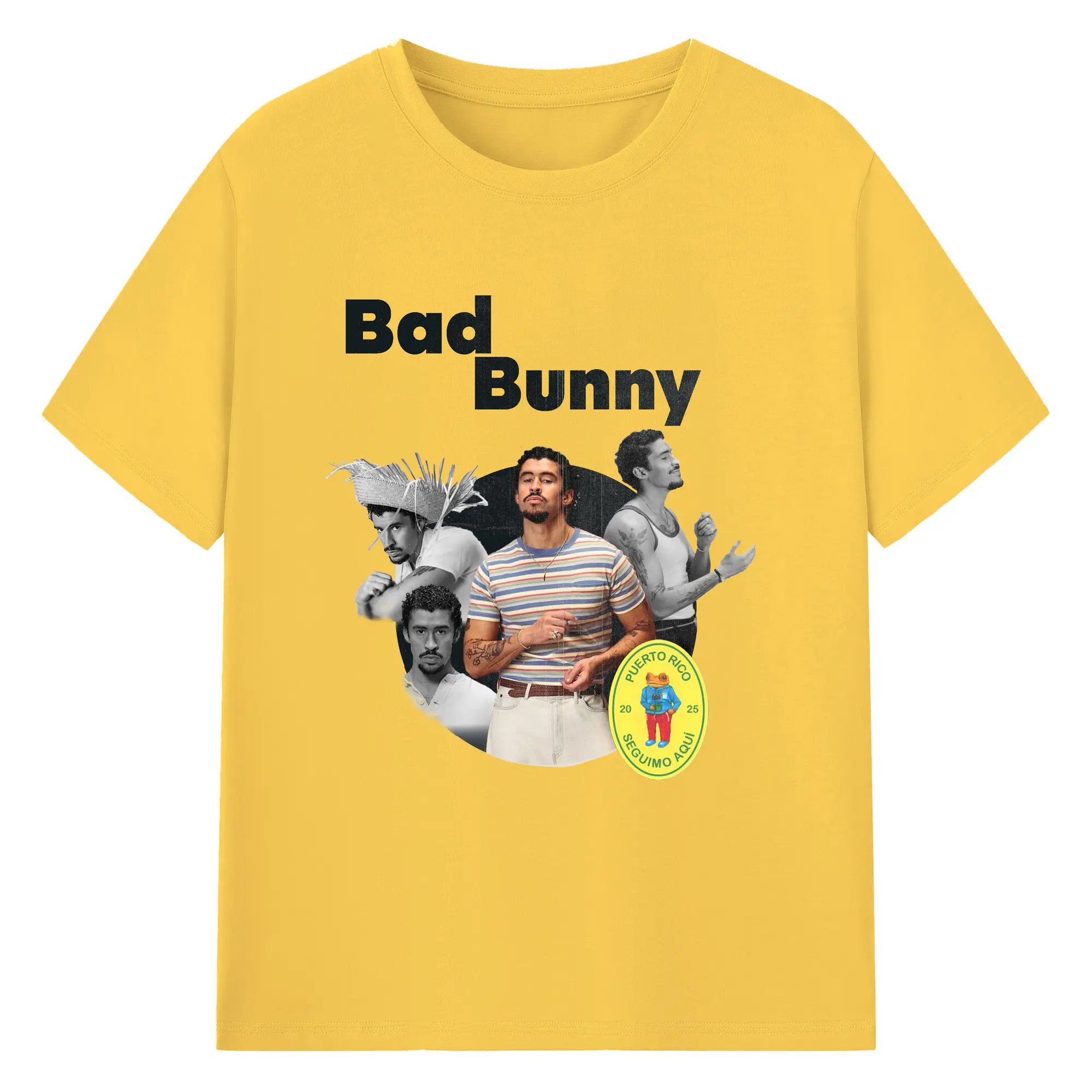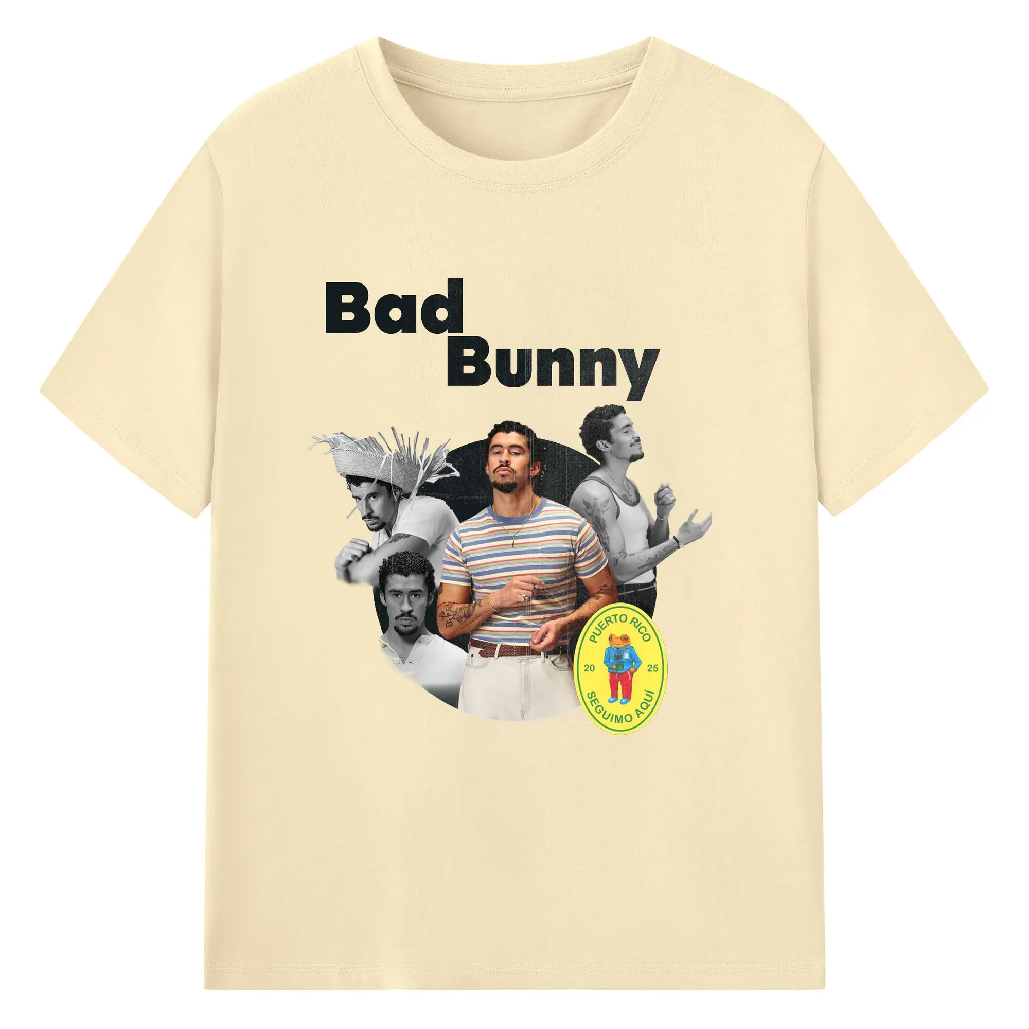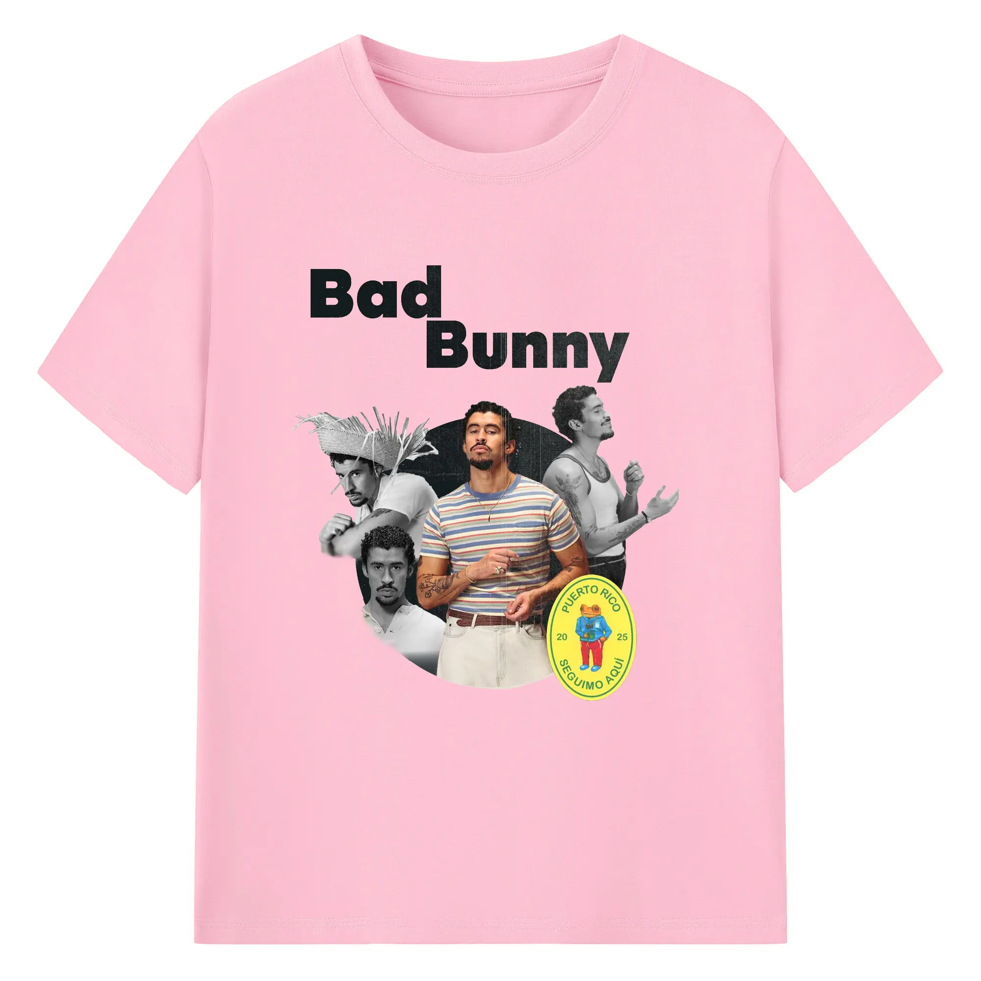 Bad Bunny PUERTO RICO SEGUIMOS AQUÍ DIY - 180g Cotton T-Shirt With Front Heat Transfer Print – Soft, Lightweight, Fitted Design – Comfortable Casual Wear For Sports & Everyday Use
