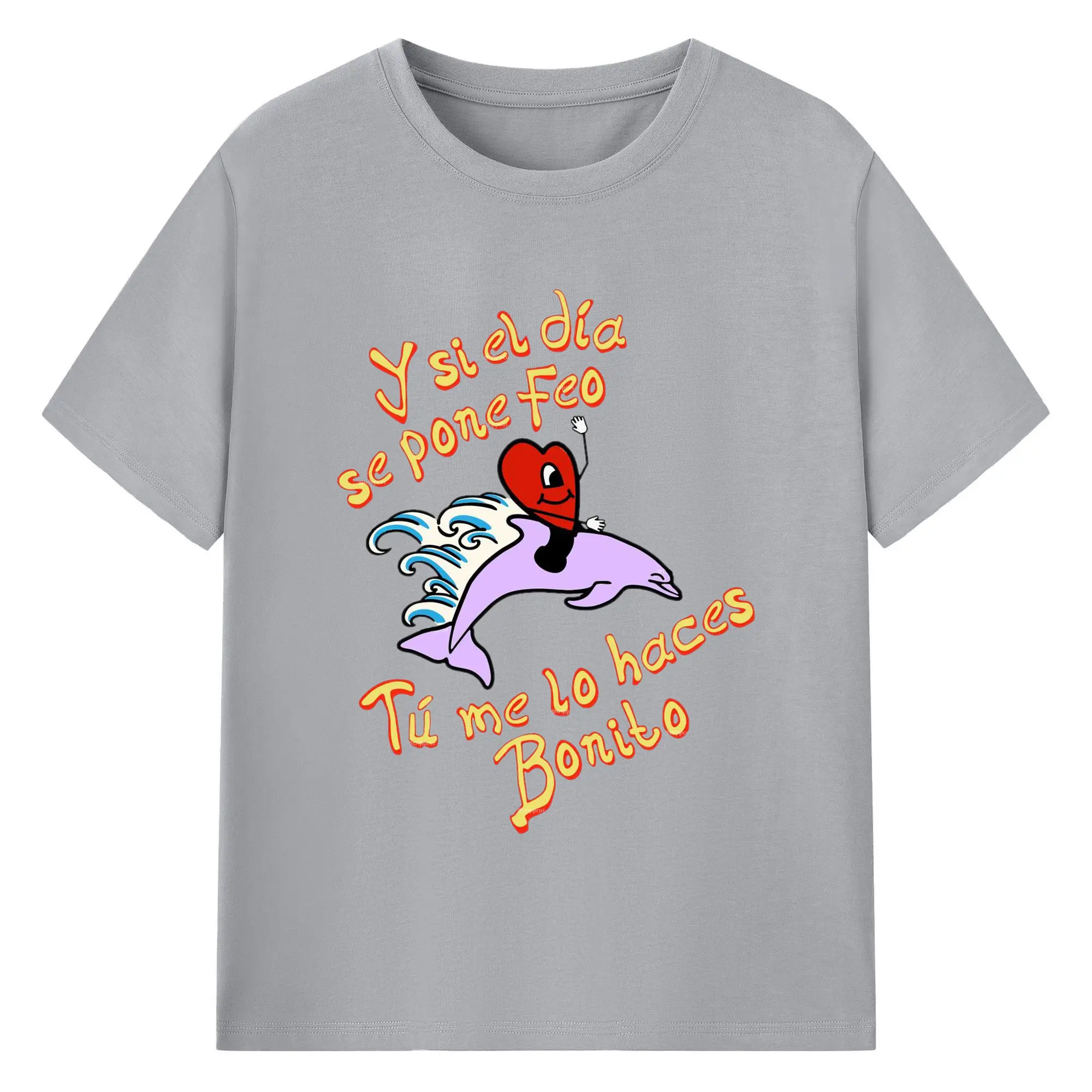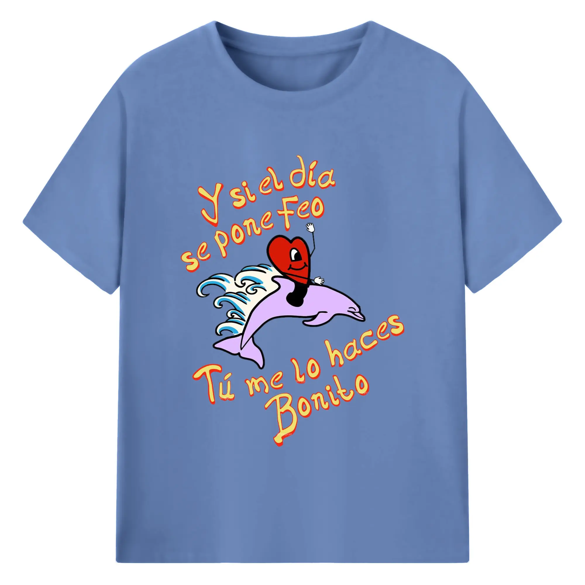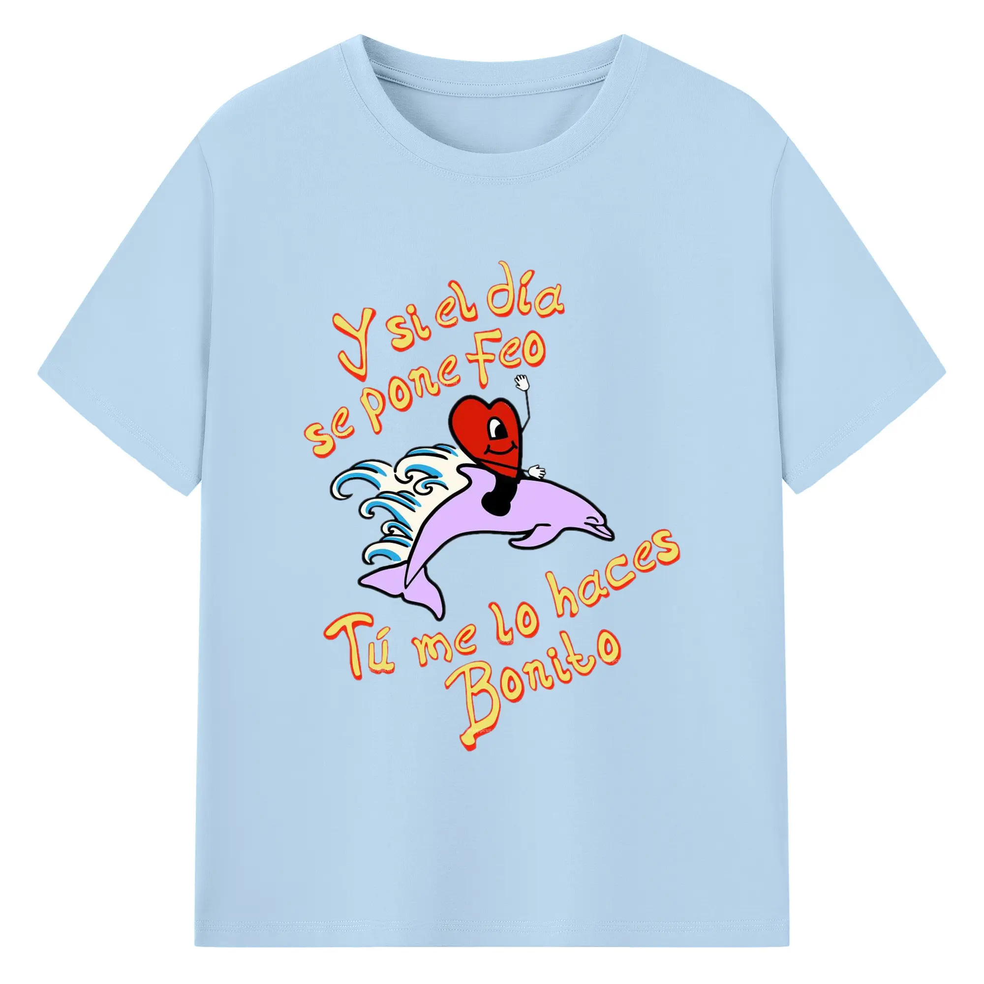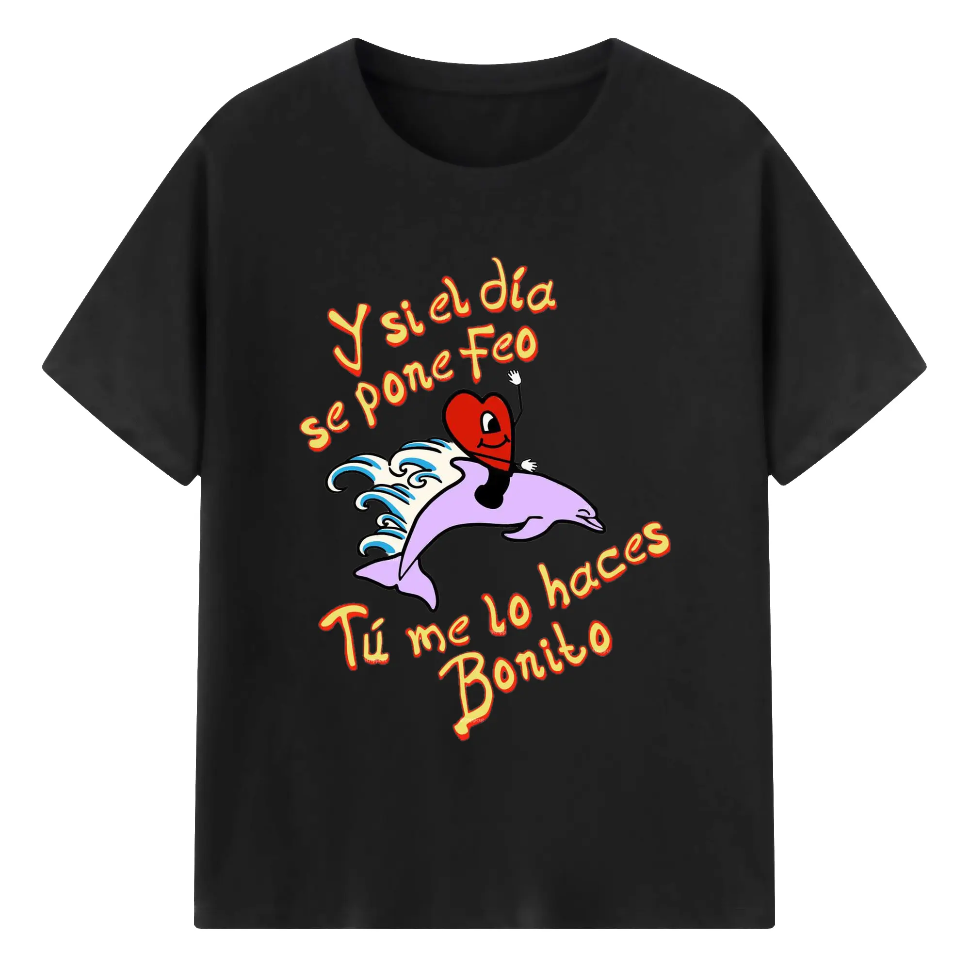 Bad Bunny “Y si el día se pone feo, Tú me lo haces Bonito” Shirt - 180g Cotton T-Shirt With Front Heat Transfer Print – Soft, Lightweight, Fitted Design – Comfortable Casual Wear For Sports & Everyday Use