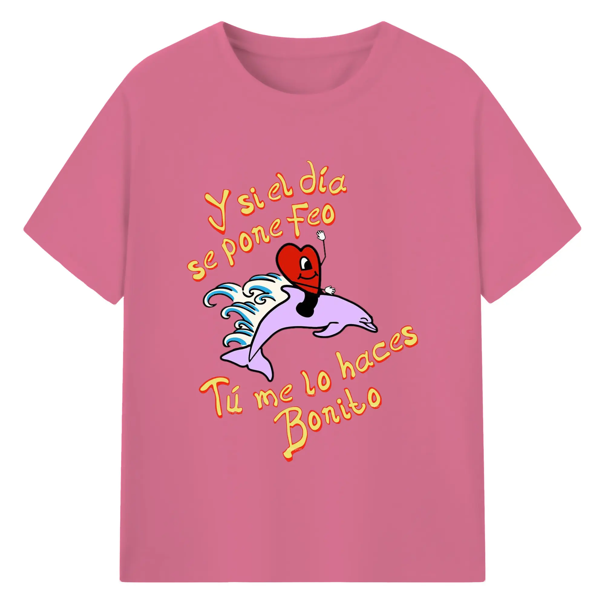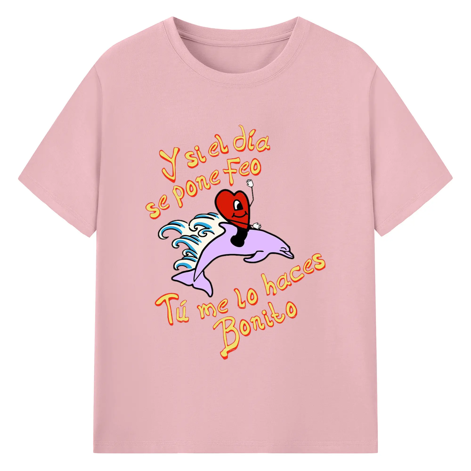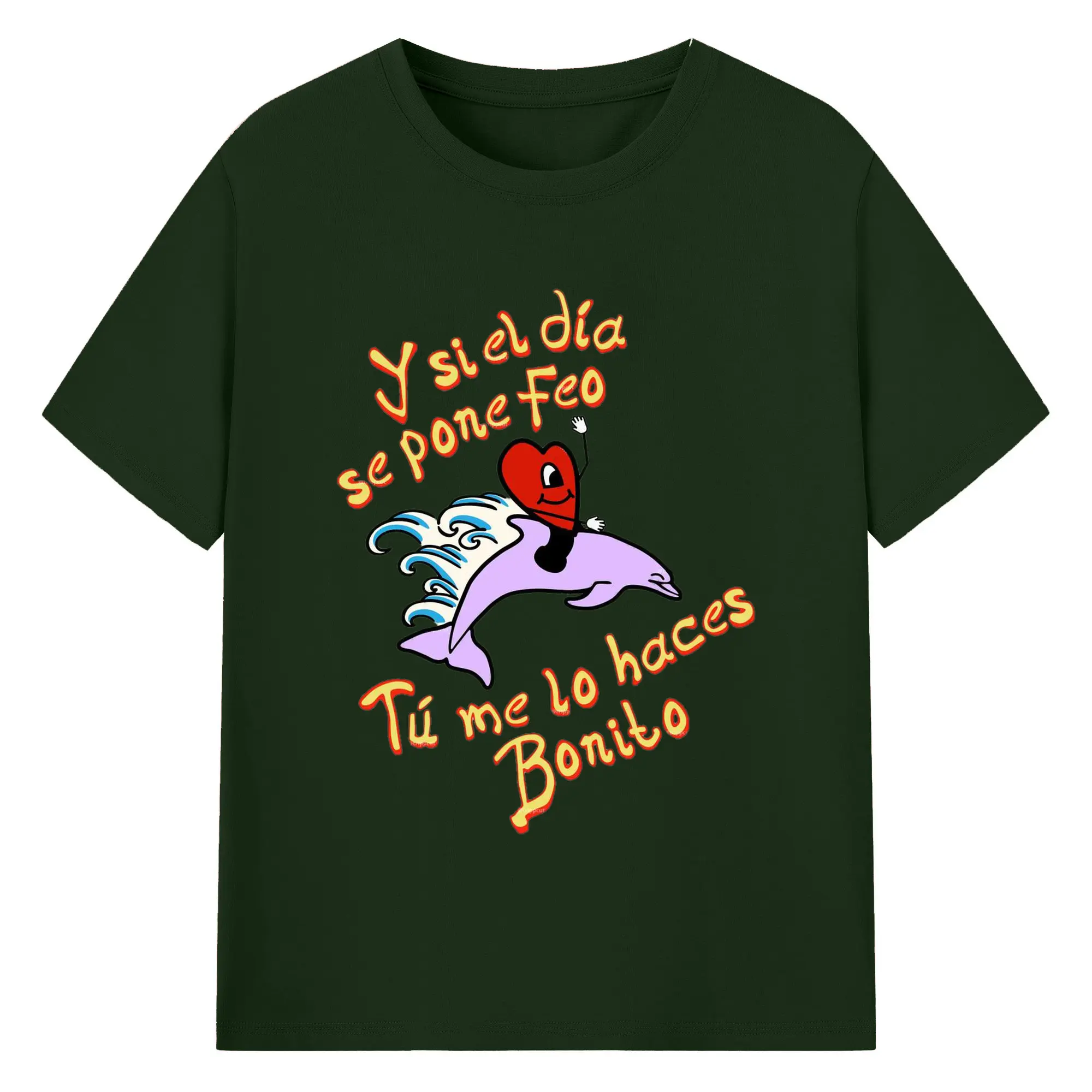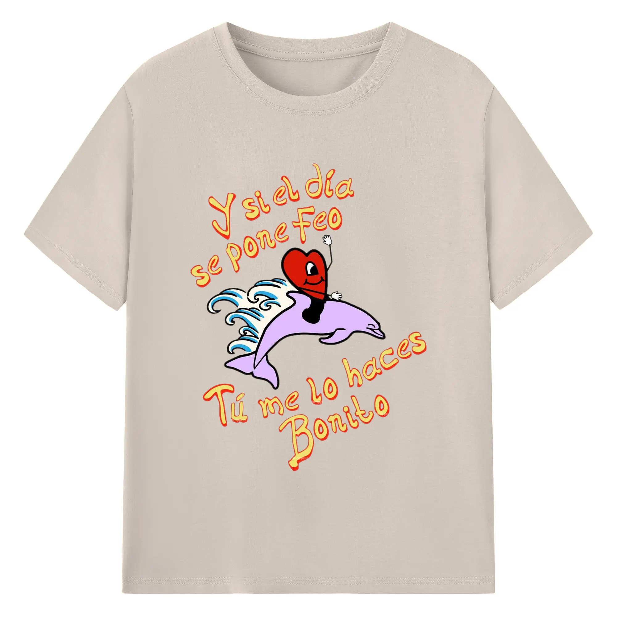 Bad Bunny “Y si el día se pone feo, Tú me lo haces Bonito” Shirt - 180g Cotton T-Shirt With Front Heat Transfer Print – Soft, Lightweight, Fitted Design – Comfortable Casual Wear For Sports & Everyday Use