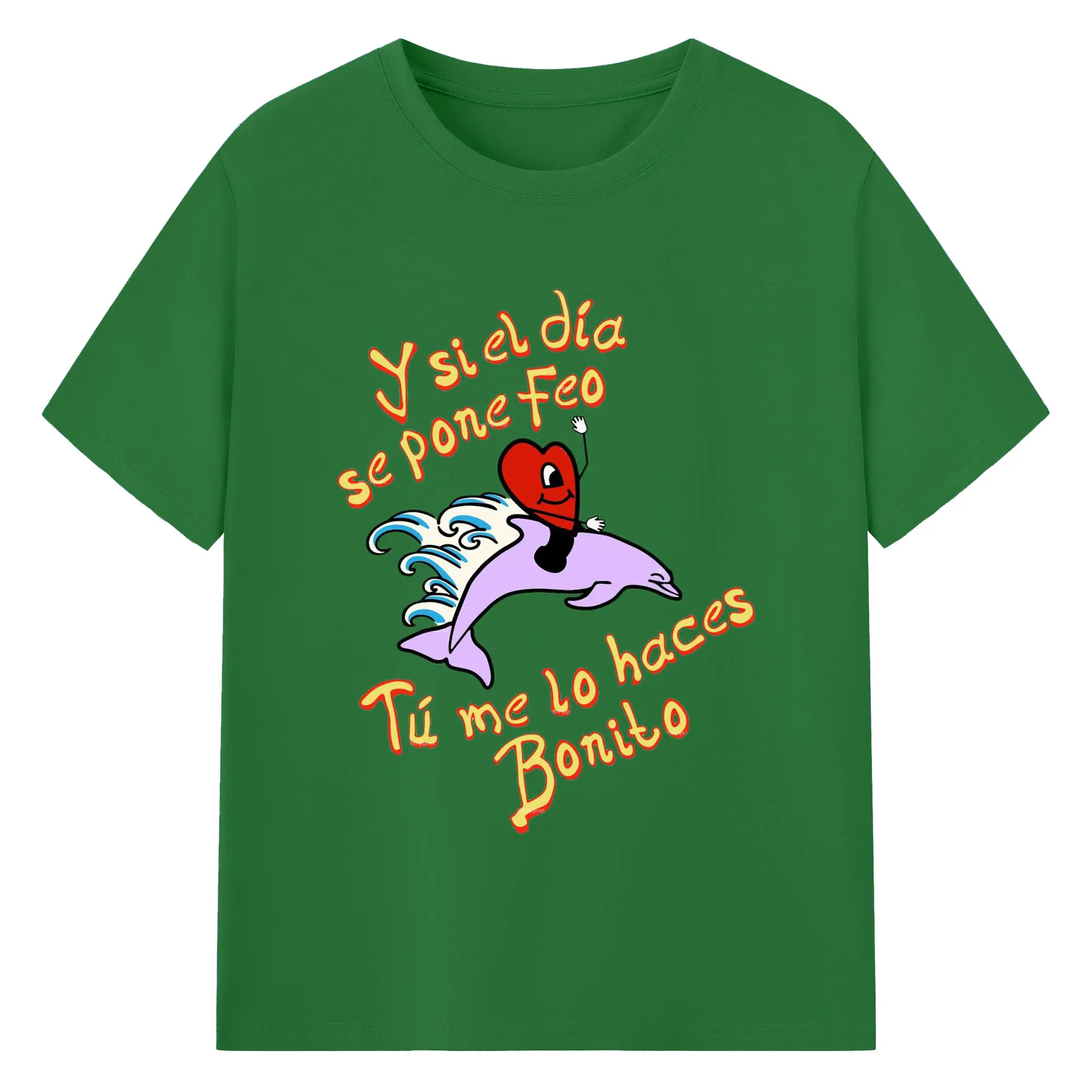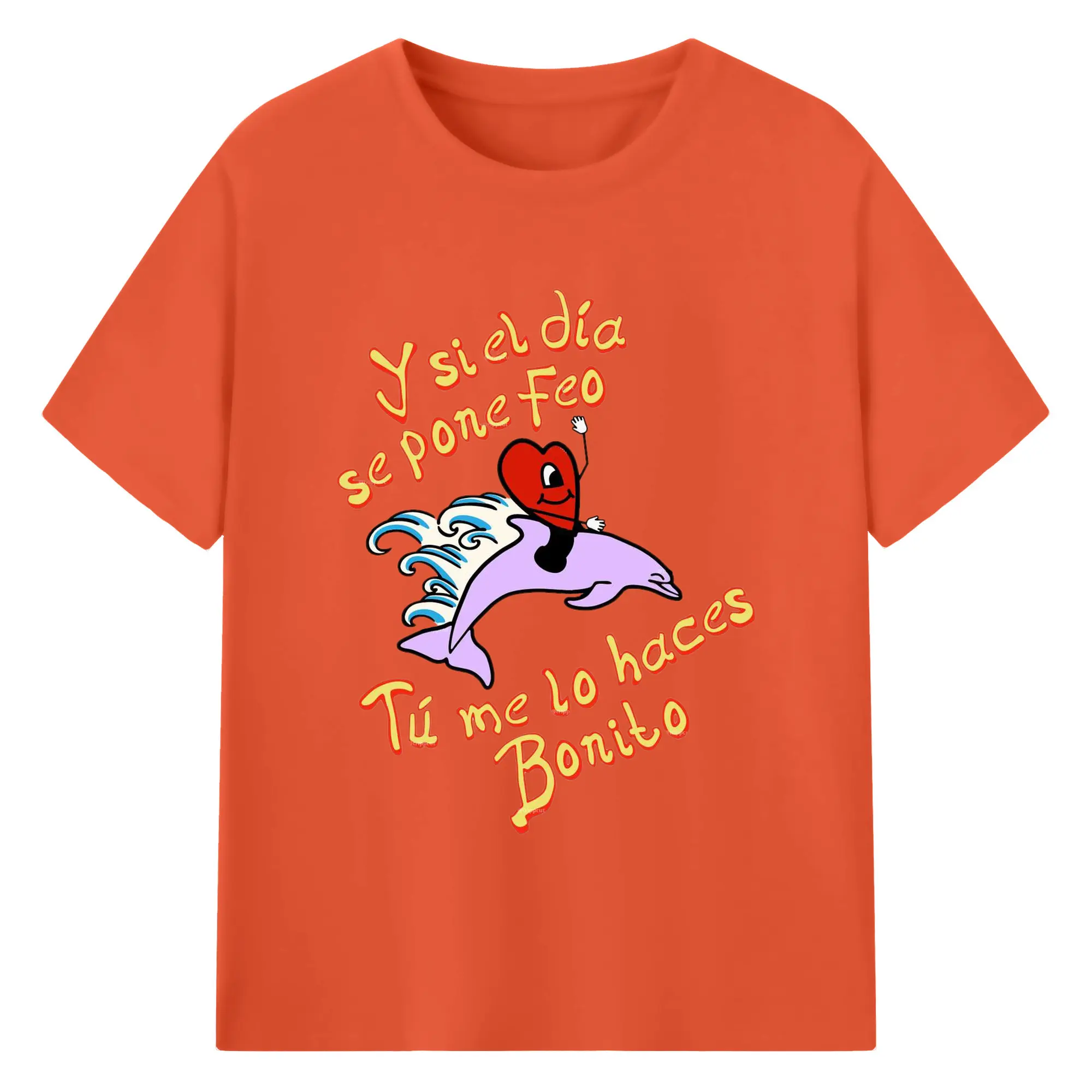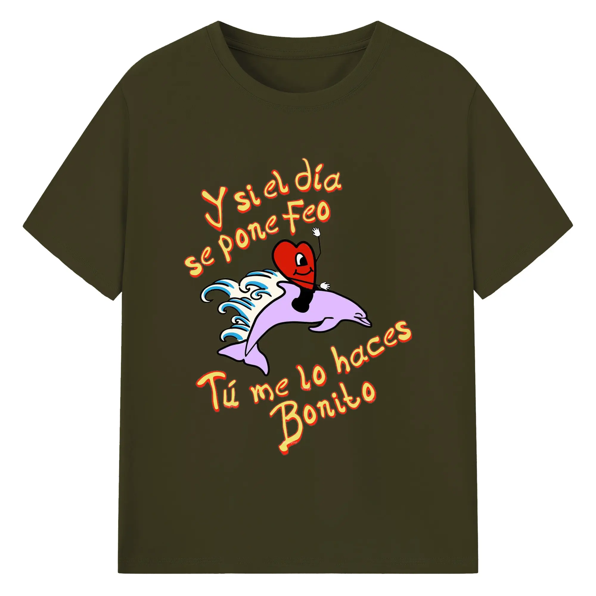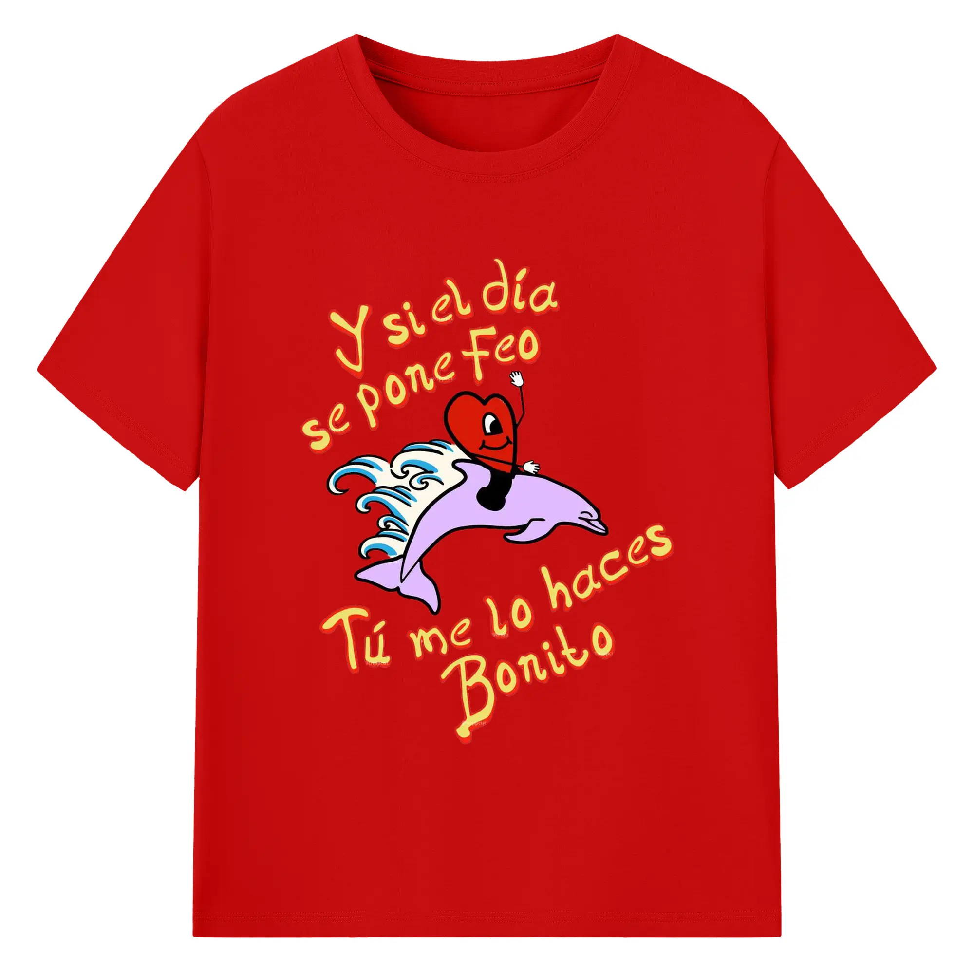 Bad Bunny “Y si el día se pone feo, Tú me lo haces Bonito” Shirt - 180g Cotton T-Shirt With Front Heat Transfer Print – Soft, Lightweight, Fitted Design – Comfortable Casual Wear For Sports & Everyday Use