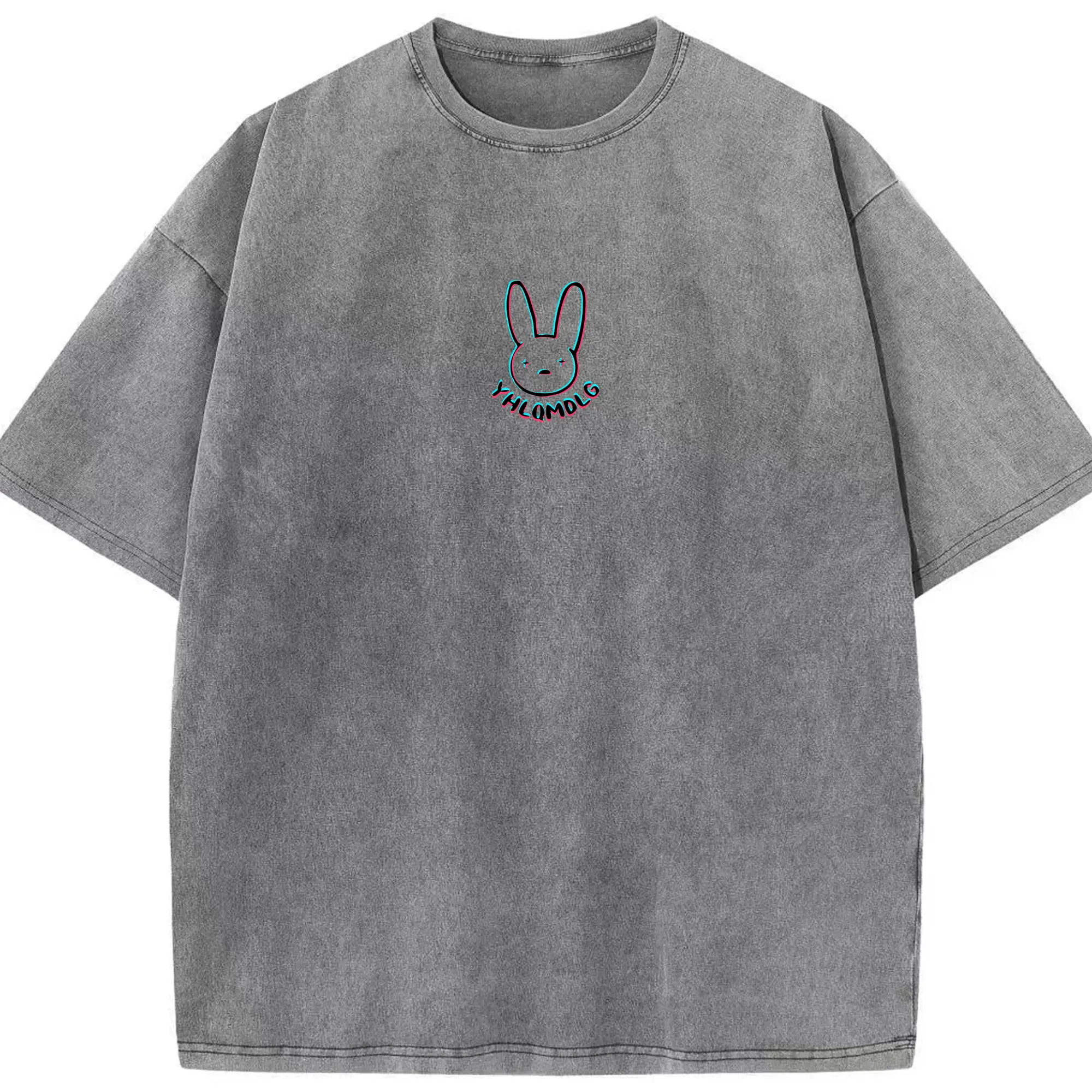 Bad Bunny YHLQMDLG Cyber Cartoon DIY - Washed Vintage Look 230g Cotton Oversized T-Shirt With Front Heat Transfer Print – Soft, Lightweight, Stylish Fit – Comfortable Casual Wear For Sports & Everyday Use