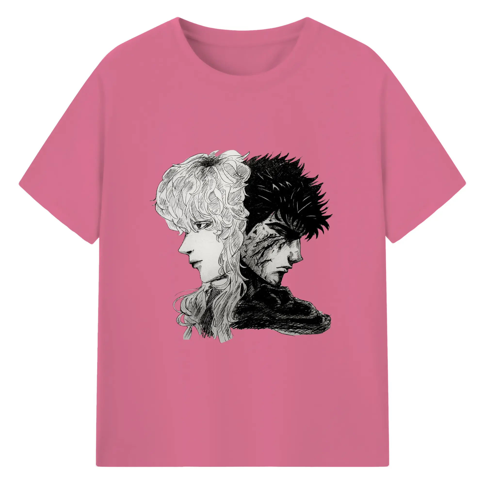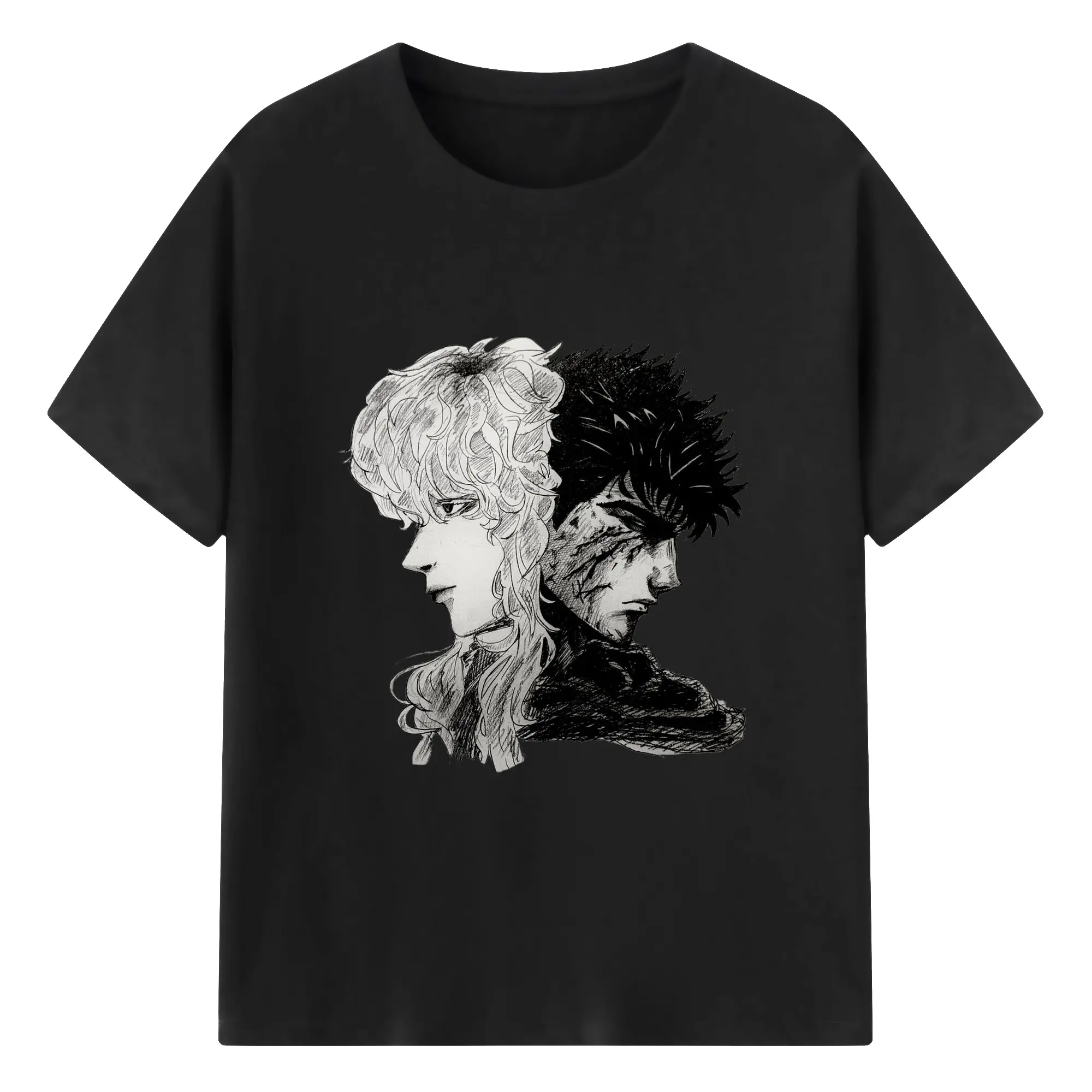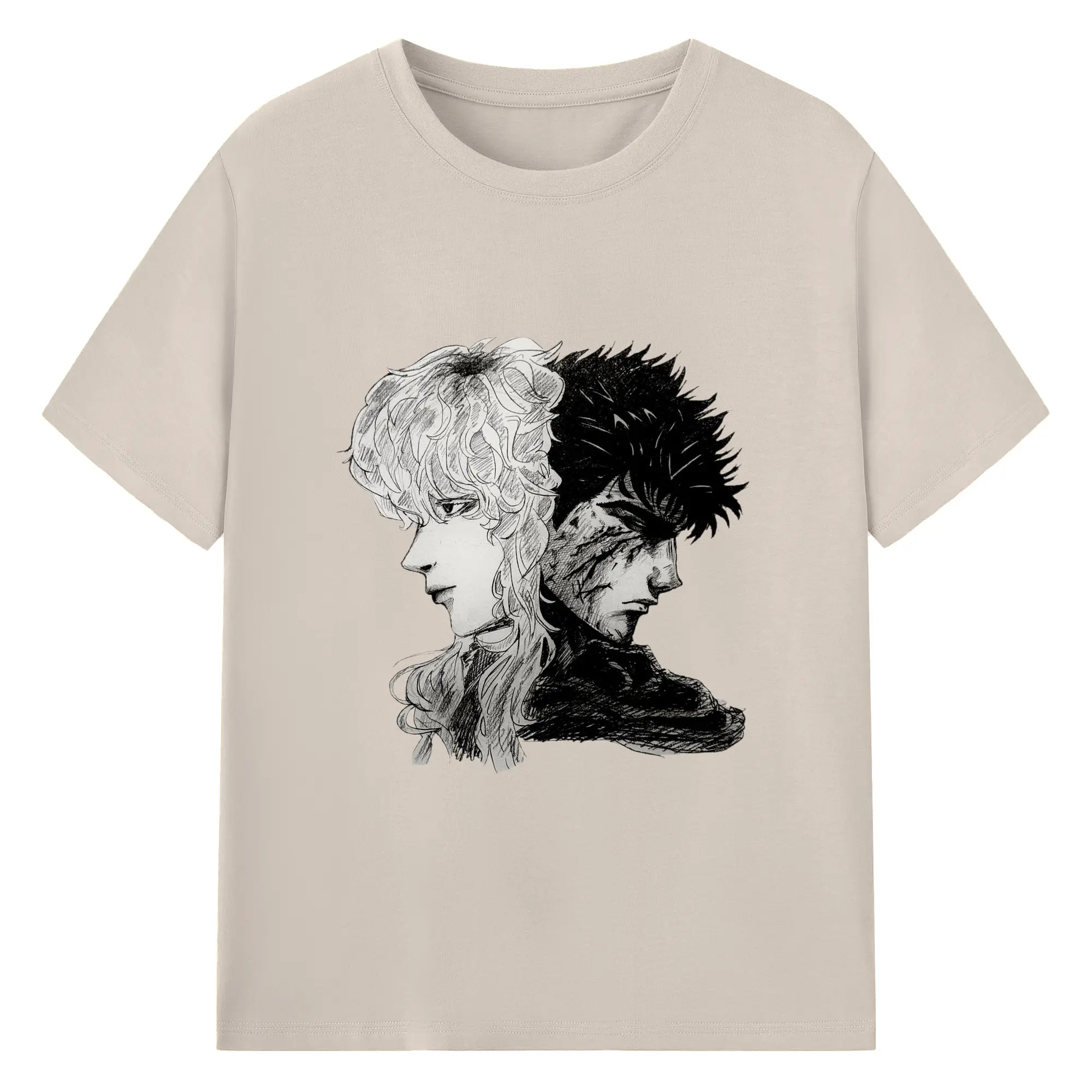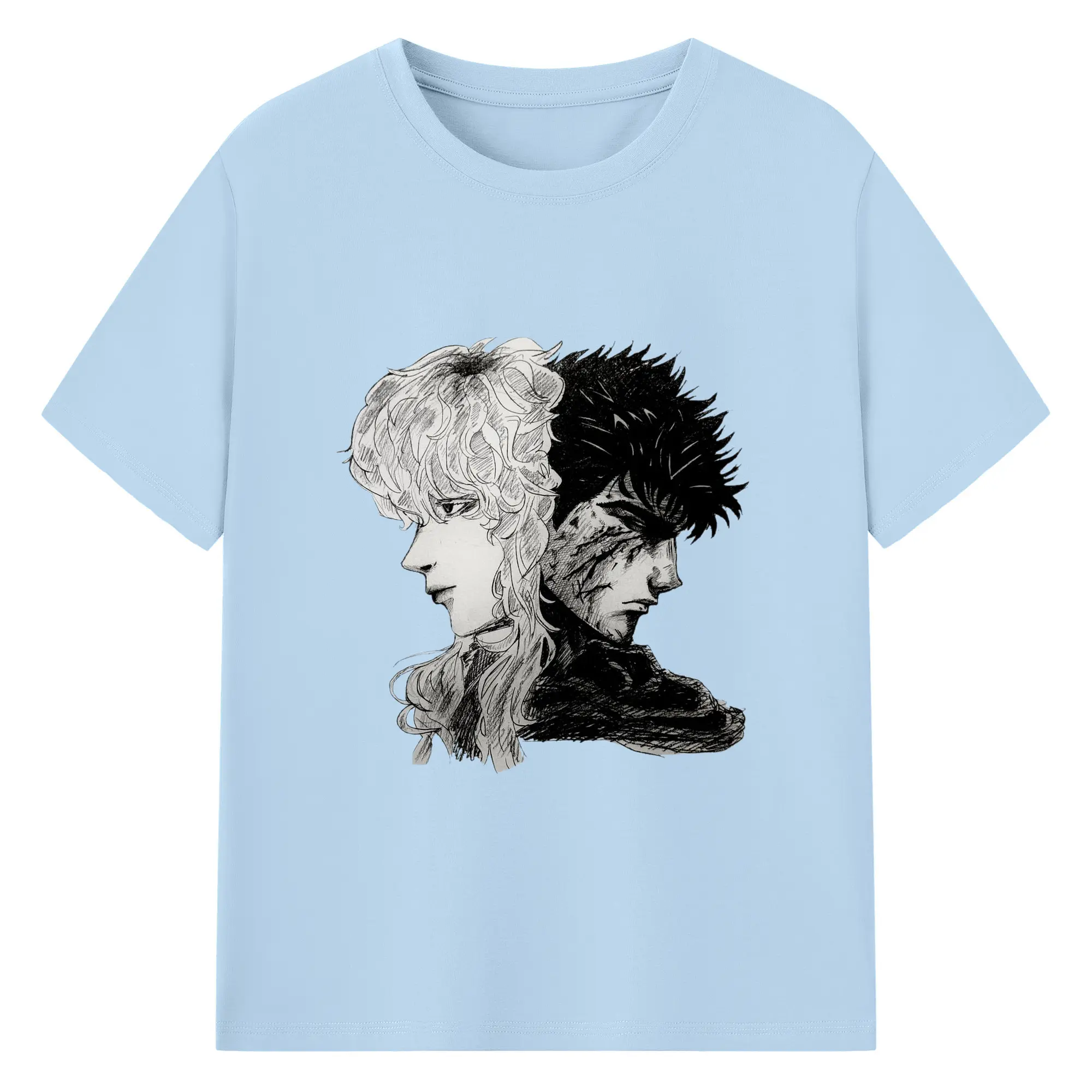 Berserk Griffith & Guts Black White DIY - 180g Cotton T-Shirt With Front Heat Transfer Print – Soft, Lightweight, Fitted Design – Comfortable Casual Wear For Sports & Everyday Use
