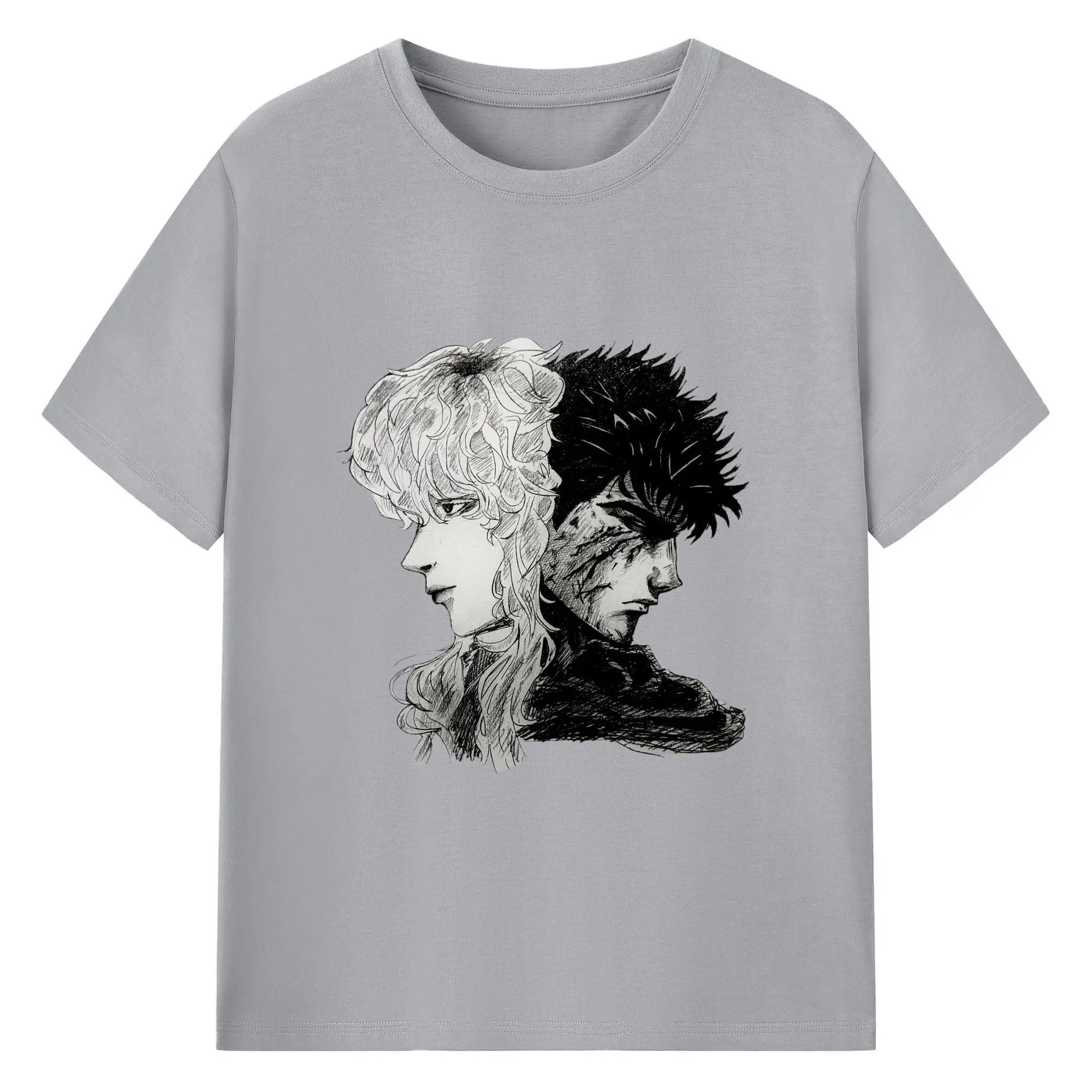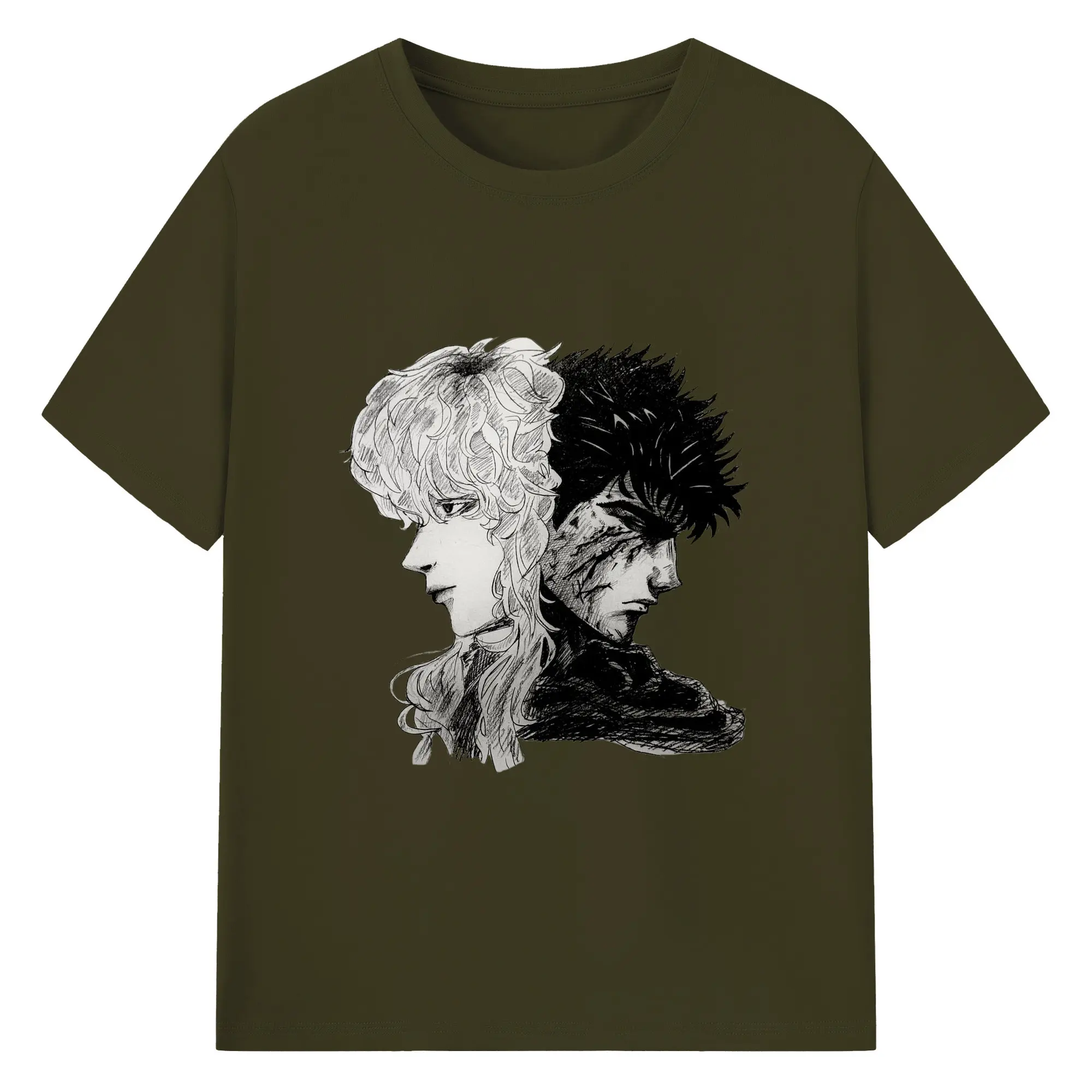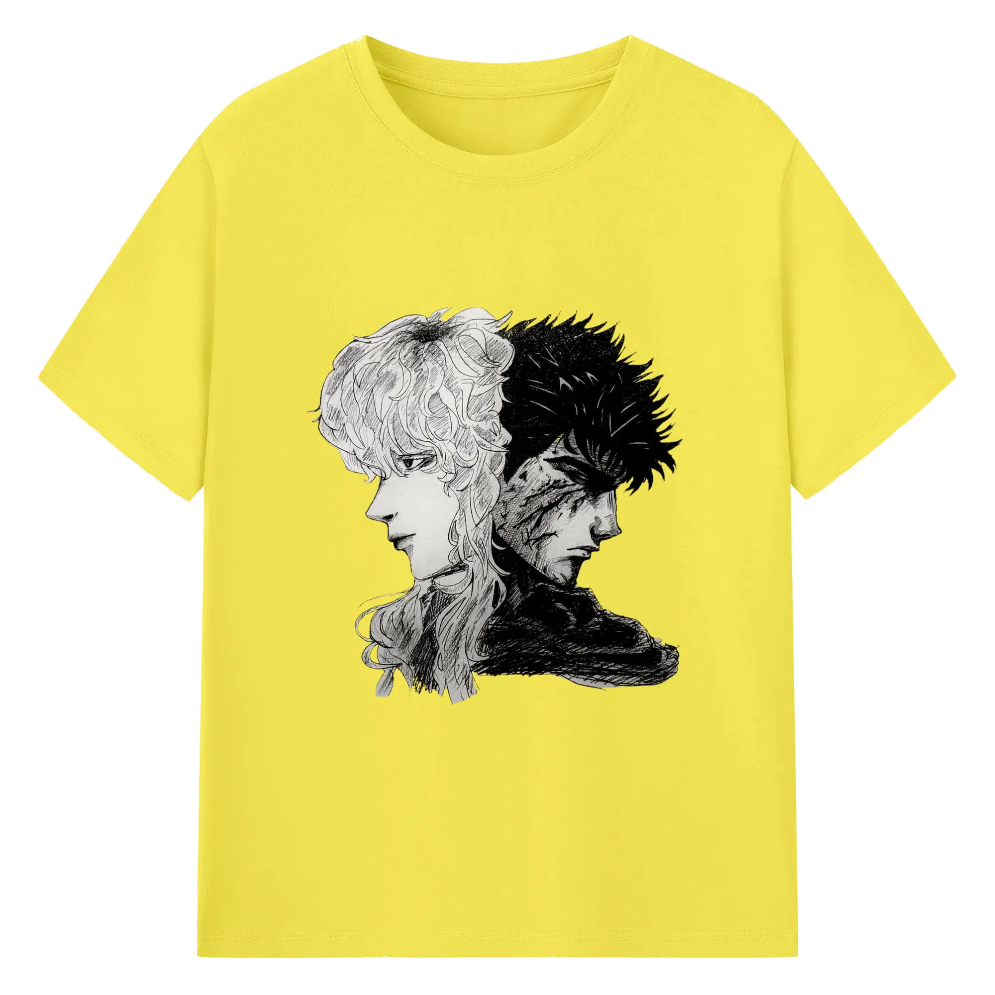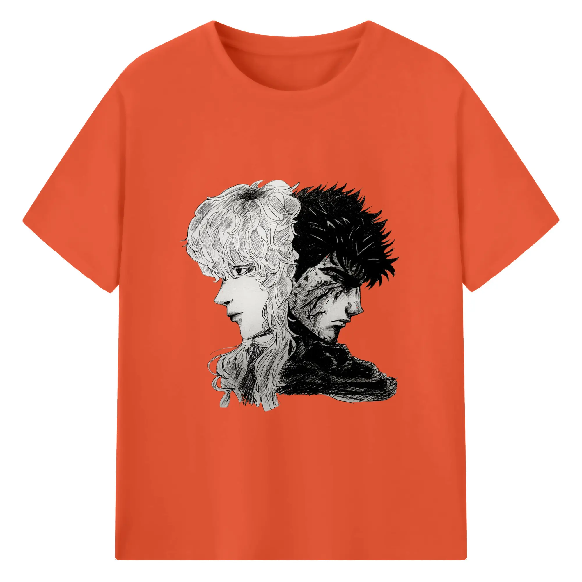 Berserk Griffith & Guts Black White DIY - 180g Cotton T-Shirt With Front Heat Transfer Print – Soft, Lightweight, Fitted Design – Comfortable Casual Wear For Sports & Everyday Use