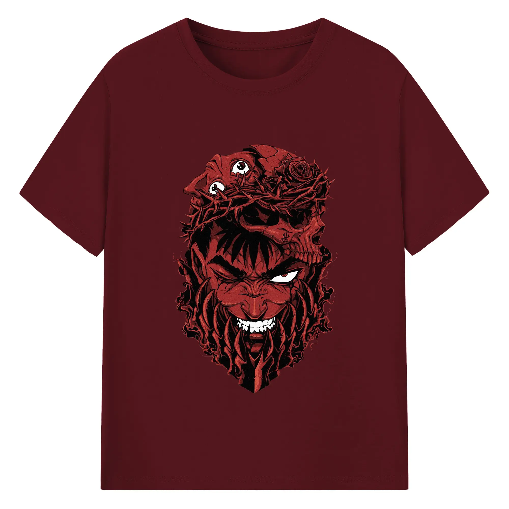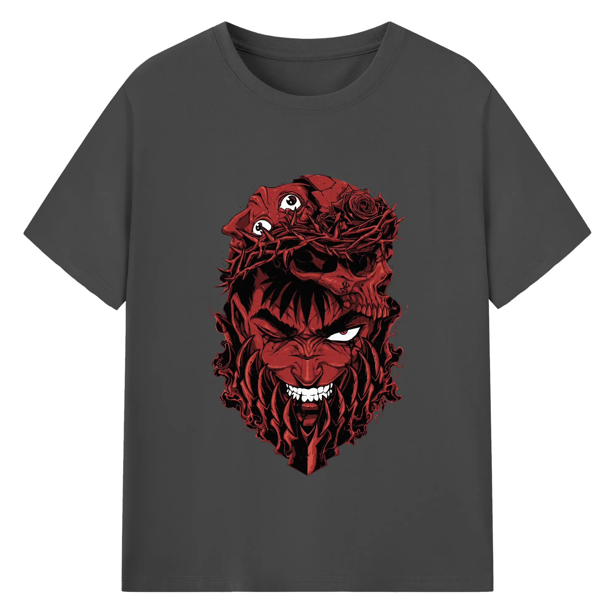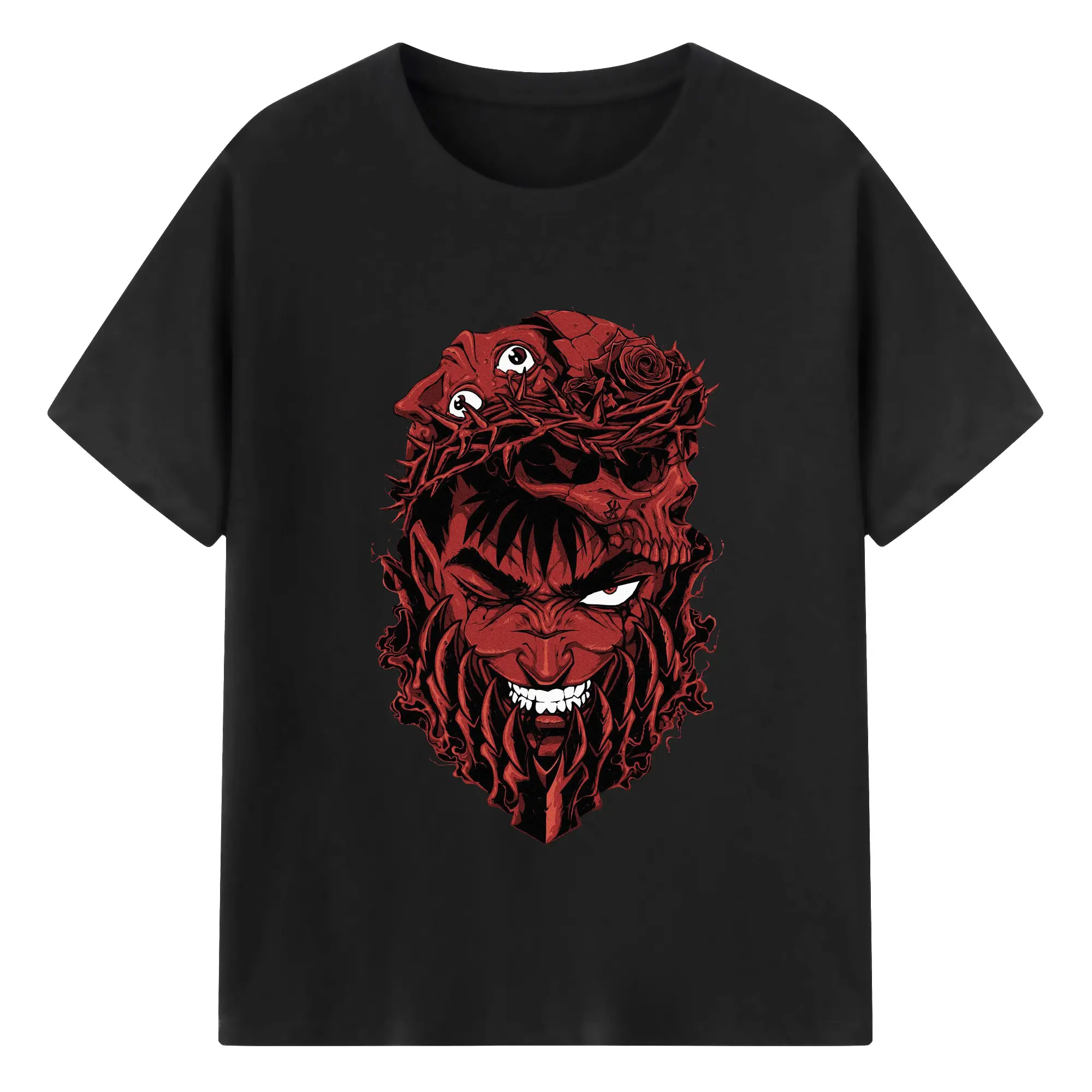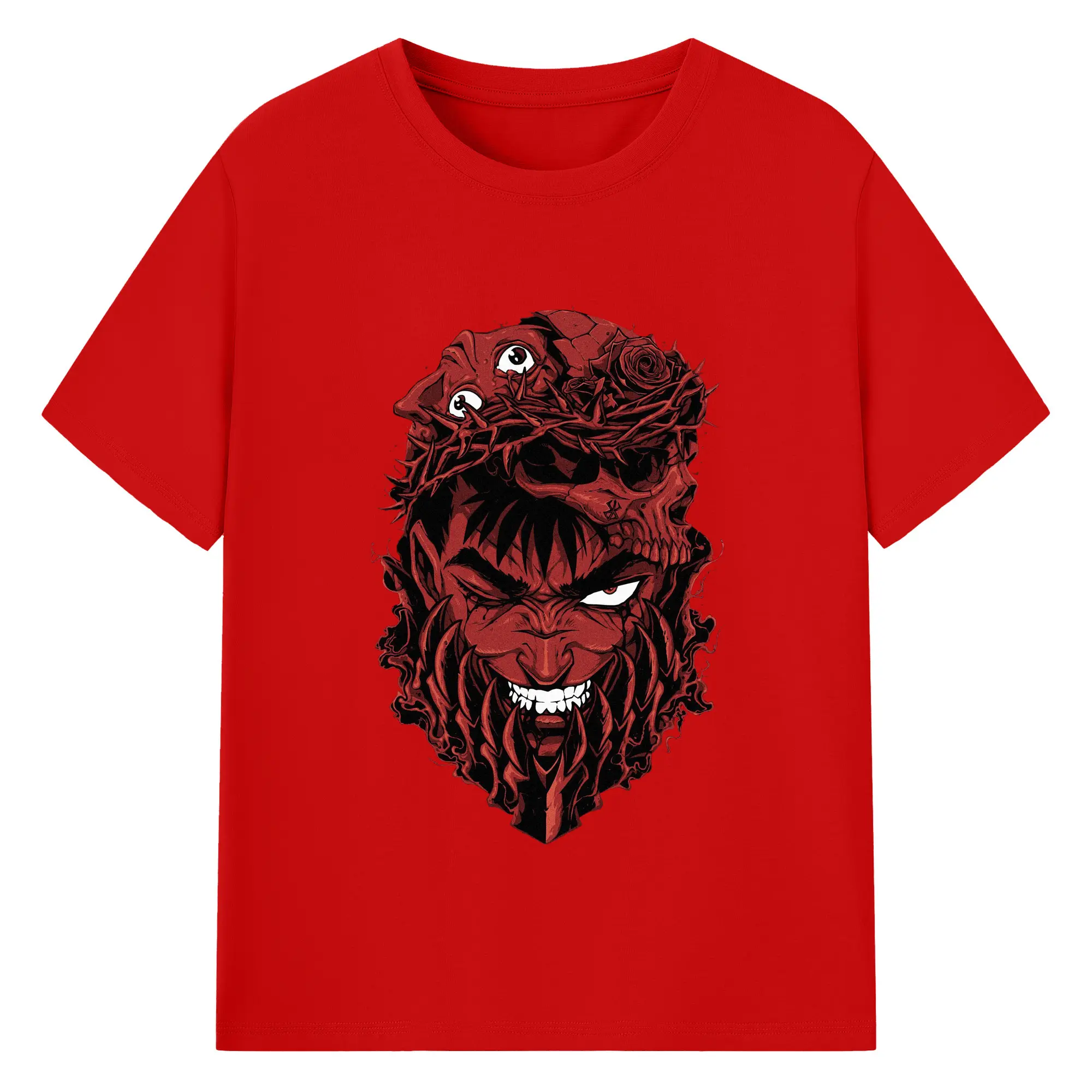 Berserk Guts Dark Fantasy Gothic Red Art DIY - 180g Cotton T-Shirt With Front Heat Transfer Print – Soft, Lightweight, Fitted Design – Comfortable Casual Wear For Sports & Everyday Use