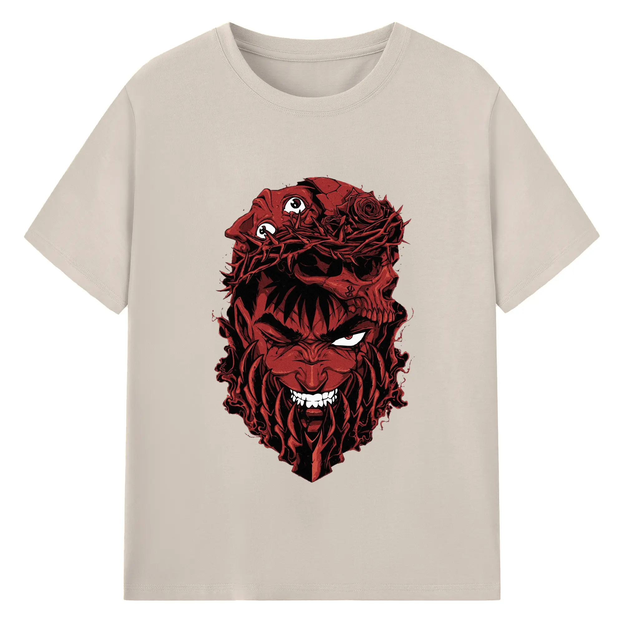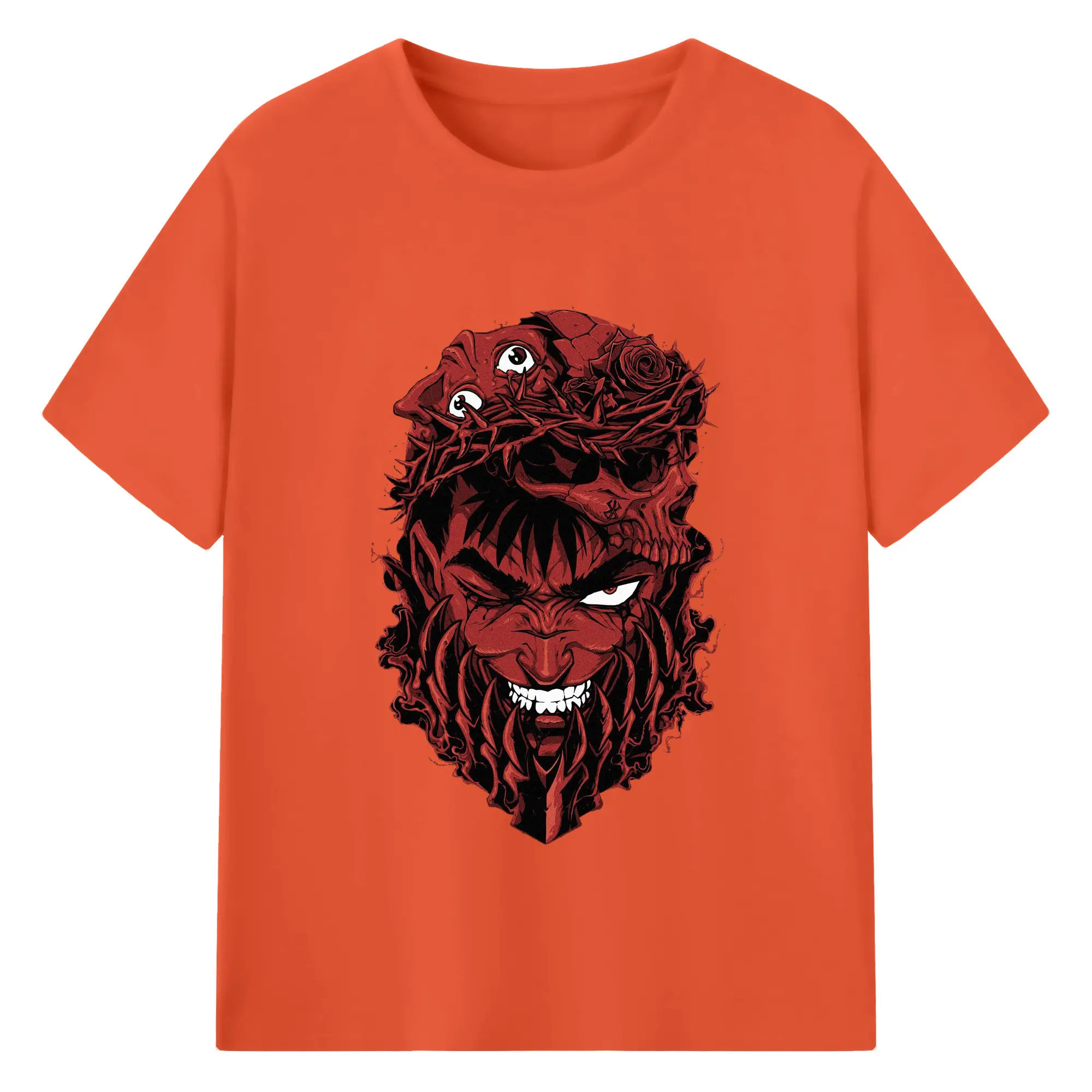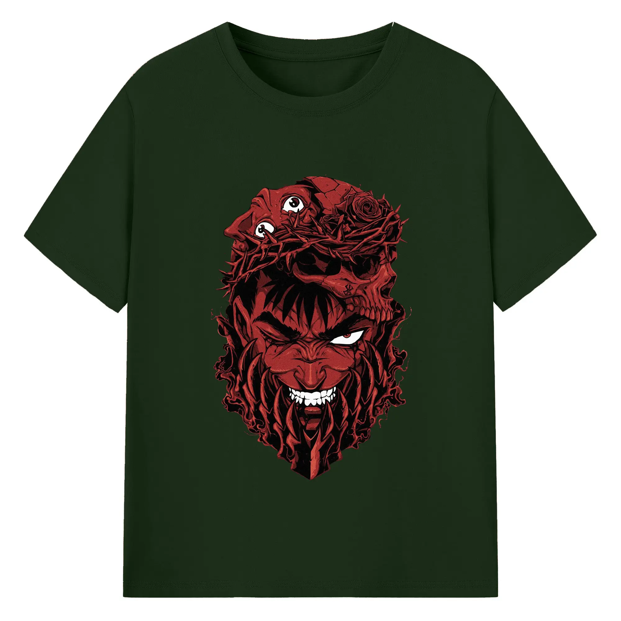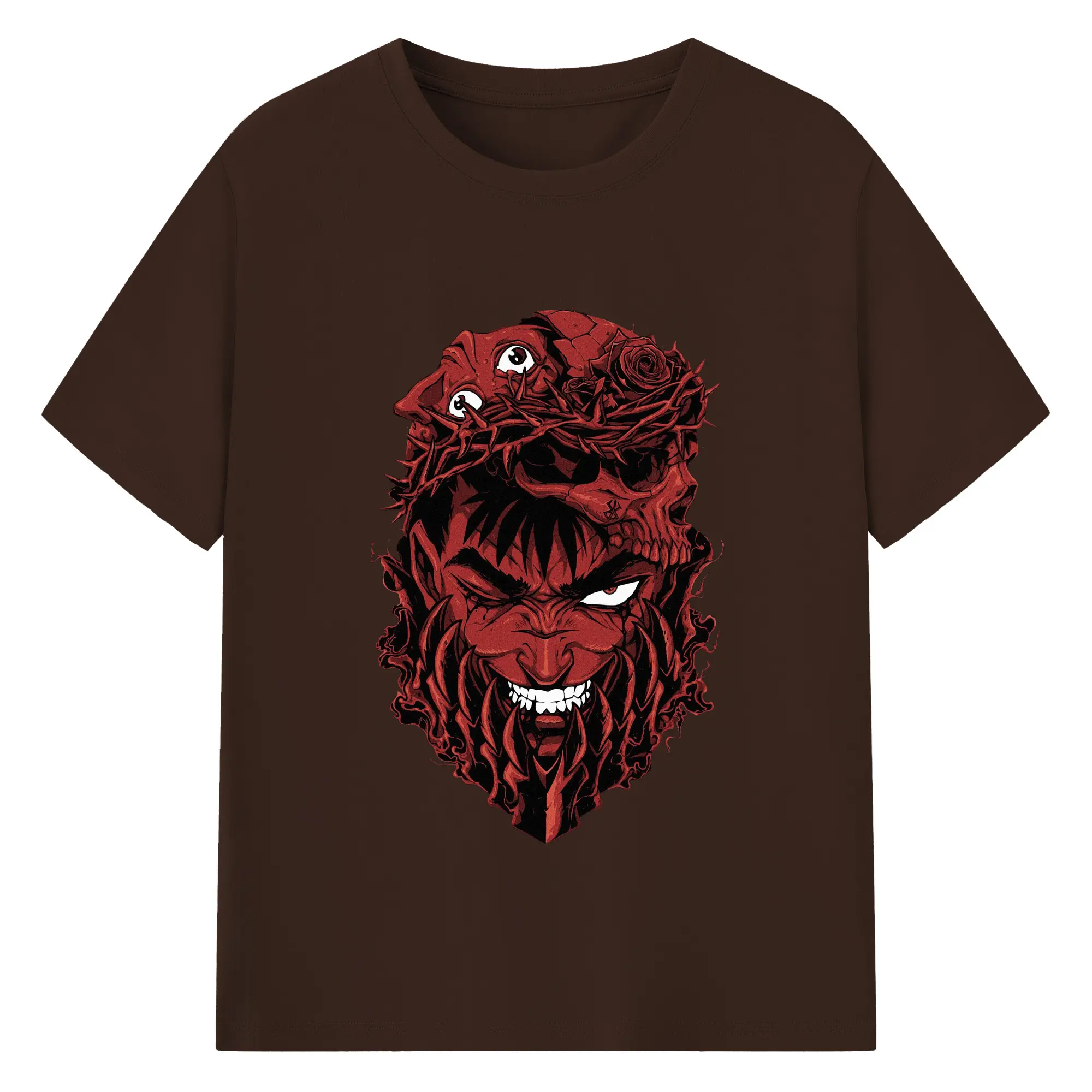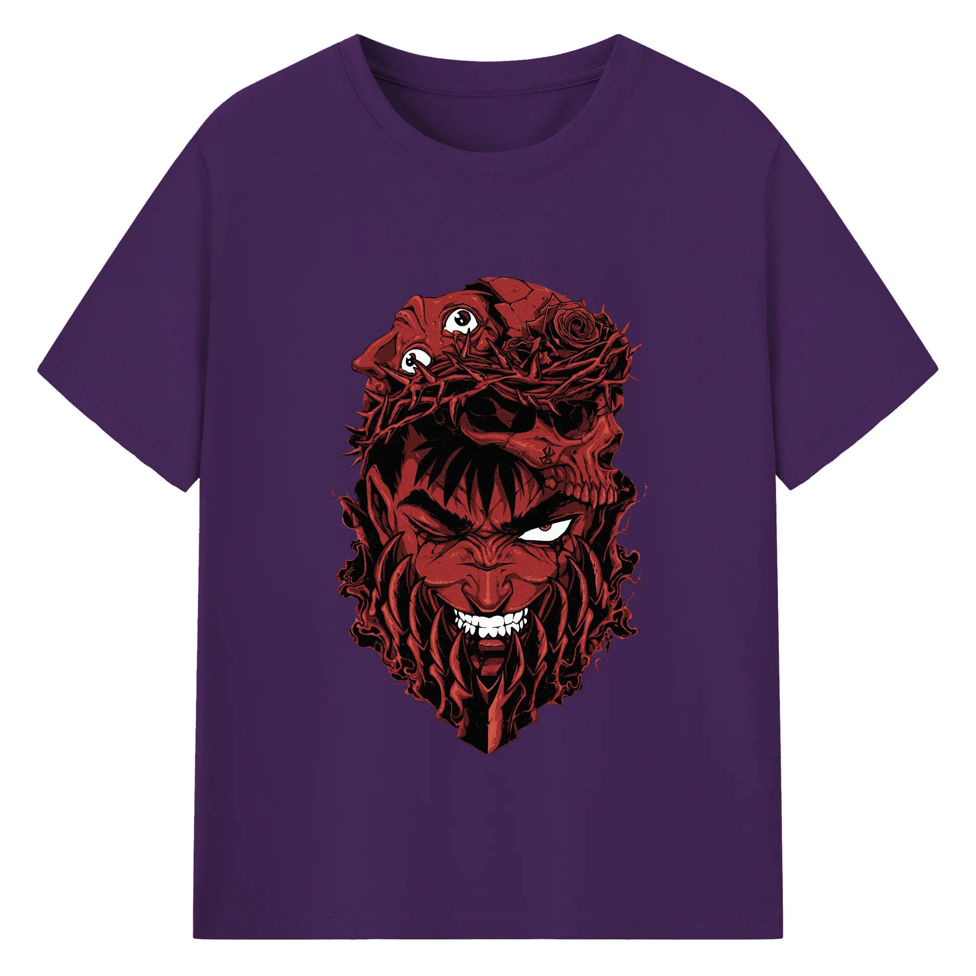 Berserk Guts Dark Fantasy Gothic Red Art DIY - 180g Cotton T-Shirt With Front Heat Transfer Print – Soft, Lightweight, Fitted Design – Comfortable Casual Wear For Sports & Everyday Use