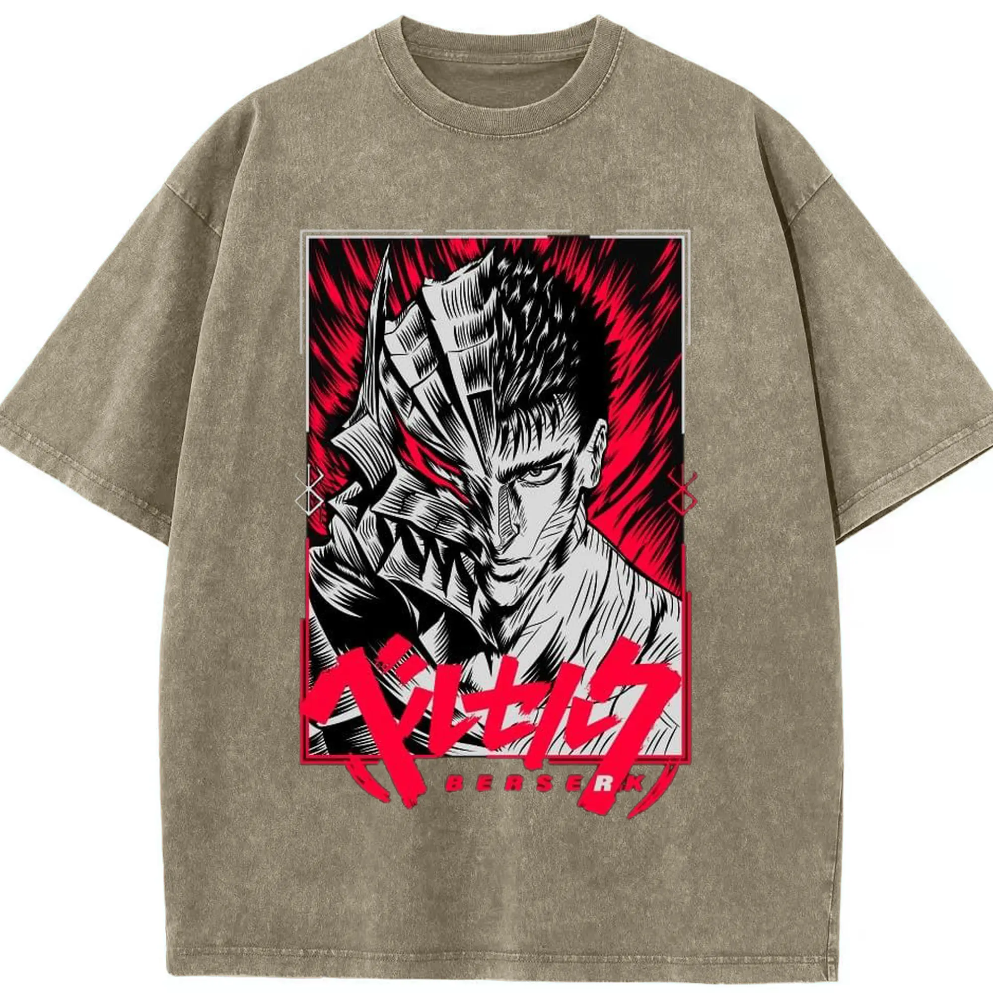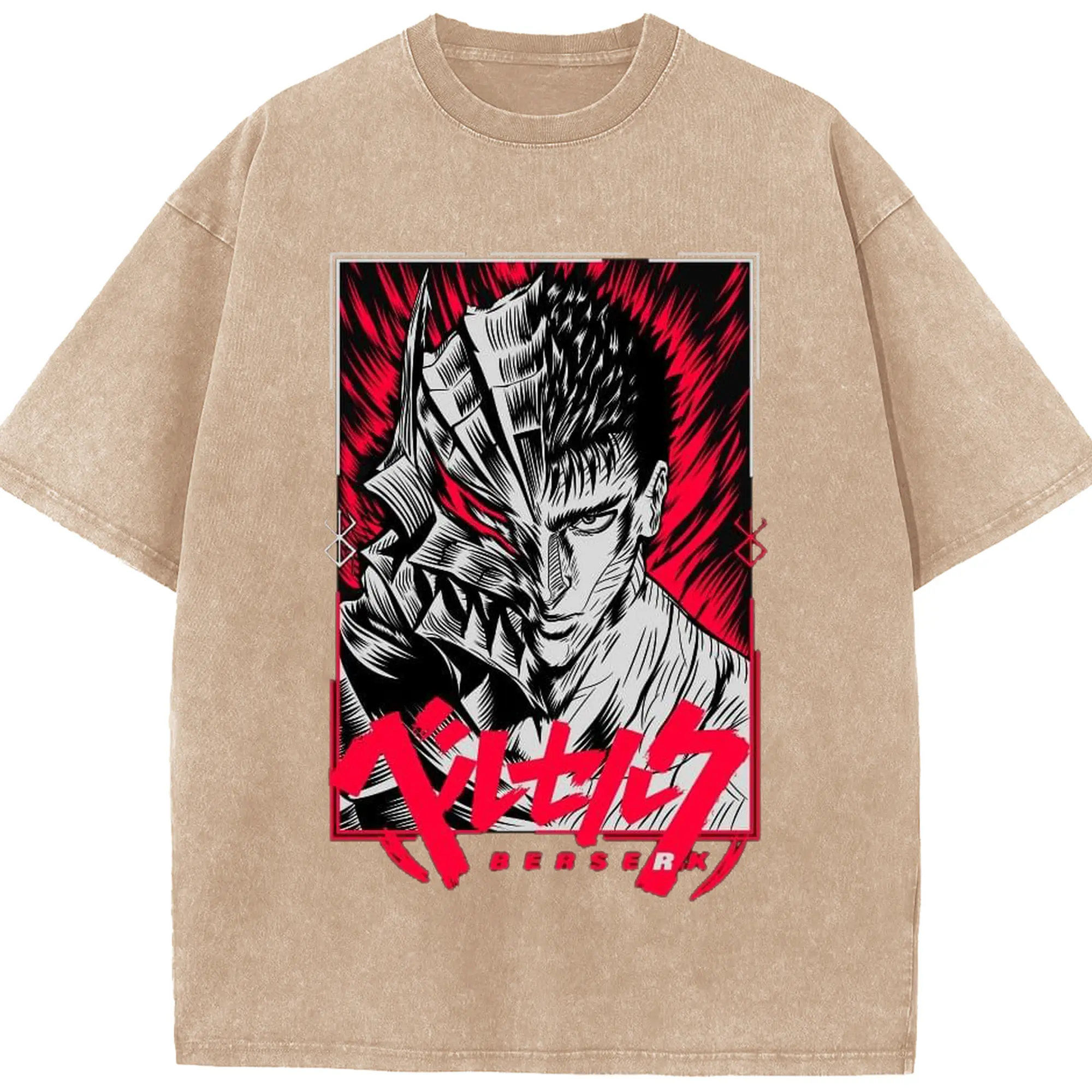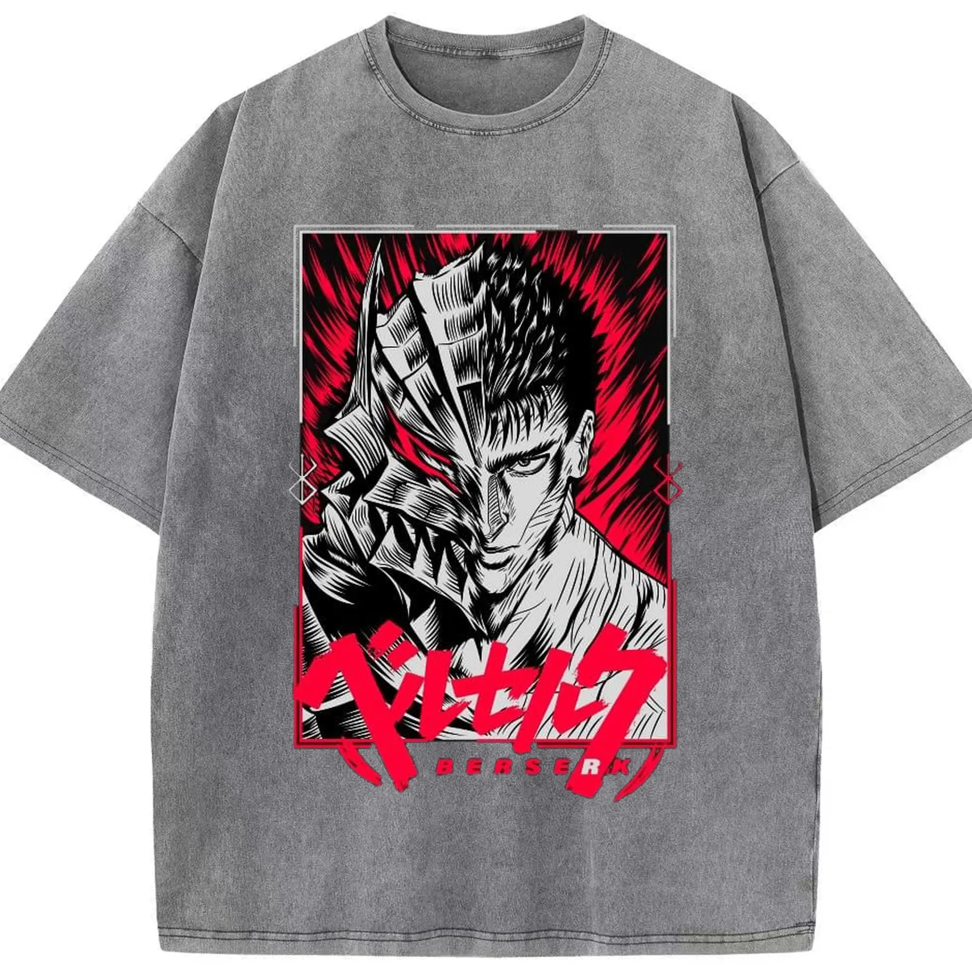 Berserk Guts Inverted Punk Dark Fantasy DIY - Washed Vintage Look 230g Cotton Oversized T-Shirt With Front Heat Transfer Print – Soft, Lightweight, Stylish Fit – Comfortable Casual Wear For Sports & Everyday Use