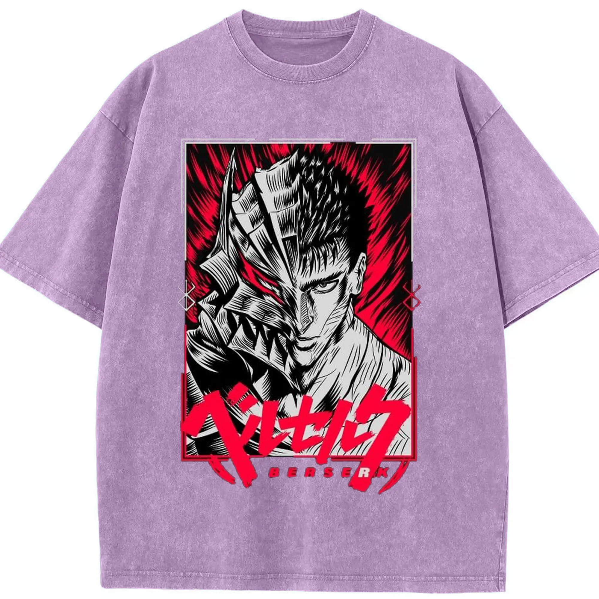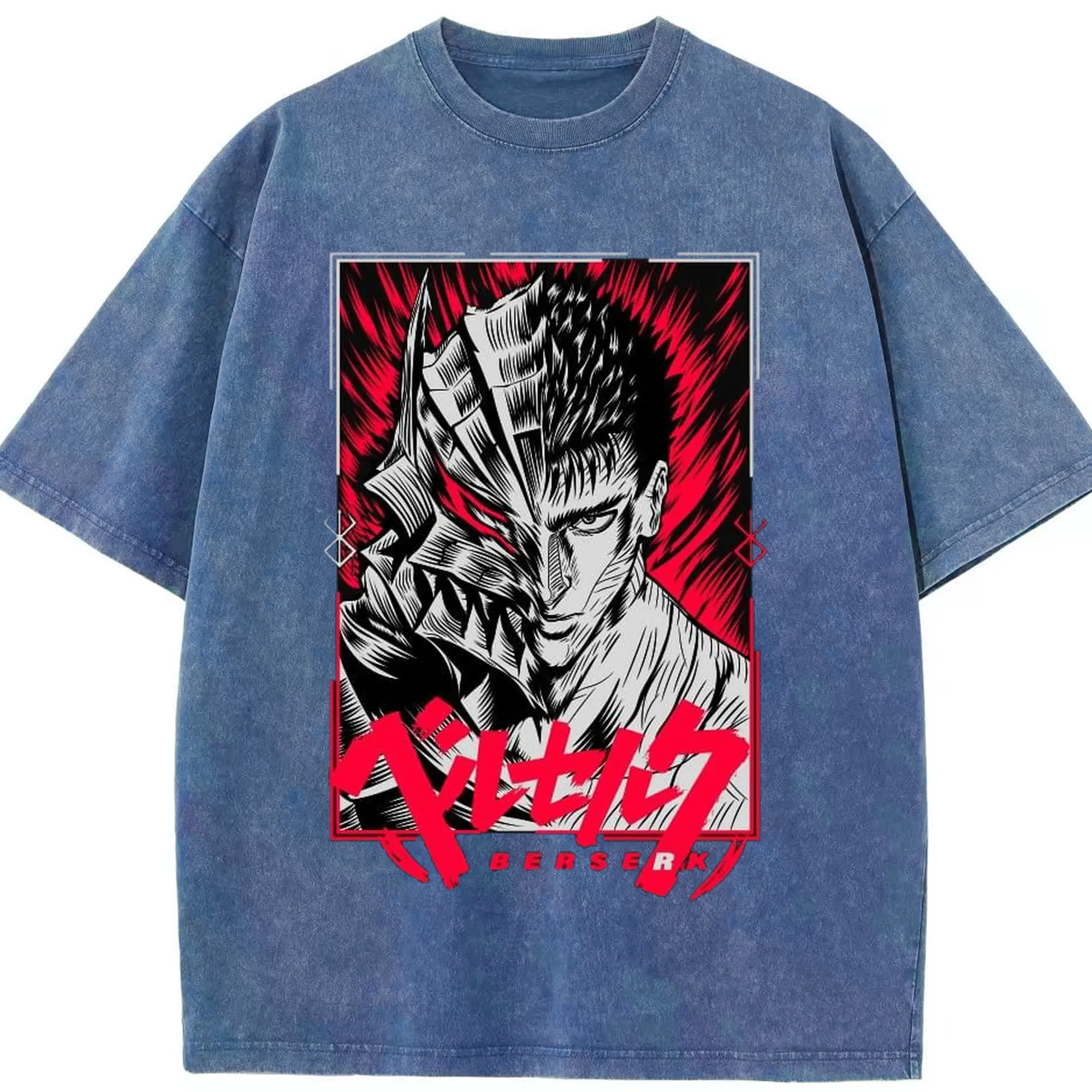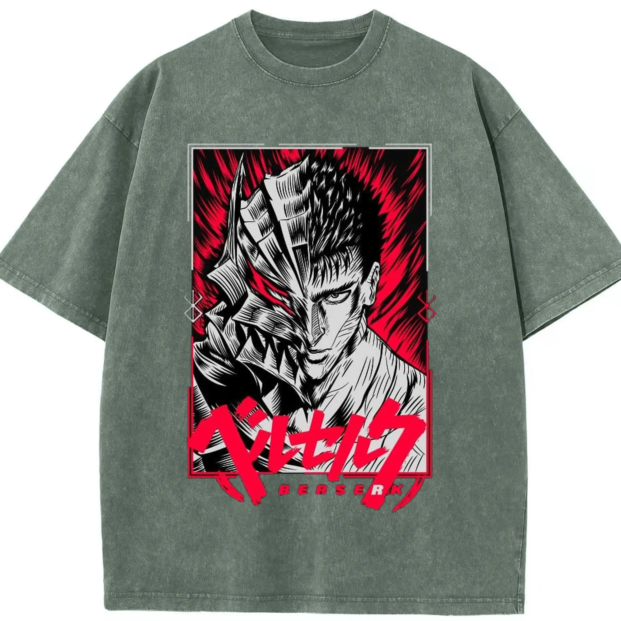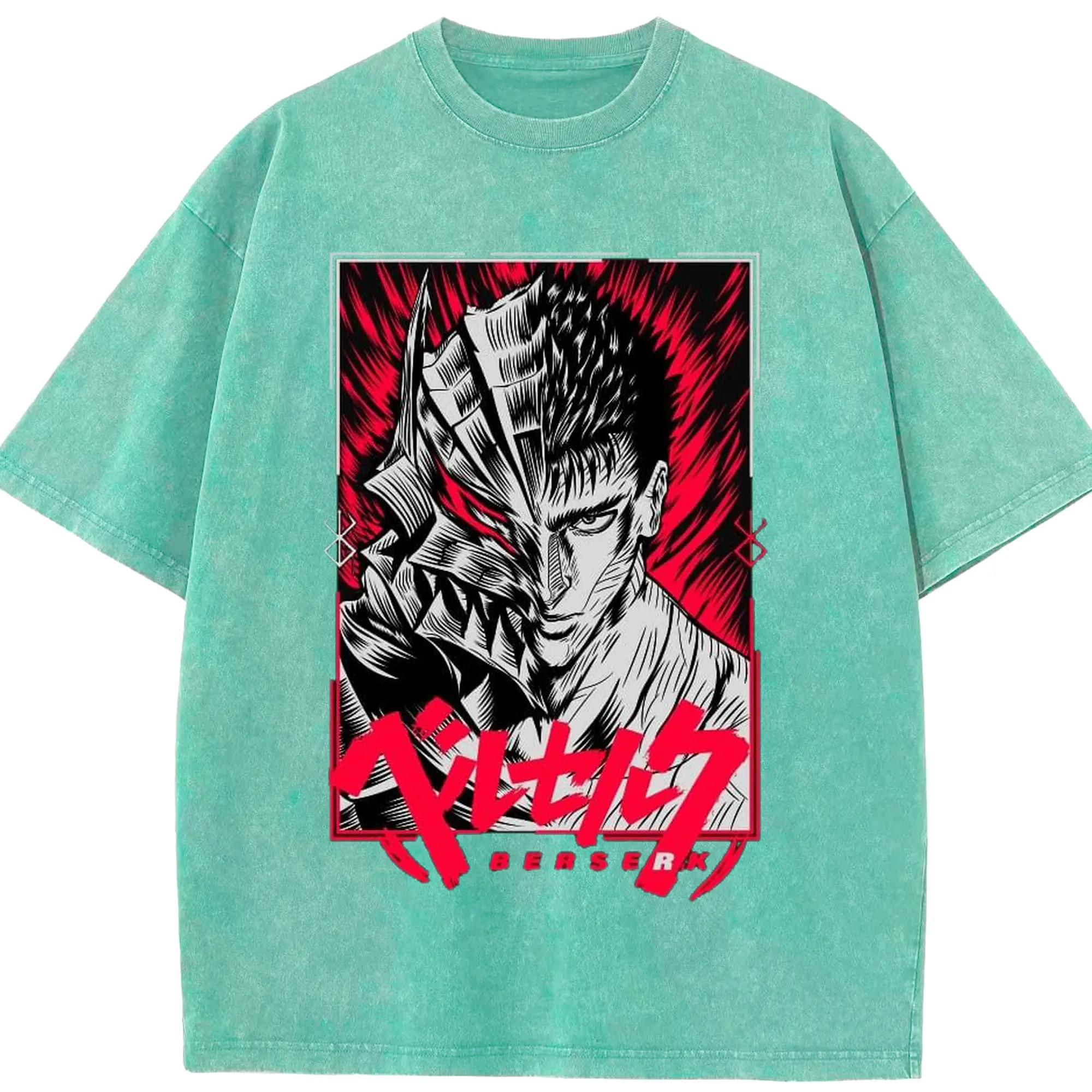 Berserk Guts Inverted Punk Dark Fantasy DIY - Washed Vintage Look 230g Cotton Oversized T-Shirt With Front Heat Transfer Print – Soft, Lightweight, Stylish Fit – Comfortable Casual Wear For Sports & Everyday Use