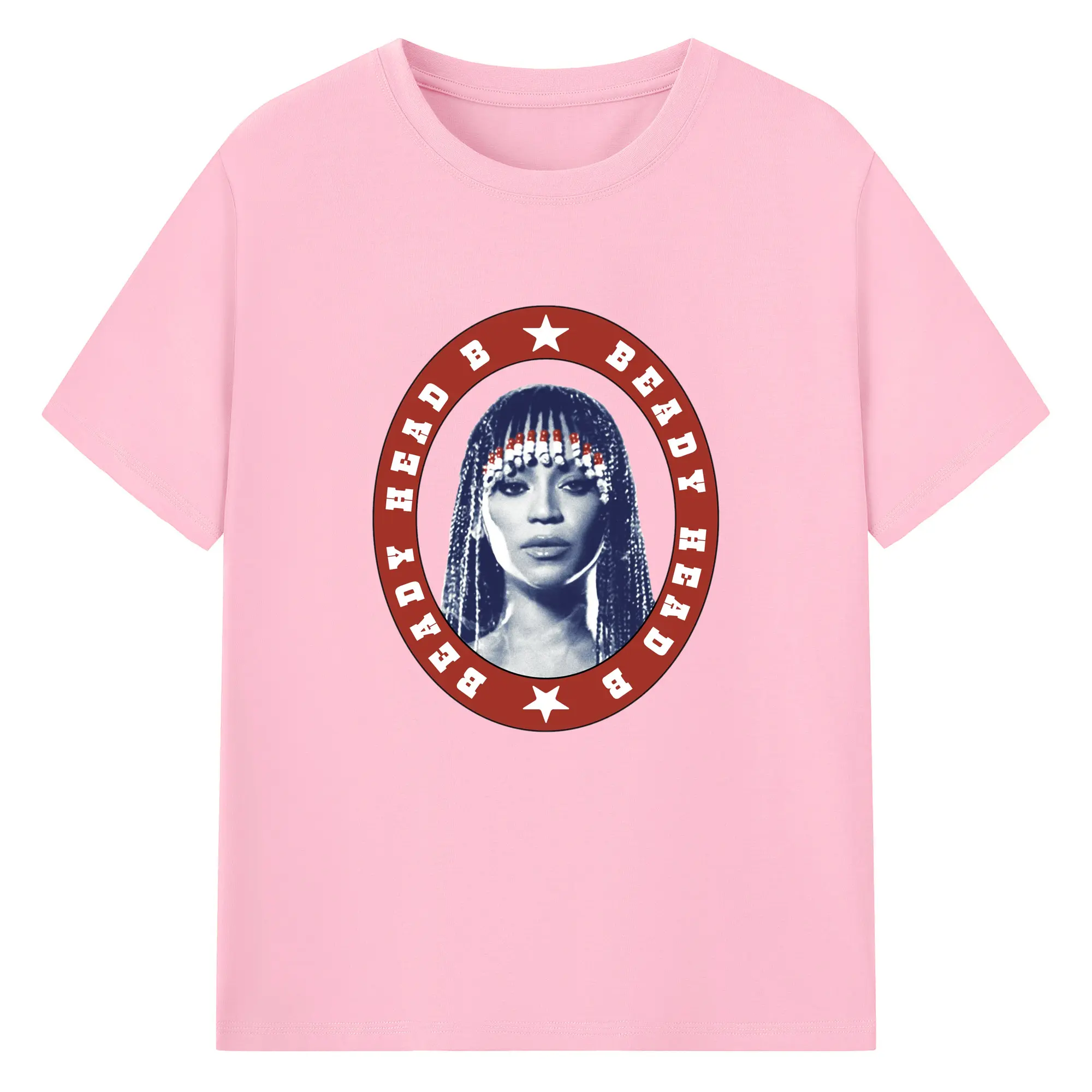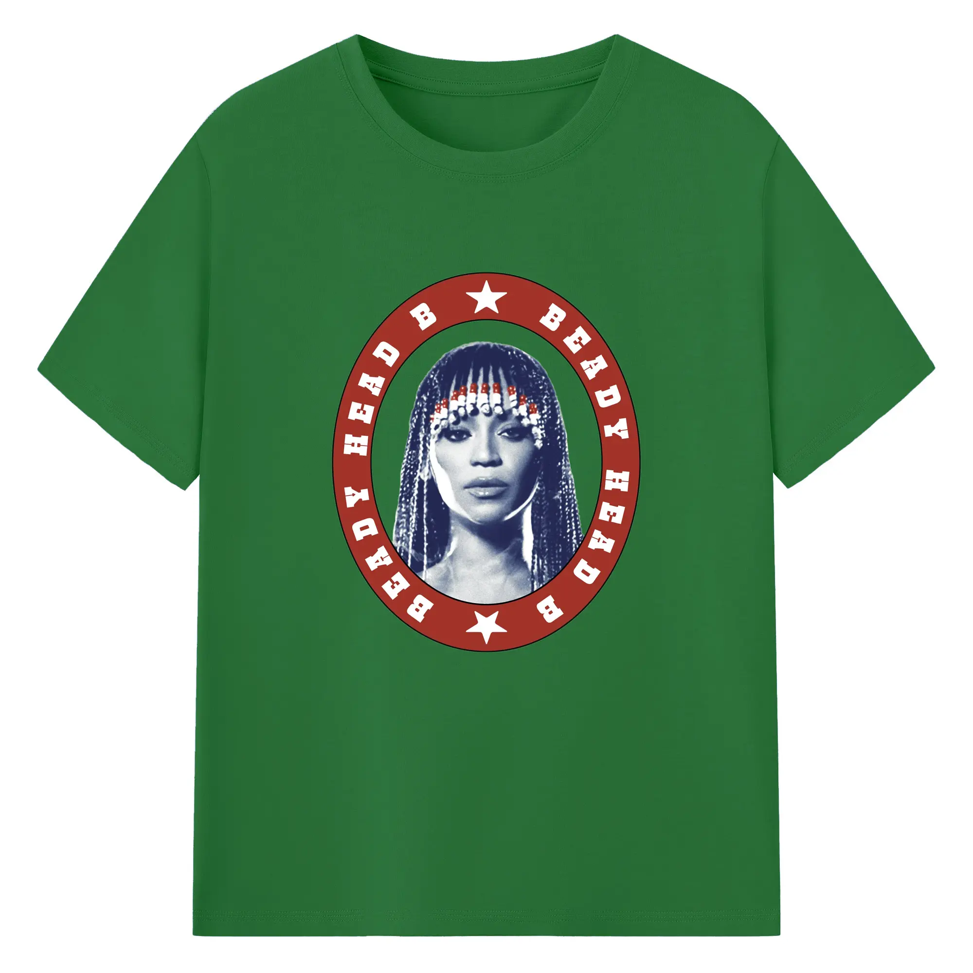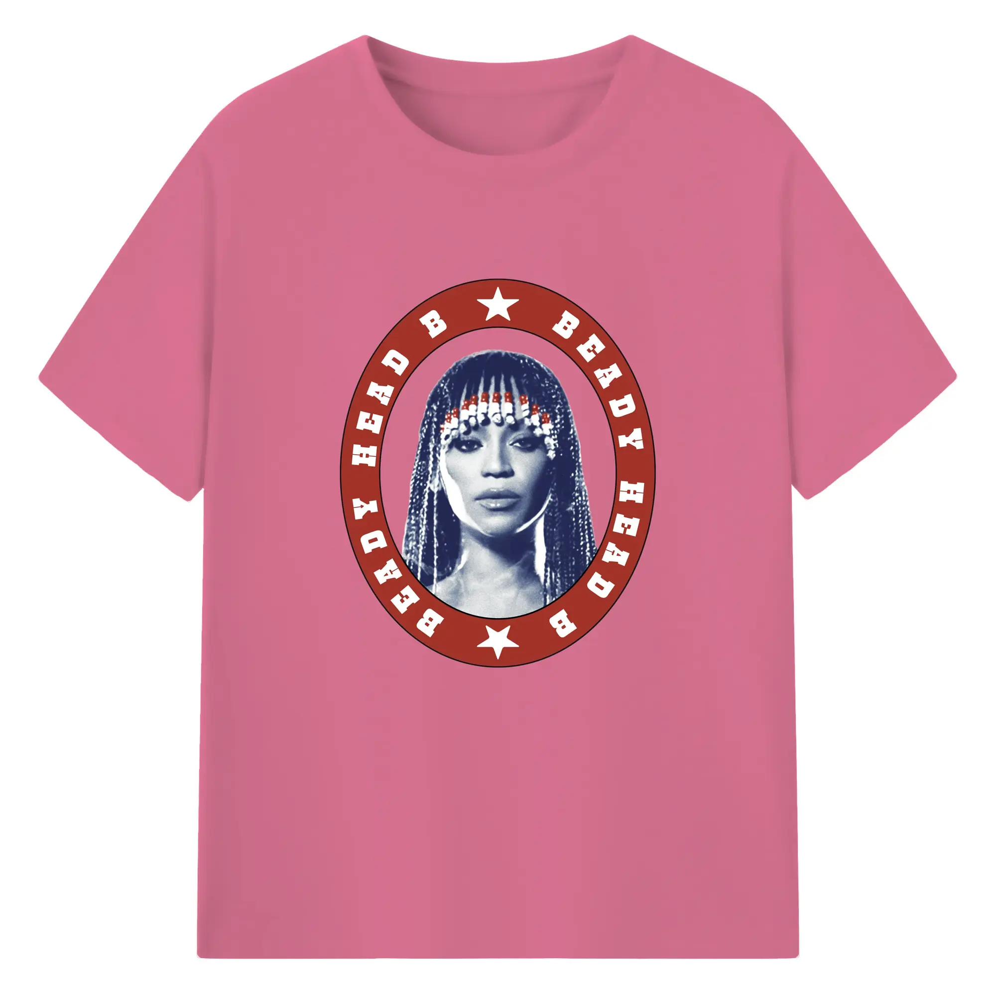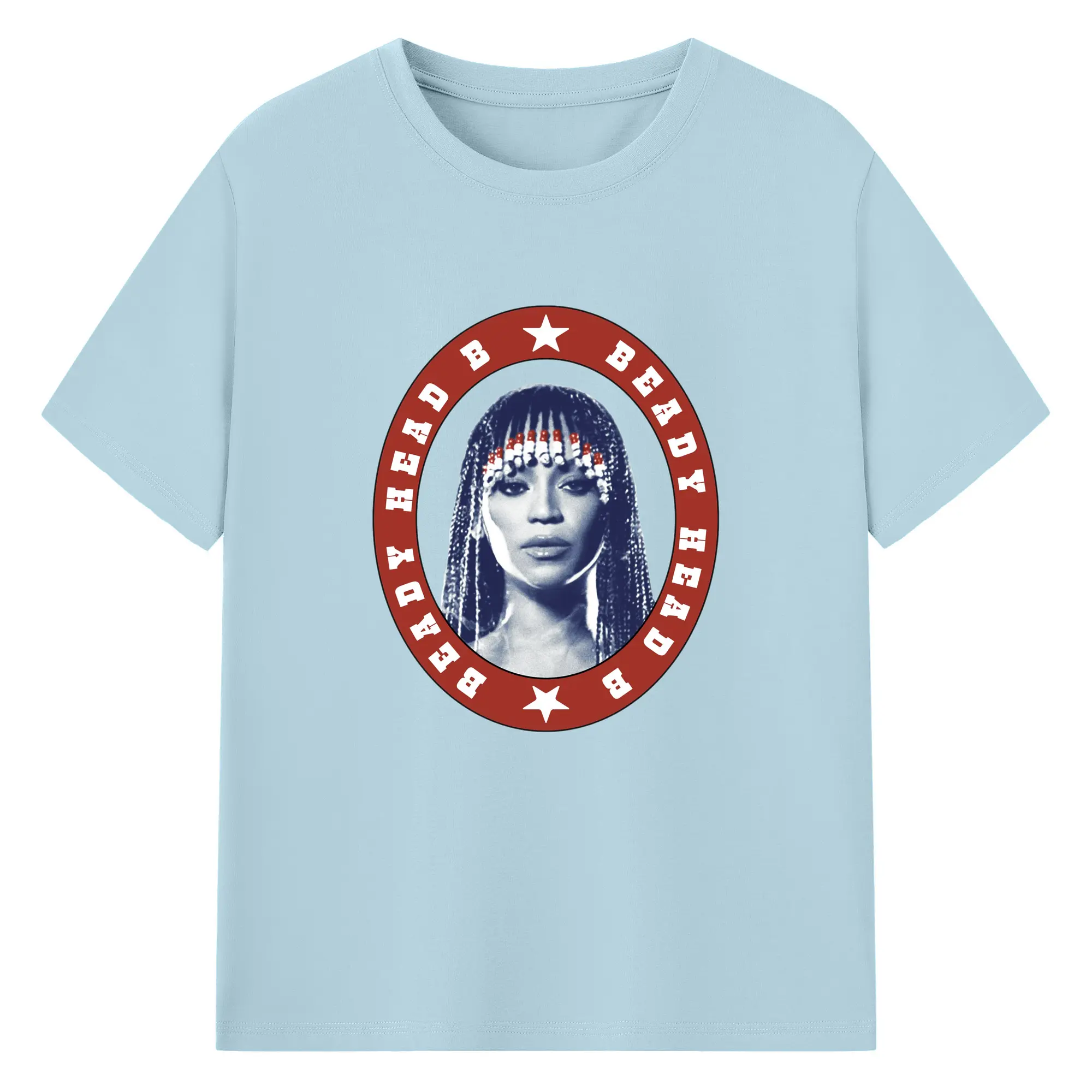 Beyoncé “BEADY HEAD B” Cultural Art DIY - 180g Cotton T-Shirt With Front Heat Transfer Print – Soft, Lightweight, Fitted Design – Comfortable Casual Wear For Sports & Everyday Use