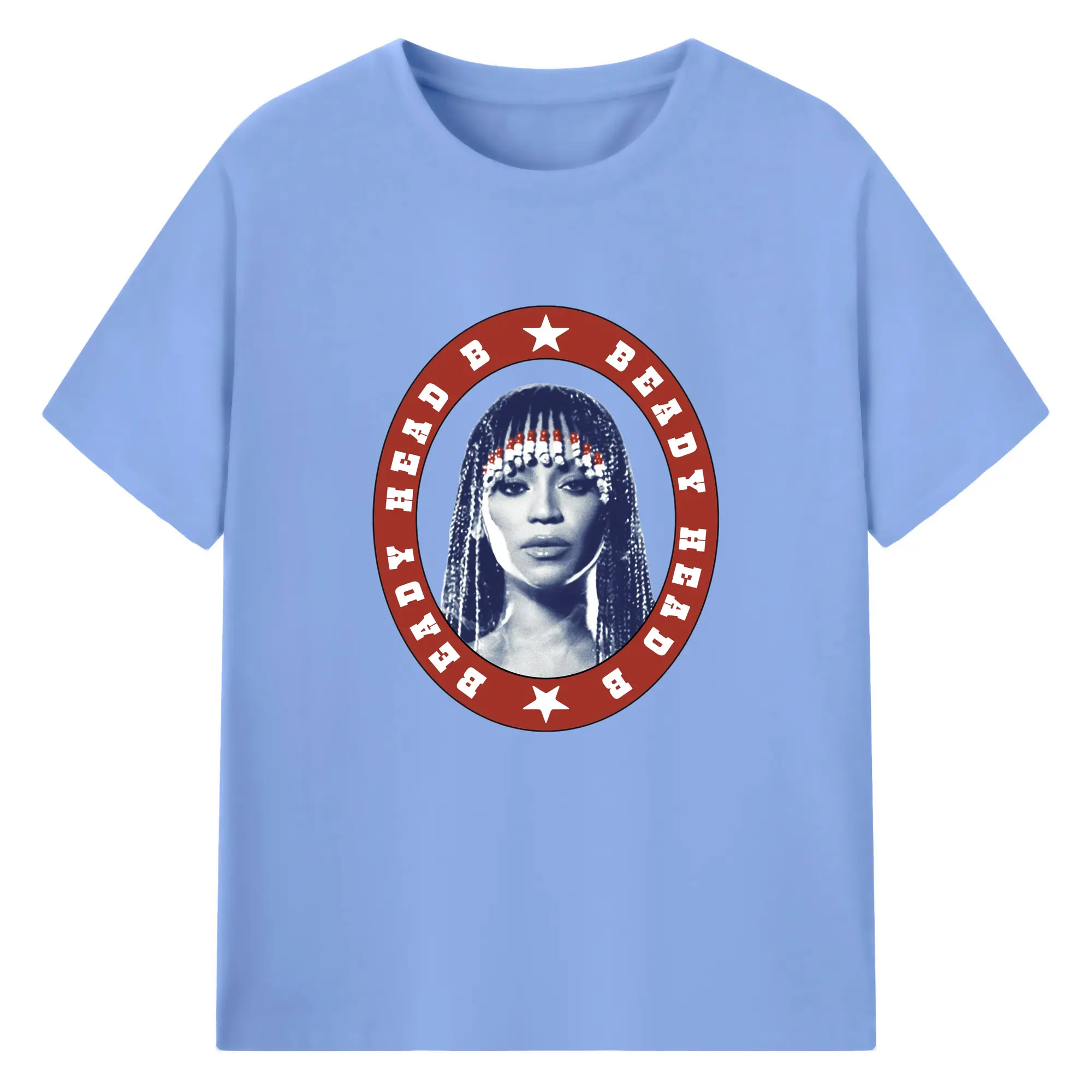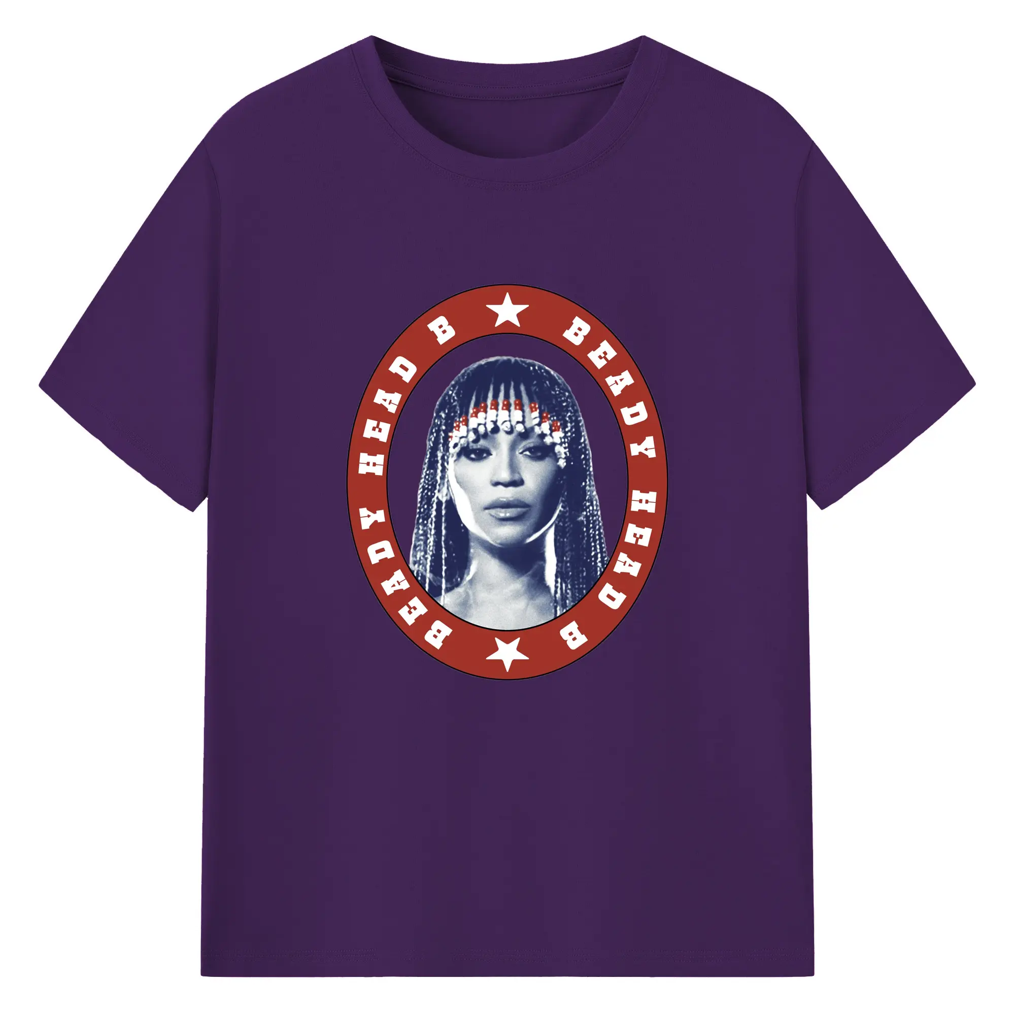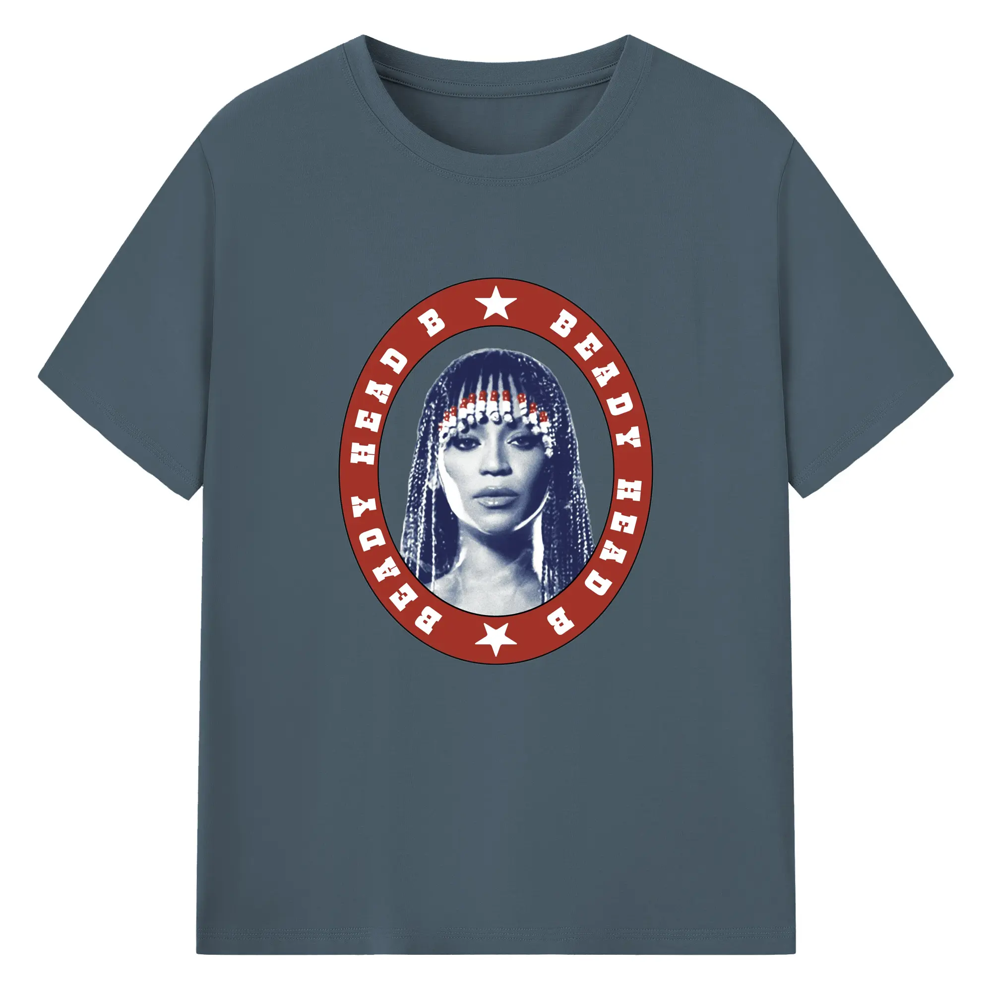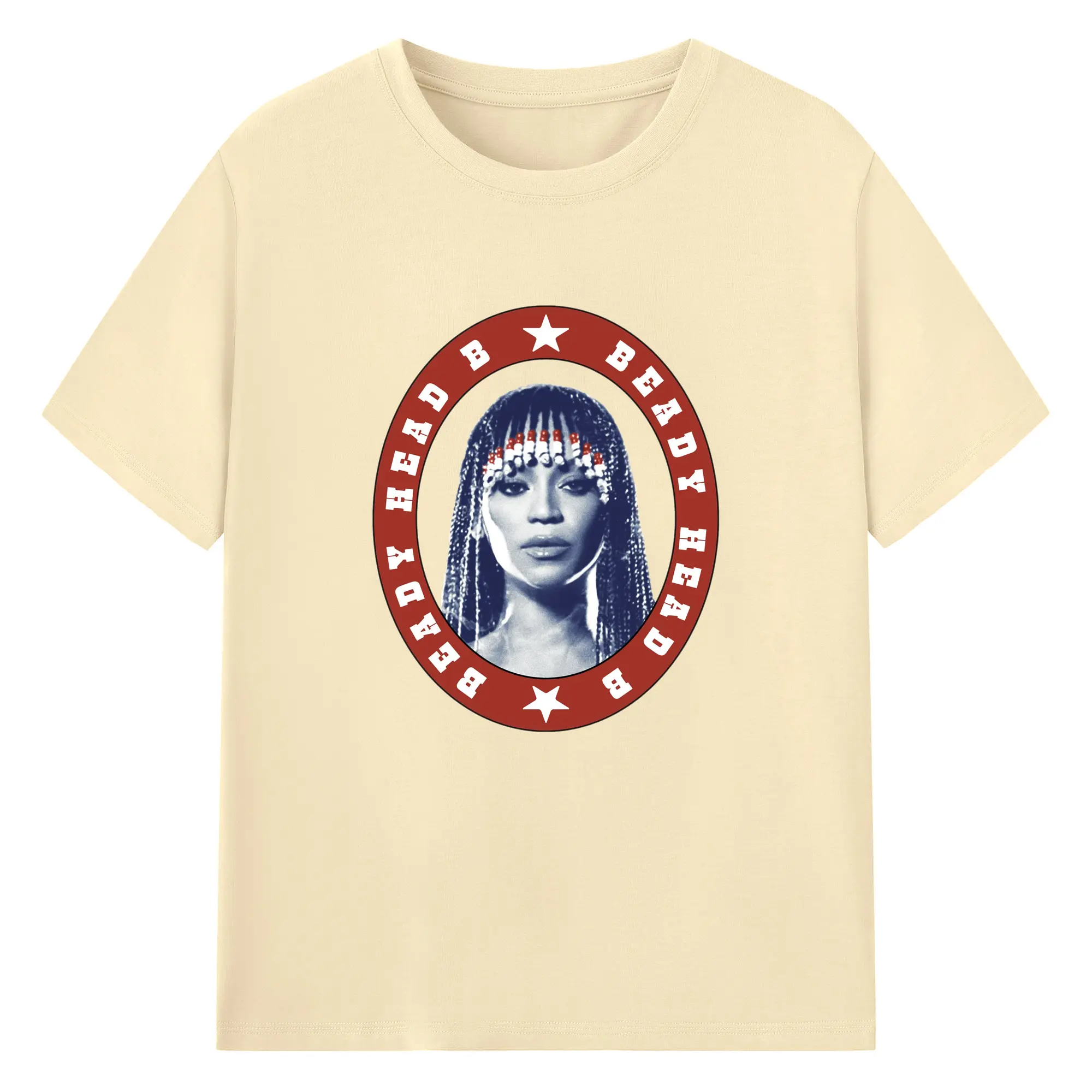 Beyoncé “BEADY HEAD B” Cultural Art DIY - 180g Cotton T-Shirt With Front Heat Transfer Print – Soft, Lightweight, Fitted Design – Comfortable Casual Wear For Sports & Everyday Use
