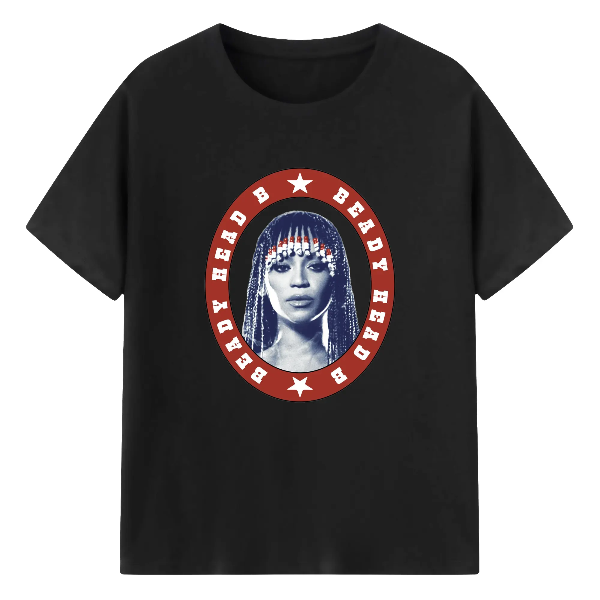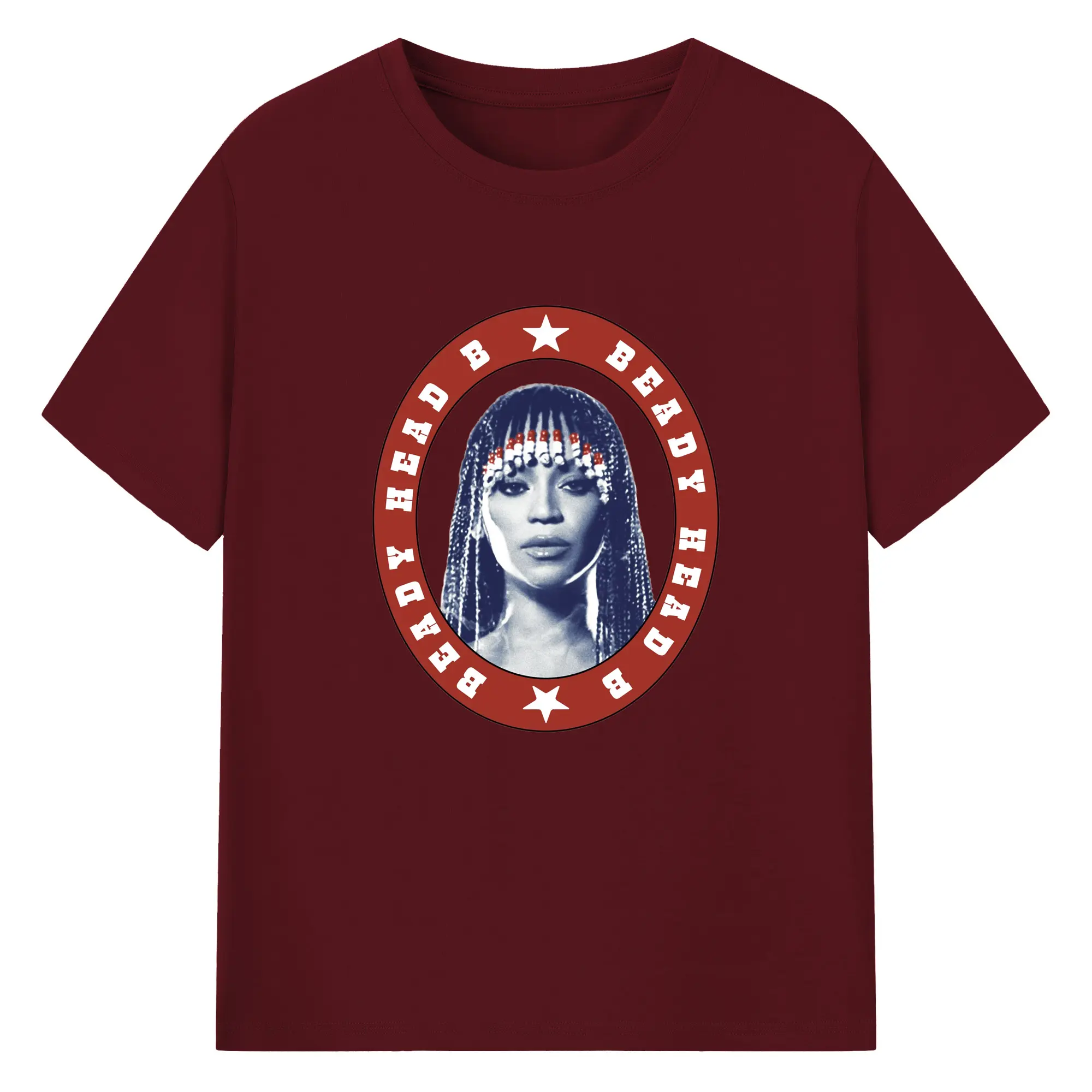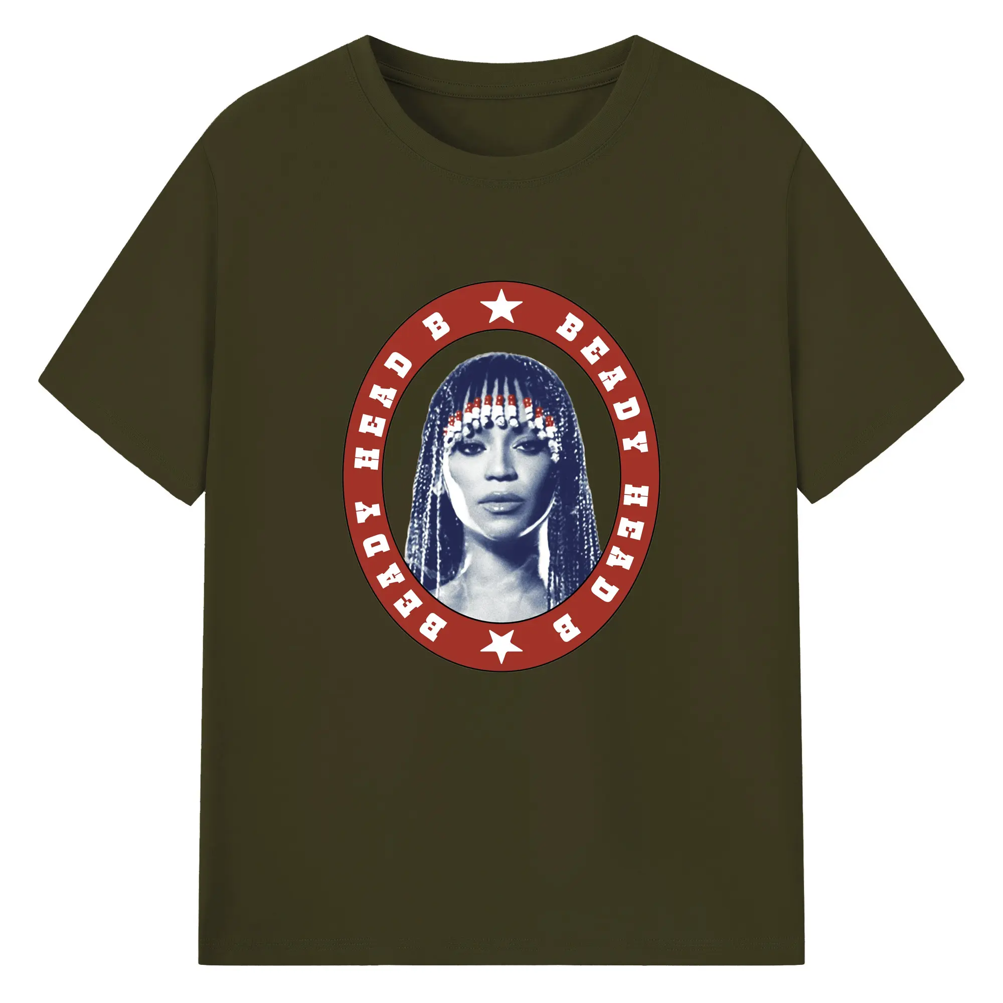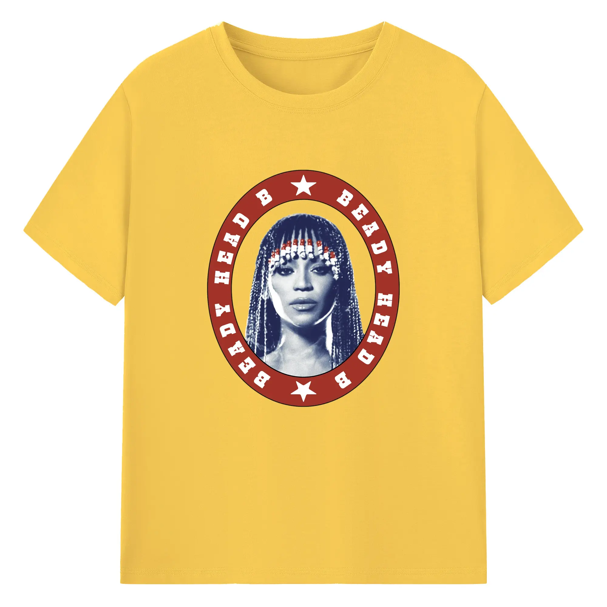 Beyoncé “BEADY HEAD B” Cultural Art DIY - 180g Cotton T-Shirt With Front Heat Transfer Print – Soft, Lightweight, Fitted Design – Comfortable Casual Wear For Sports & Everyday Use