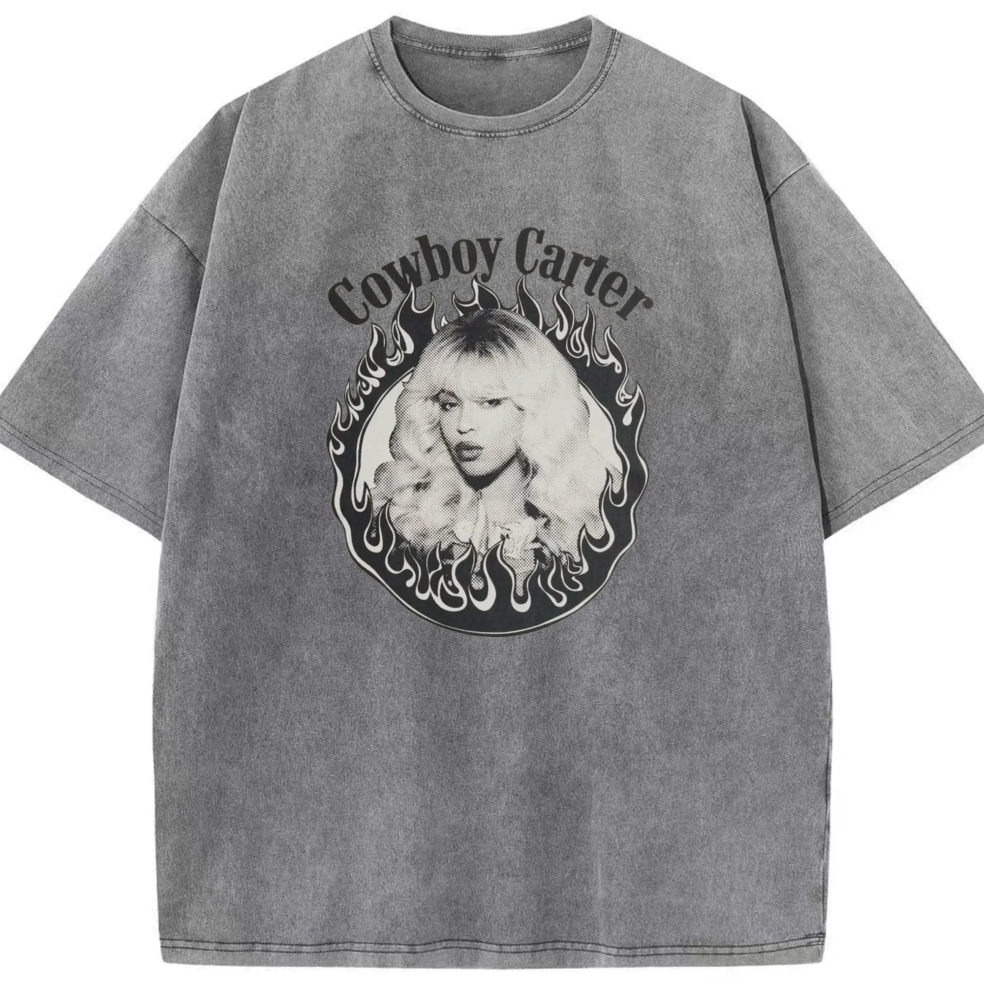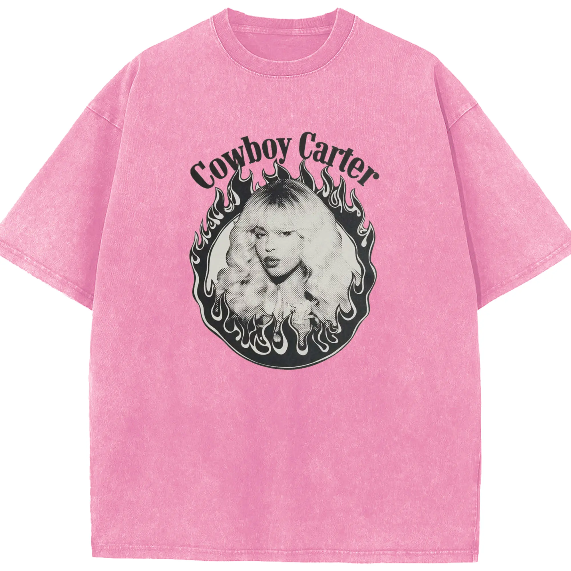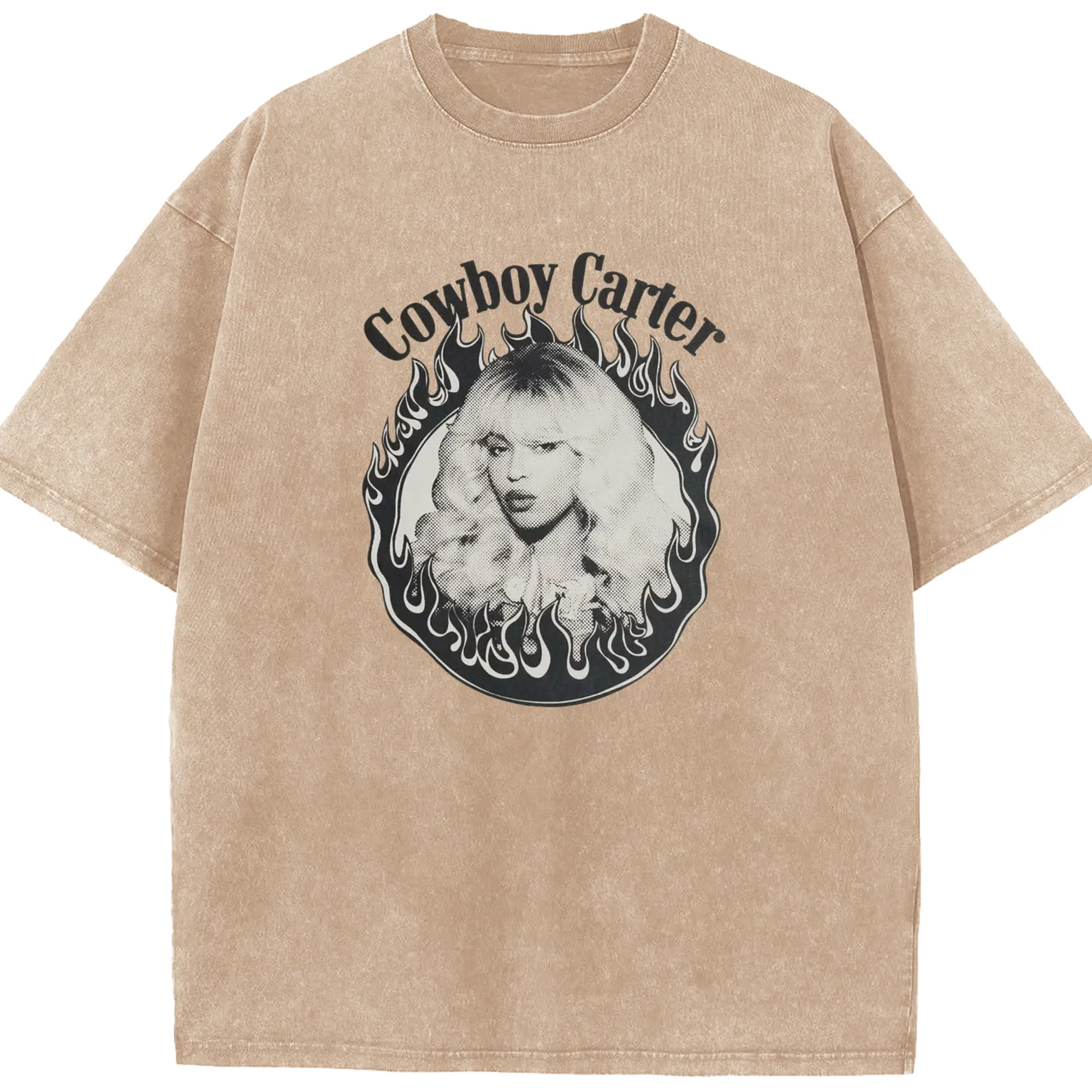 Beyoncé “Cowboy Carter” Dark Trend Aesthetics DIY - Washed Vintage Look 230g Cotton Oversized T-Shirt With Front Heat Transfer Print – Soft, Lightweight, Stylish Fit – Comfortable Casual Wear For Sports & Everyday Use