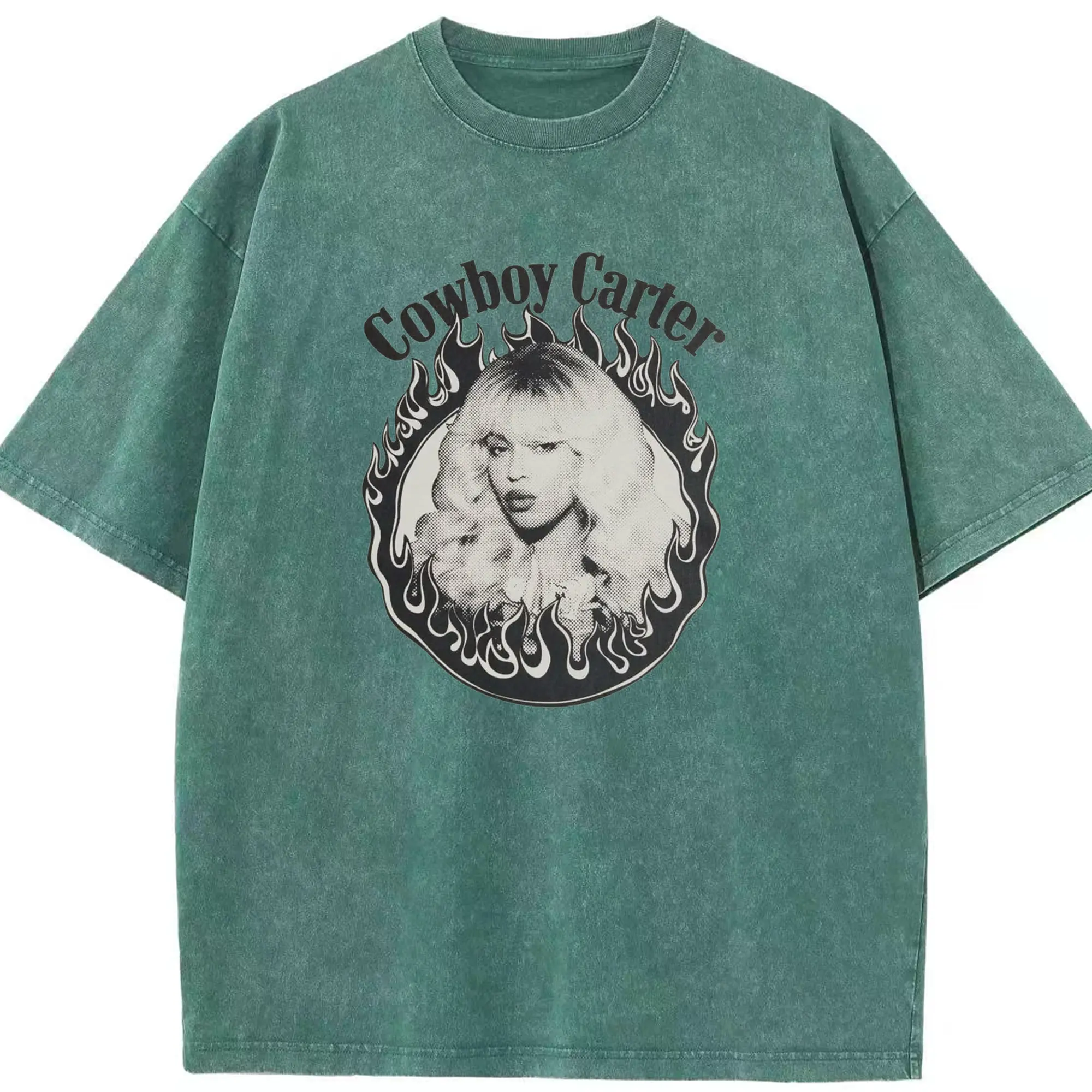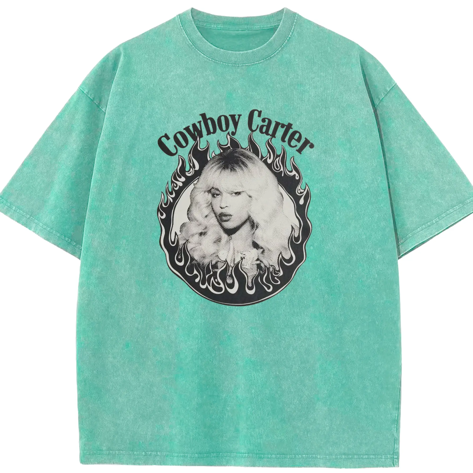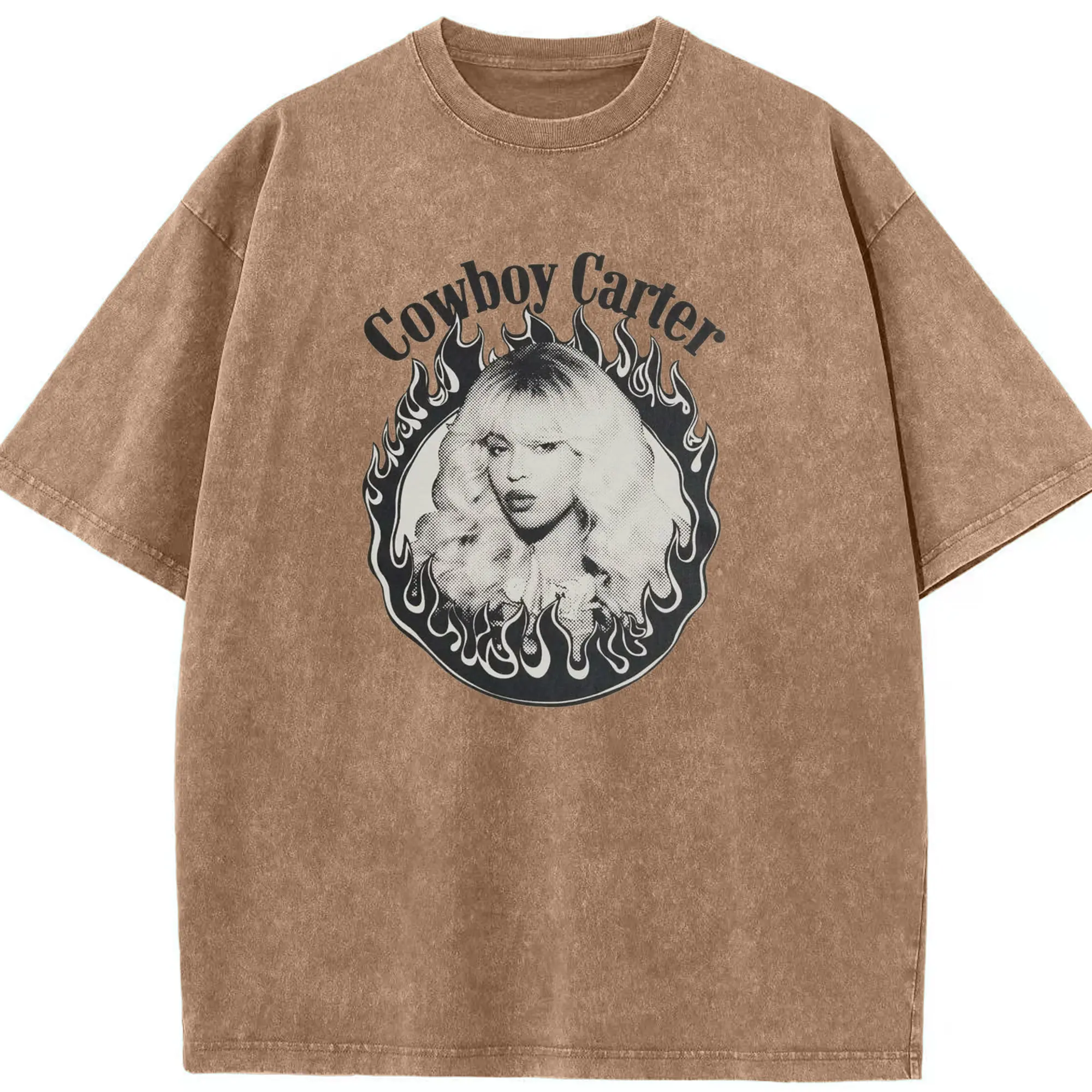 Beyoncé “Cowboy Carter” Dark Trend Aesthetics DIY - Washed Vintage Look 230g Cotton Oversized T-Shirt With Front Heat Transfer Print – Soft, Lightweight, Stylish Fit – Comfortable Casual Wear For Sports & Everyday Use