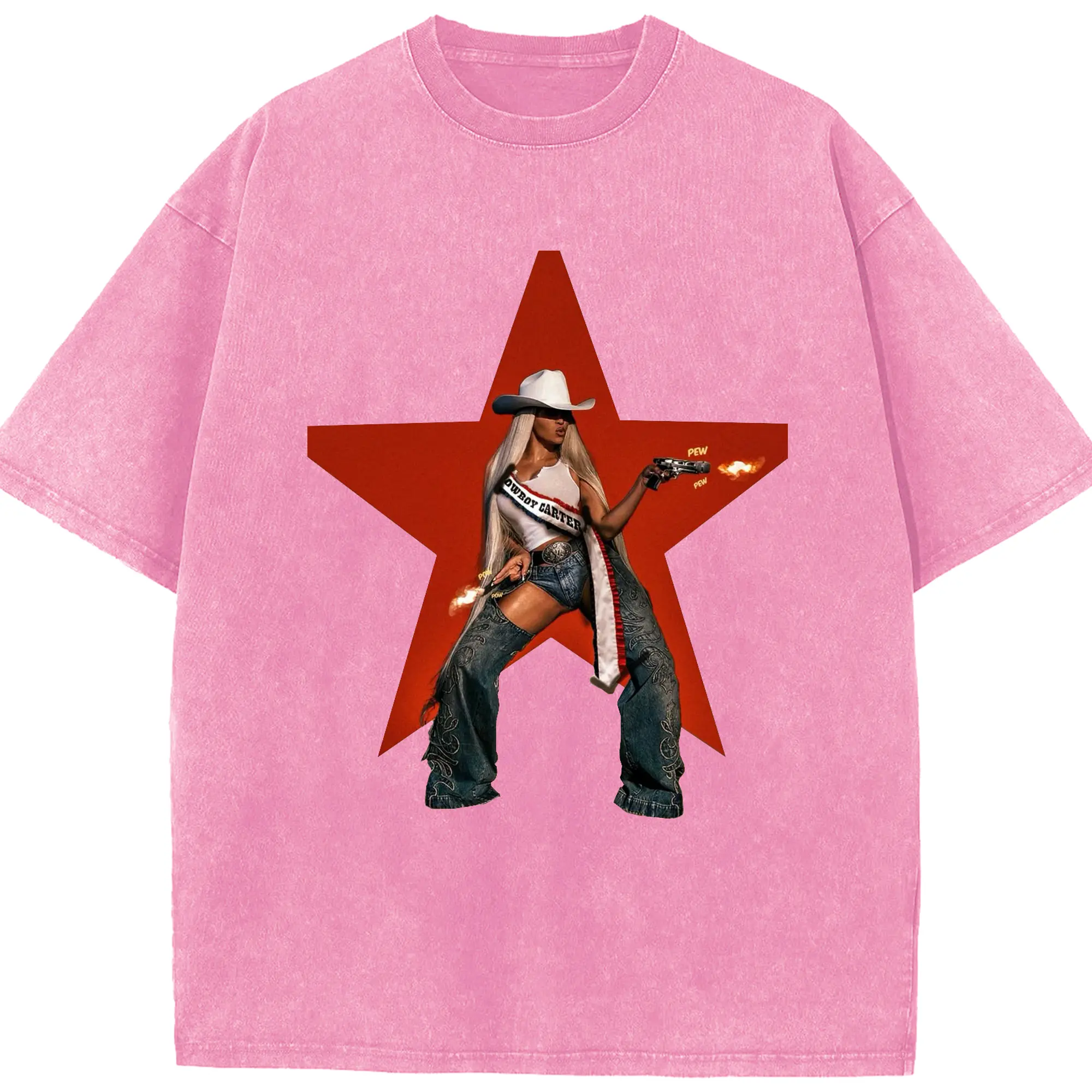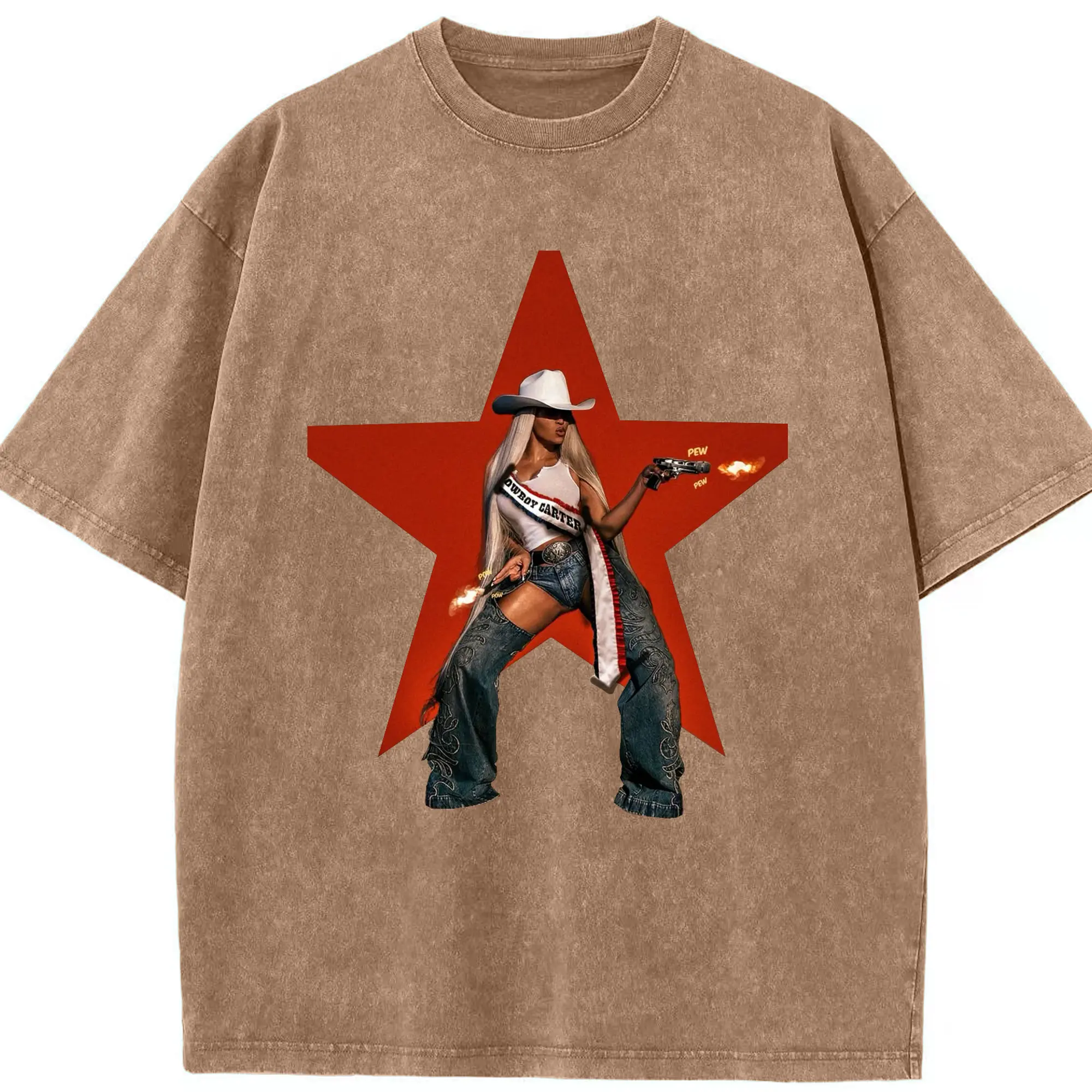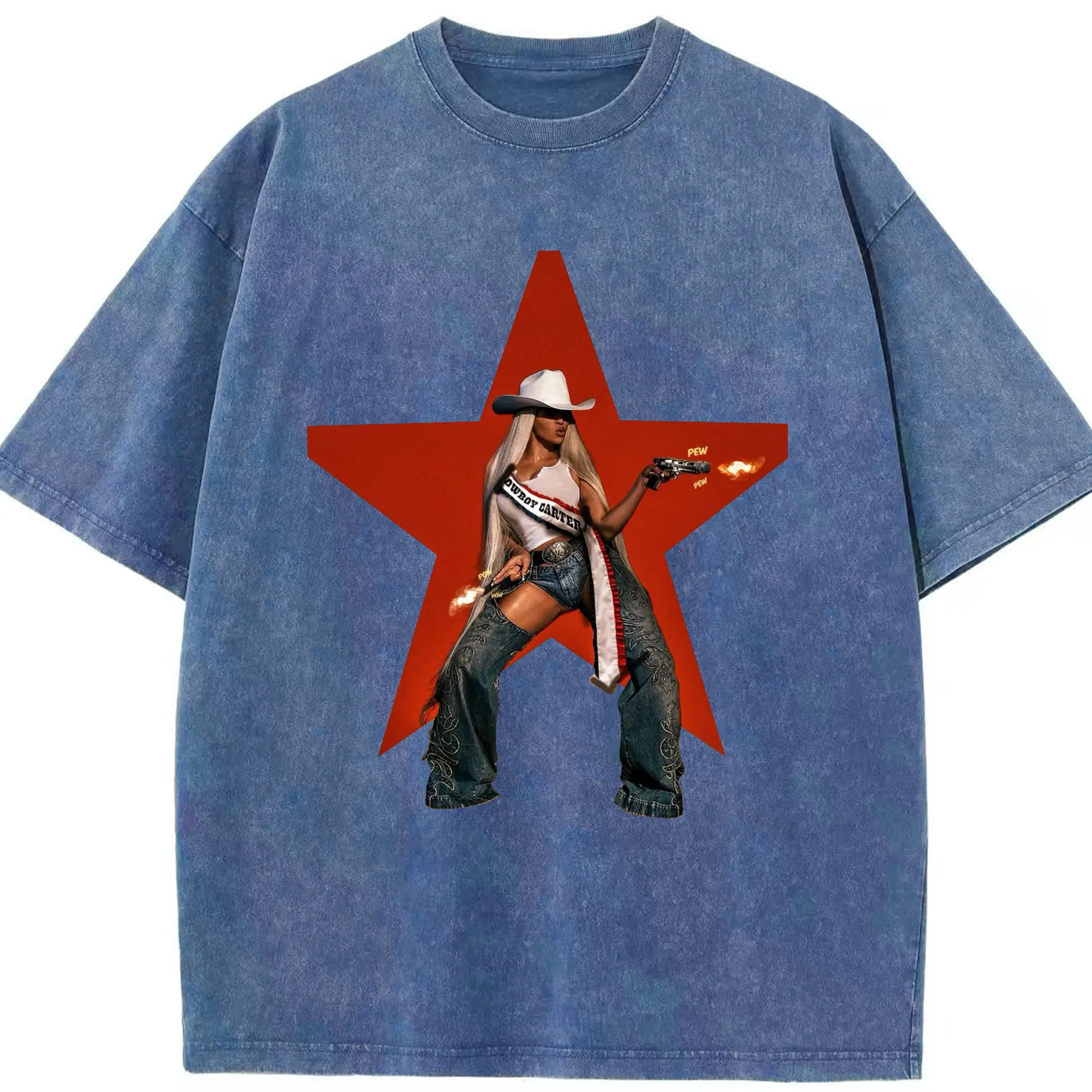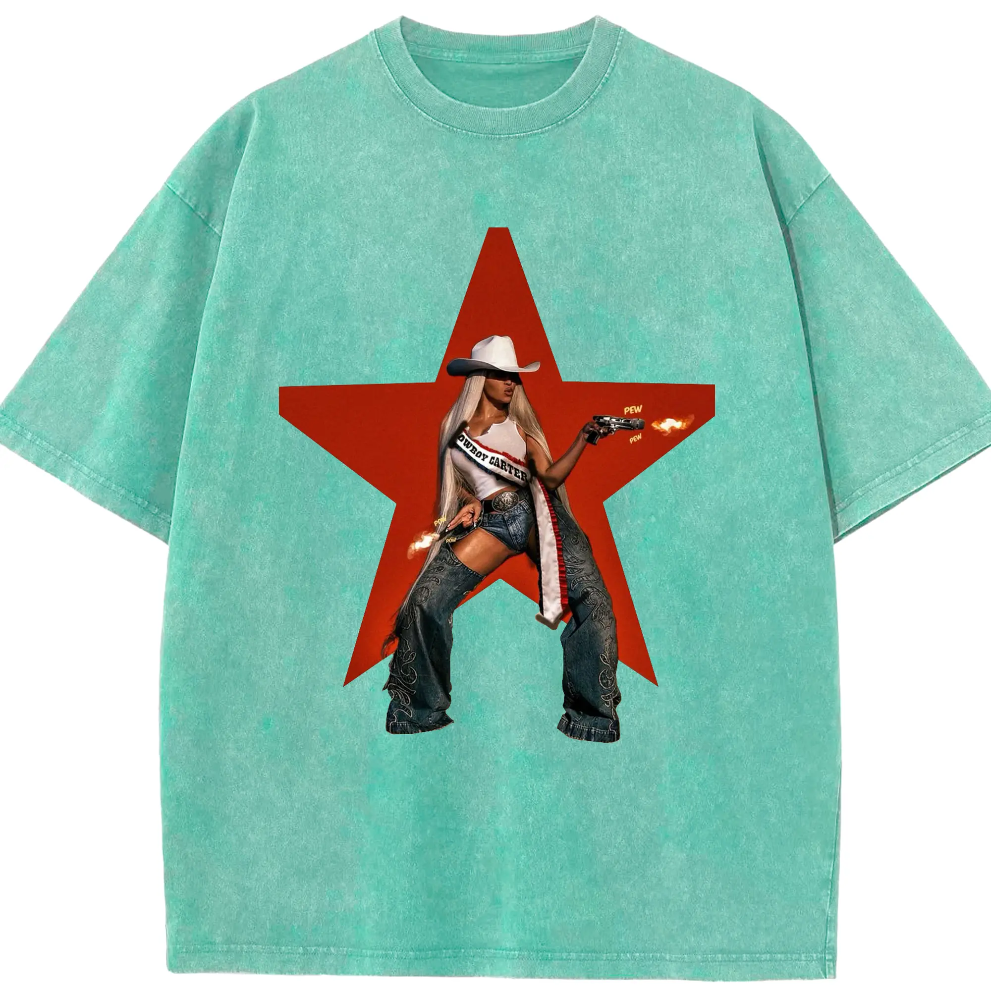 Beyoncé Cowboy Carter Western Country Music DIY - Washed Vintage Look 230g Cotton Oversized T-Shirt With Front Heat Transfer Print – Soft, Lightweight, Stylish Fit – Comfortable Casual Wear For Sports & Everyday Use