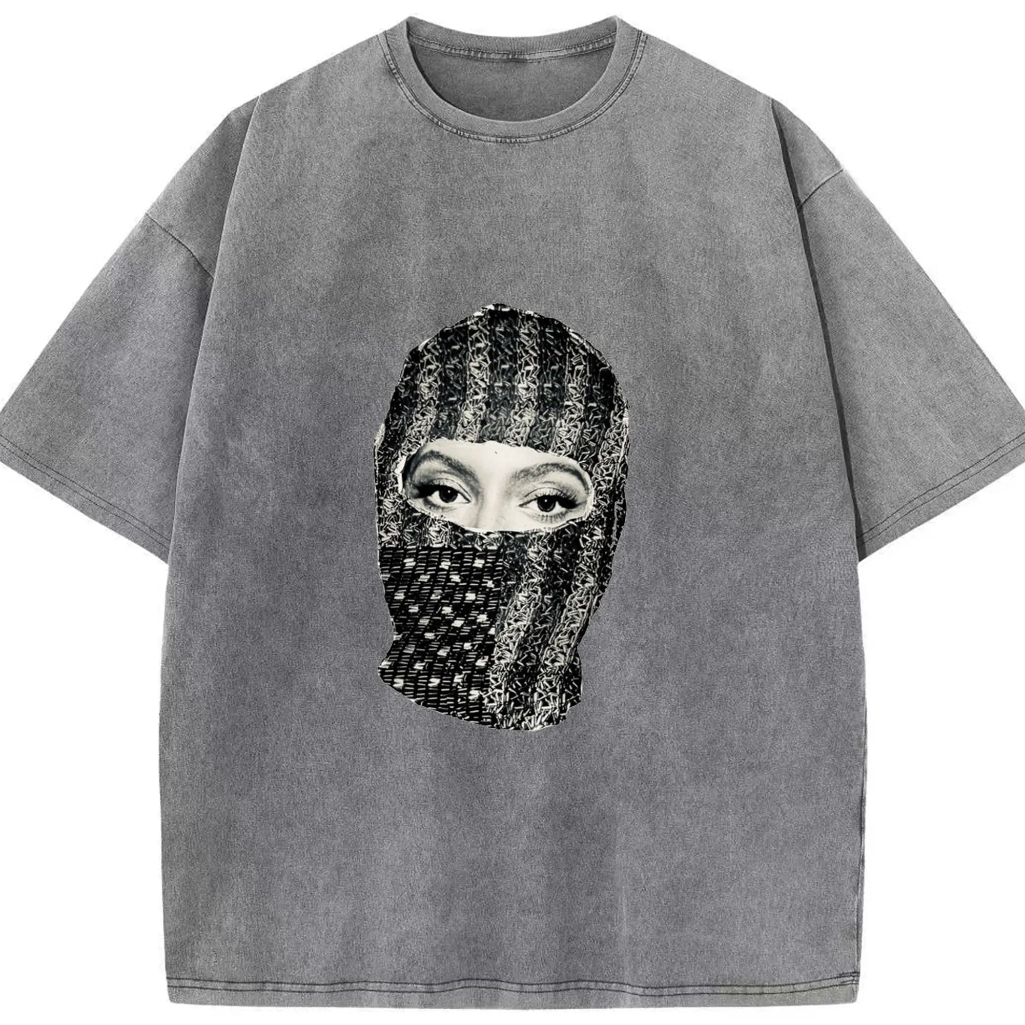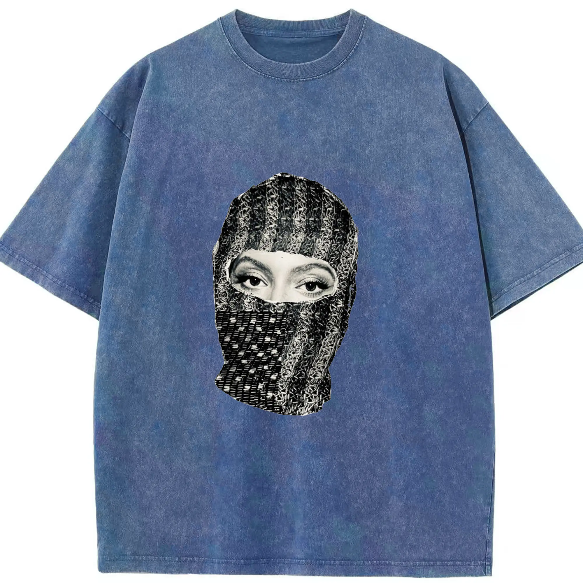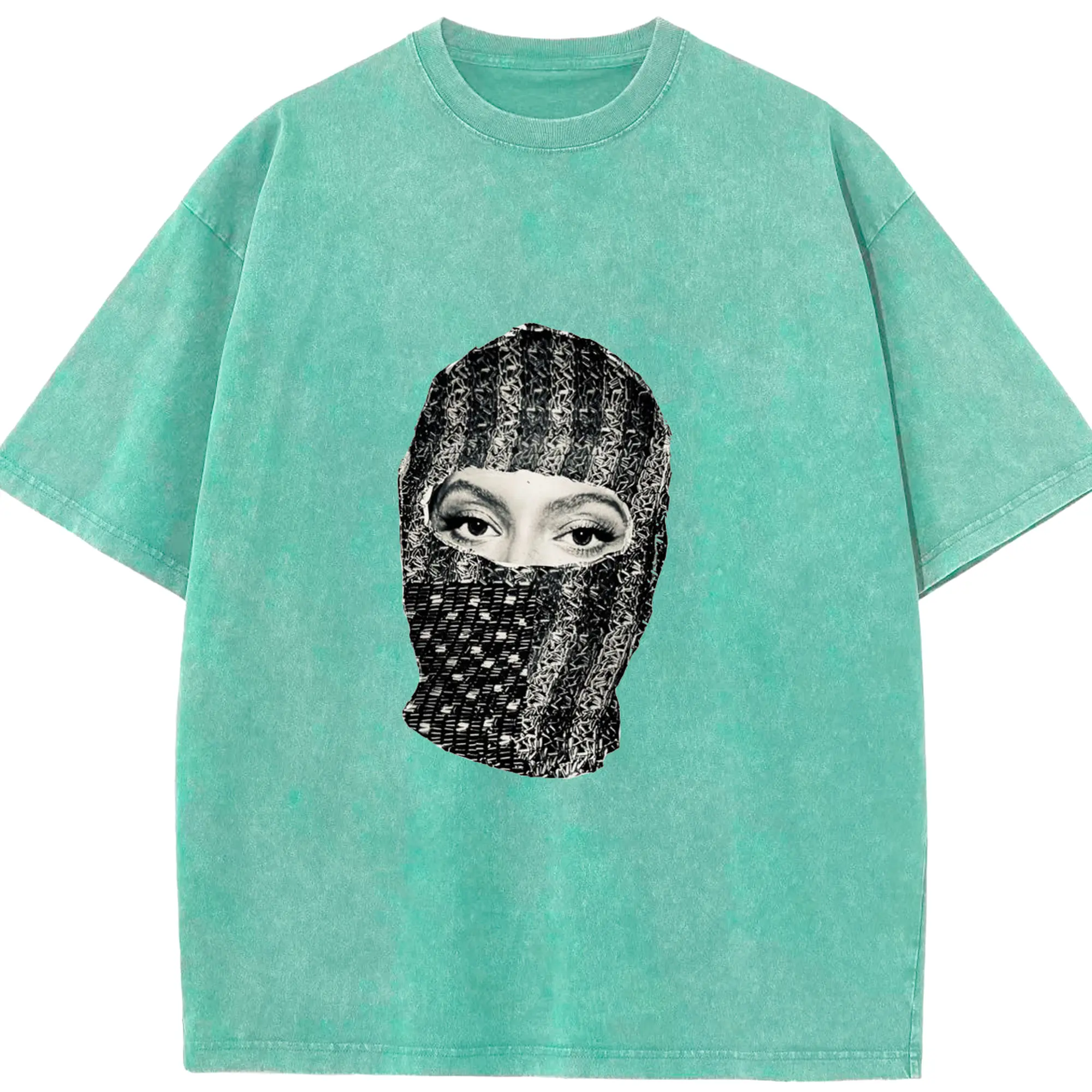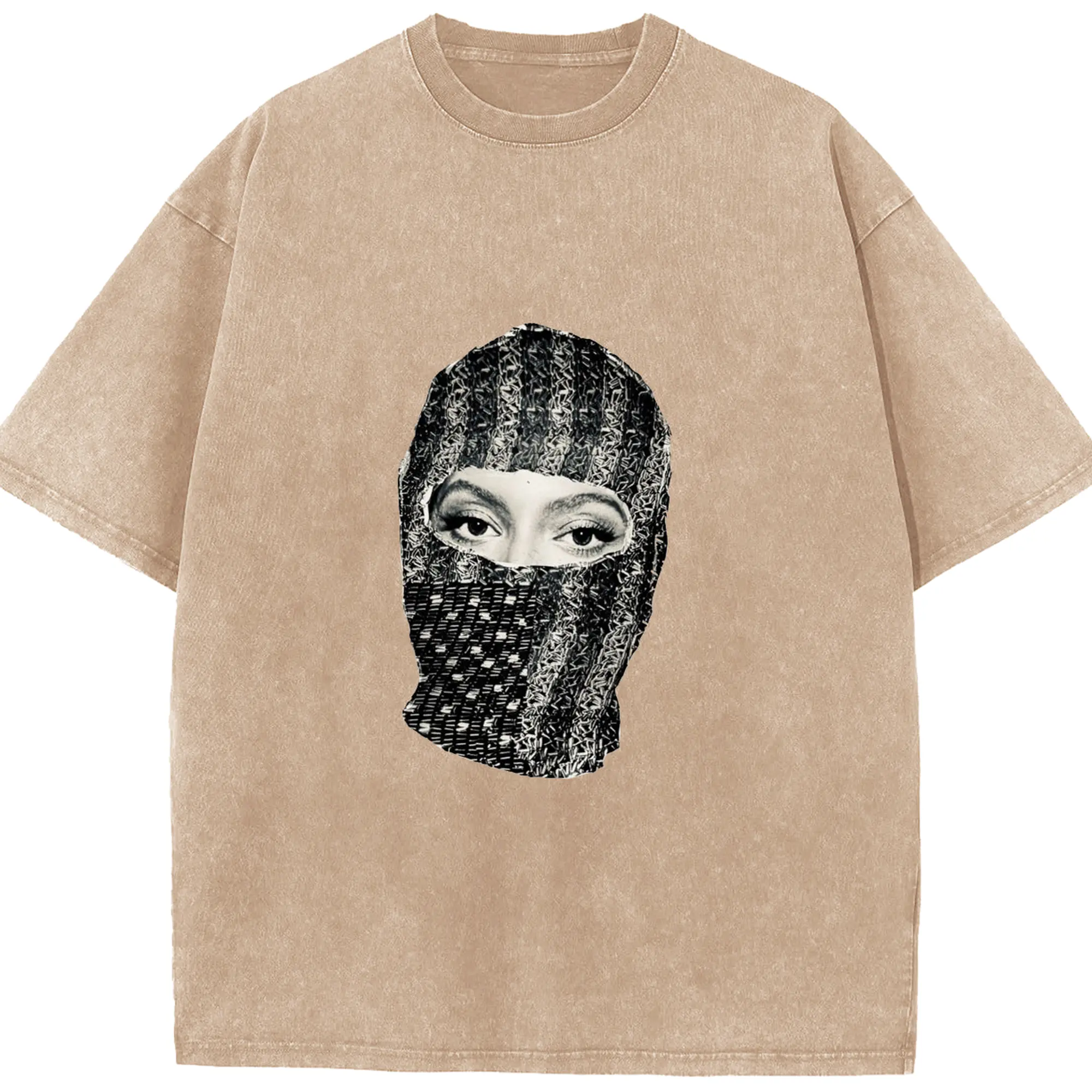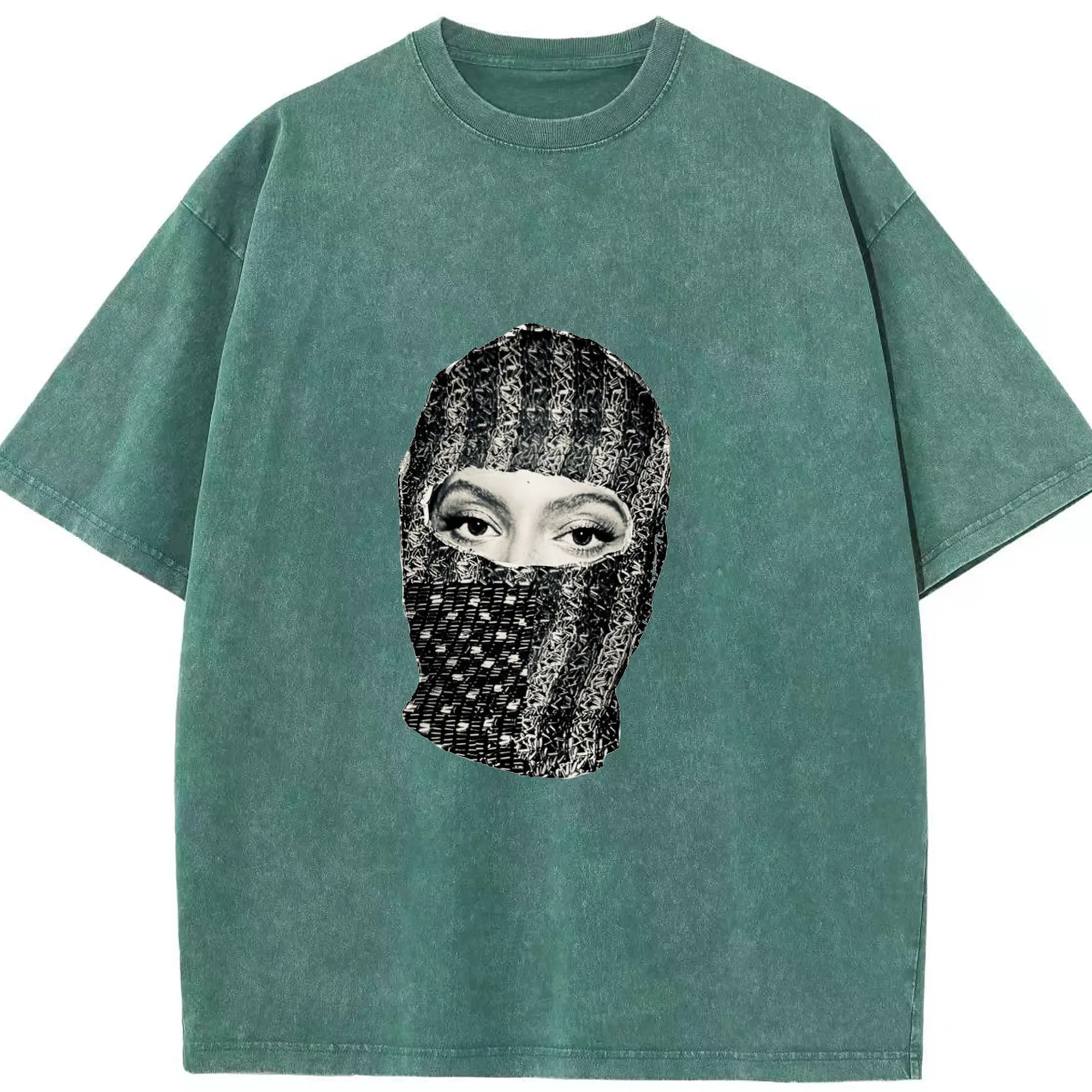 Beyoncé Dark Mysterious Street Art DIY - Washed Vintage Look 230g Cotton Oversized T-Shirt With Front Heat Transfer Print – Soft, Lightweight, Stylish Fit – Comfortable Casual Wear For Sports & Everyday Use