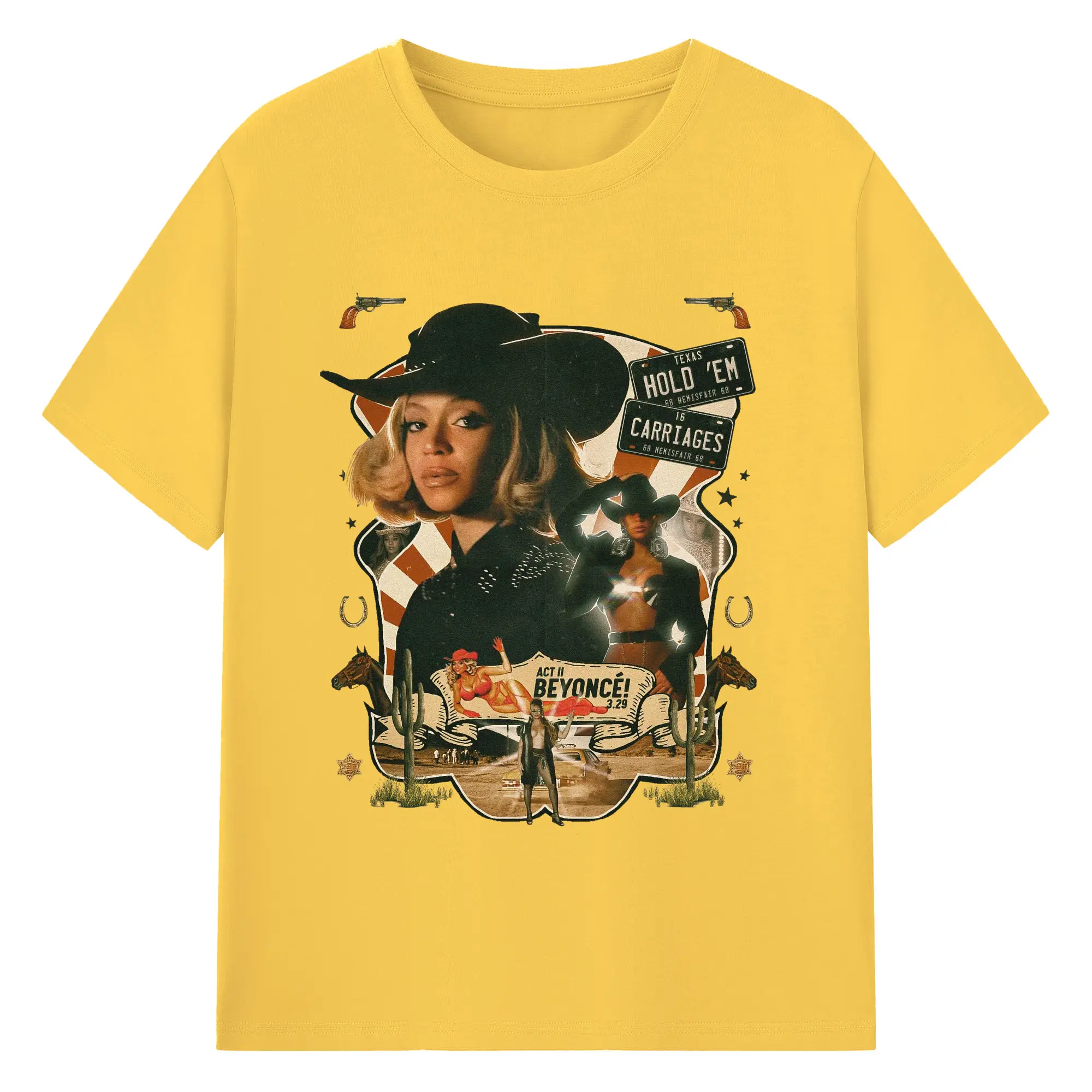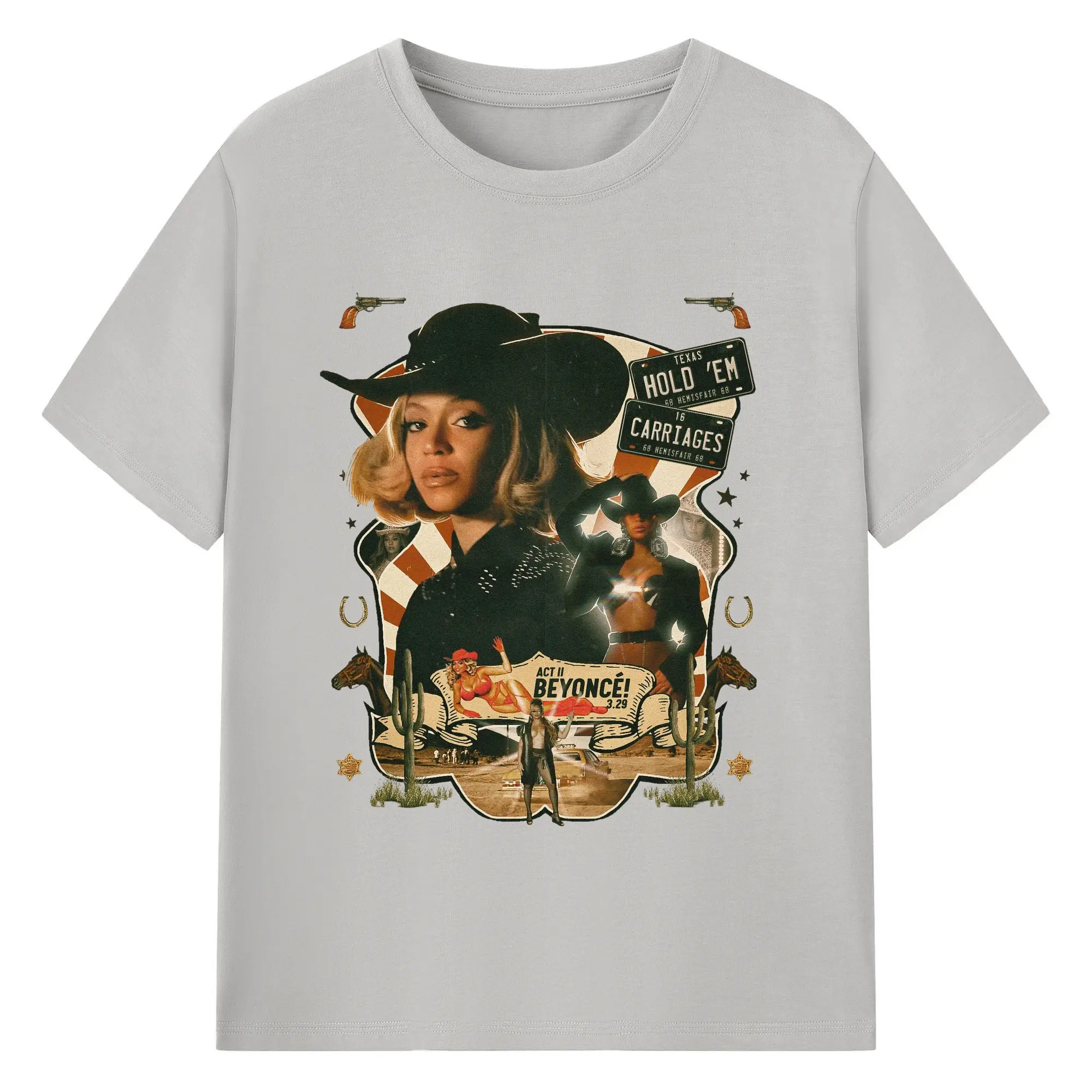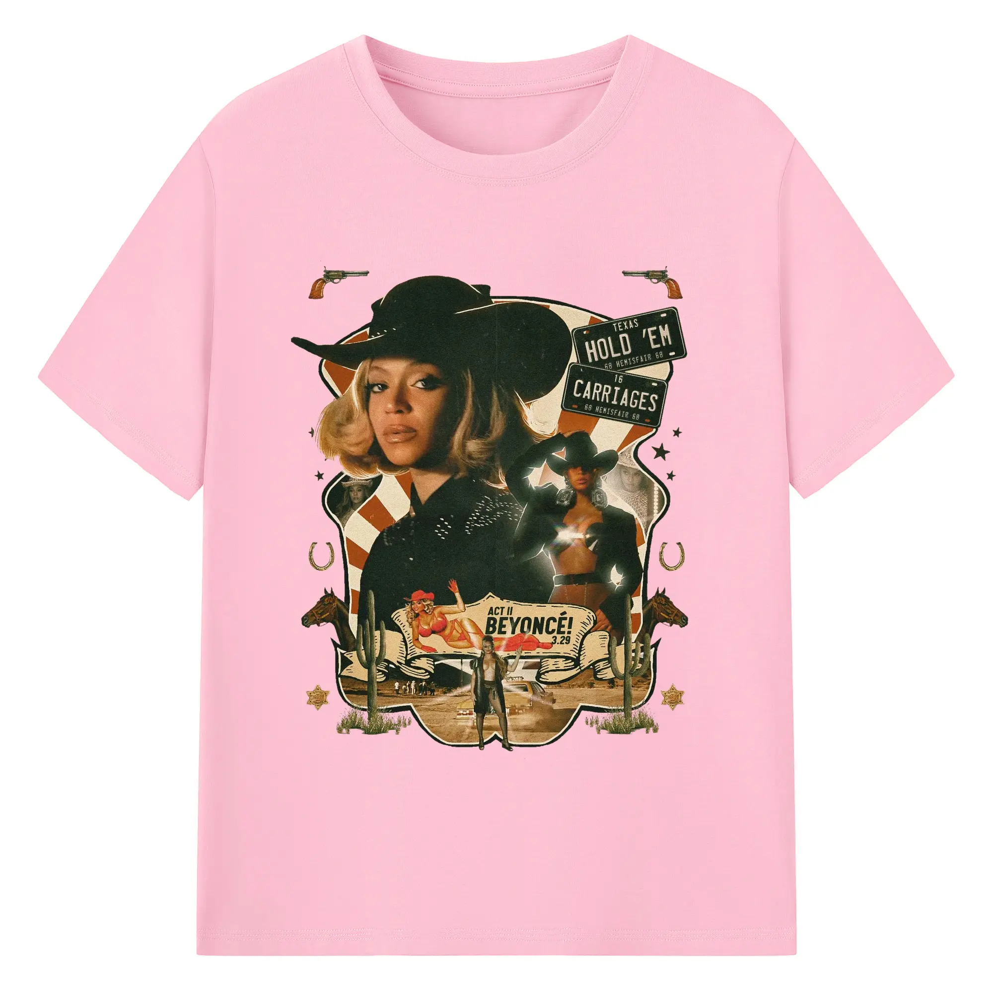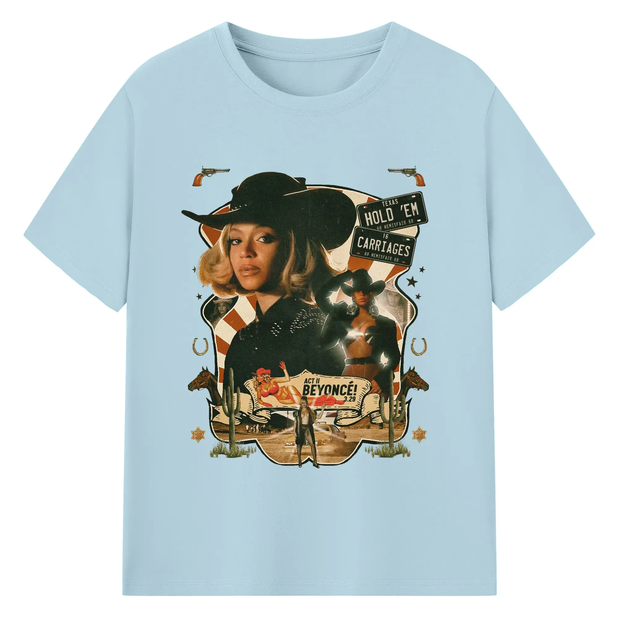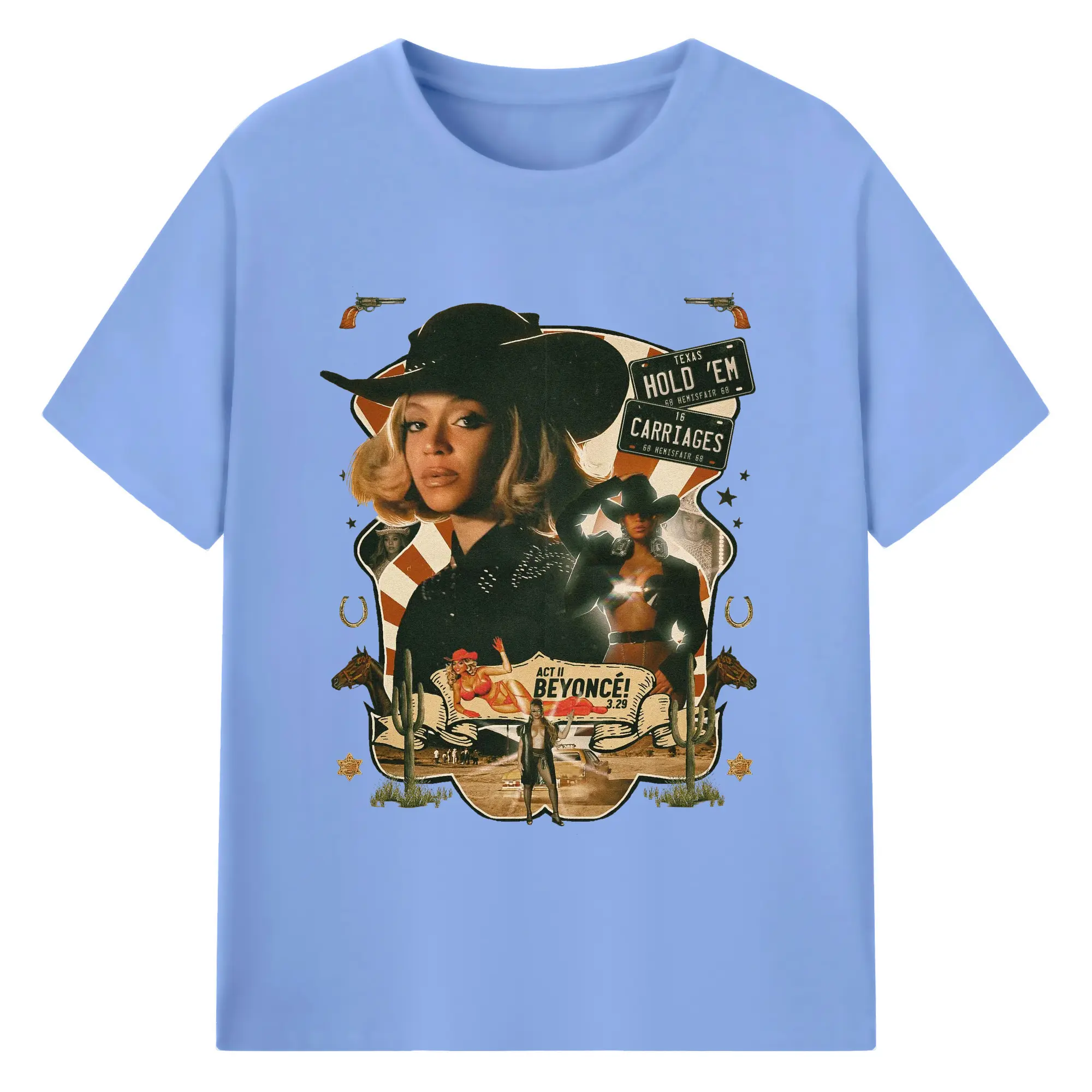 Beyoncé Texas Western Cowboy DIY - 180g Cotton T-Shirt With Front Heat Transfer Print – Soft, Lightweight, Fitted Design – Comfortable Casual Wear For Sports & Everyday Use