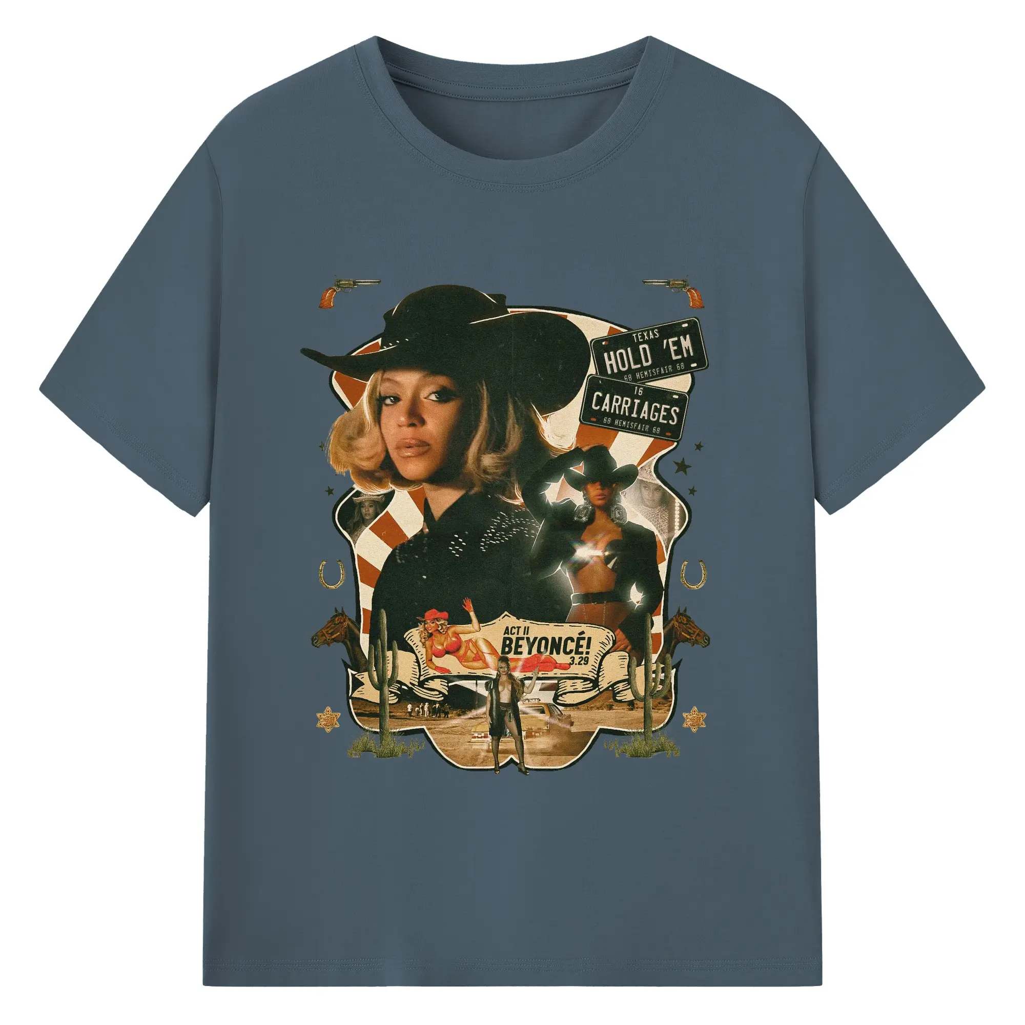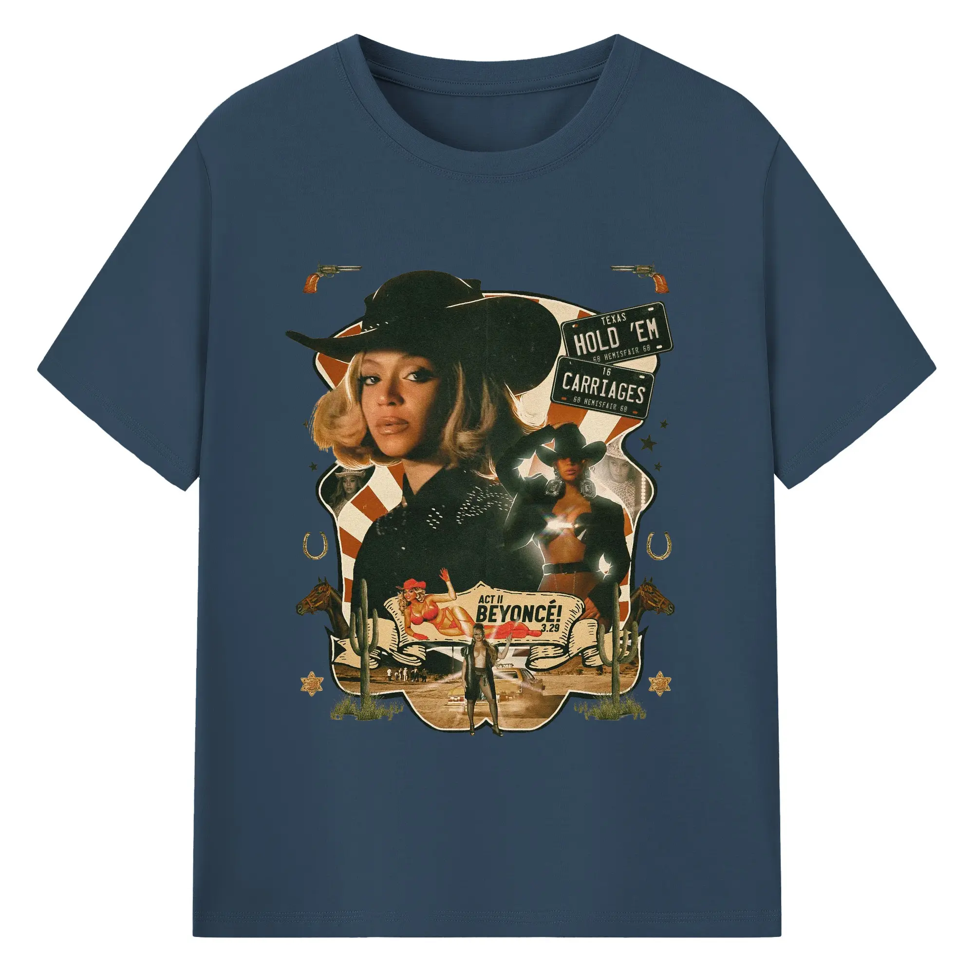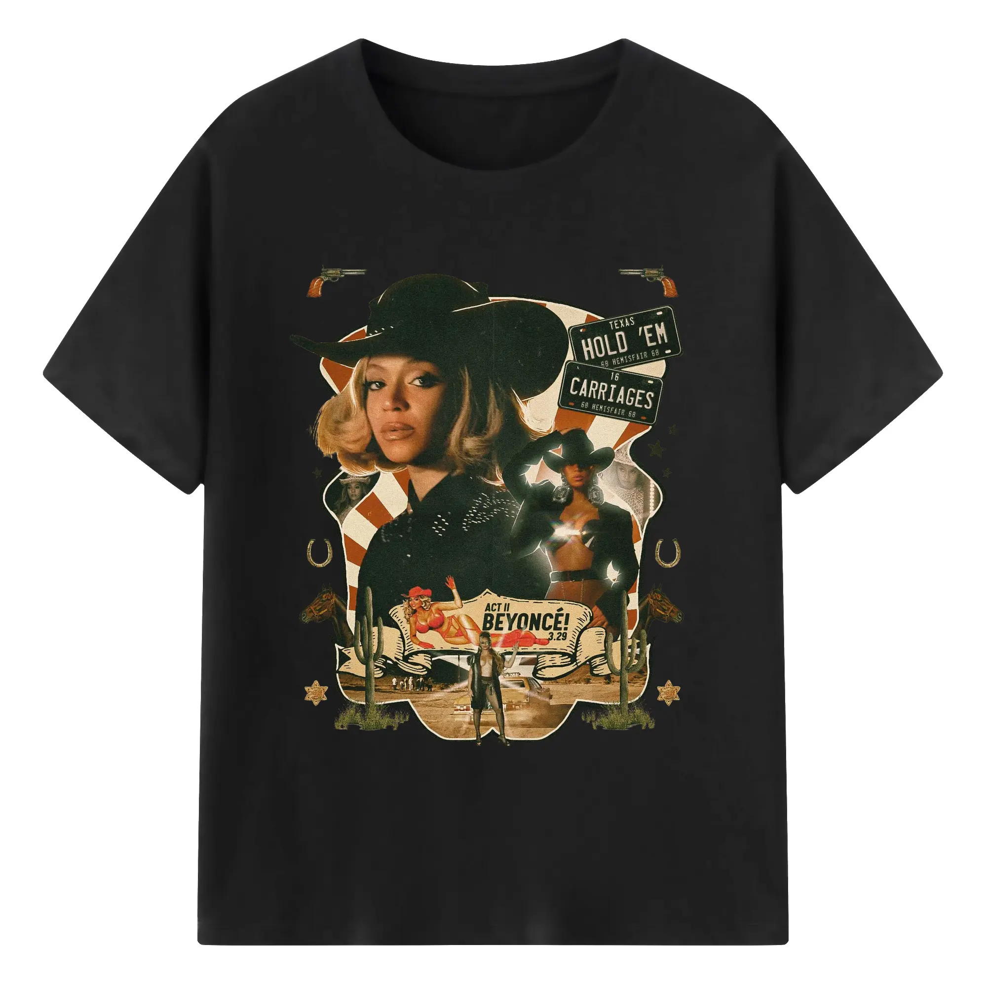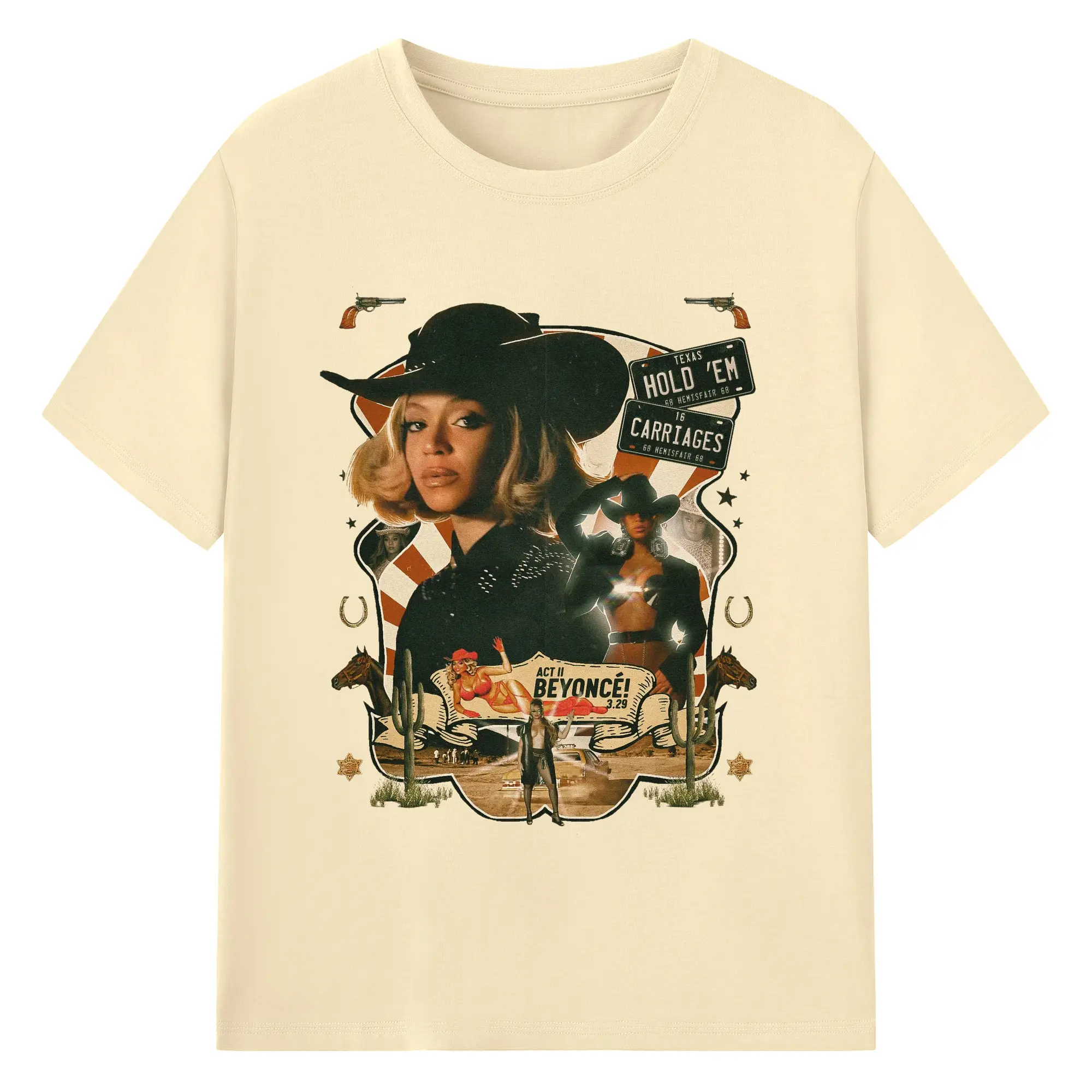 Beyoncé Texas Western Cowboy DIY - 180g Cotton T-Shirt With Front Heat Transfer Print – Soft, Lightweight, Fitted Design – Comfortable Casual Wear For Sports & Everyday Use