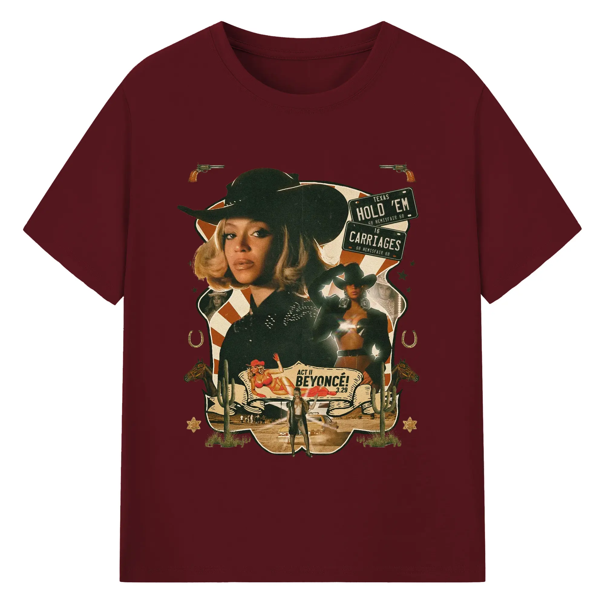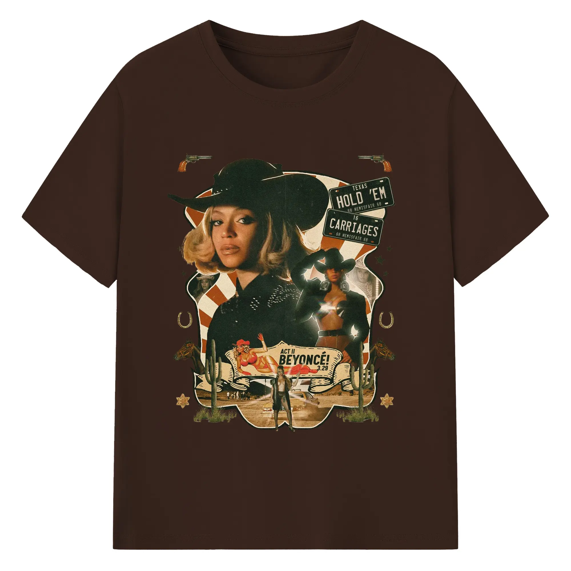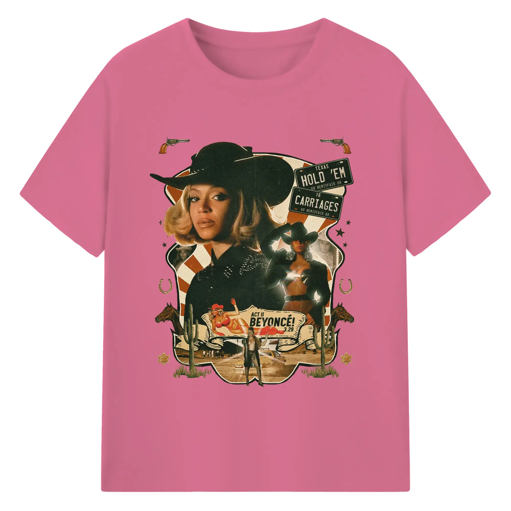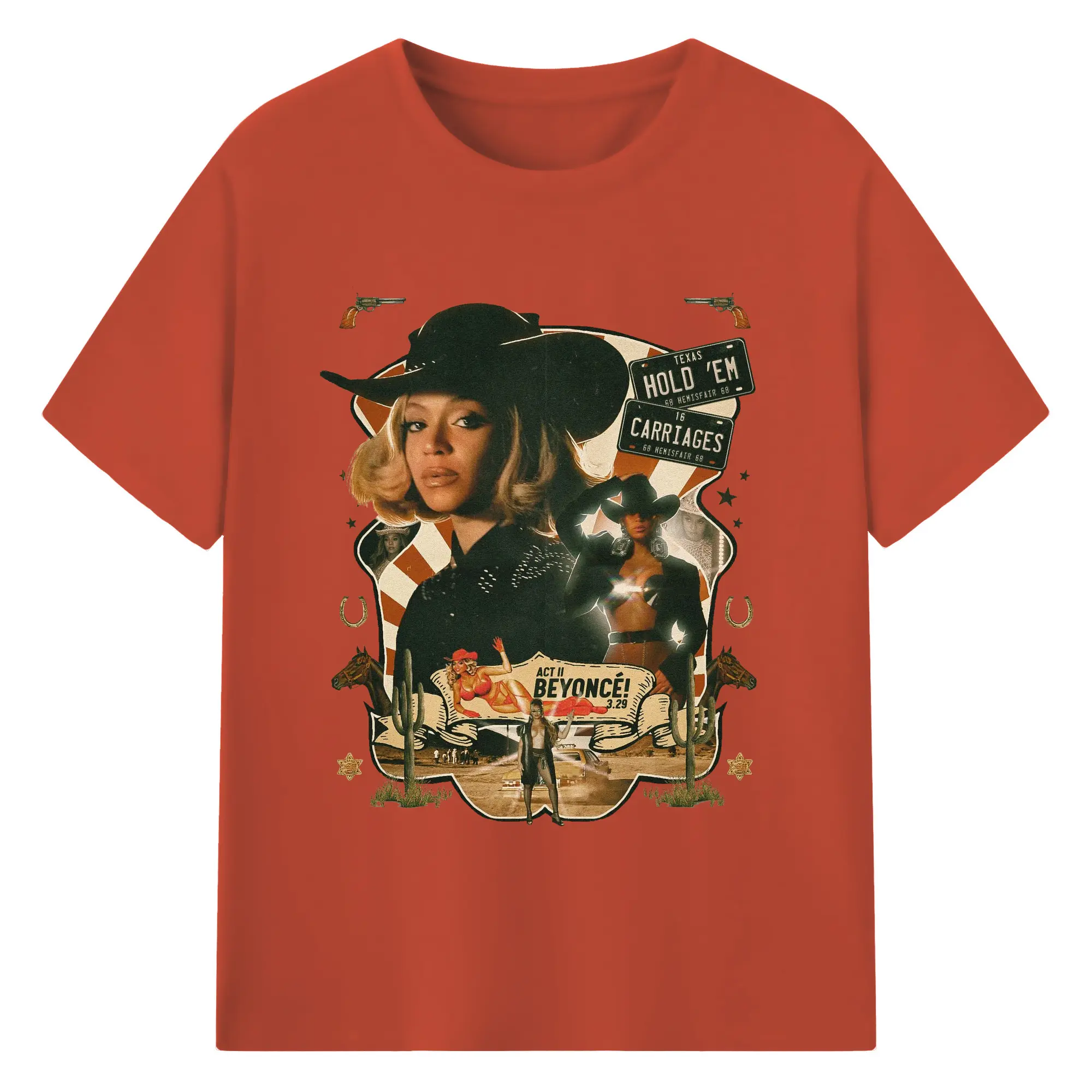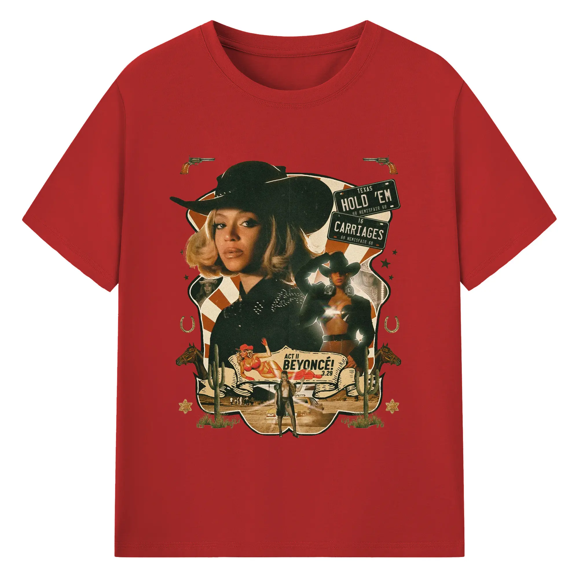 Beyoncé Texas Western Cowboy DIY - 180g Cotton T-Shirt With Front Heat Transfer Print – Soft, Lightweight, Fitted Design – Comfortable Casual Wear For Sports & Everyday Use