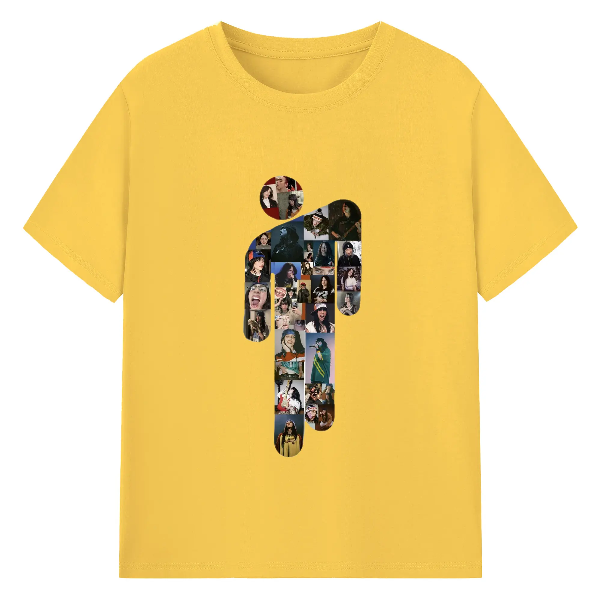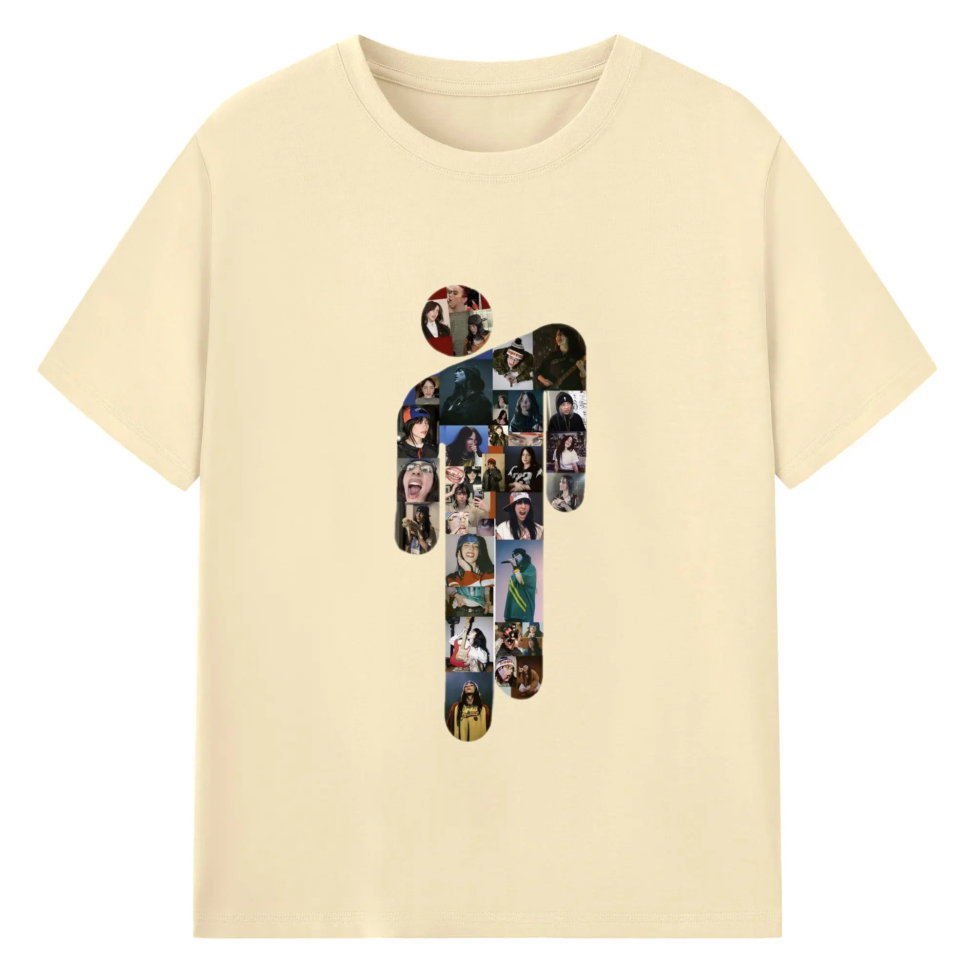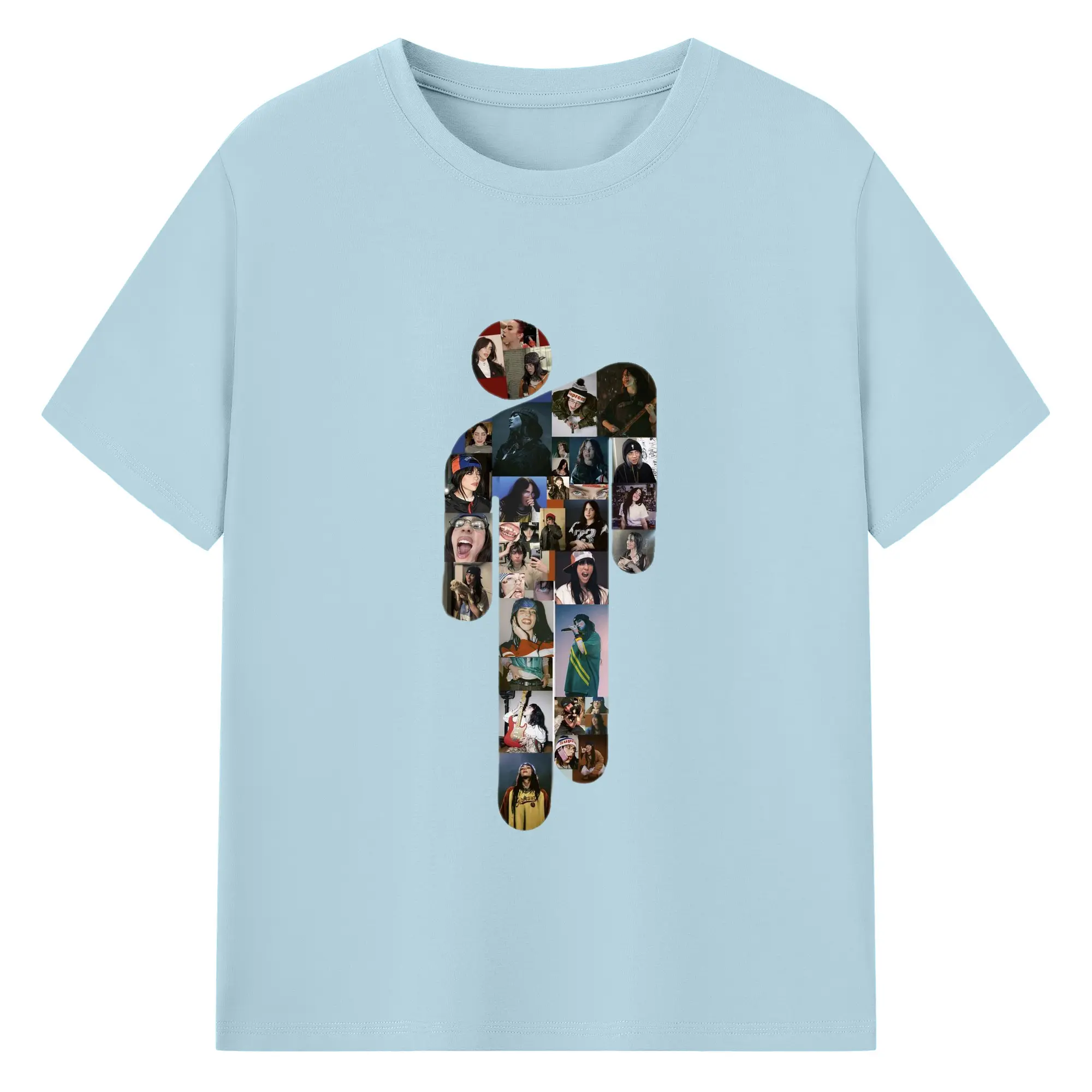 Billie Eilish Art Collage Logo DIY - 180g Cotton T-Shirt With Front Heat Transfer Print – Soft, Lightweight, Fitted Design – Comfortable Casual Wear For Sports & Everyday Use