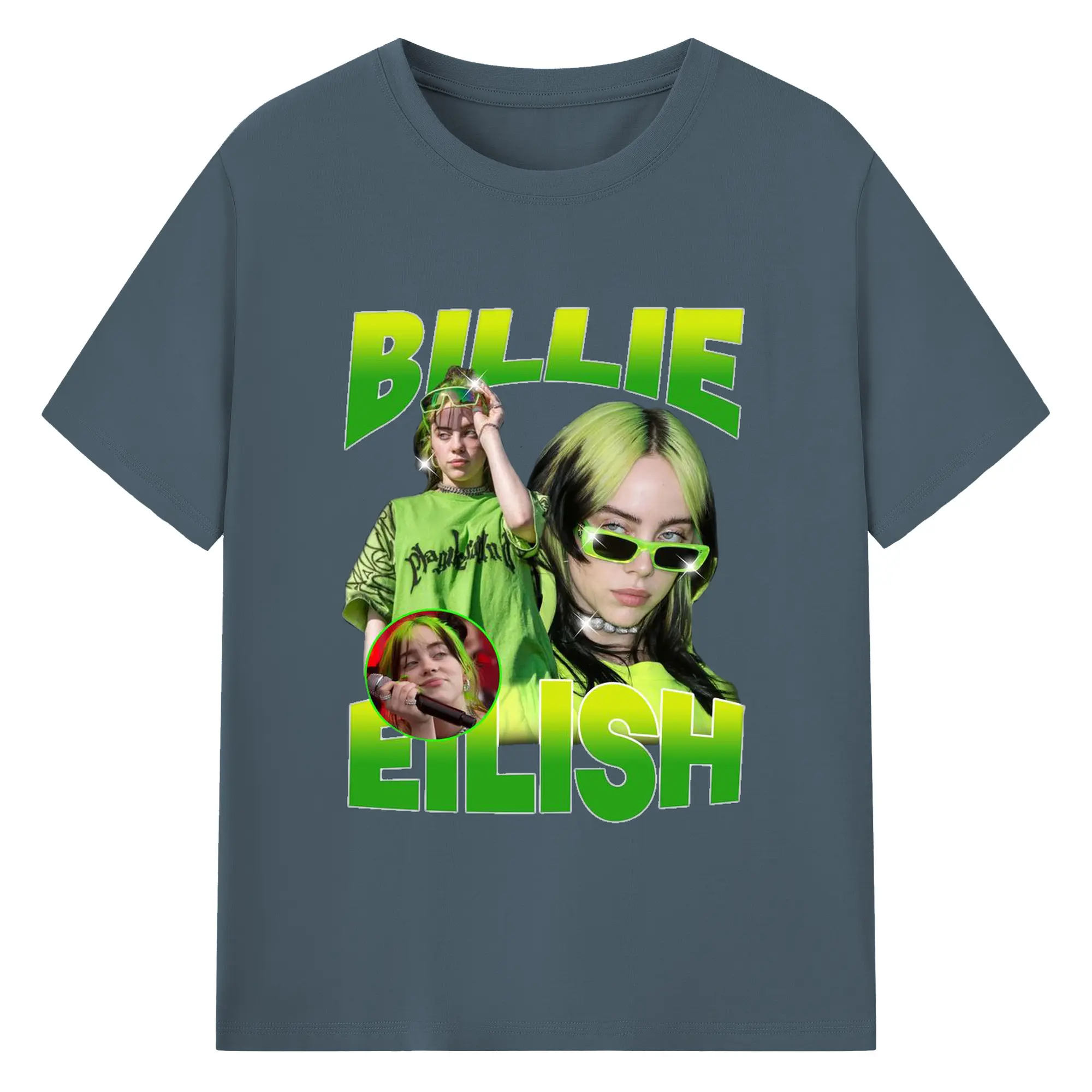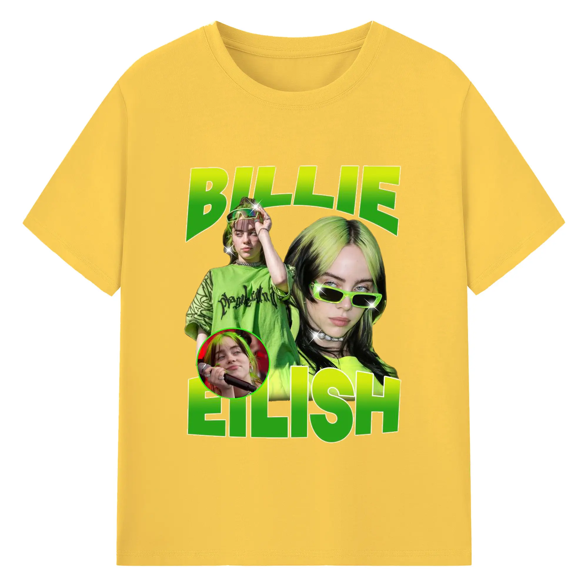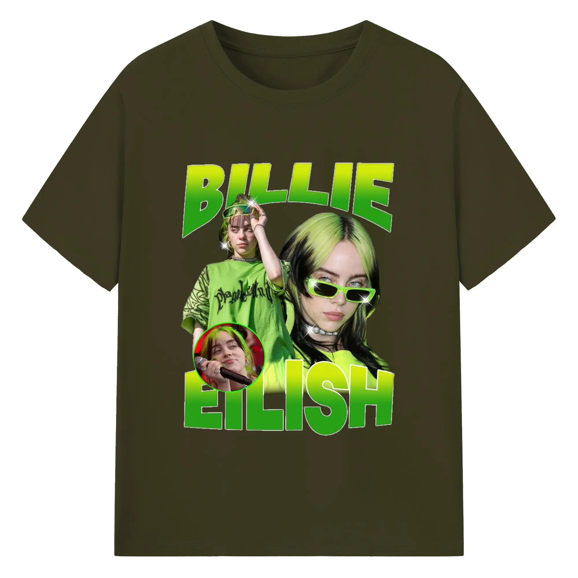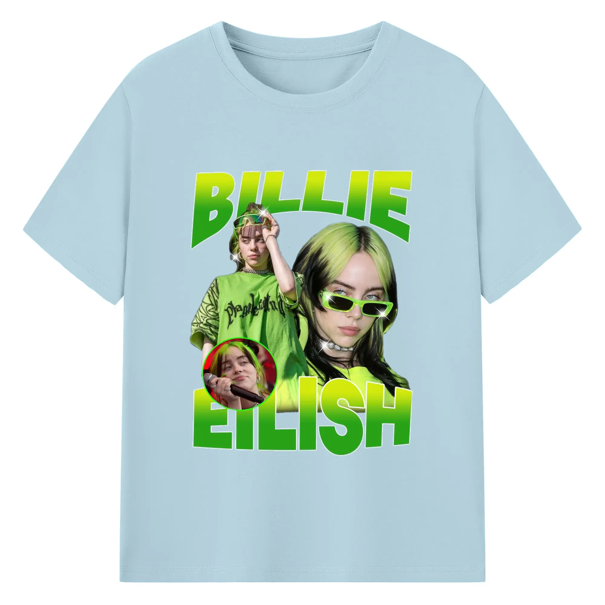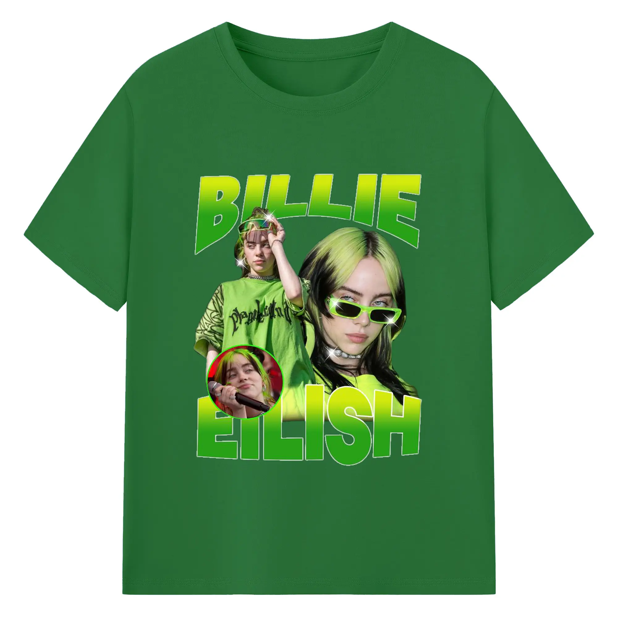 Billie Eilish Fluorescent Green Neon Retro DIY - 180g Cotton T-Shirt With Front Heat Transfer Print – Soft, Lightweight, Fitted Design – Comfortable Casual Wear For Sports & Everyday Use