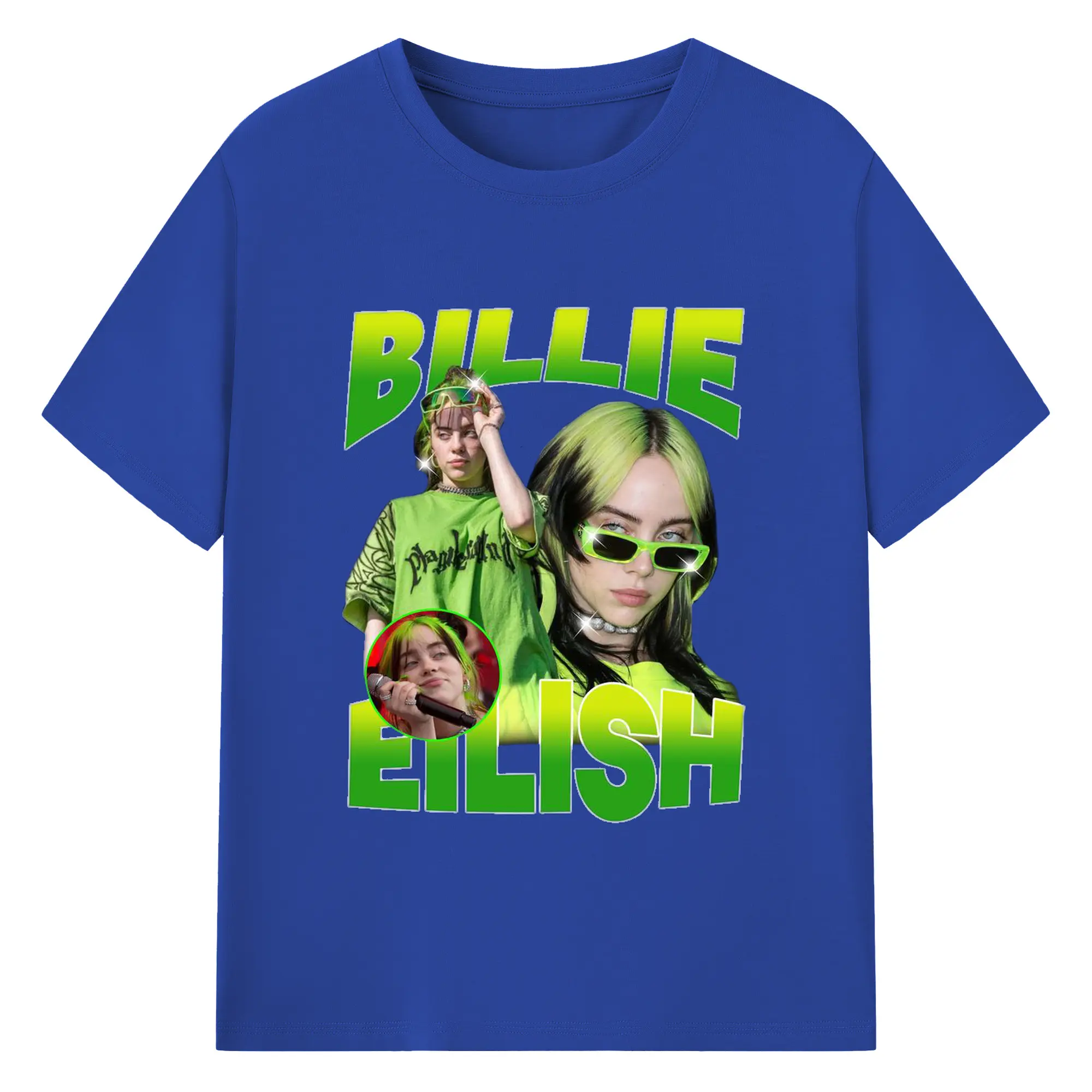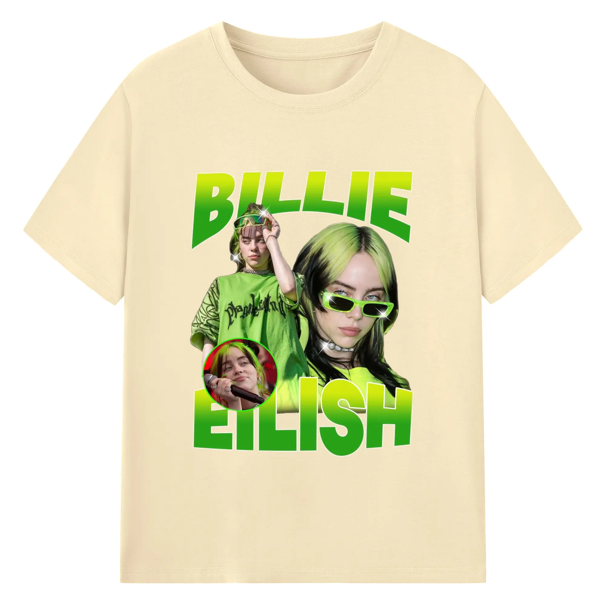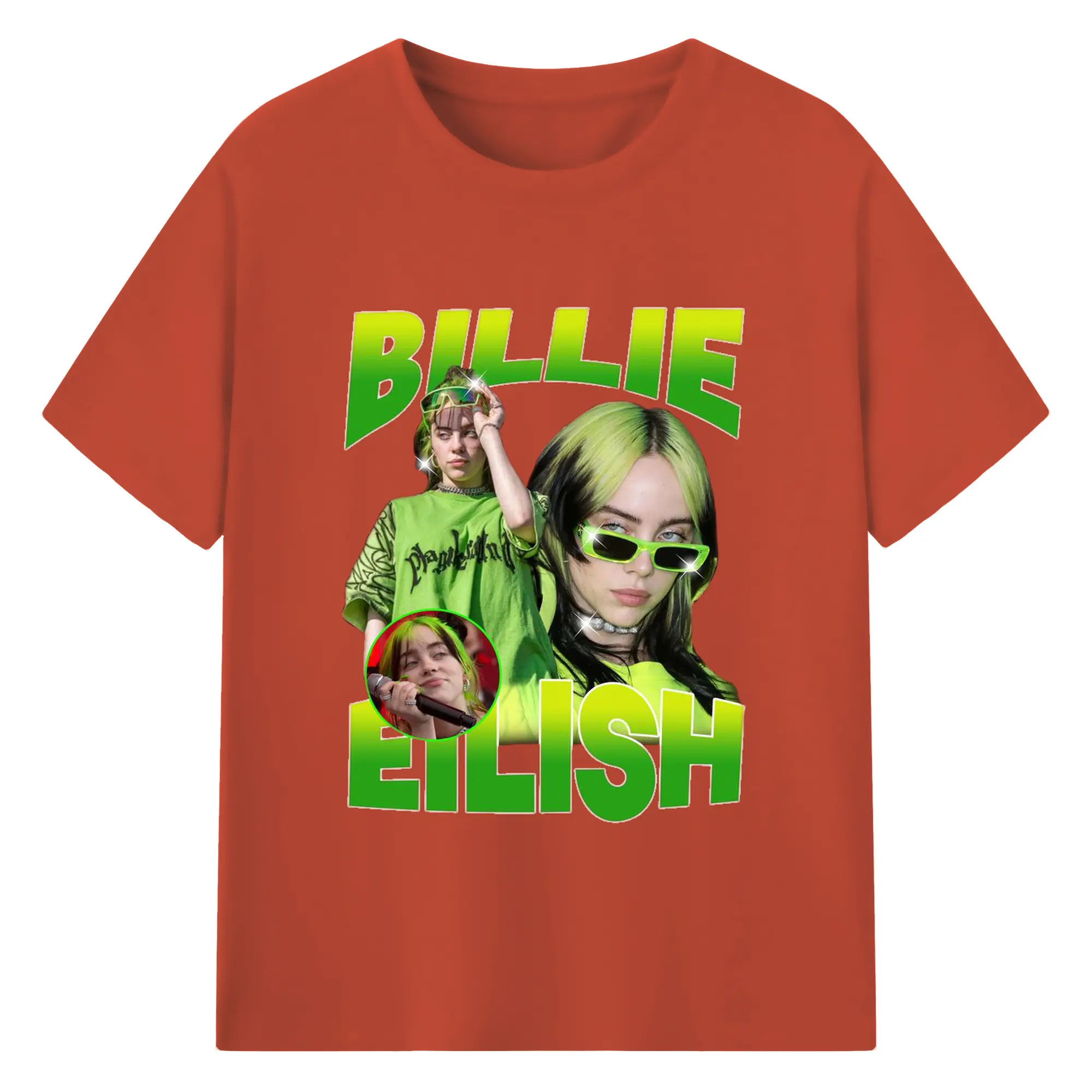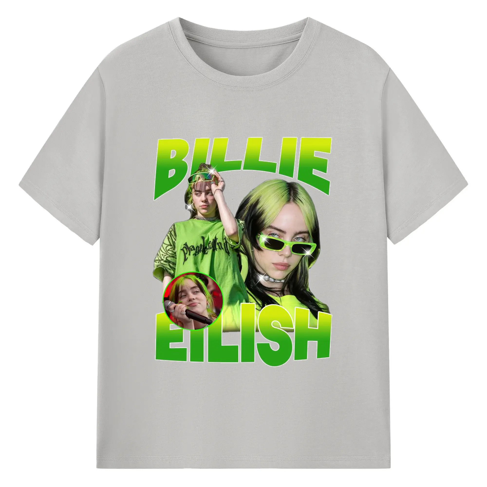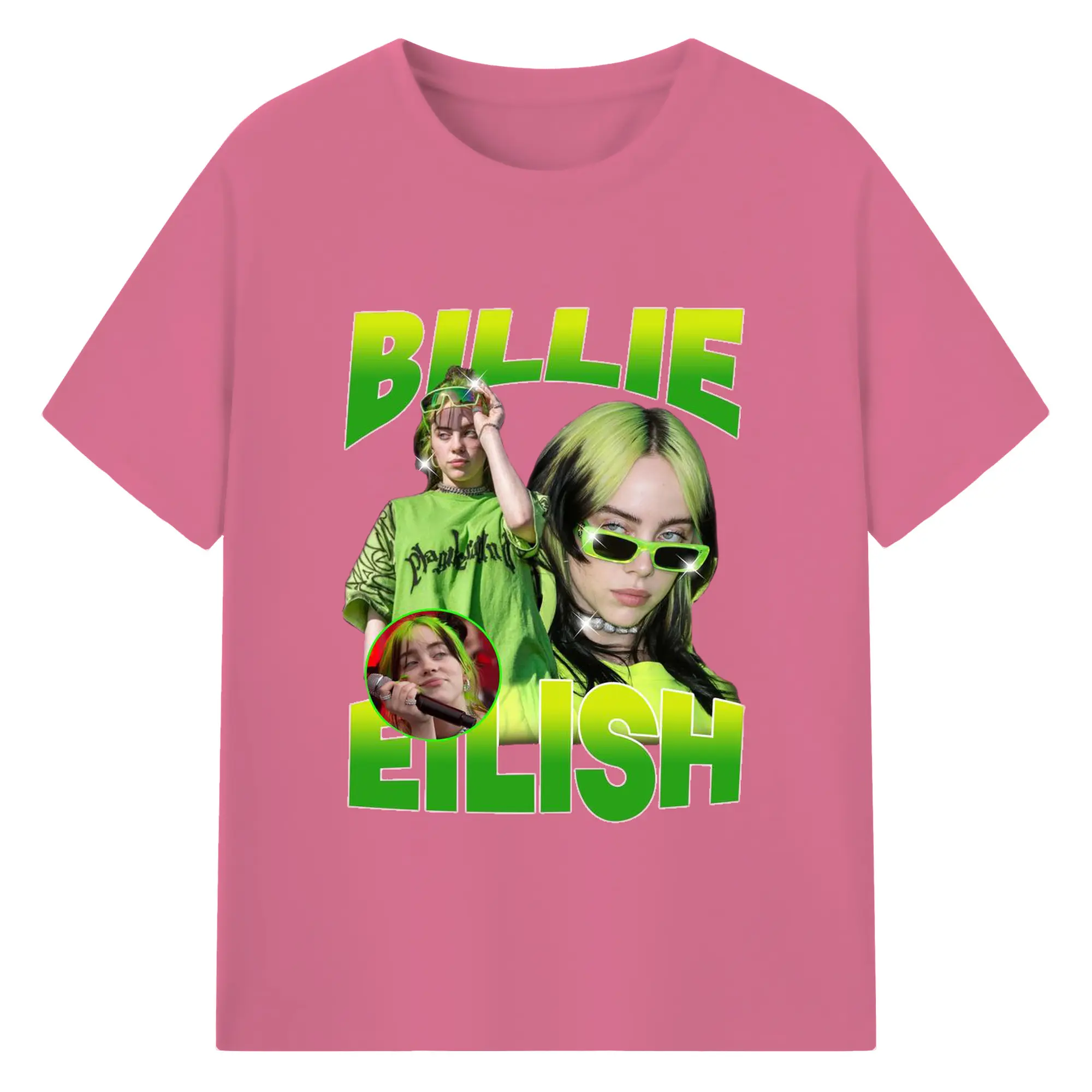 Billie Eilish Fluorescent Green Neon Retro DIY - 180g Cotton T-Shirt With Front Heat Transfer Print – Soft, Lightweight, Fitted Design – Comfortable Casual Wear For Sports & Everyday Use
