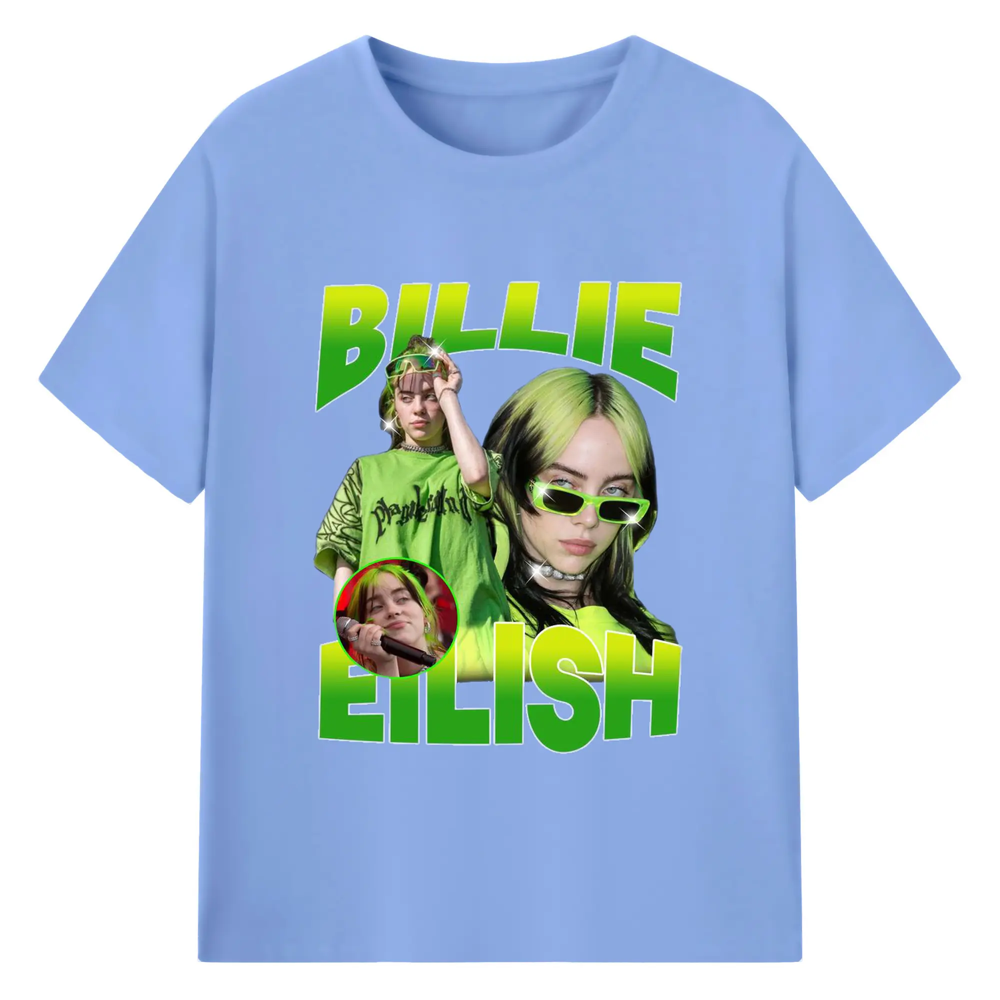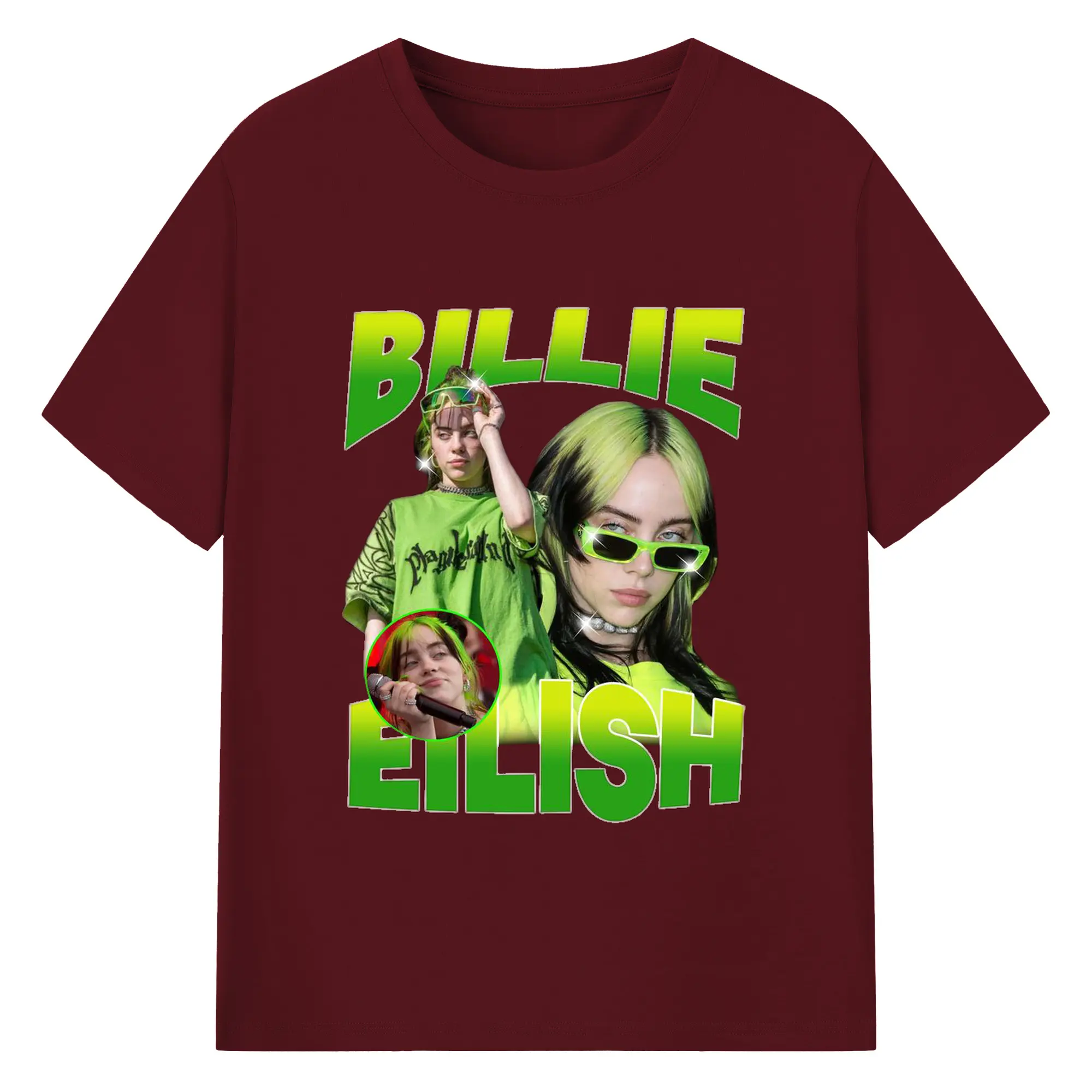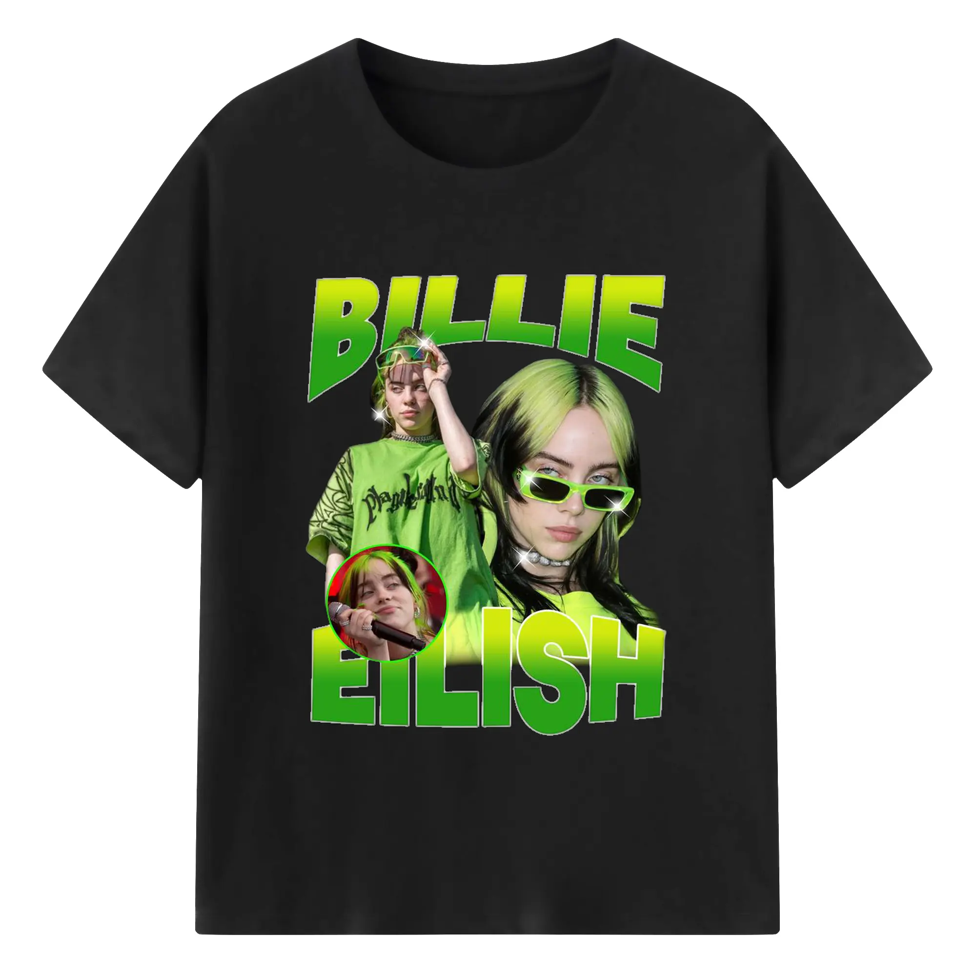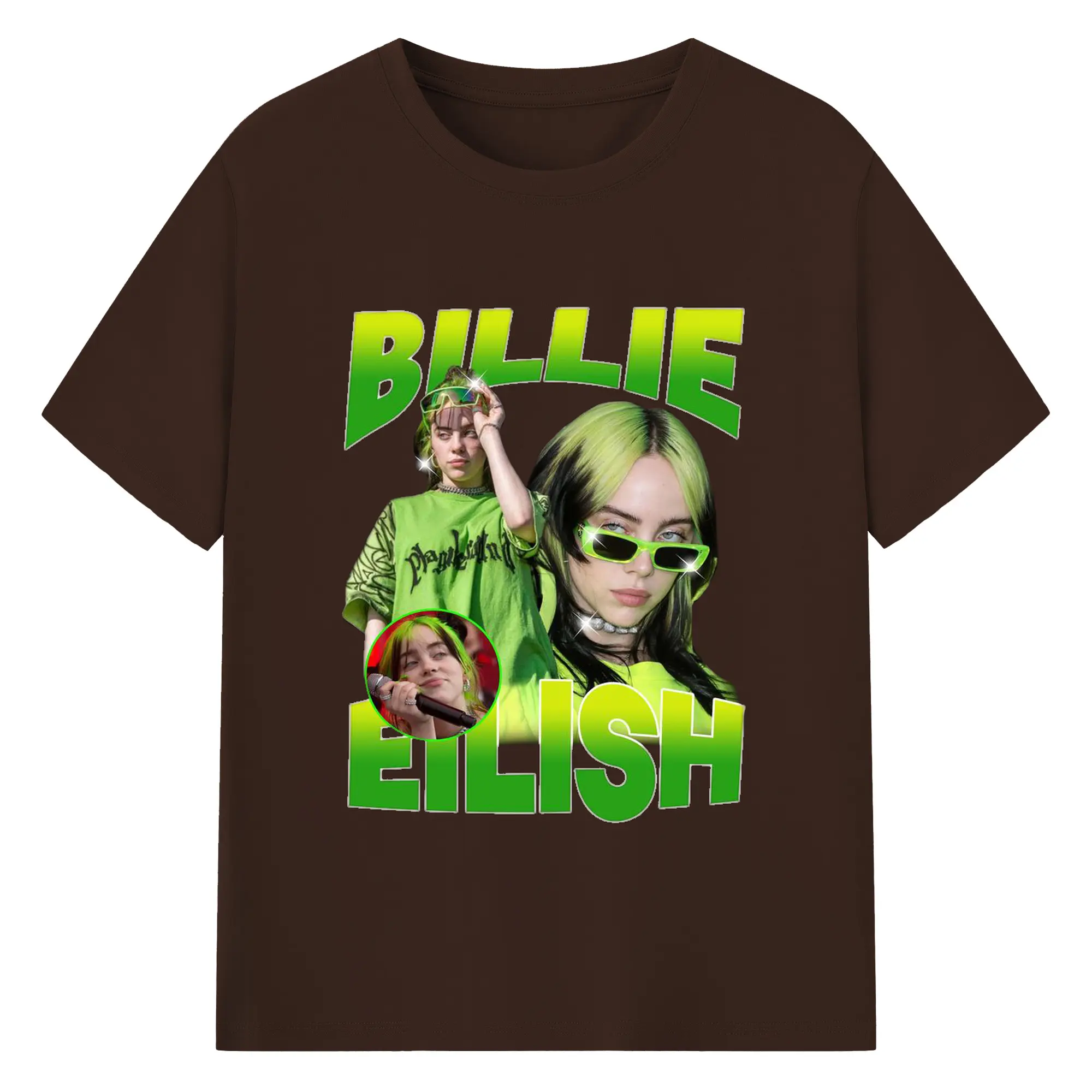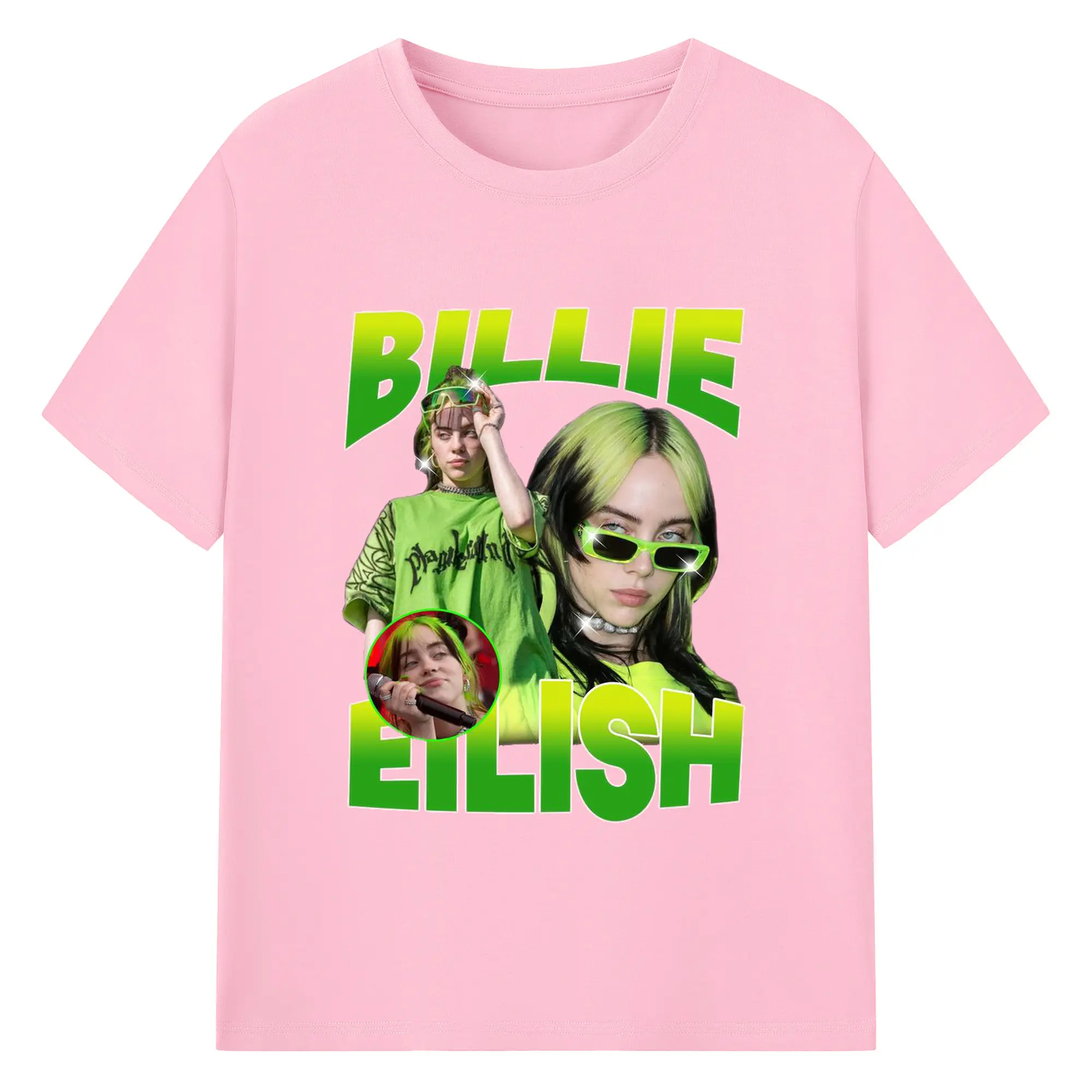 Billie Eilish Fluorescent Green Neon Retro DIY - 180g Cotton T-Shirt With Front Heat Transfer Print – Soft, Lightweight, Fitted Design – Comfortable Casual Wear For Sports & Everyday Use