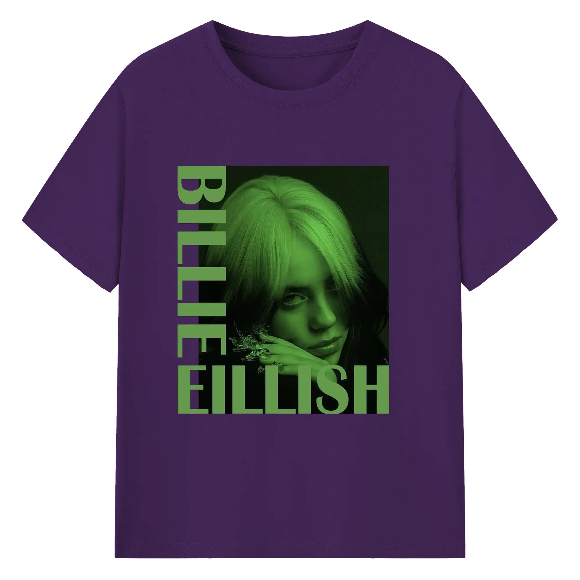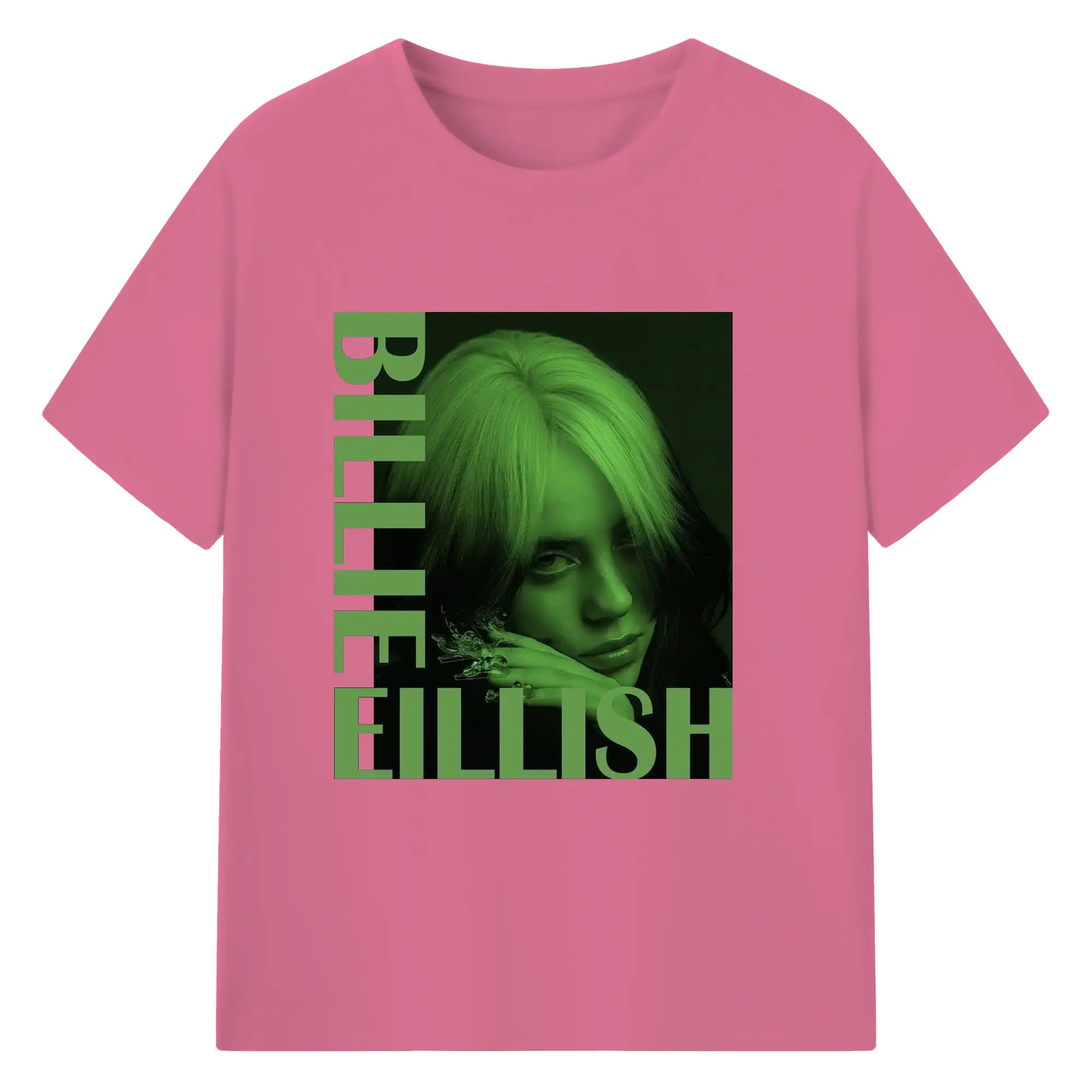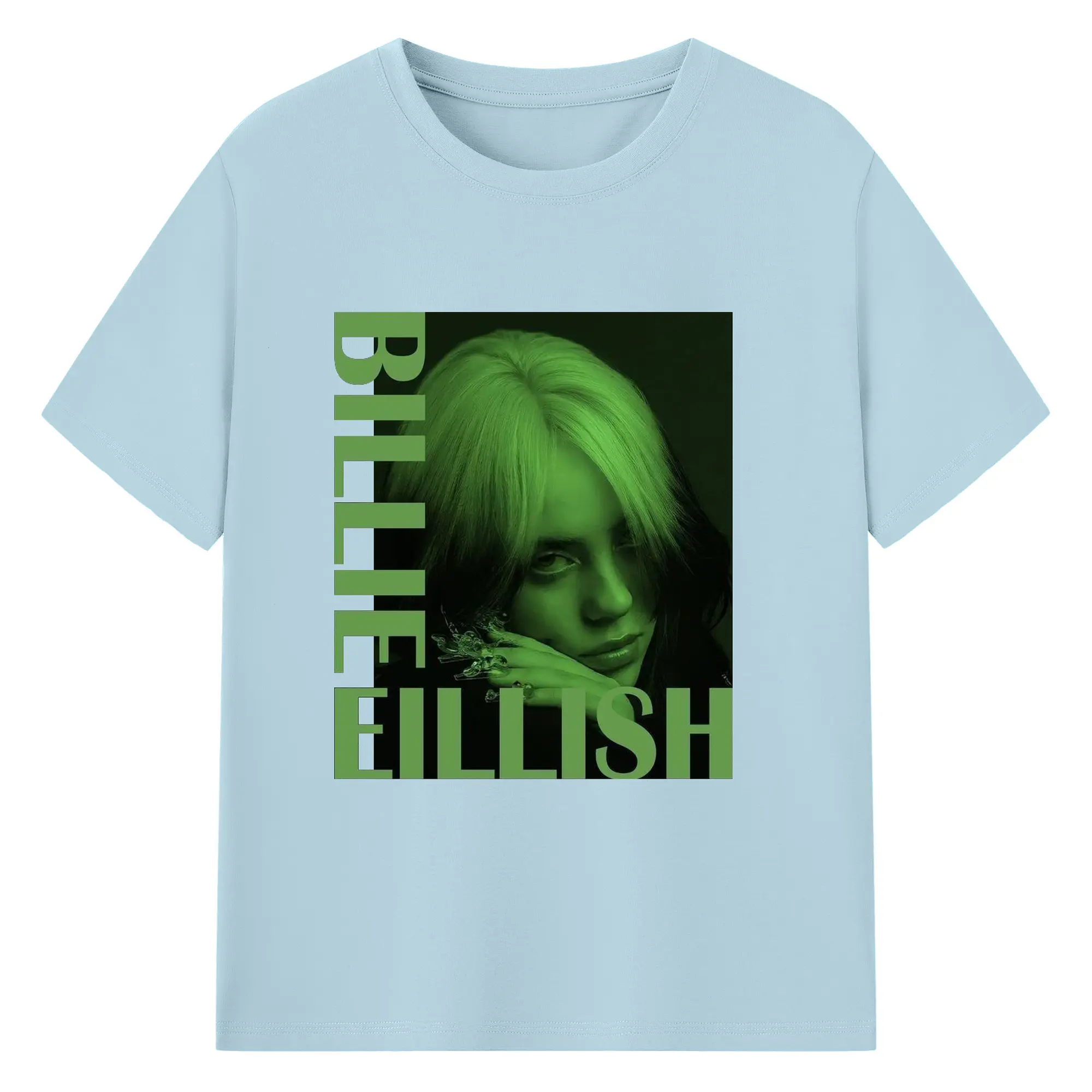 Billie Eilish Minimalist Color Block DIY - 180g Cotton T-Shirt With Front Heat Transfer Print – Soft, Lightweight, Fitted Design – Comfortable Casual Wear For Sports & Everyday Use