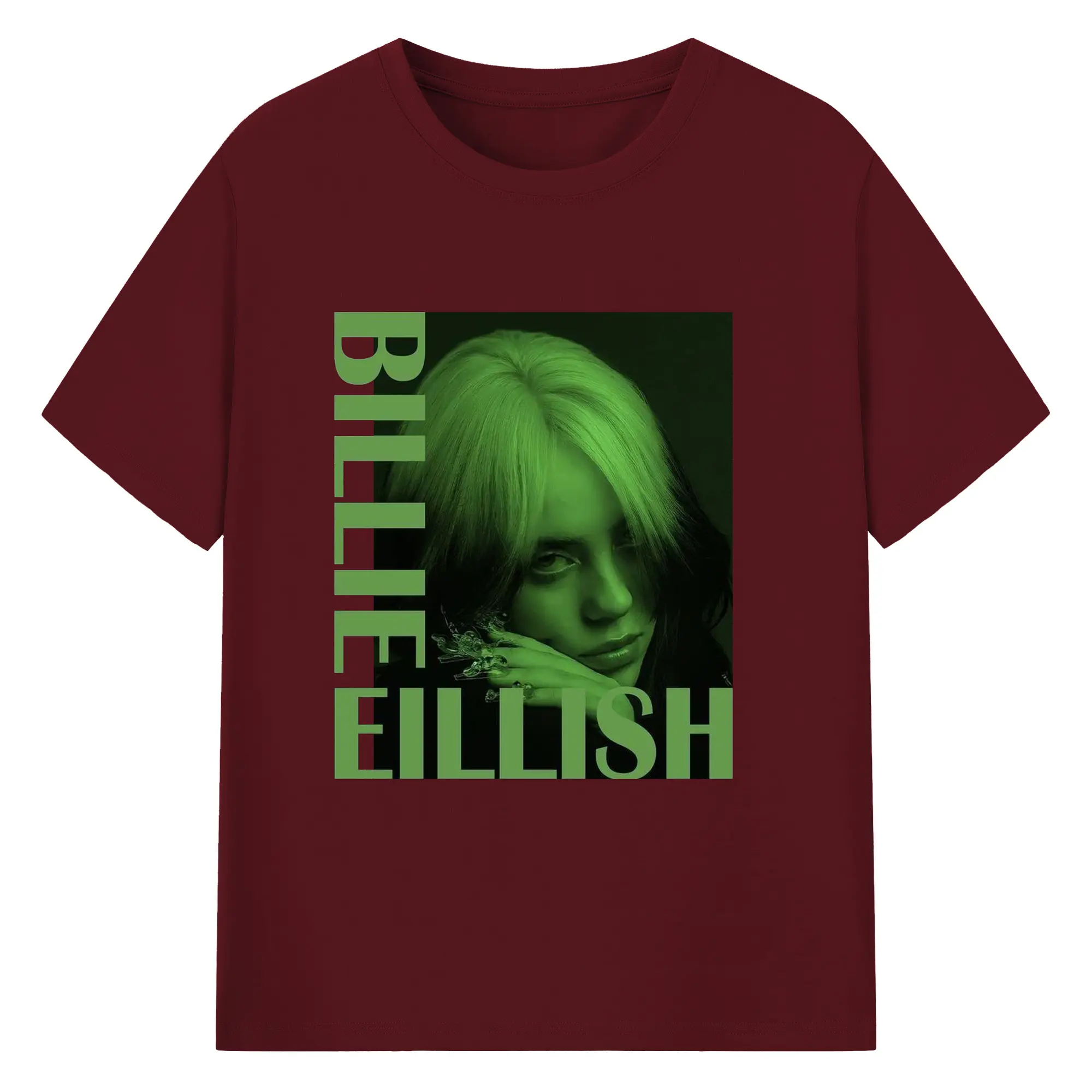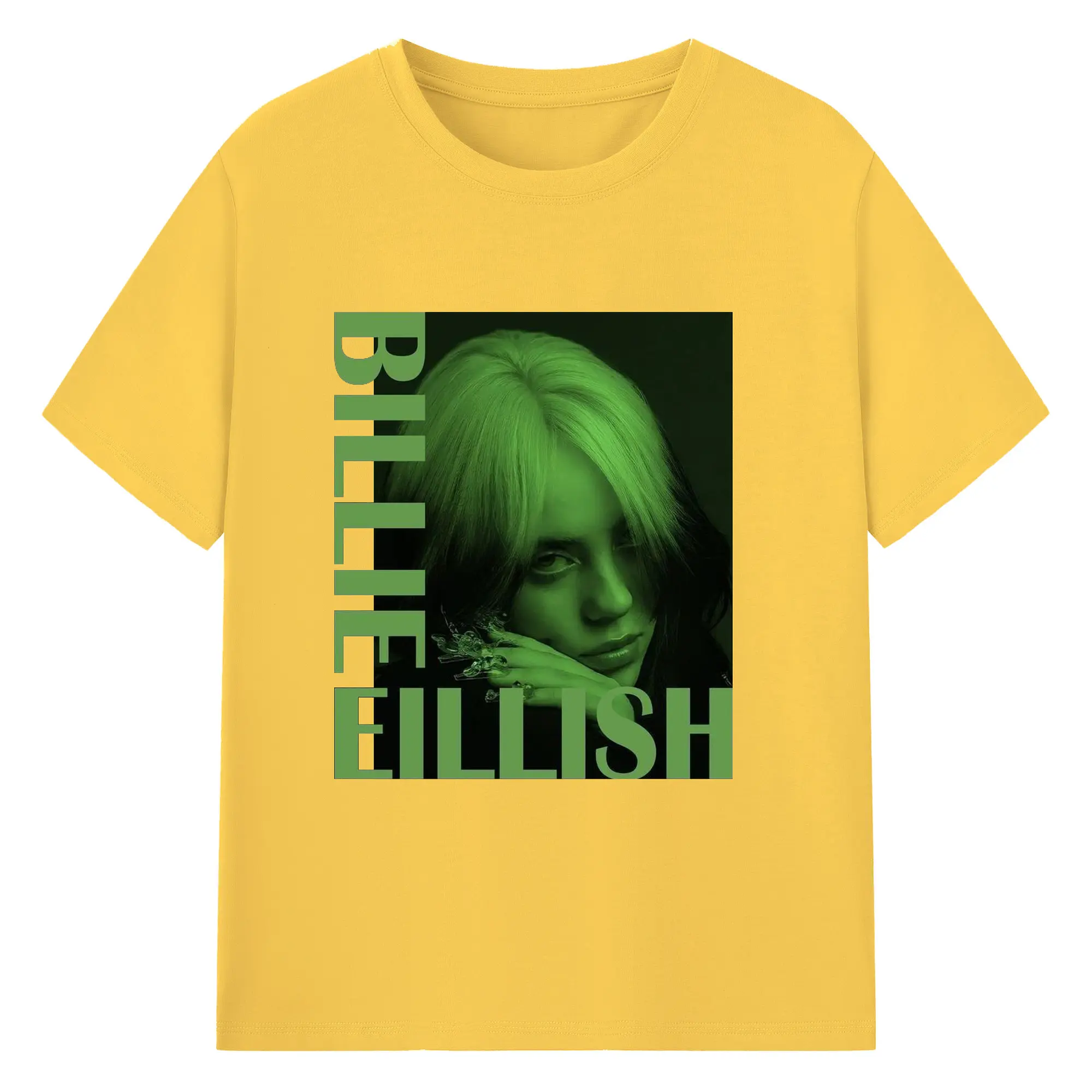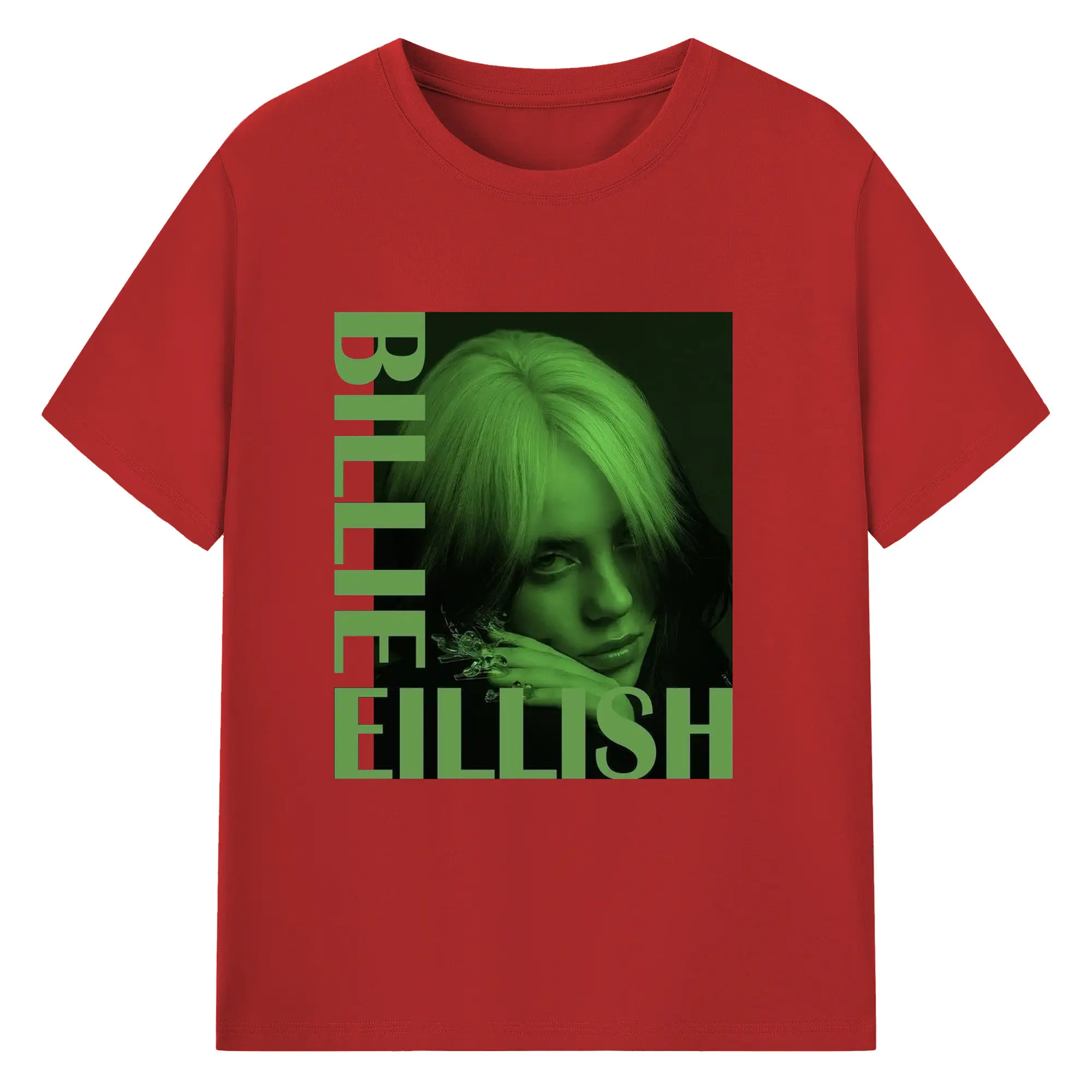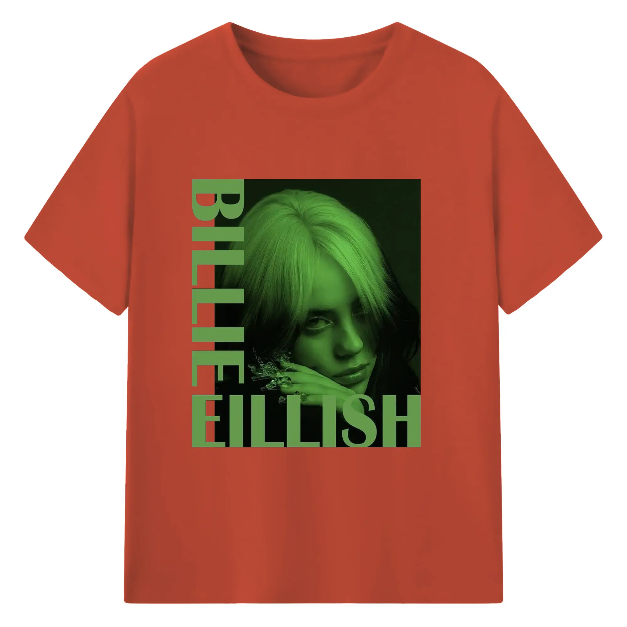 Billie Eilish Minimalist Color Block DIY - 180g Cotton T-Shirt With Front Heat Transfer Print – Soft, Lightweight, Fitted Design – Comfortable Casual Wear For Sports & Everyday Use