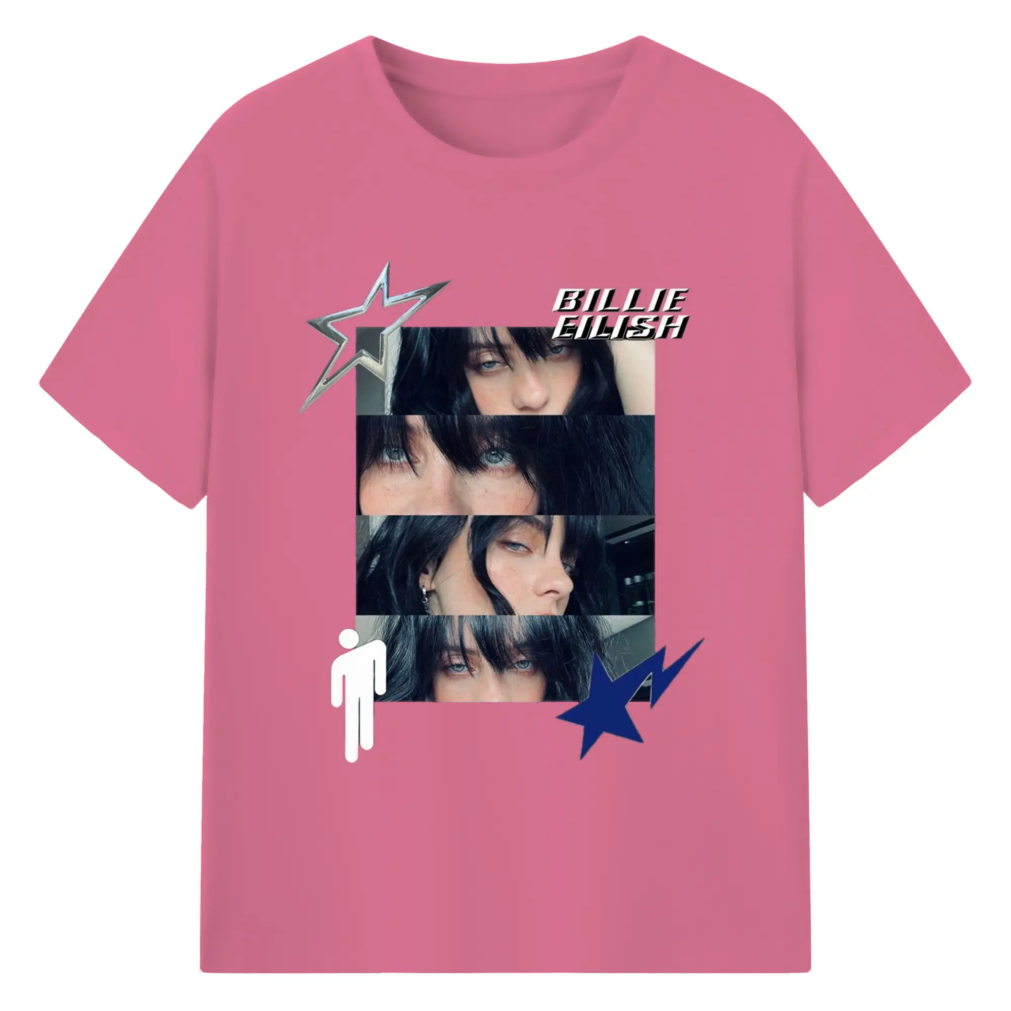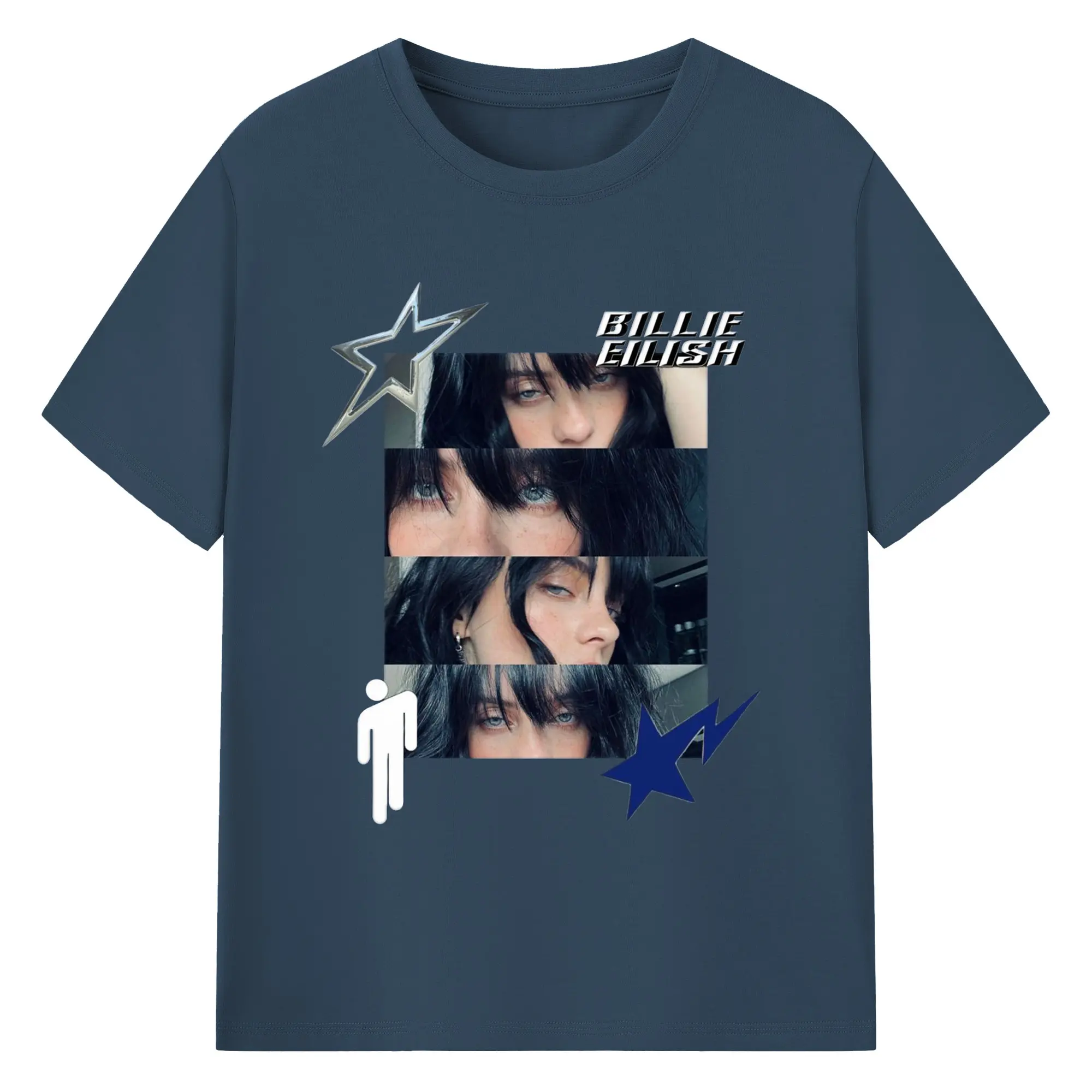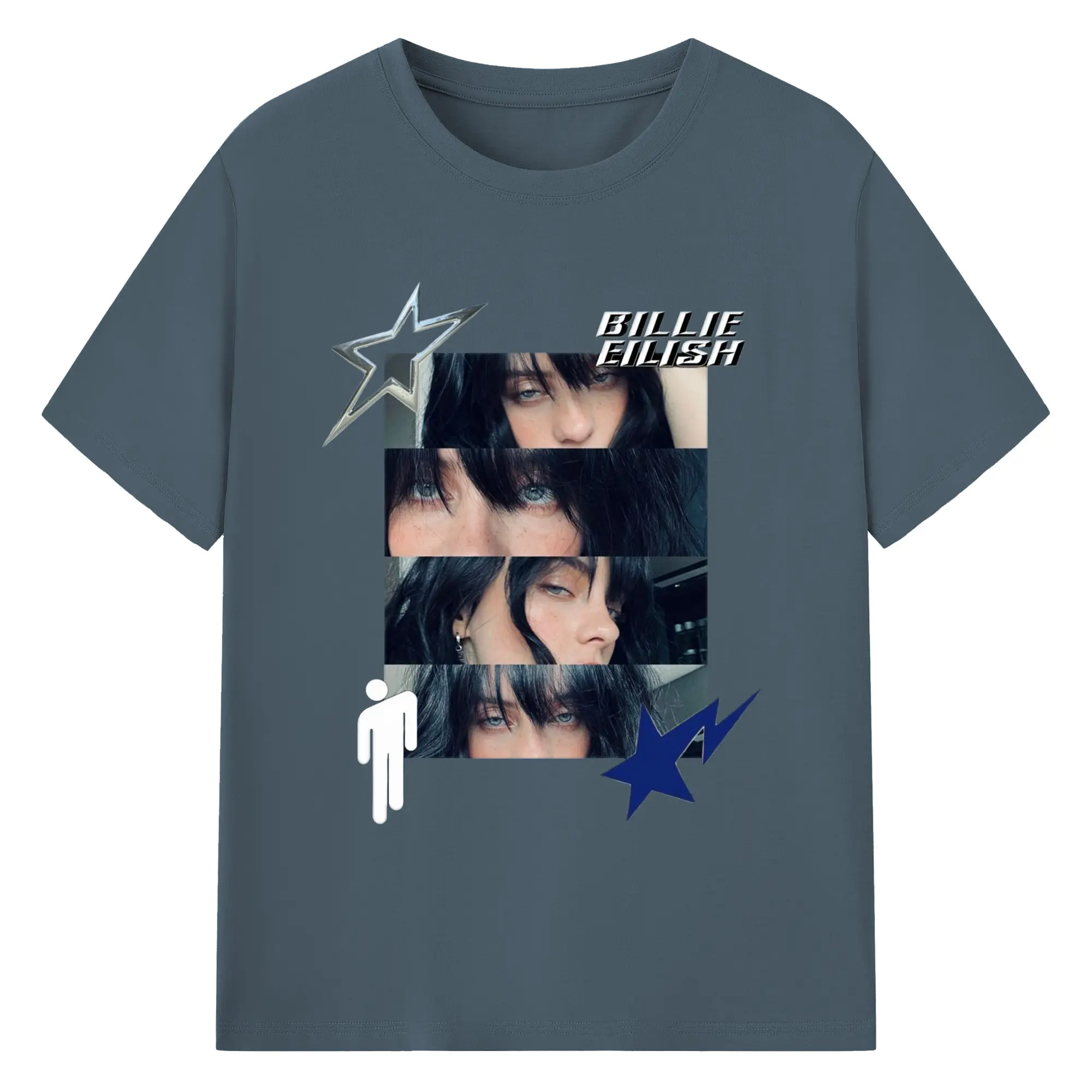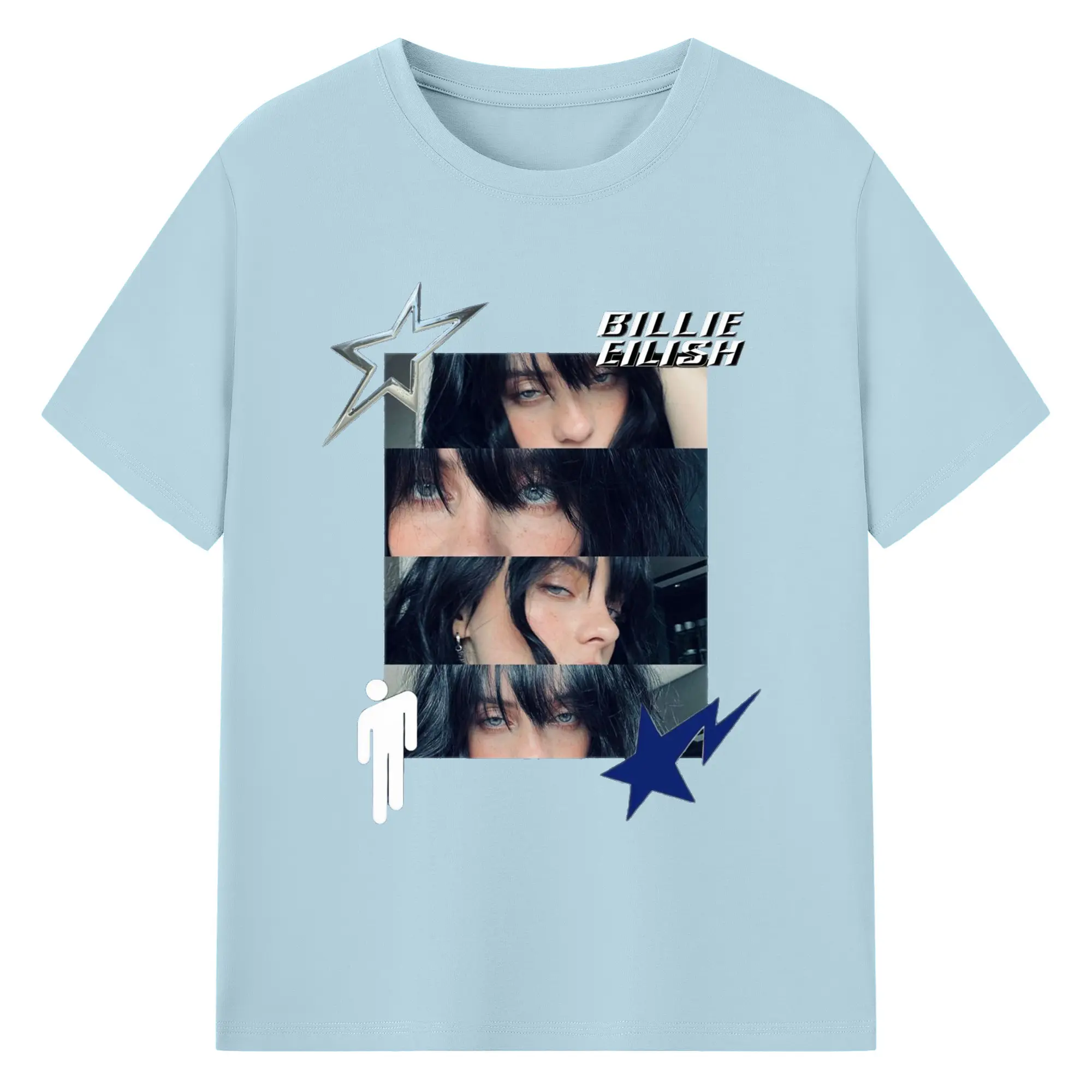 Billie Eilish Minimalist Star Collage DIY - 180g Cotton T-Shirt With Front Heat Transfer Print – Soft, Lightweight, Fitted Design – Comfortable Casual Wear For Sports & Everyday Use