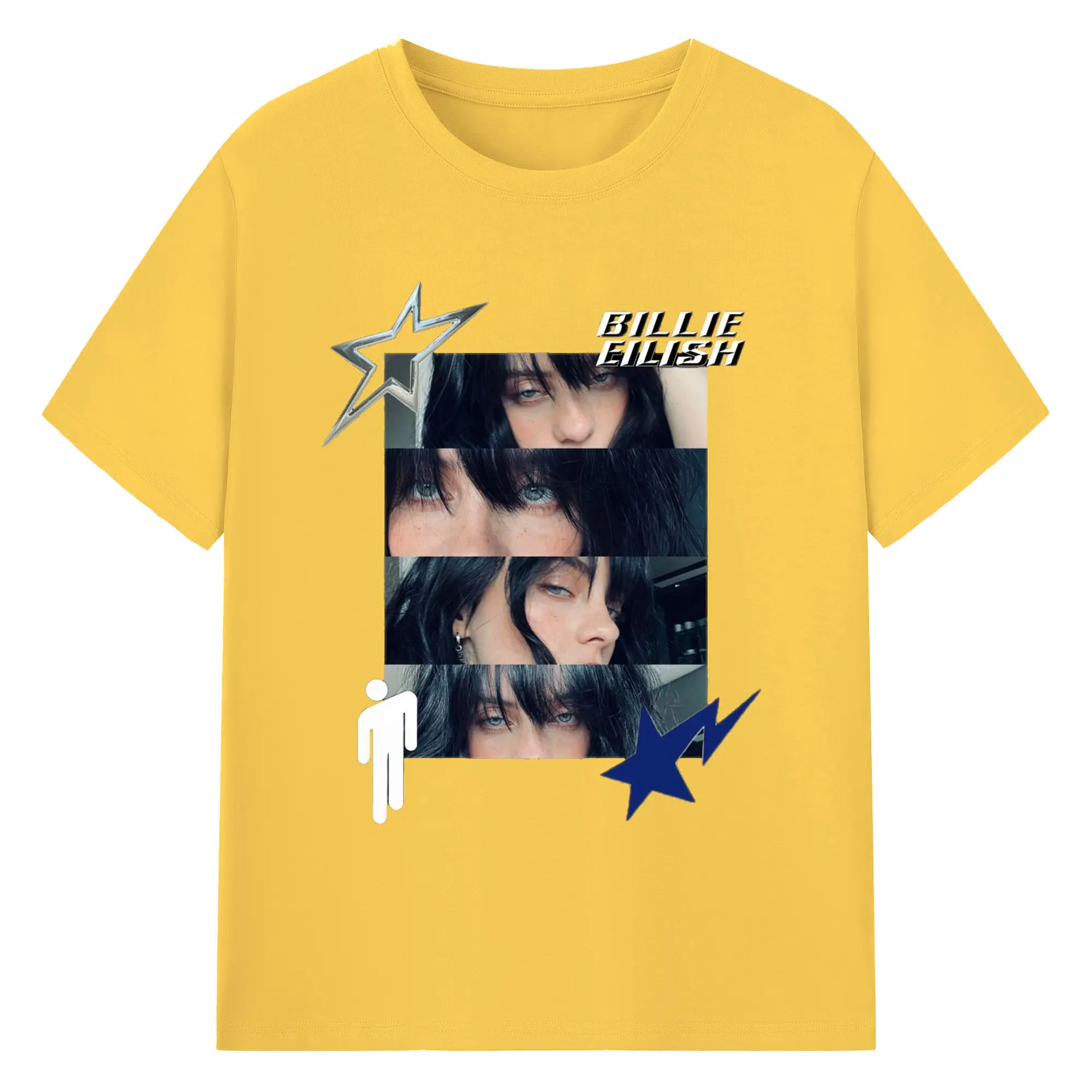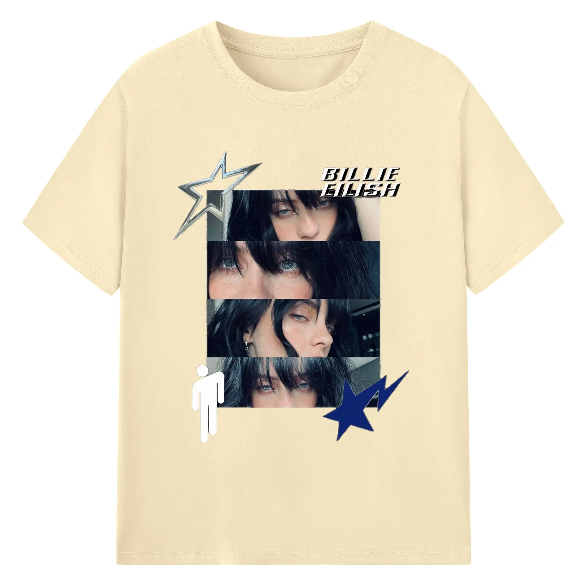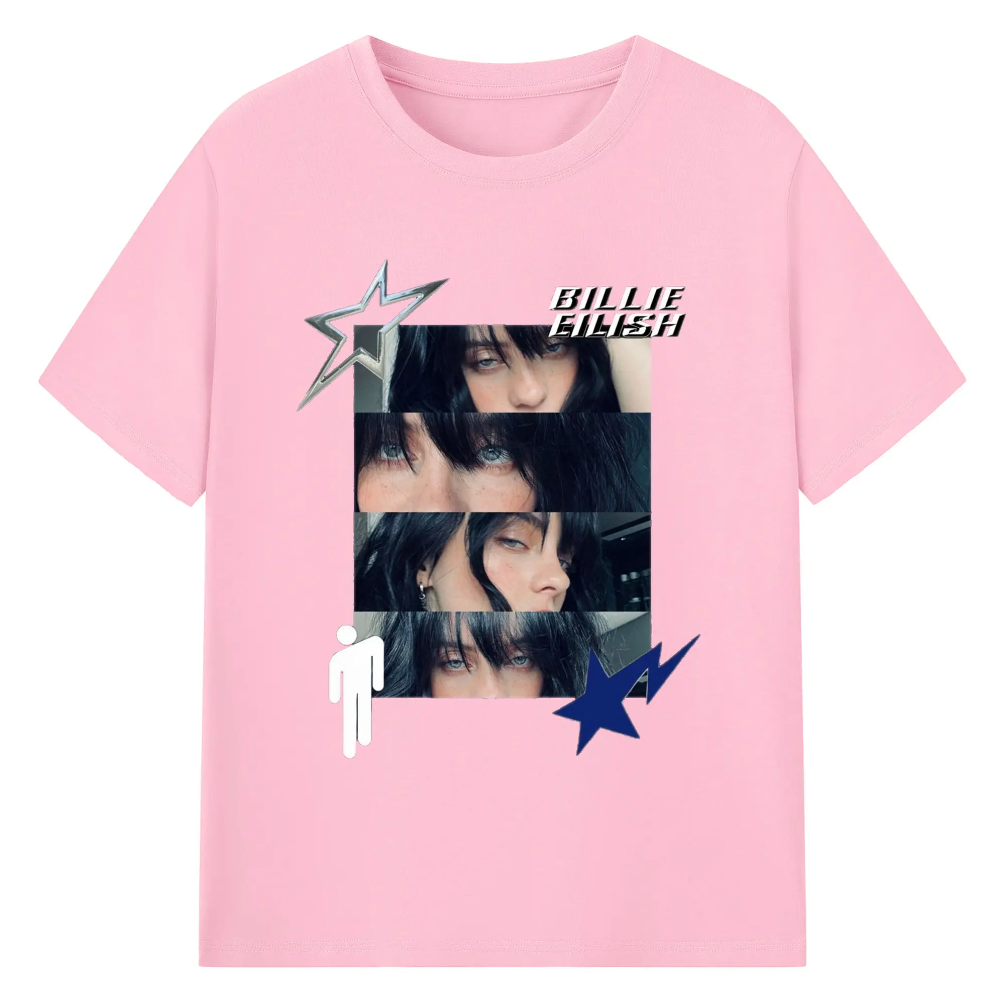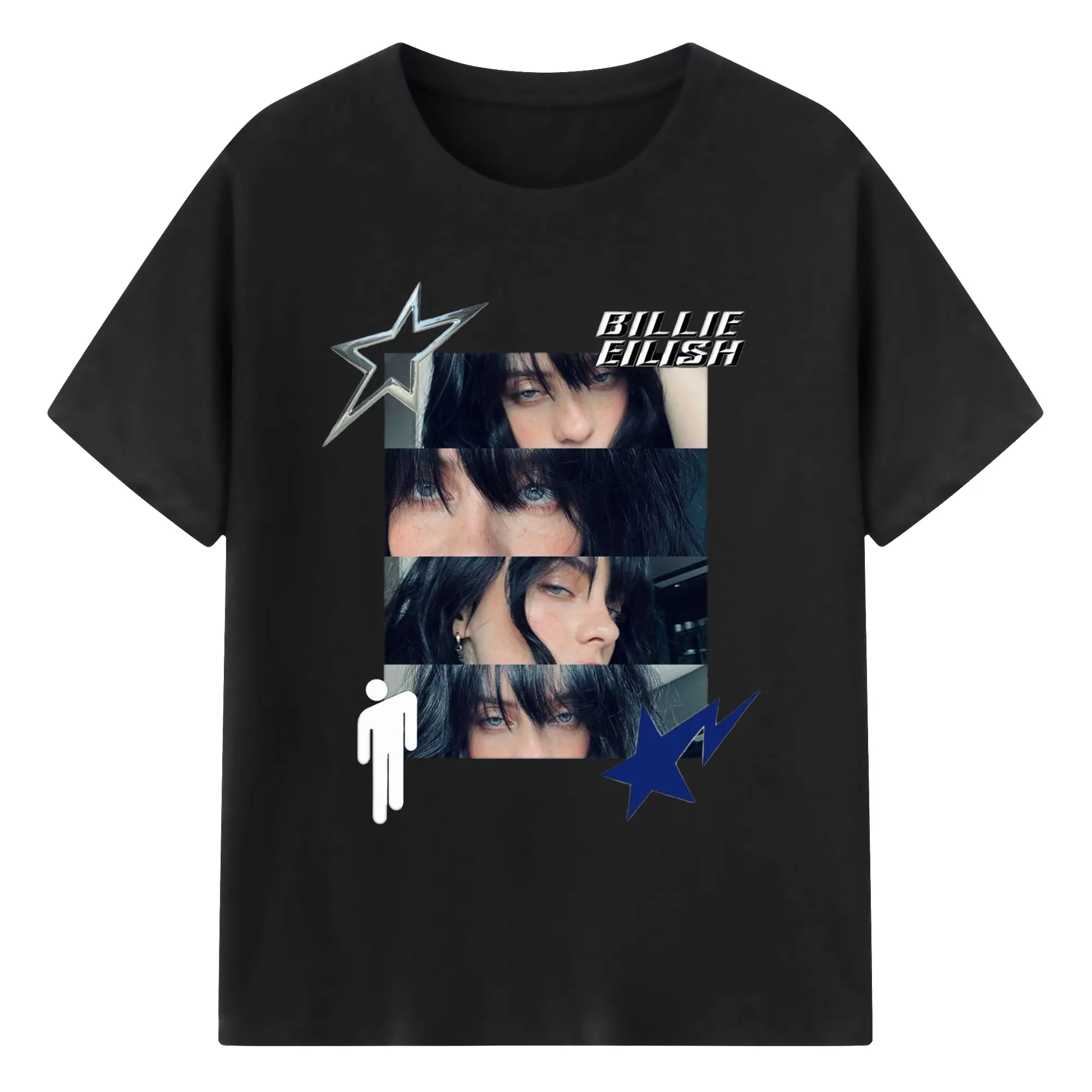 Billie Eilish Minimalist Star Collage DIY - 180g Cotton T-Shirt With Front Heat Transfer Print – Soft, Lightweight, Fitted Design – Comfortable Casual Wear For Sports & Everyday Use