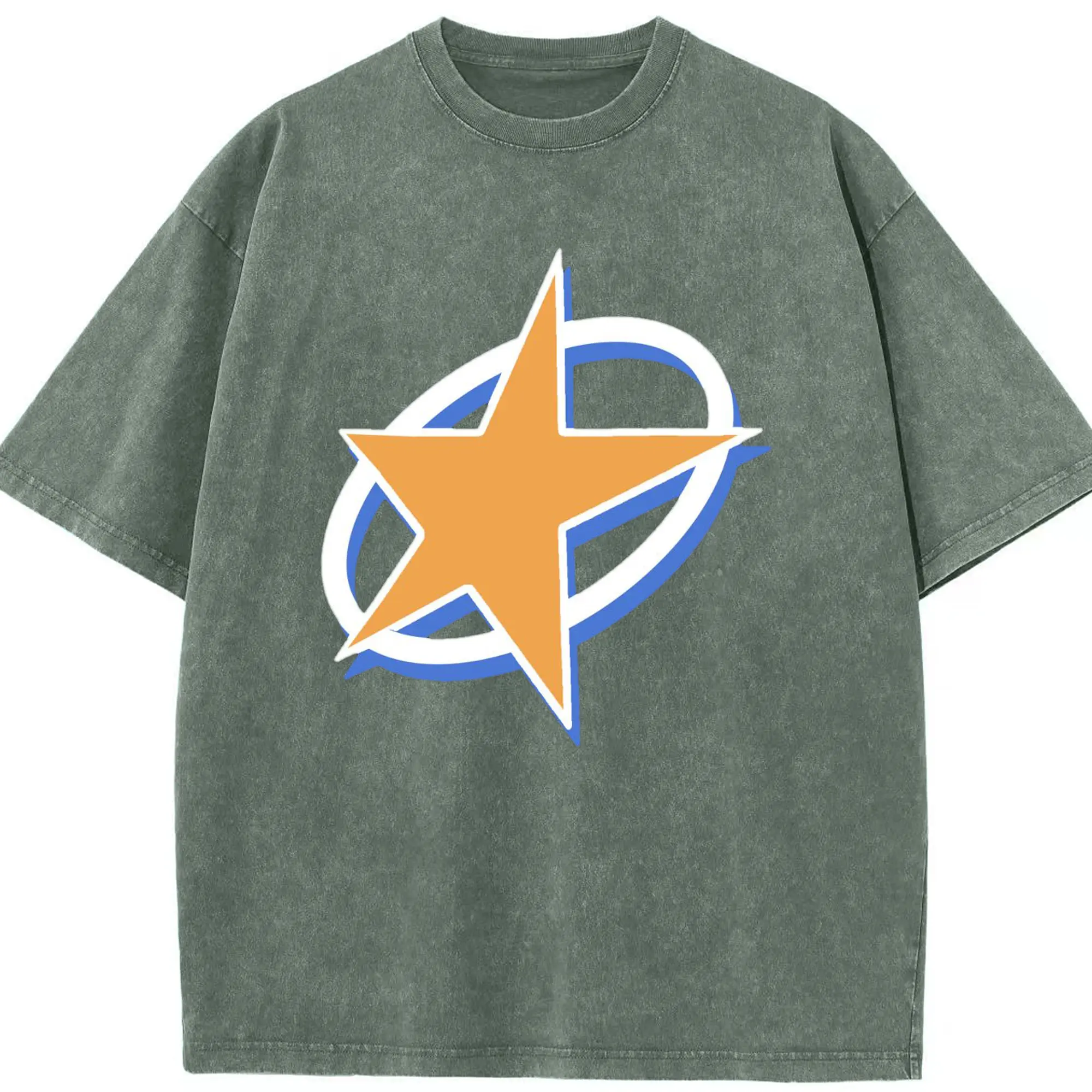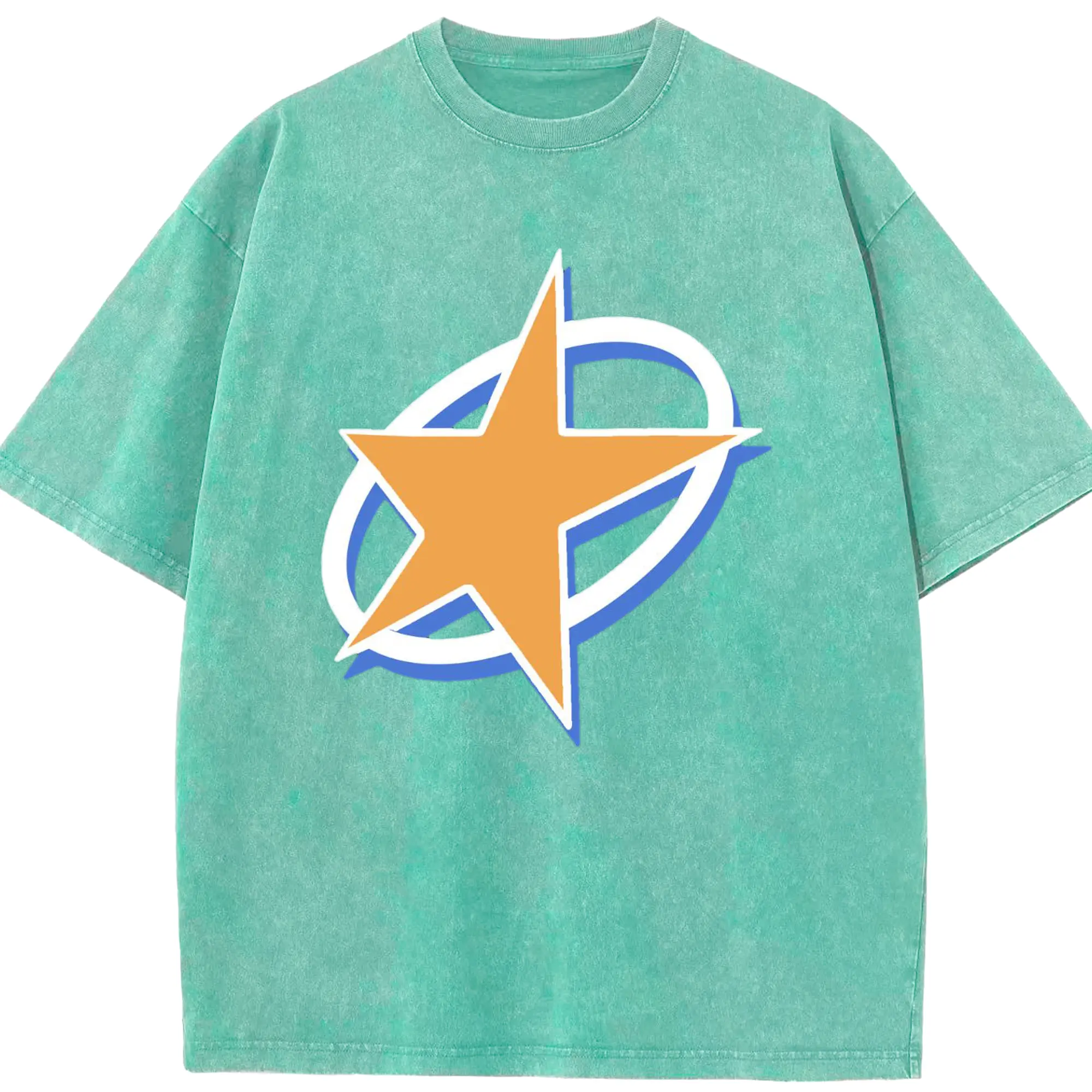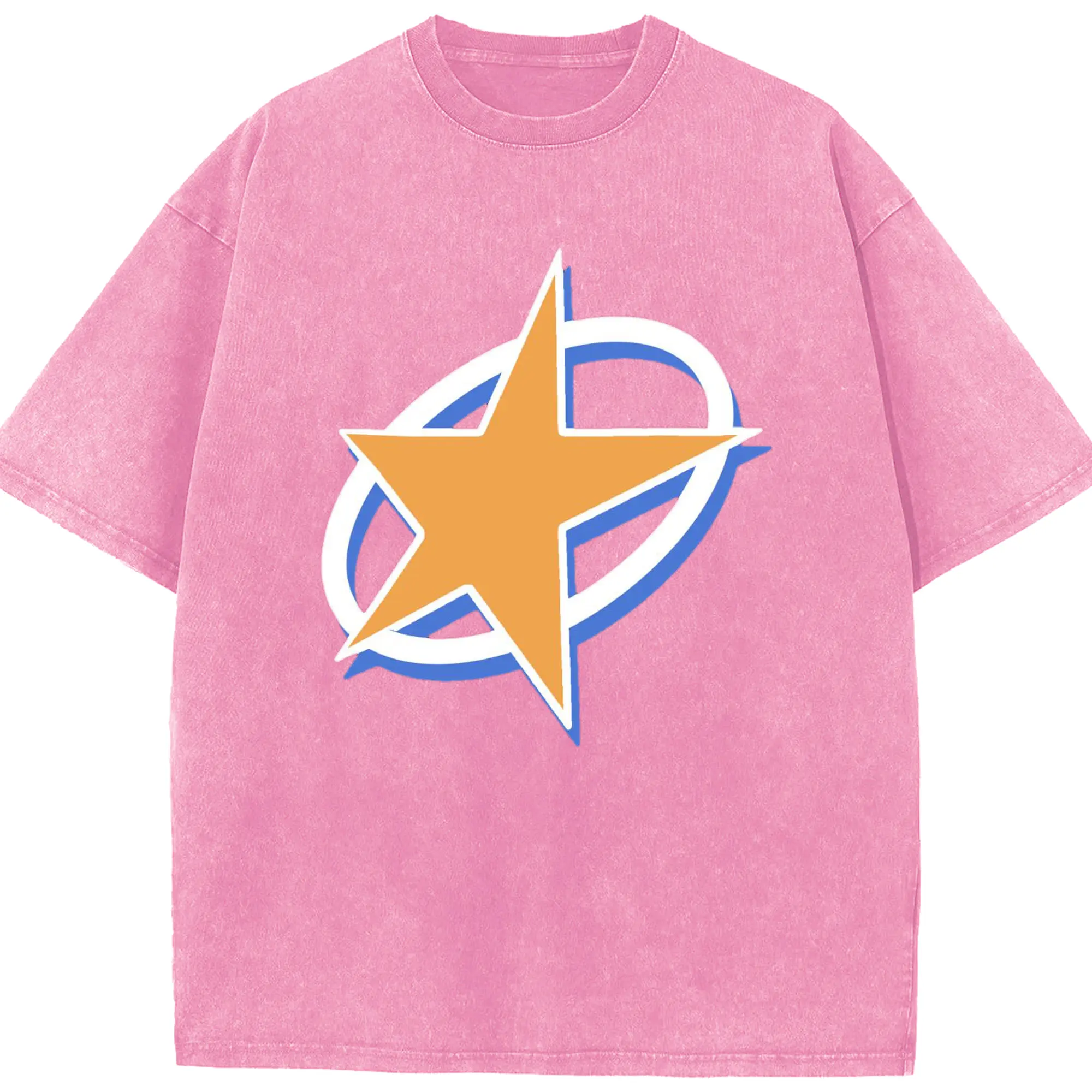 Billie Eilish Orange Star Graphic DIY Shirt - Washed Vintage Look 230g Cotton Oversized T-Shirt With Front Heat Transfer Print – Soft, Lightweight, Stylish Fit – Comfortable Casual Wear For Sports & Everyday Use