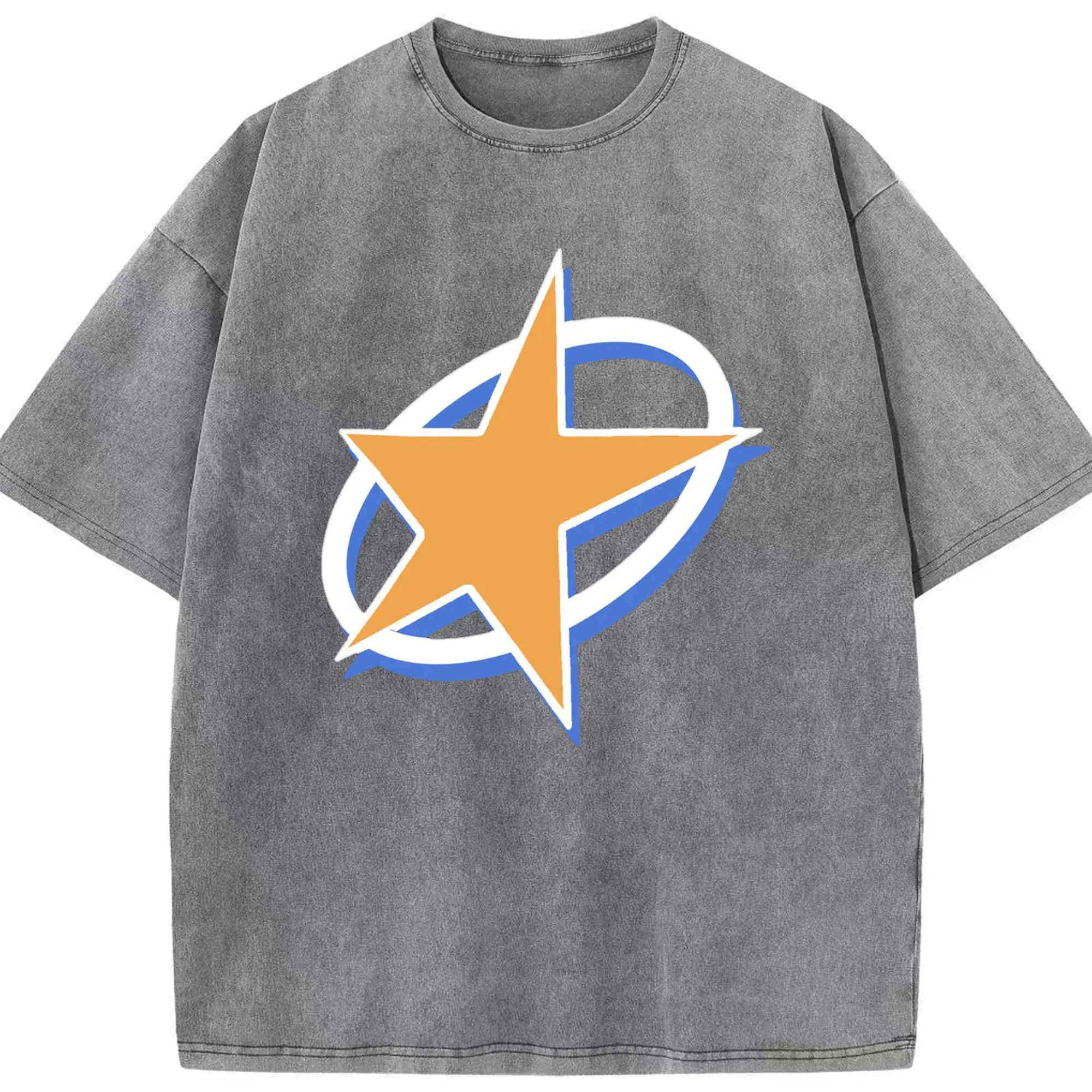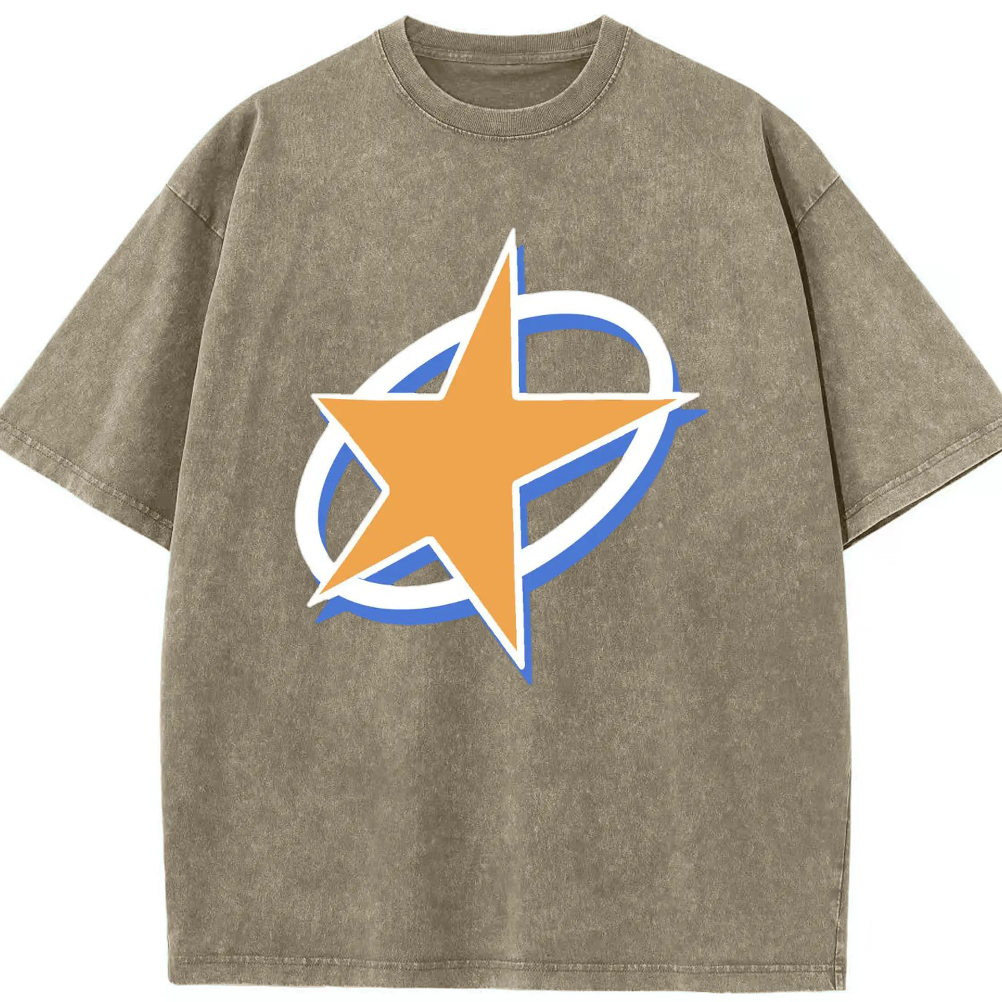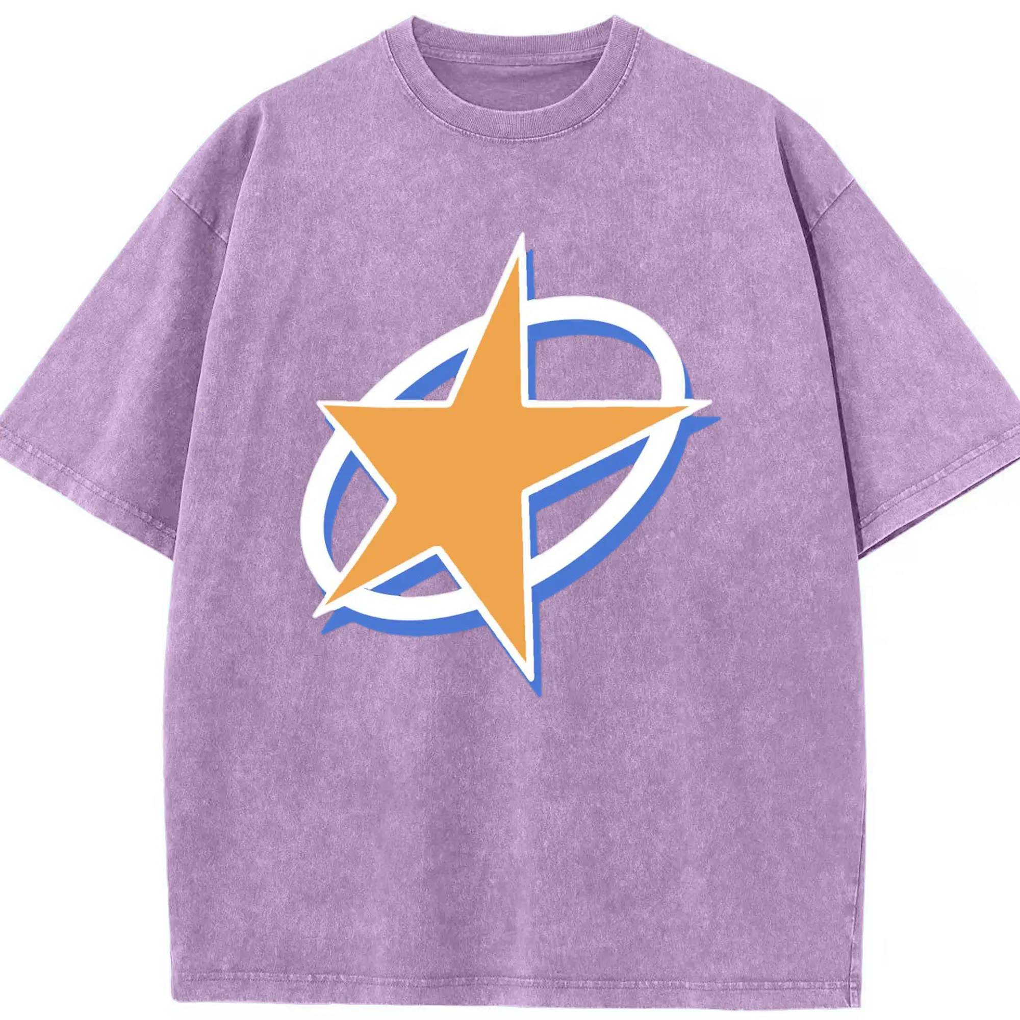 Billie Eilish Orange Star Graphic DIY Shirt - Washed Vintage Look 230g Cotton Oversized T-Shirt With Front Heat Transfer Print – Soft, Lightweight, Stylish Fit – Comfortable Casual Wear For Sports & Everyday Use