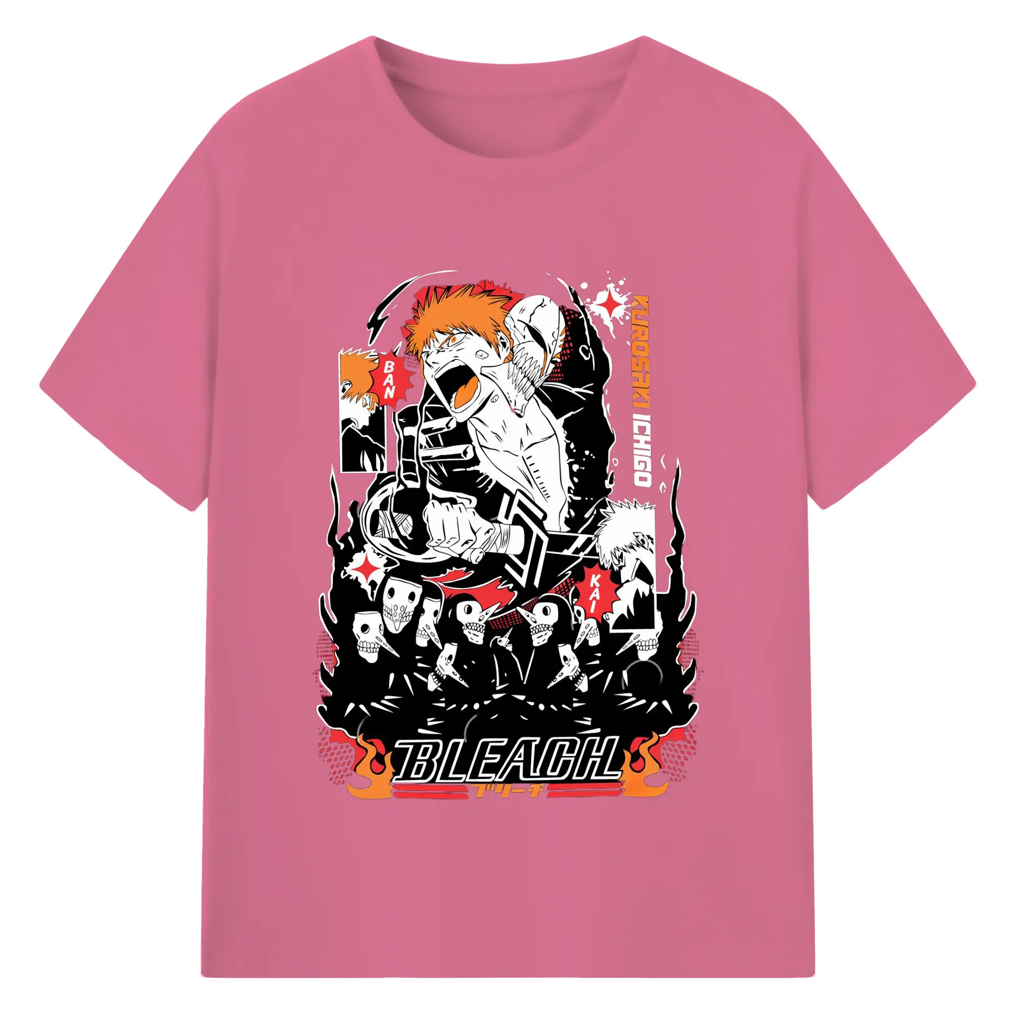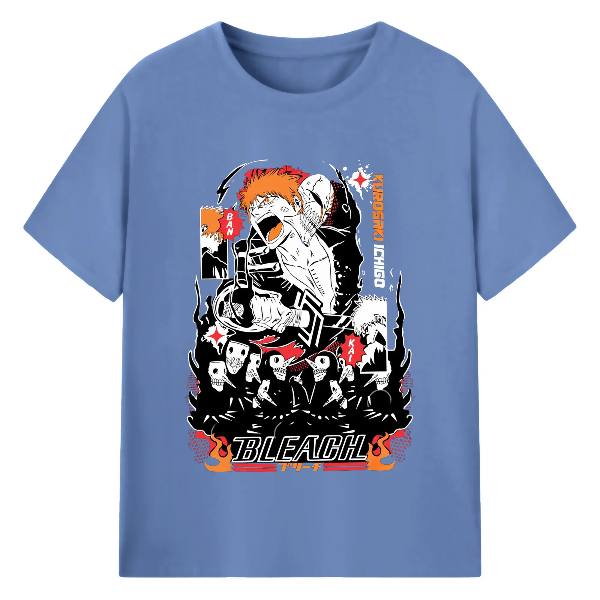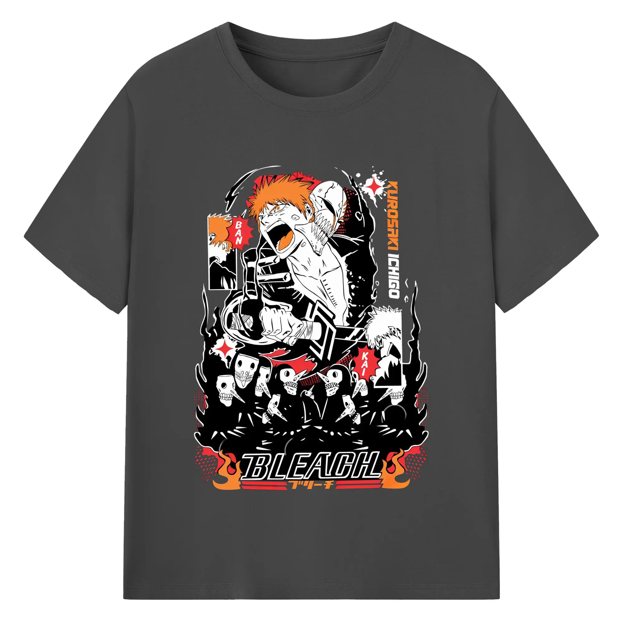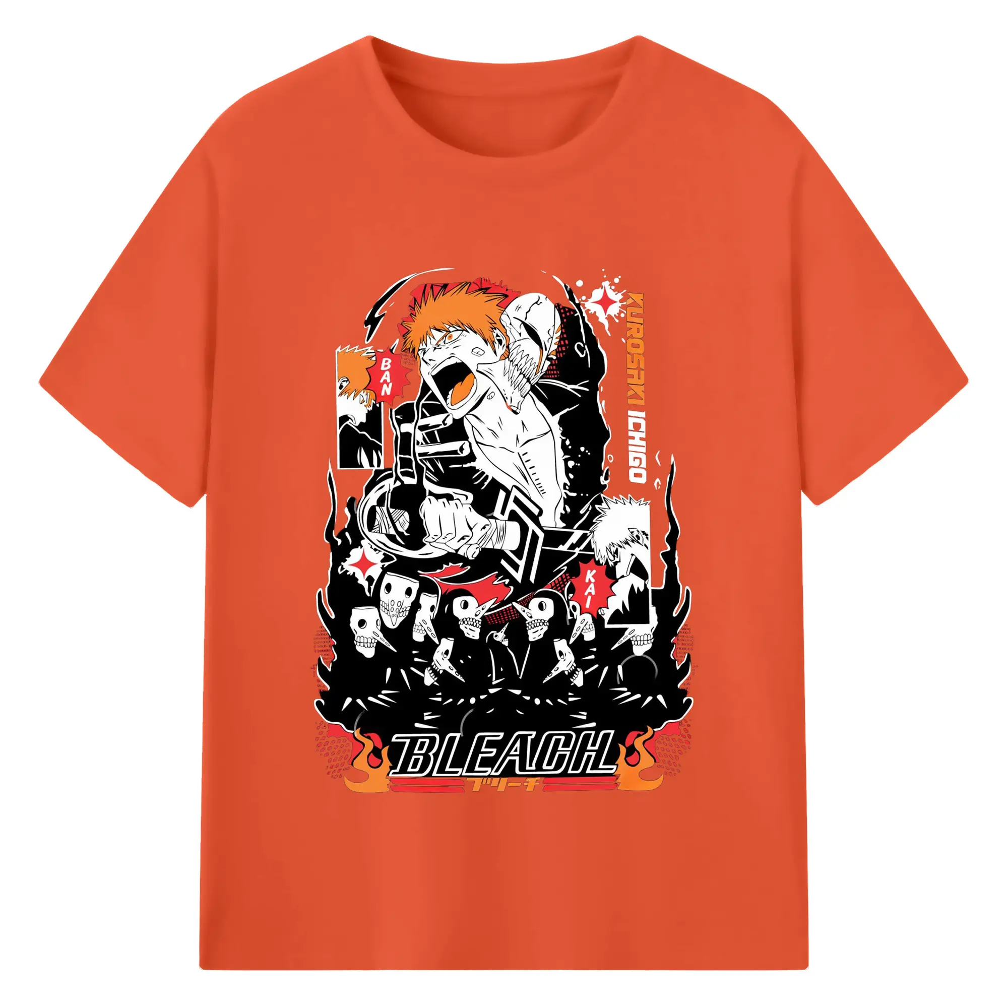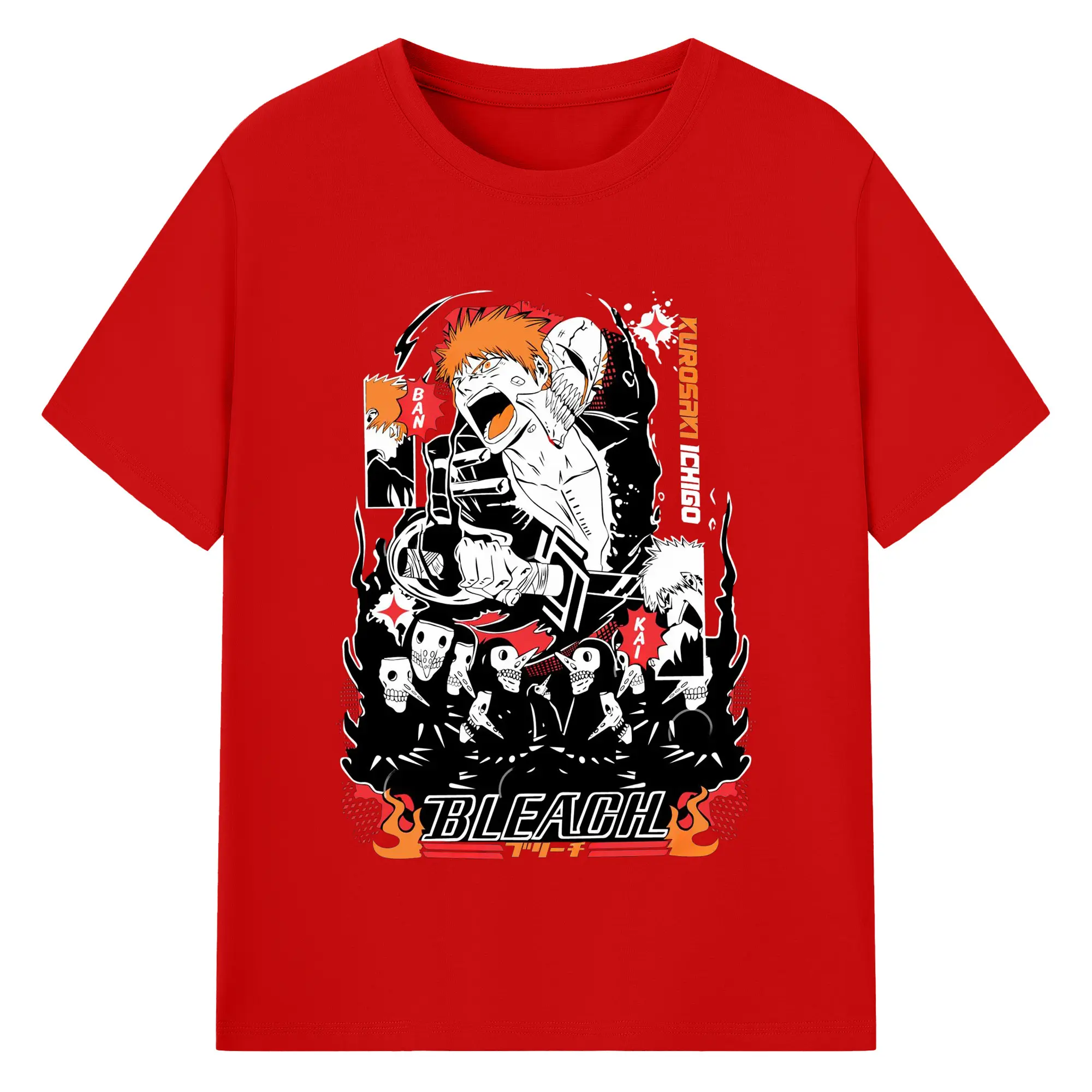 BLEACH Kurosaki Ichigo Bankai Anime DIY - 180g Cotton T-Shirt With Front Heat Transfer Print – Soft, Lightweight, Fitted Design – Comfortable Casual Wear For Sports & Everyday Use