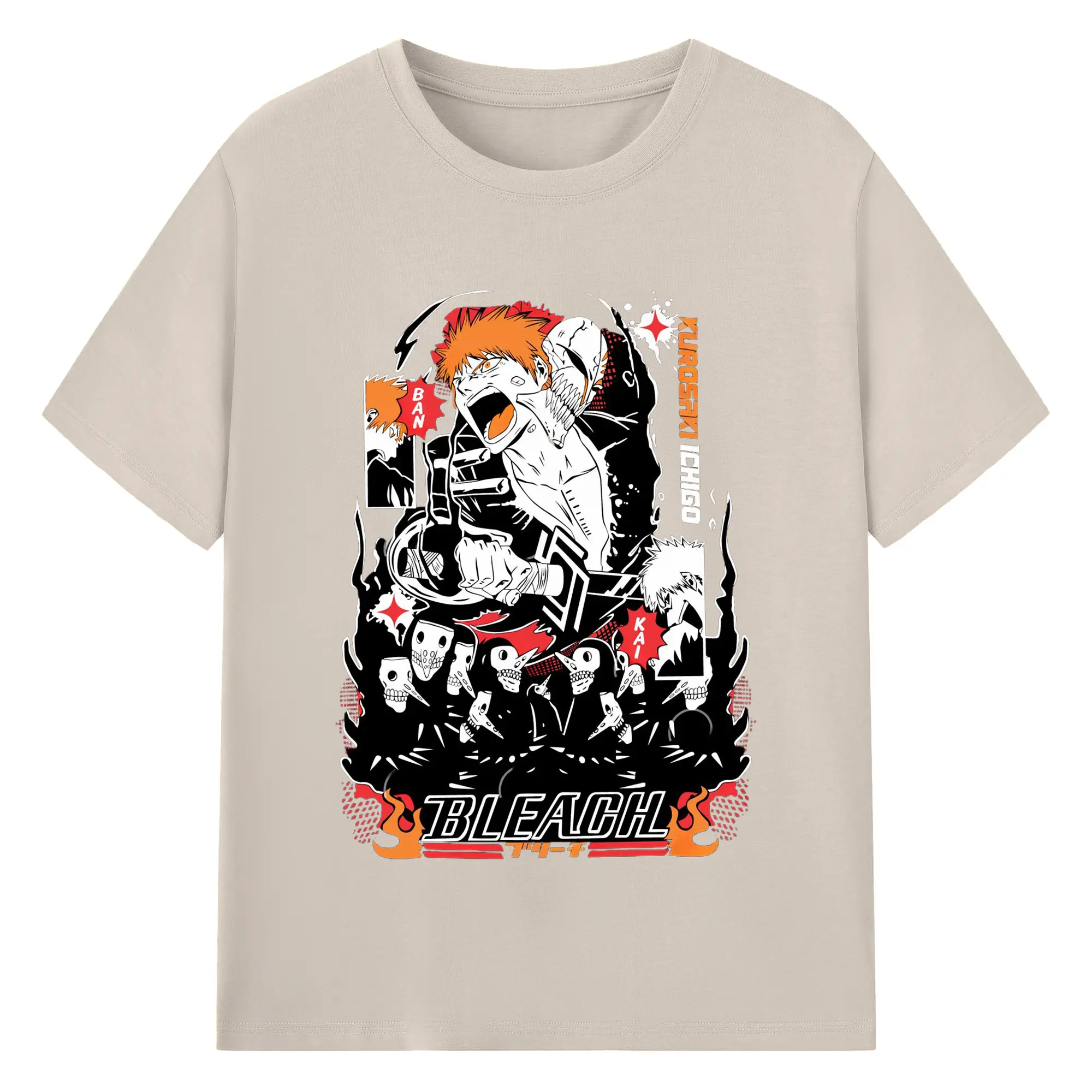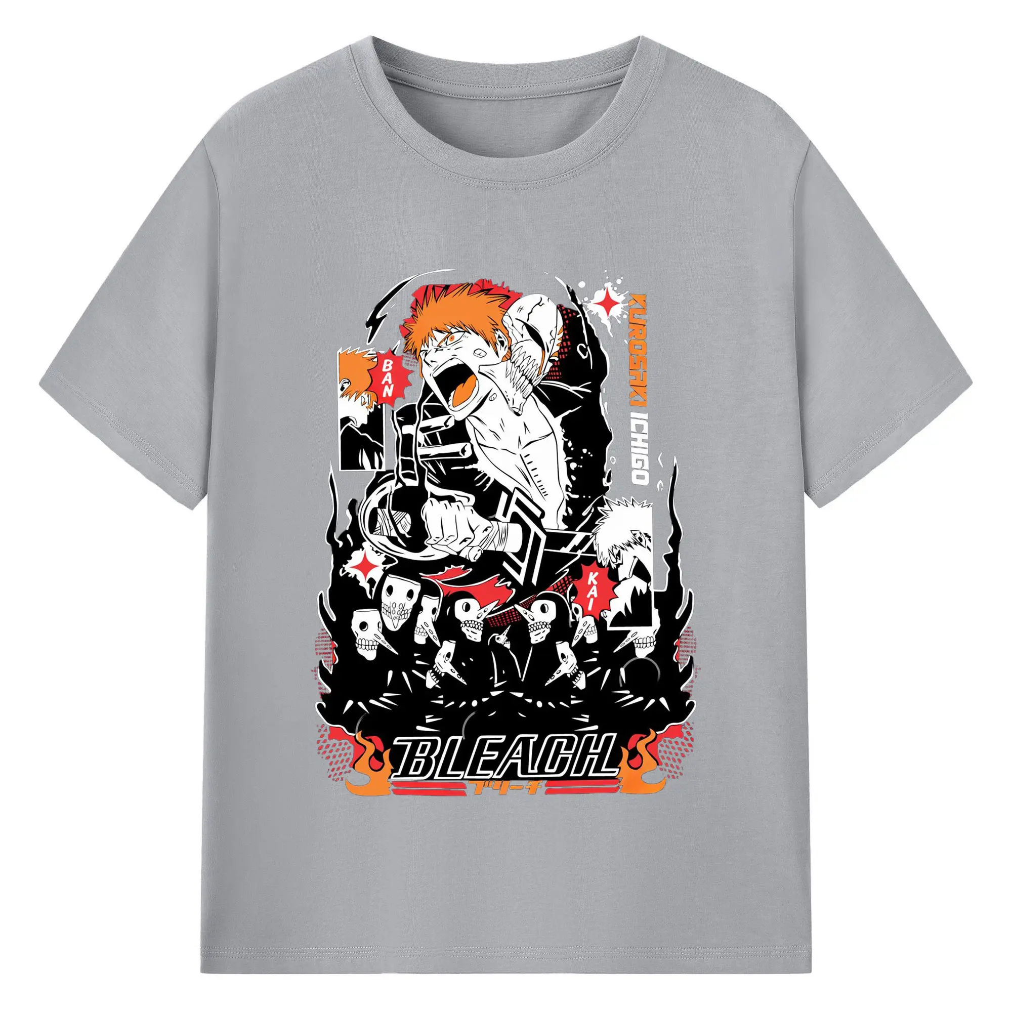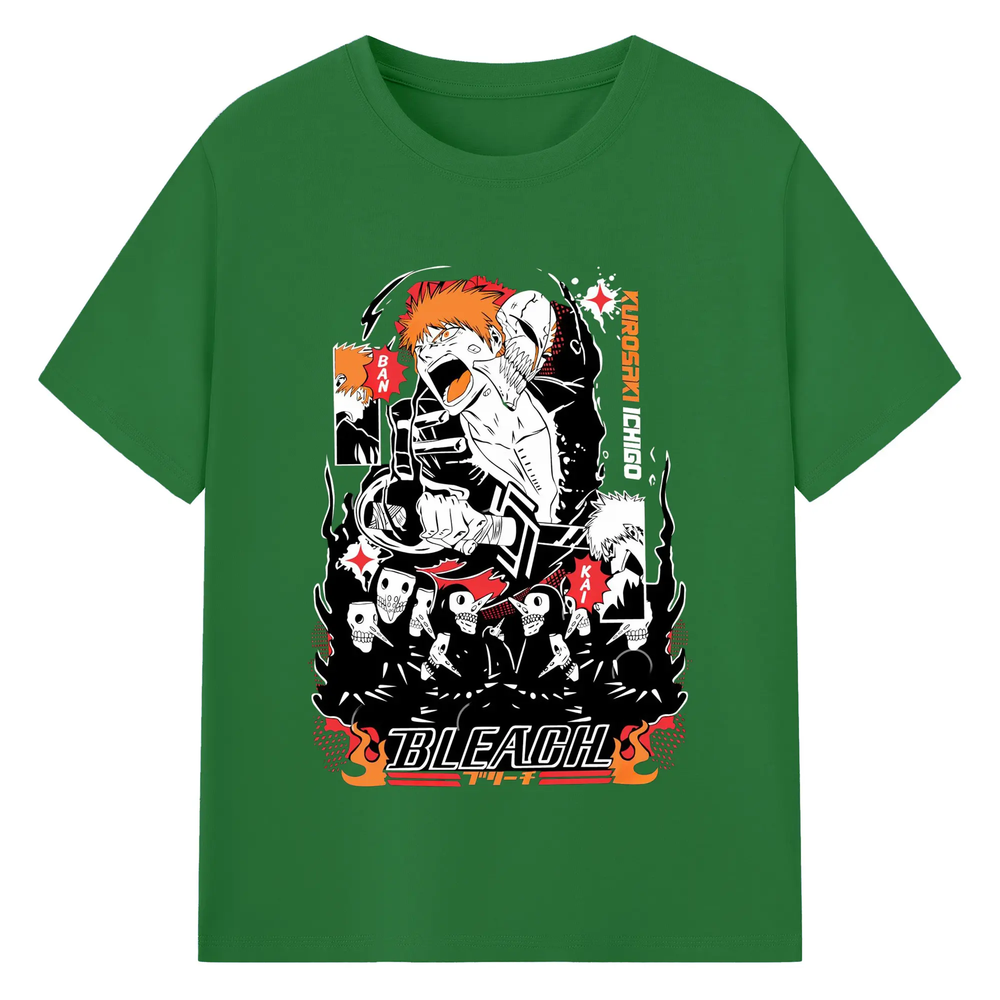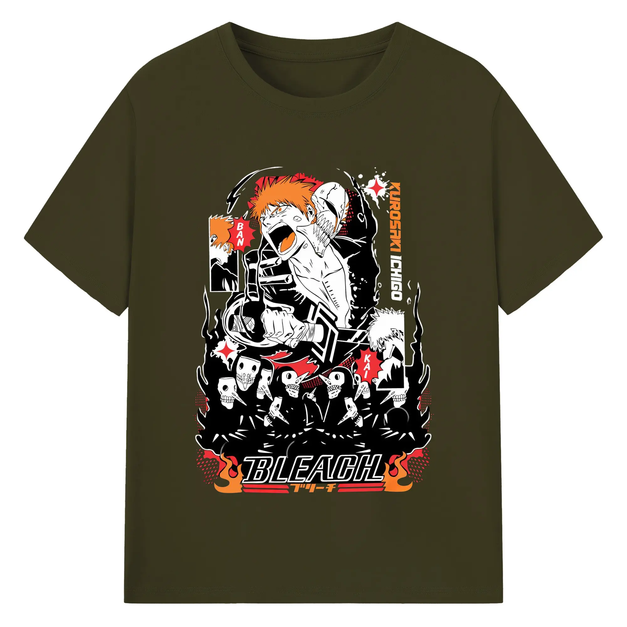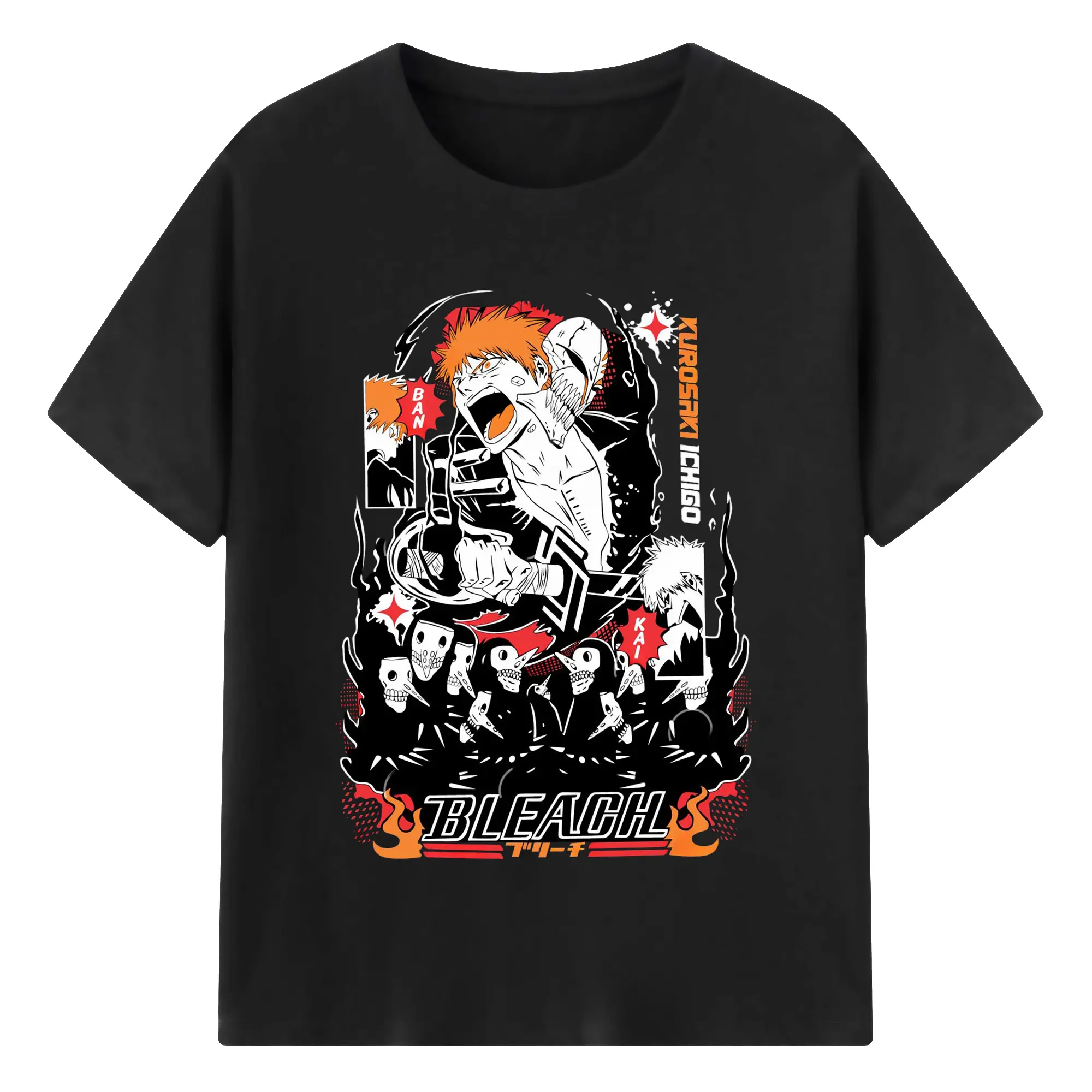 BLEACH Kurosaki Ichigo Bankai Anime DIY - 180g Cotton T-Shirt With Front Heat Transfer Print – Soft, Lightweight, Fitted Design – Comfortable Casual Wear For Sports & Everyday Use