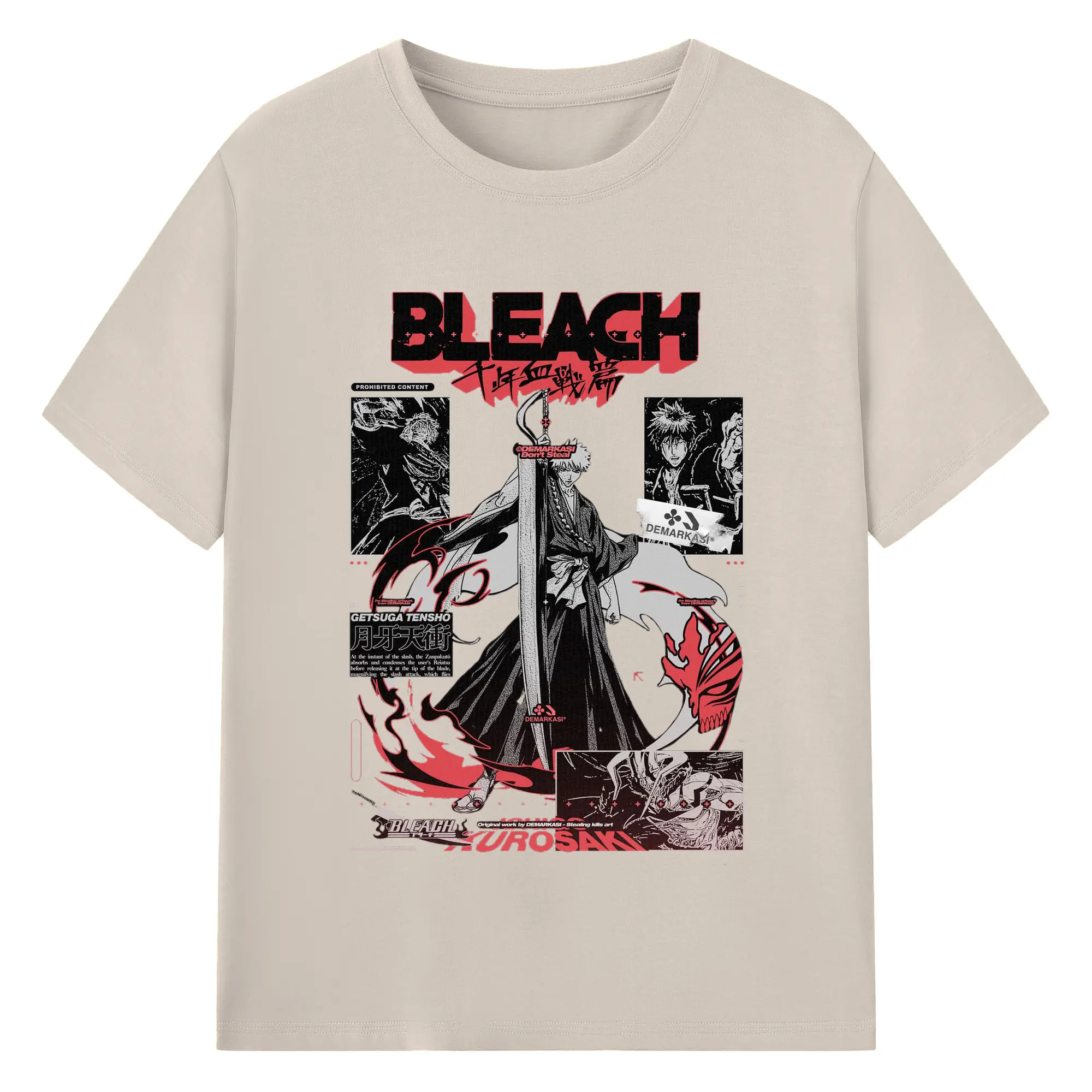 BLEACH Thousand-Year Blood War Getsuga Tensho DIY - 180g Cotton T-Shirt With Front Heat Transfer Print – Soft, Lightweight, Fitted Design – Comfortable Casual Wear For Sports & Everyday Use