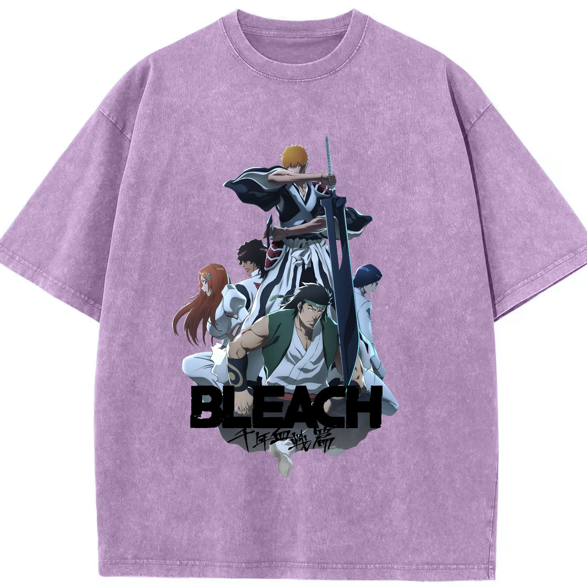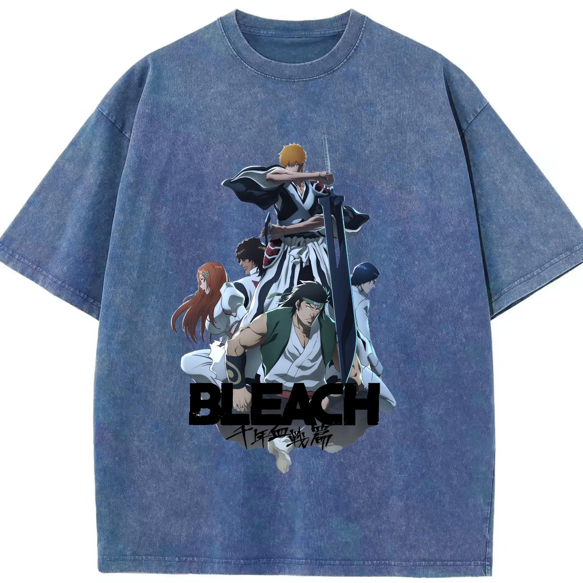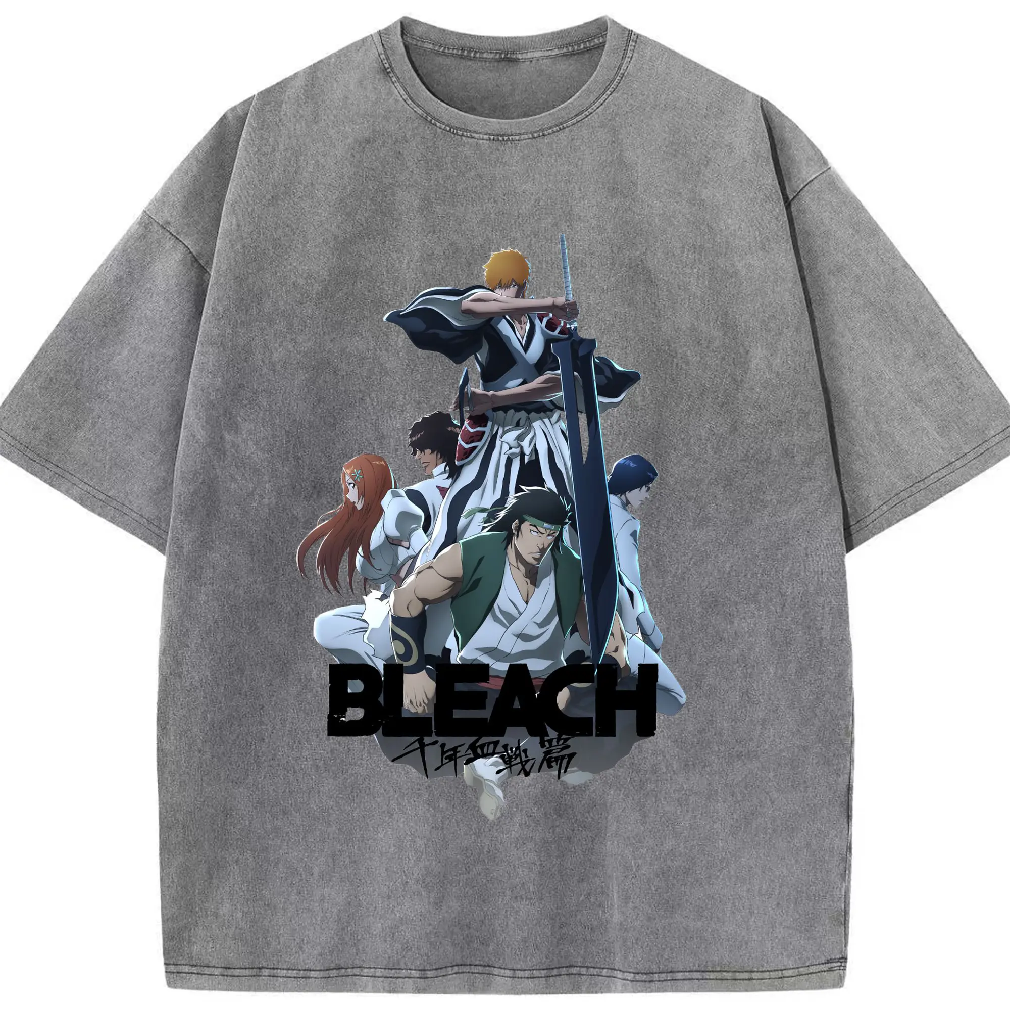 BLEACH Thousand-Year Blood War Group Anime DIY - Washed Vintage Look 230g Cotton Oversized T-Shirt With Front Heat Transfer Print – Soft, Lightweight, Stylish Fit – Comfortable Casual Wear For Sports & Everyday Use