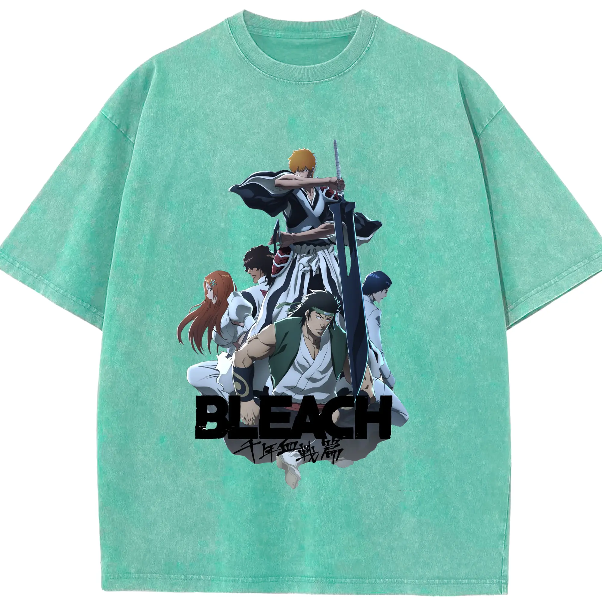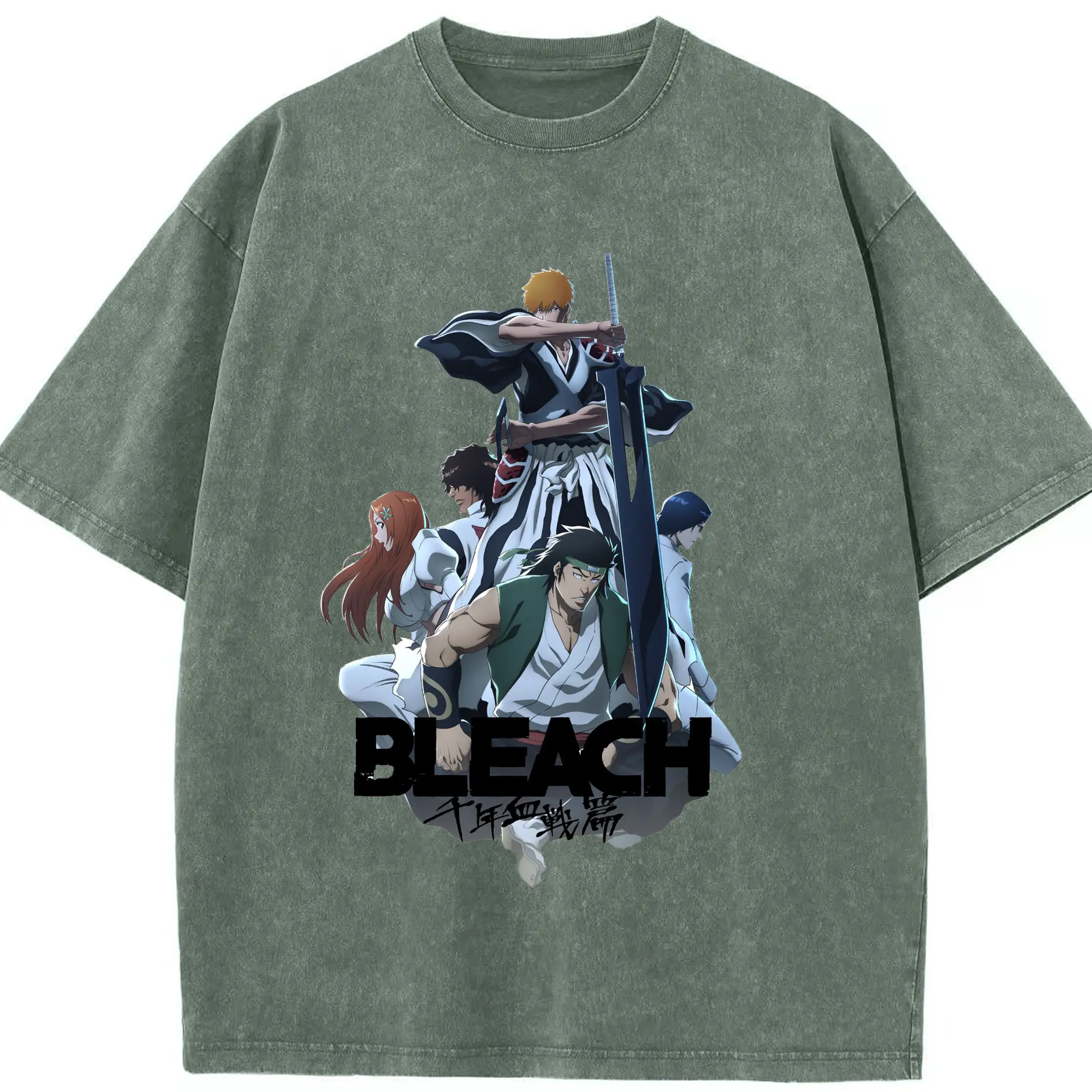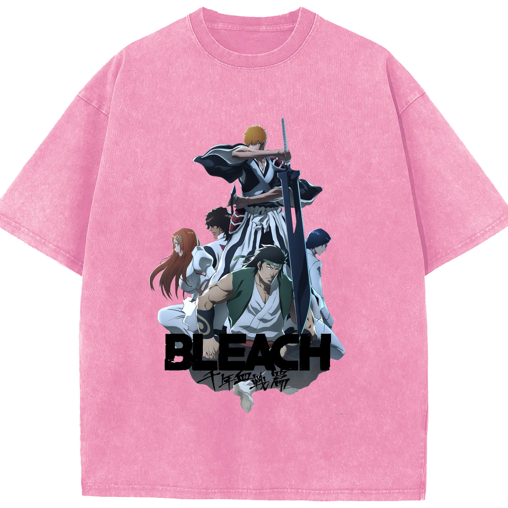 BLEACH Thousand-Year Blood War Group Anime DIY - Washed Vintage Look 230g Cotton Oversized T-Shirt With Front Heat Transfer Print – Soft, Lightweight, Stylish Fit – Comfortable Casual Wear For Sports & Everyday Use
