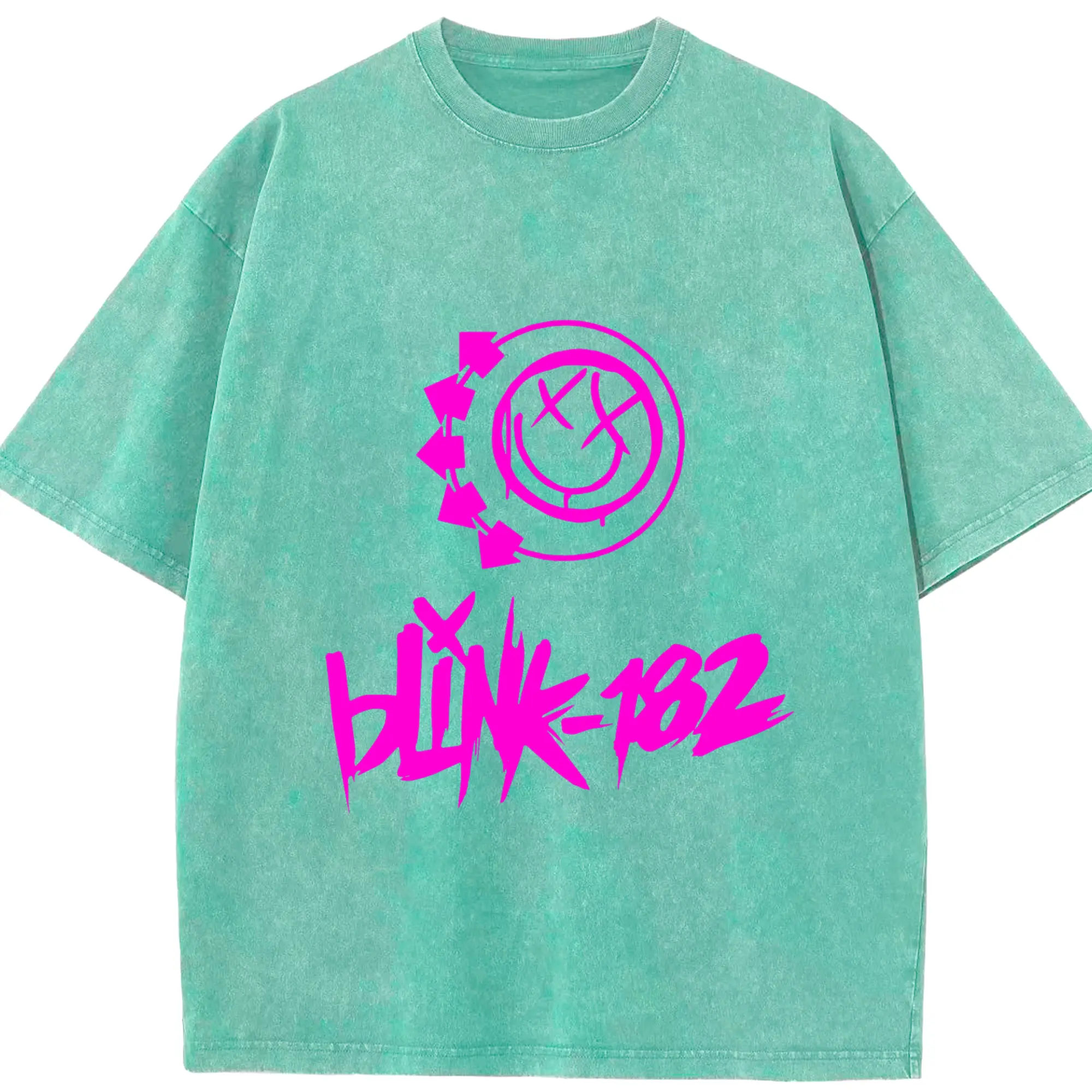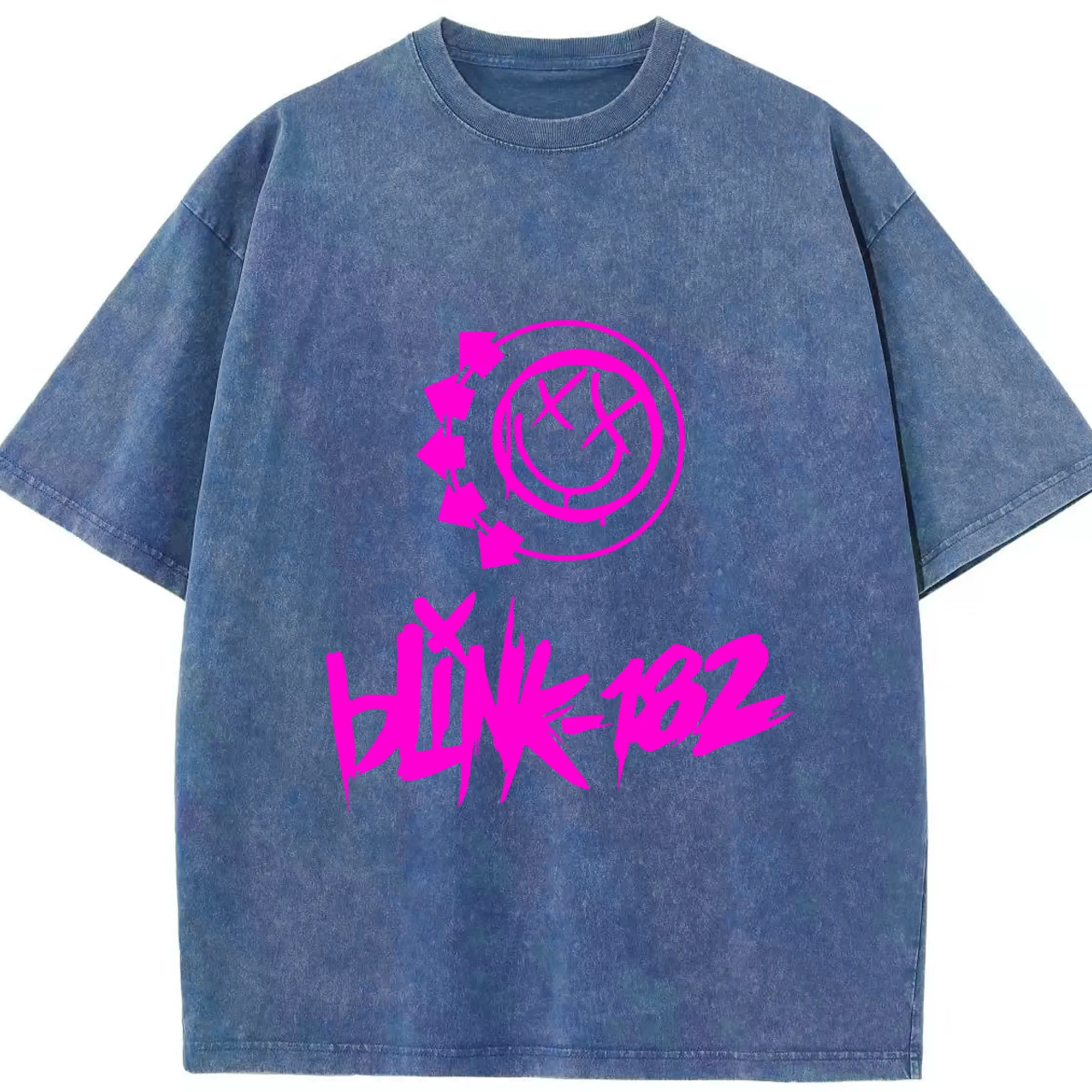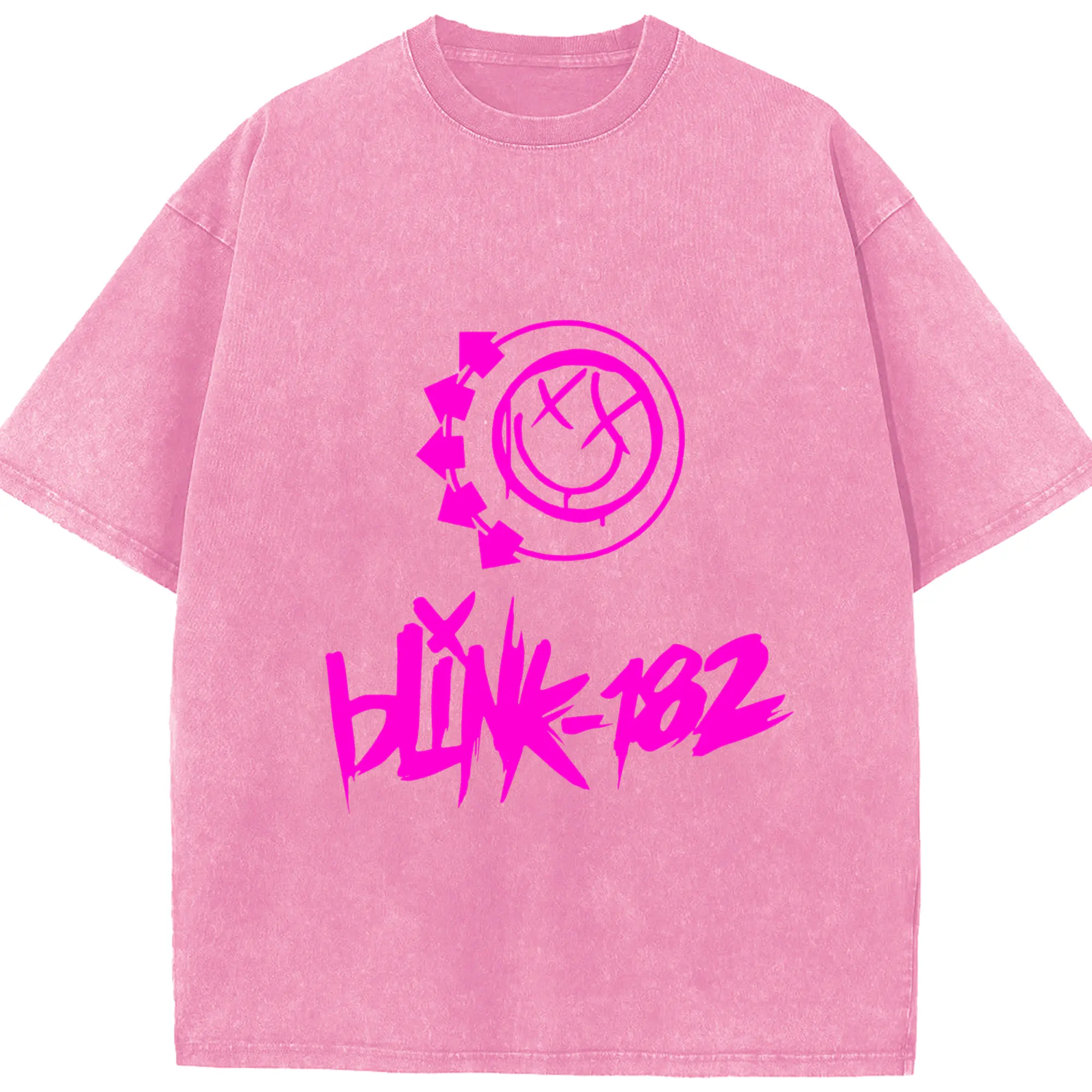 Blink-182 Punk Rock Graffiti Logo DIY - Washed Vintage Look 230g Cotton Oversized T-Shirt With Front Heat Transfer Print – Soft, Lightweight, Stylish Fit – Comfortable Casual Wear For Sports & Everyday Use