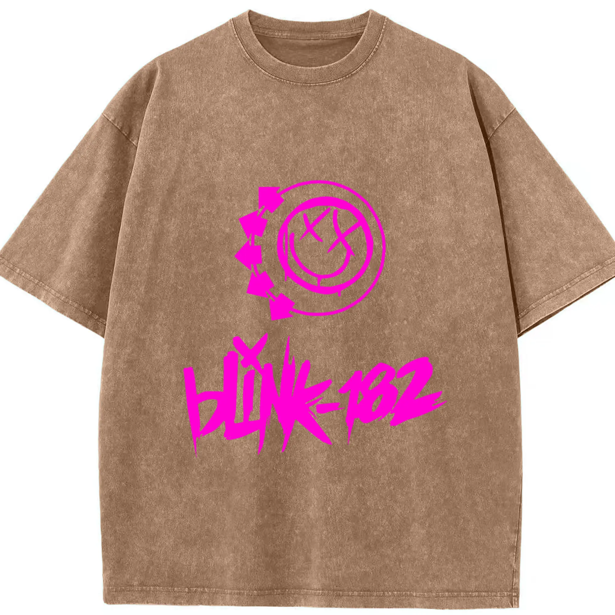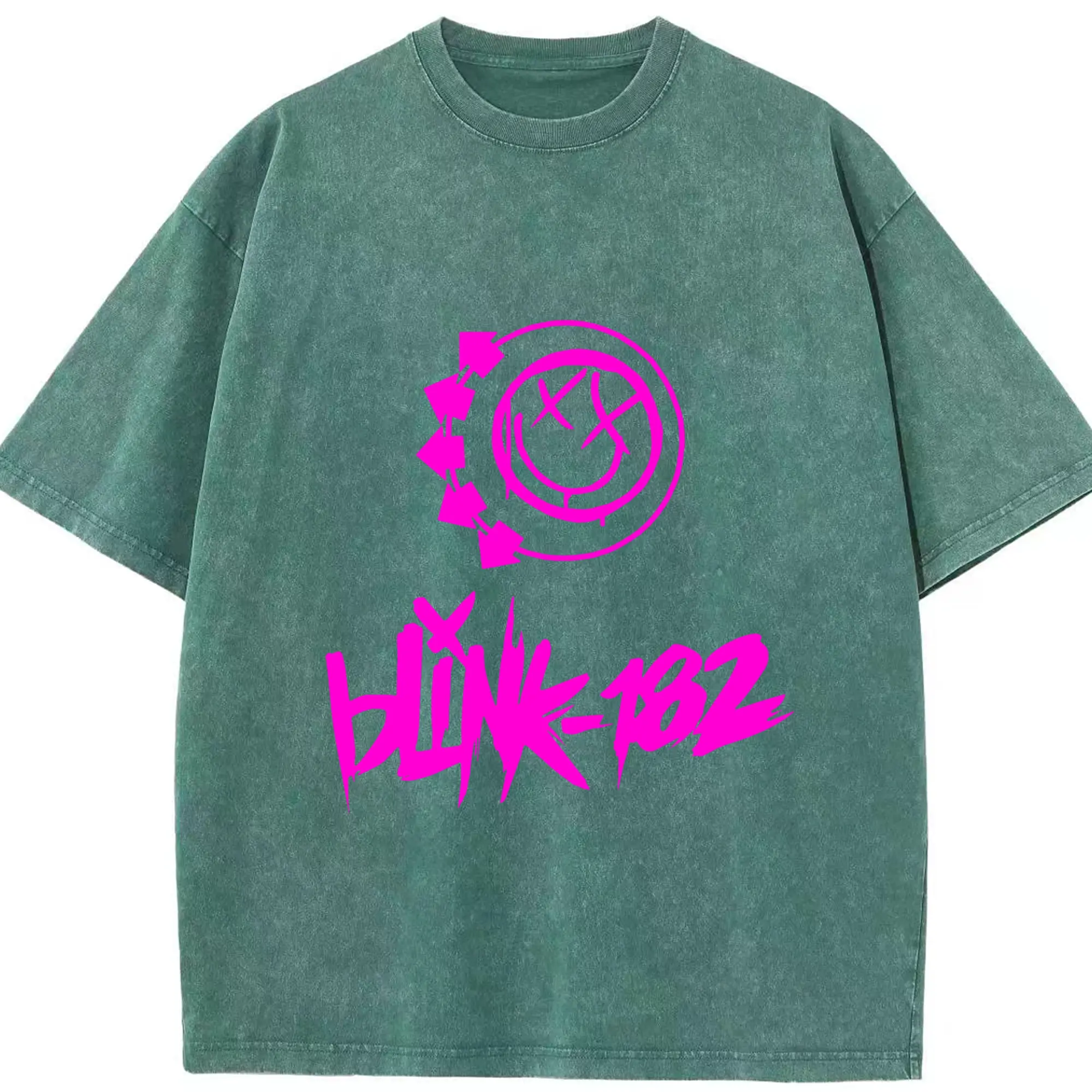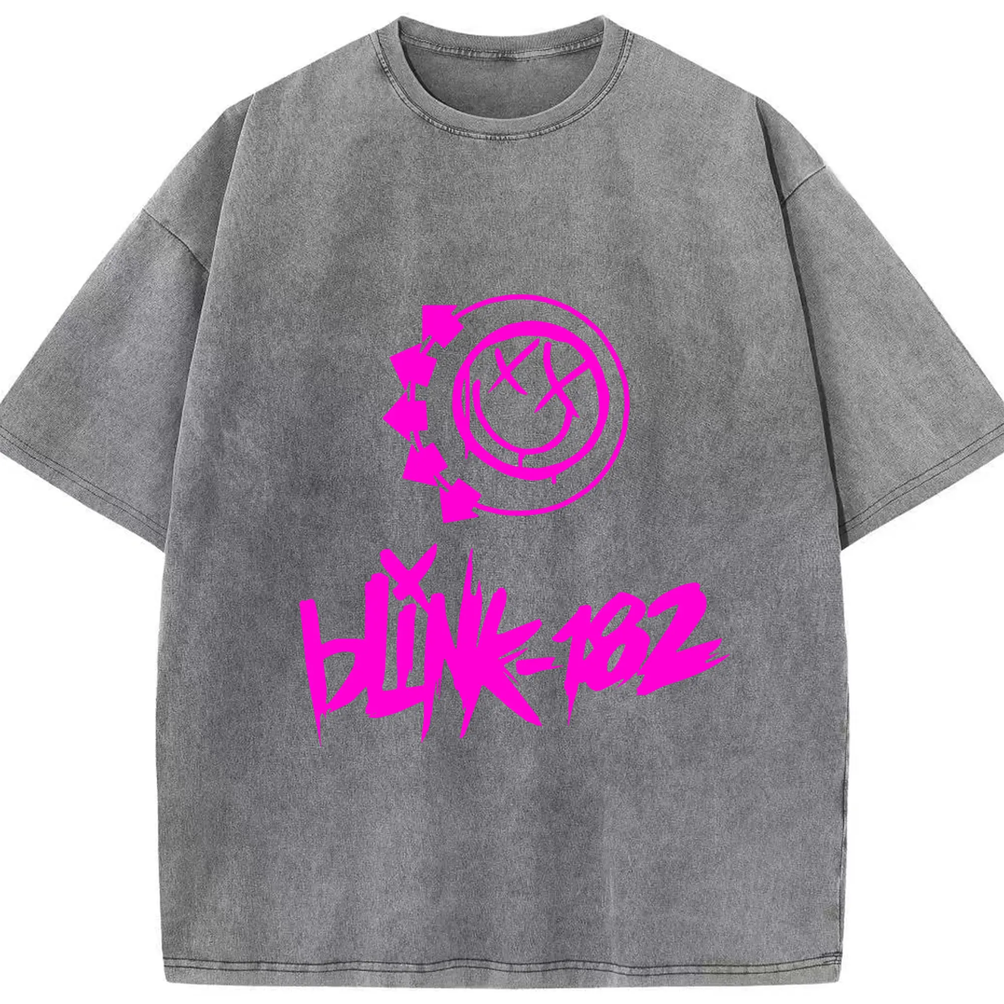 Blink-182 Punk Rock Graffiti Logo DIY - Washed Vintage Look 230g Cotton Oversized T-Shirt With Front Heat Transfer Print – Soft, Lightweight, Stylish Fit – Comfortable Casual Wear For Sports & Everyday Use