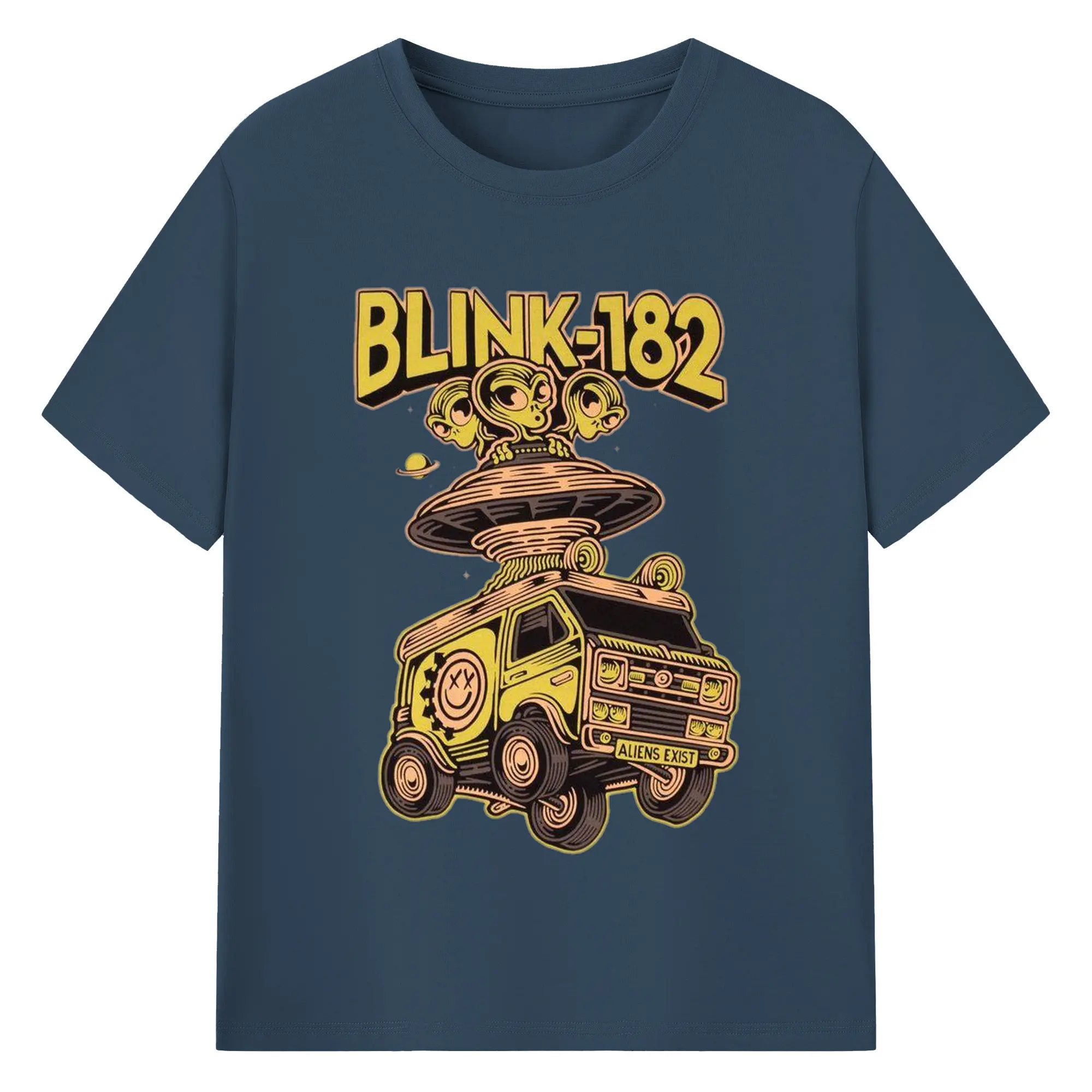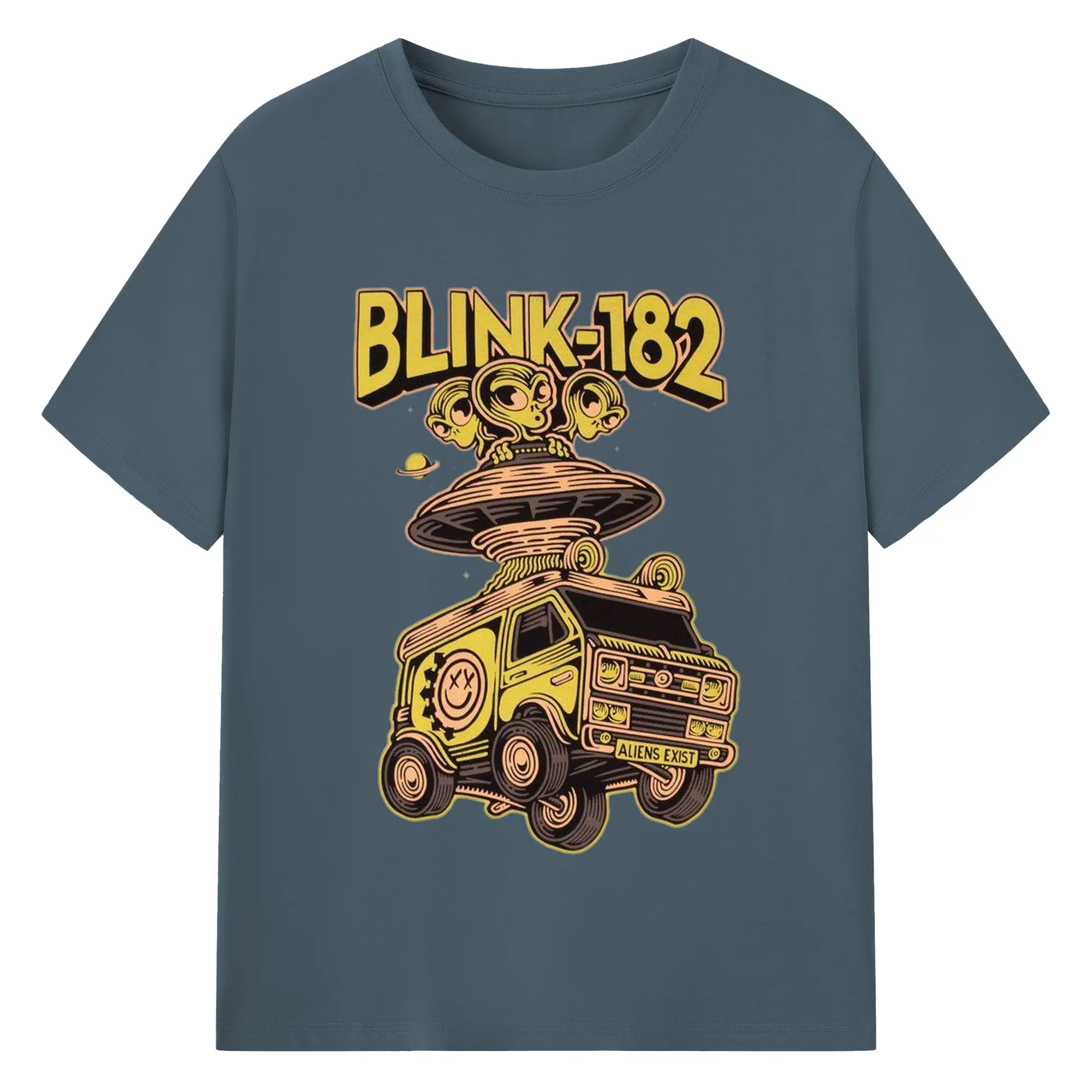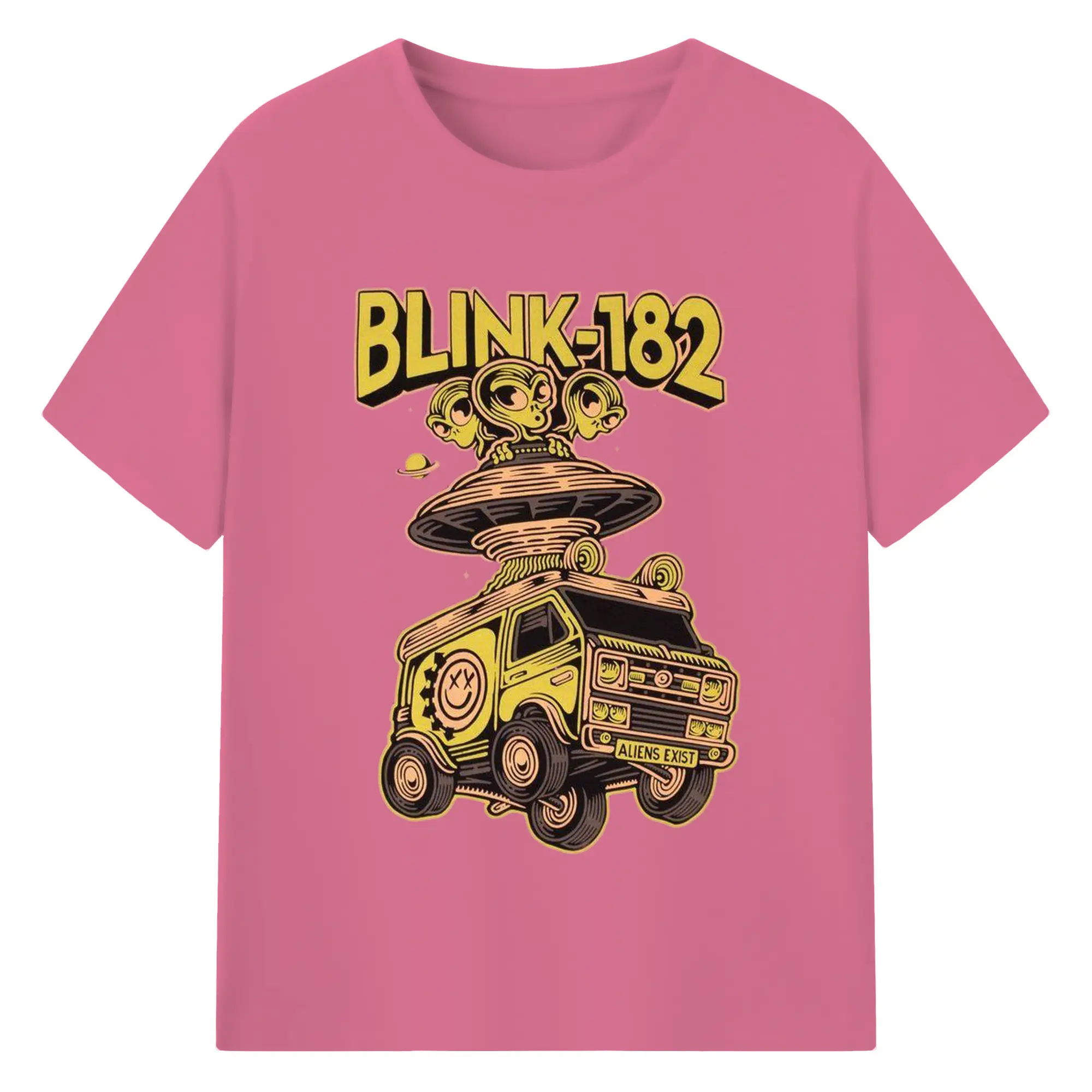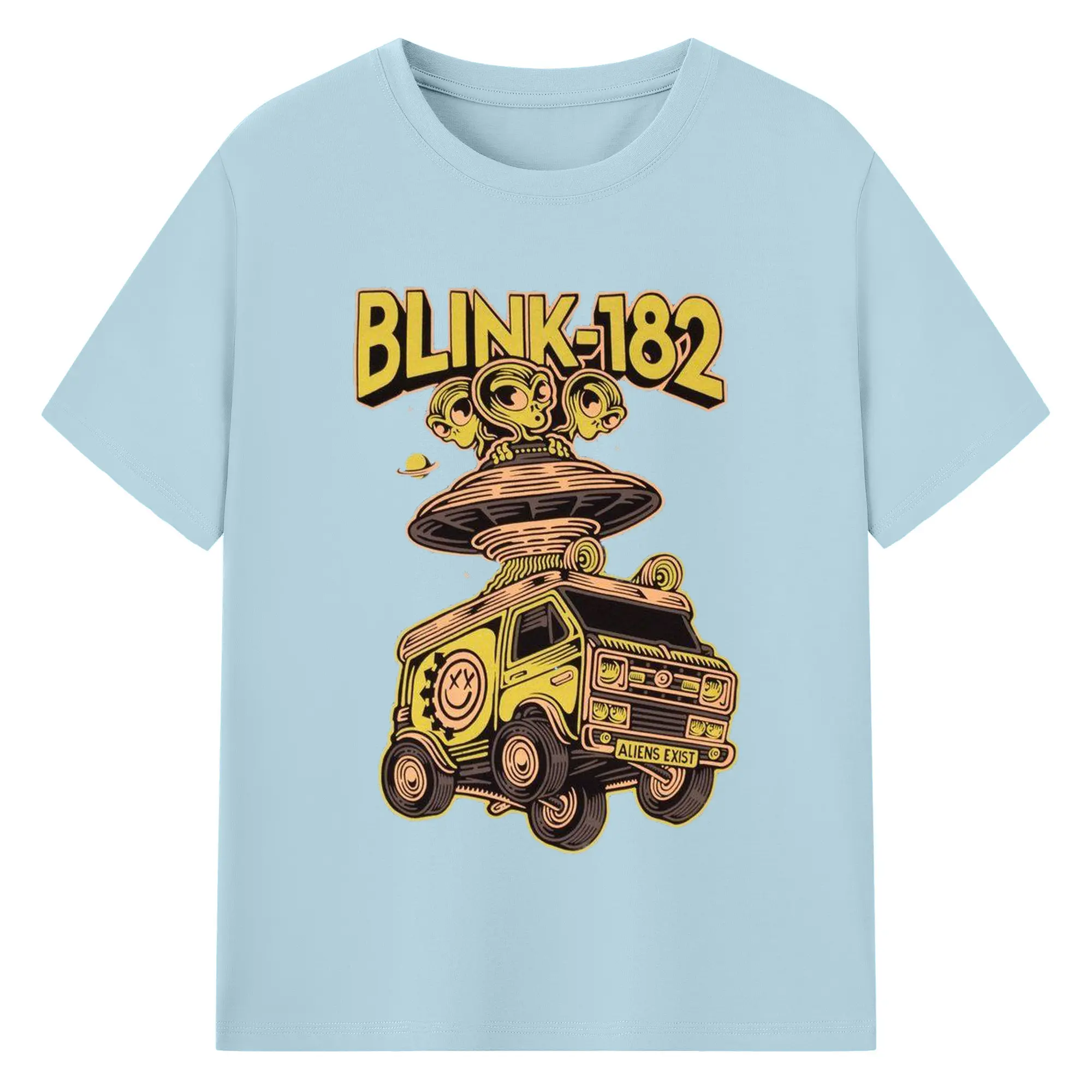 Blink-182 Retro Sci-Fi Alien Punk DIY - 180g Cotton T-Shirt With Front Heat Transfer Print – Soft, Lightweight, Fitted Design – Comfortable Casual Wear For Sports & Everyday Use
