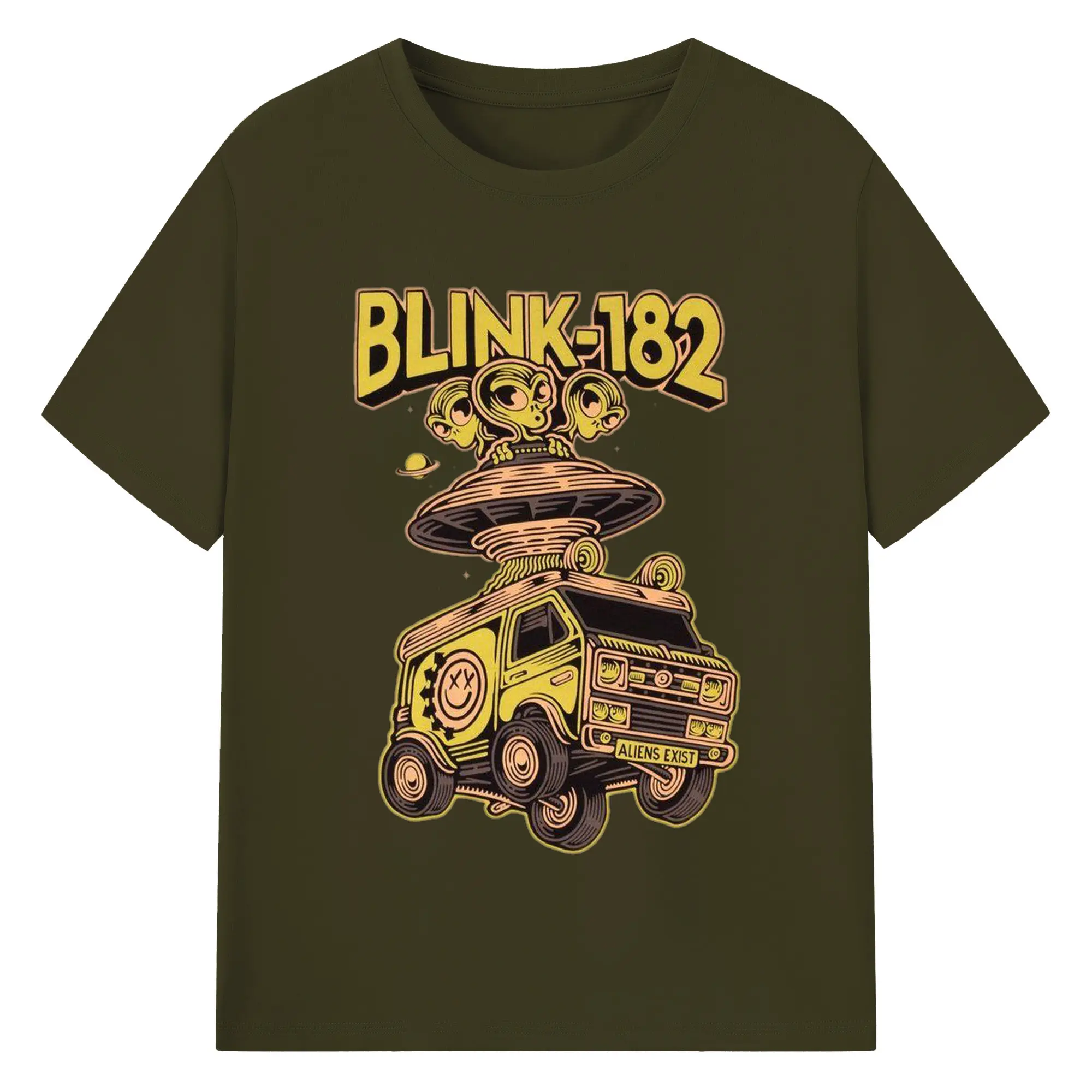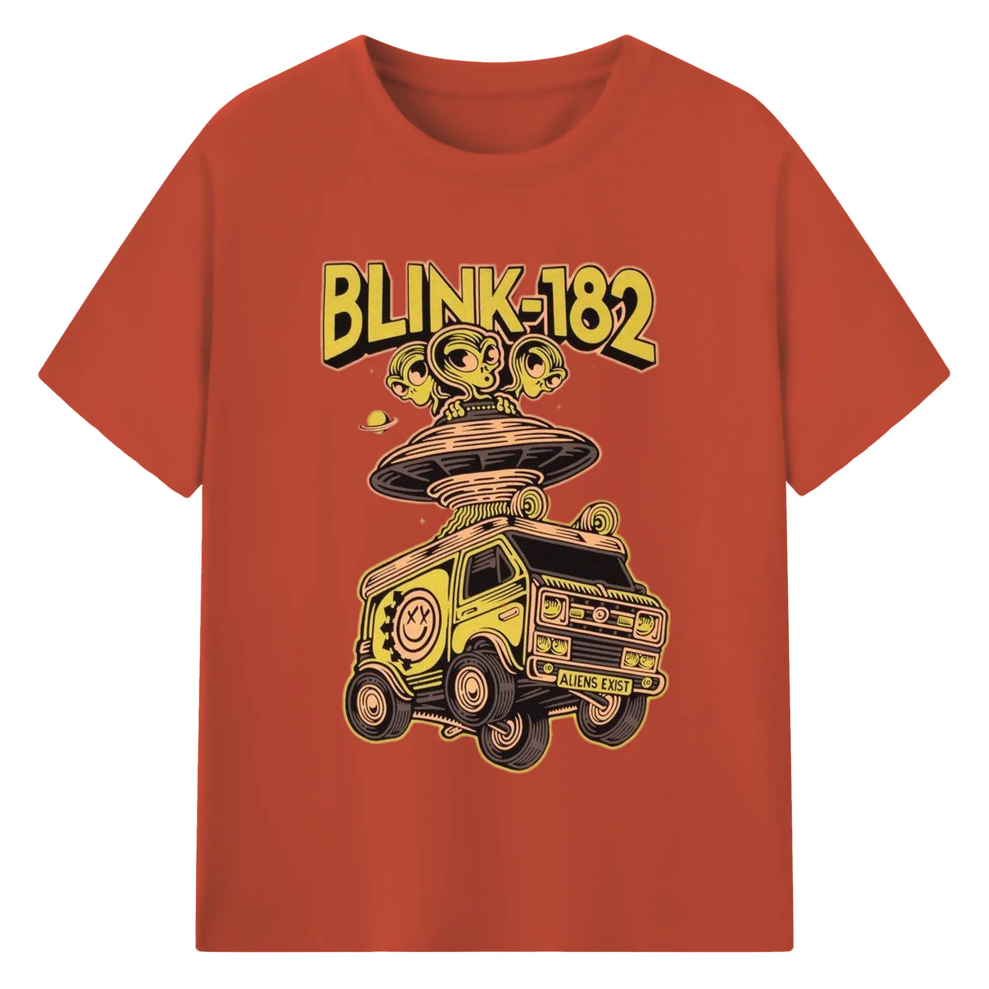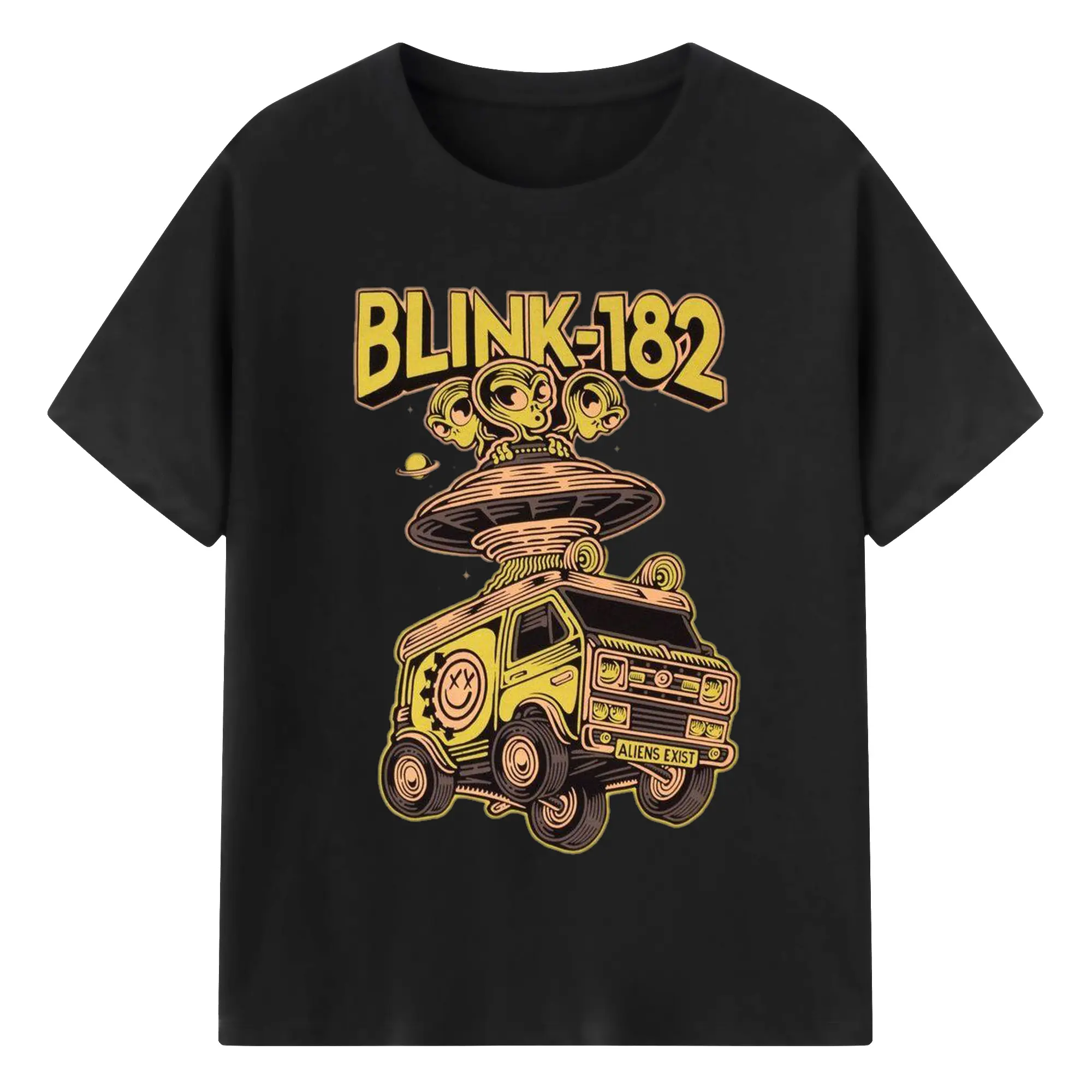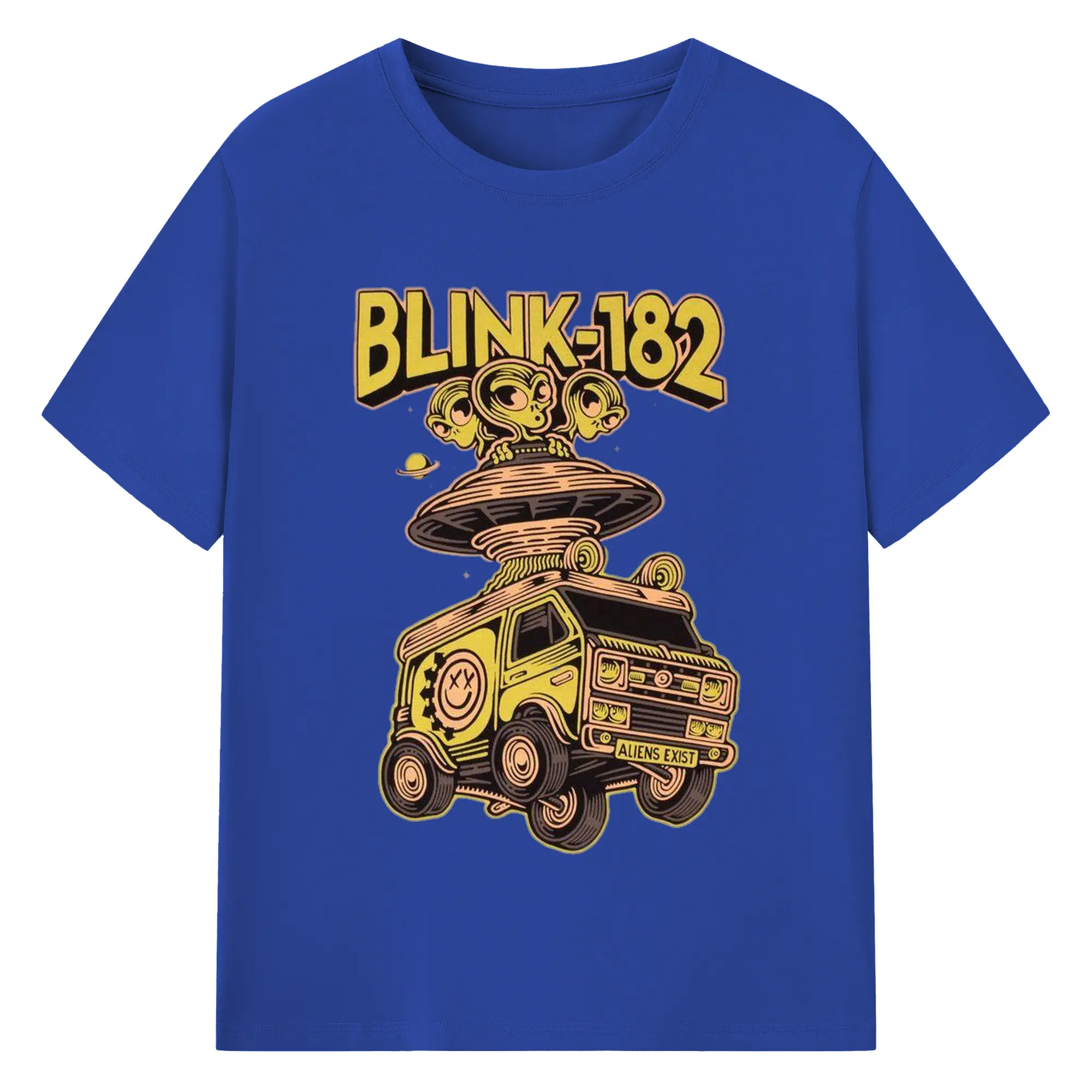 Blink-182 Retro Sci-Fi Alien Punk DIY - 180g Cotton T-Shirt With Front Heat Transfer Print – Soft, Lightweight, Fitted Design – Comfortable Casual Wear For Sports & Everyday Use