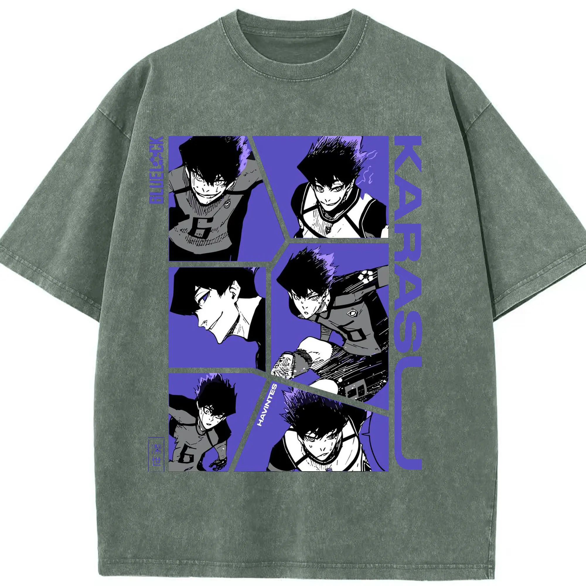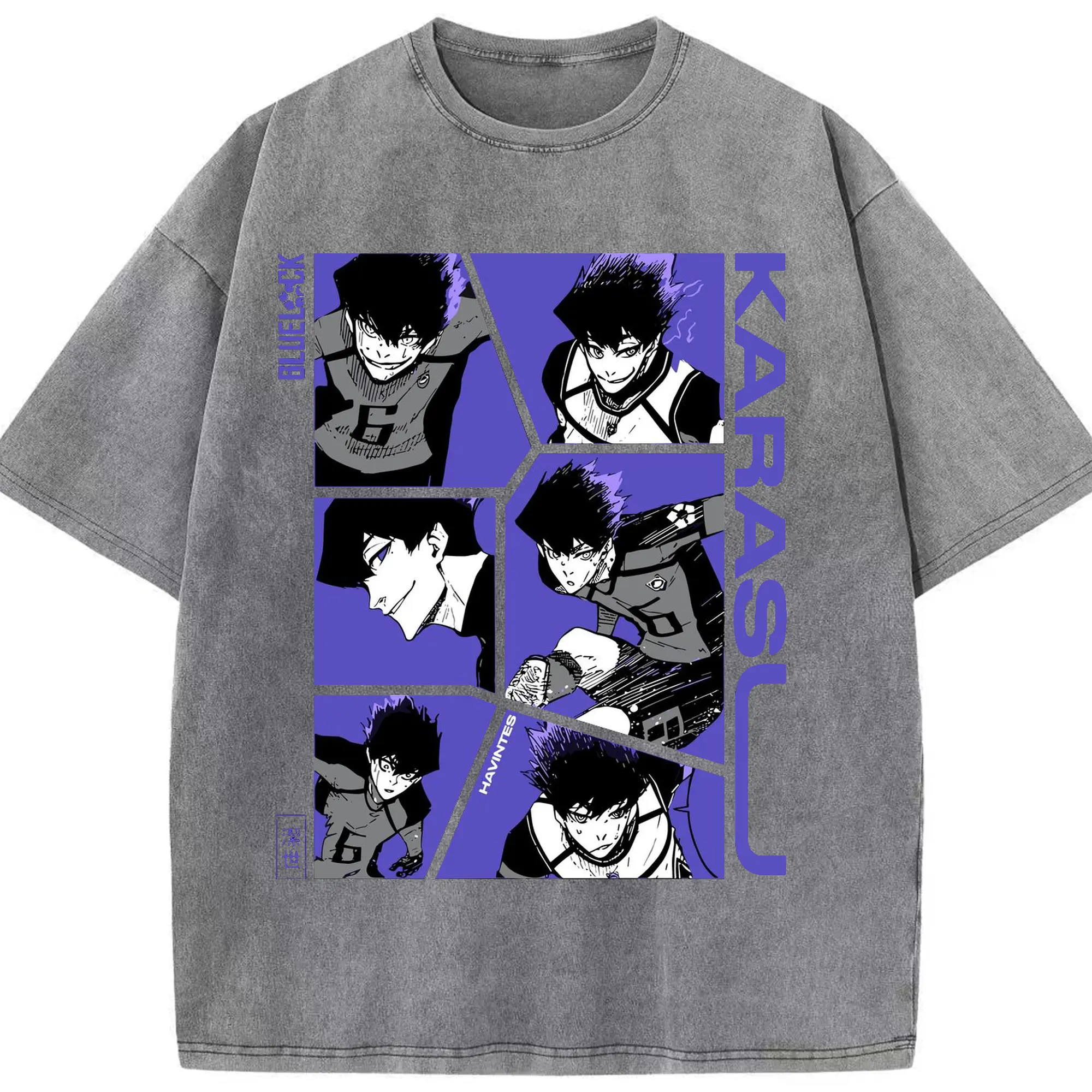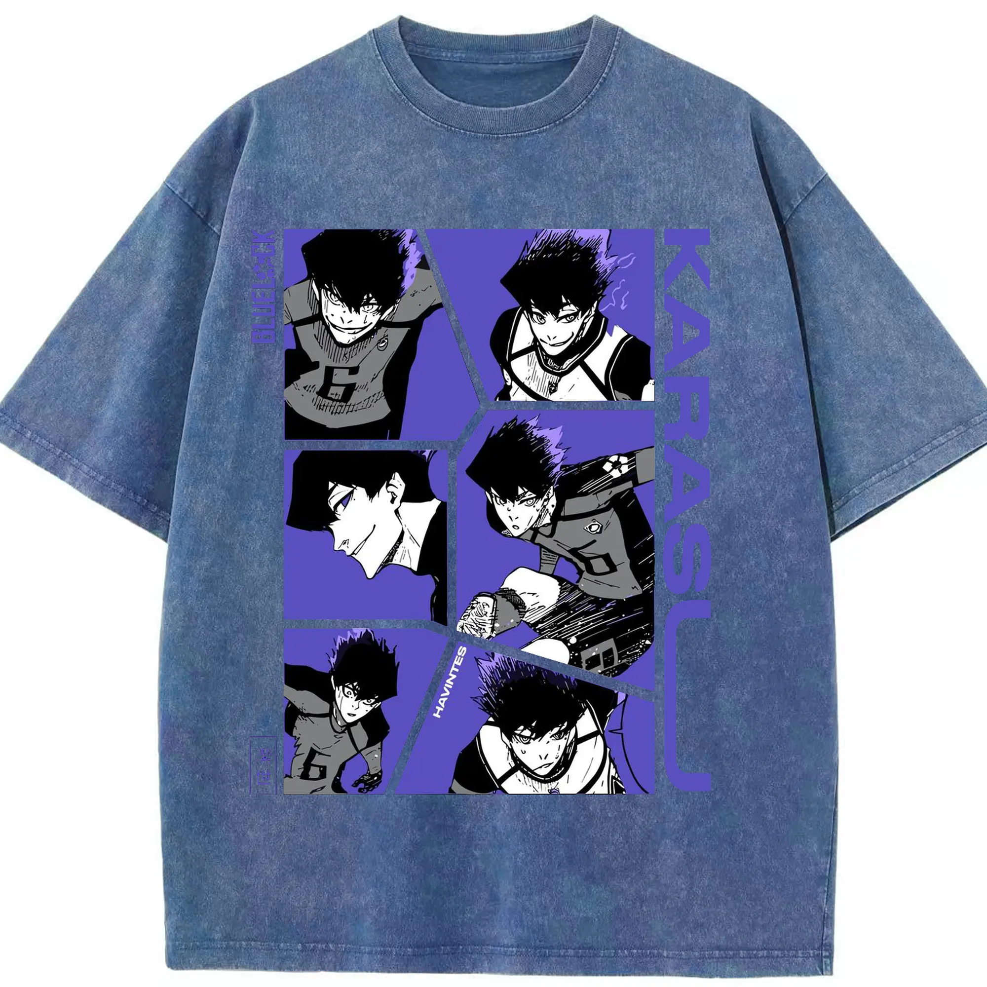 Blue Lock Karasu Manga Panels DIY Shirt - Washed Vintage Look 230g Cotton Oversized T-Shirt With Front Heat Transfer Print – Soft, Lightweight, Stylish Fit – Comfortable Casual Wear For Sports & Everyday Use