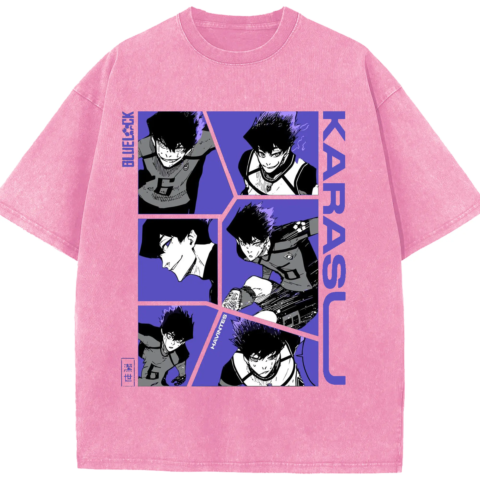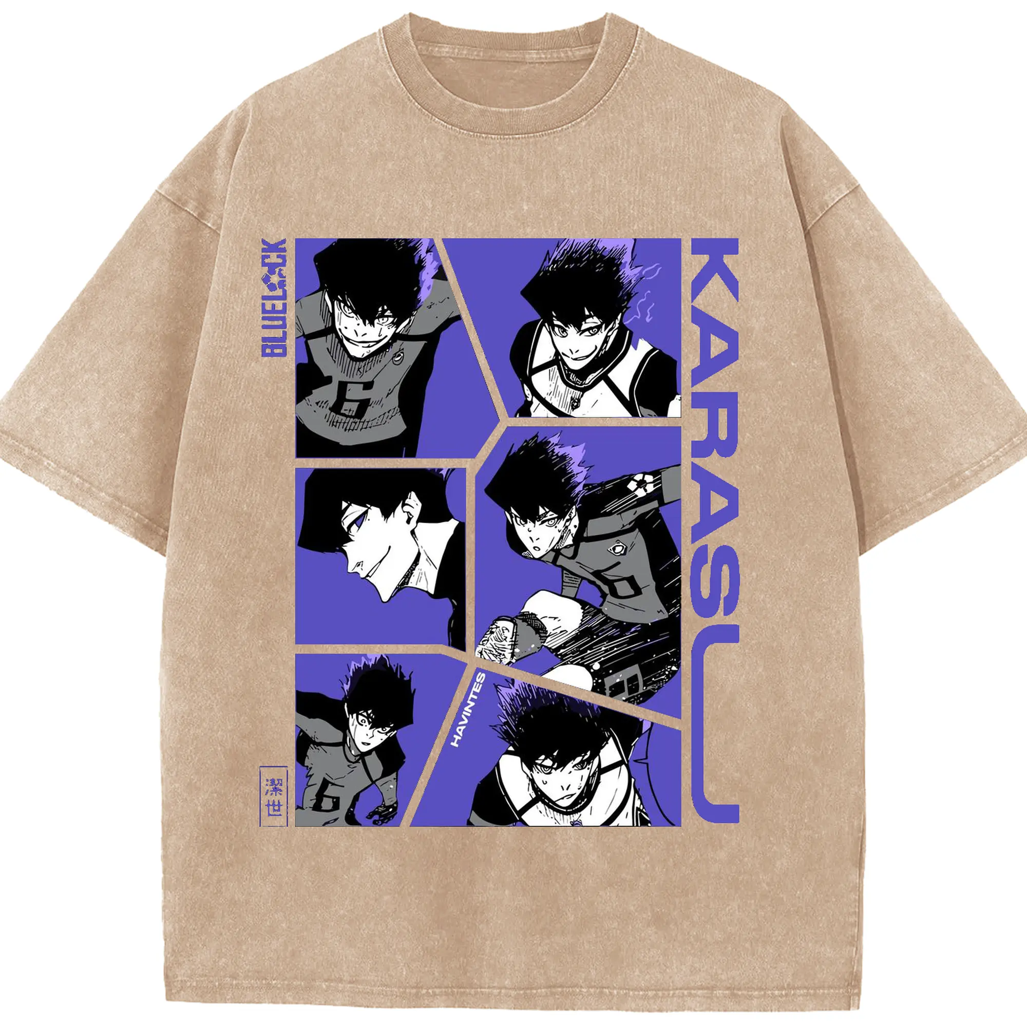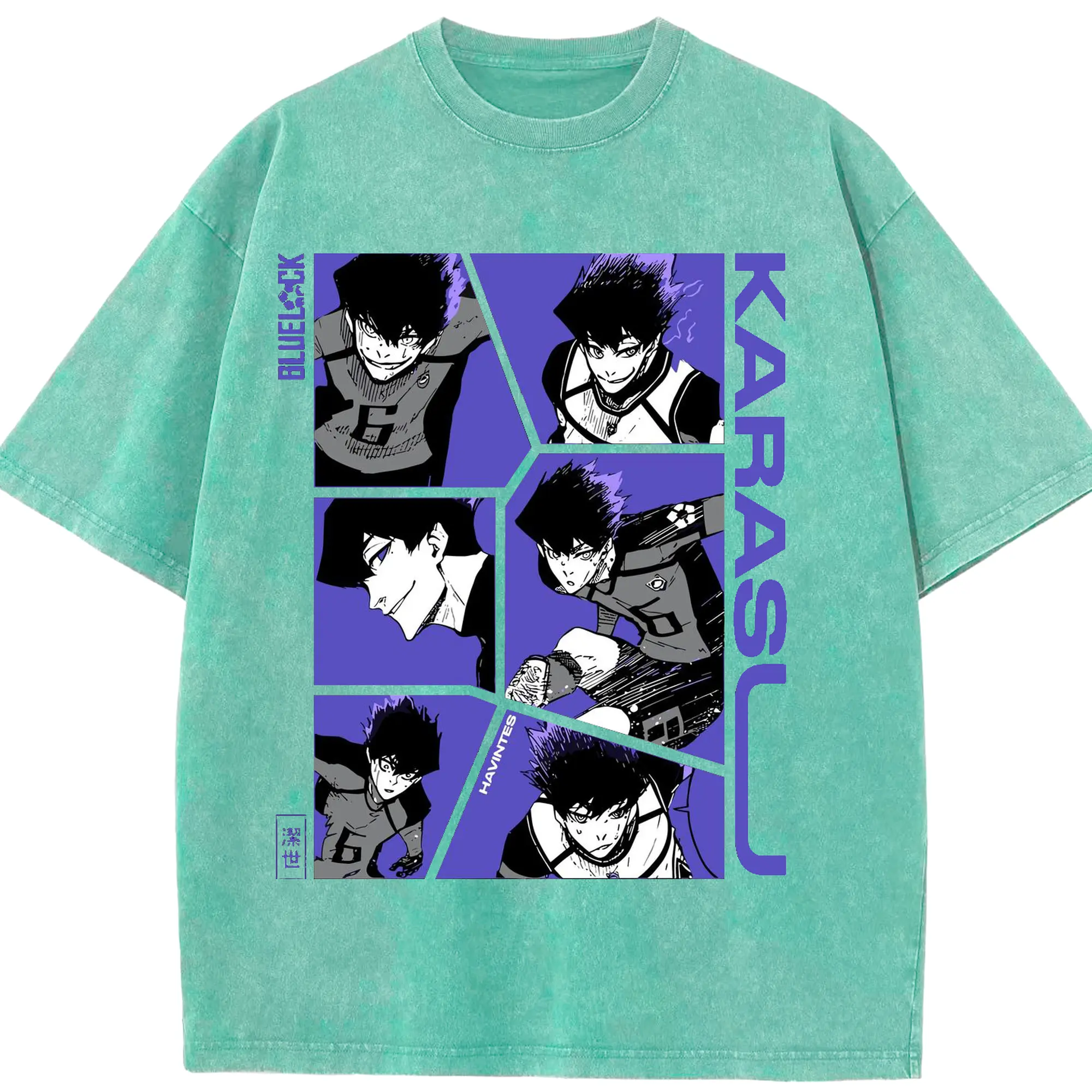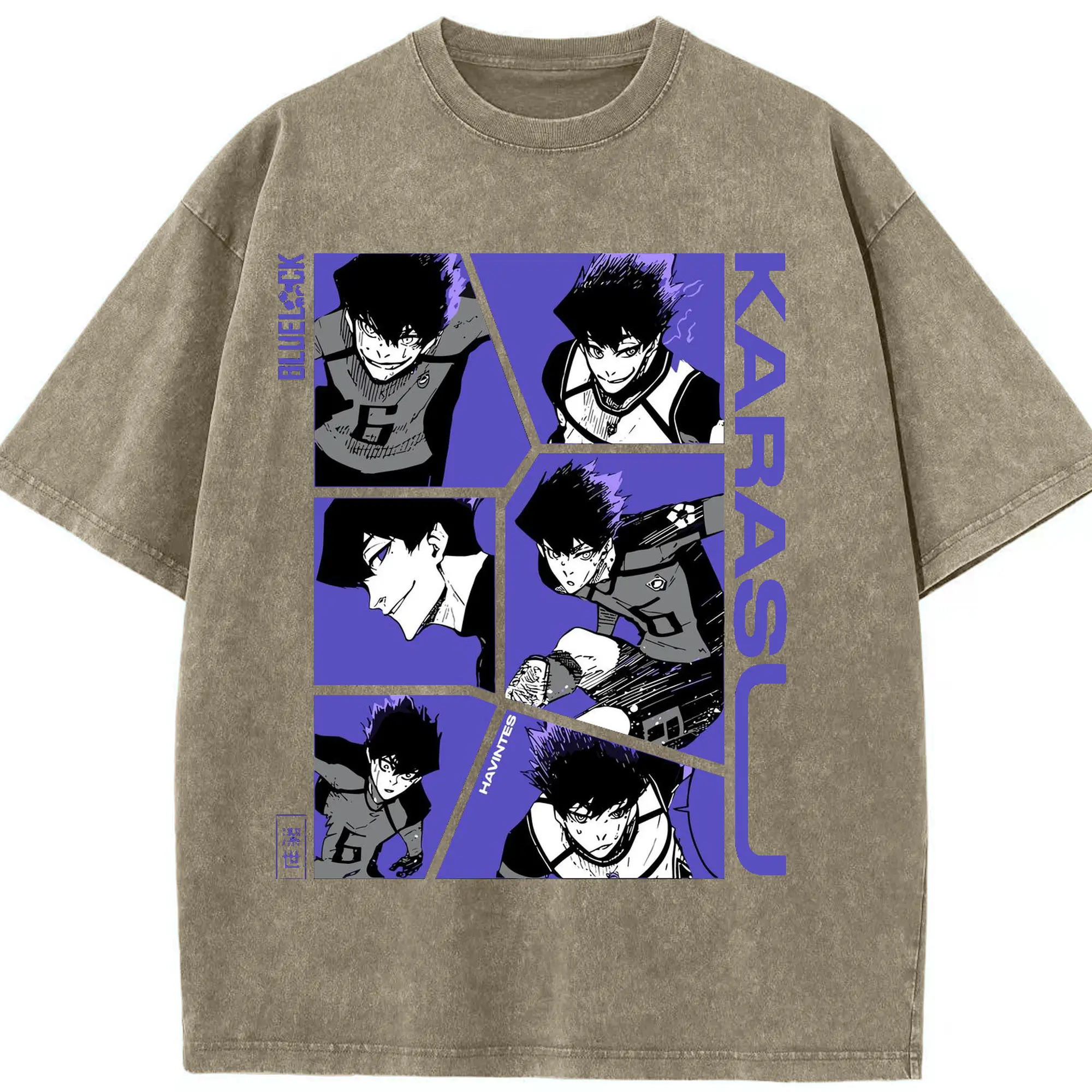 Blue Lock Karasu Manga Panels DIY Shirt - Washed Vintage Look 230g Cotton Oversized T-Shirt With Front Heat Transfer Print – Soft, Lightweight, Stylish Fit – Comfortable Casual Wear For Sports & Everyday Use