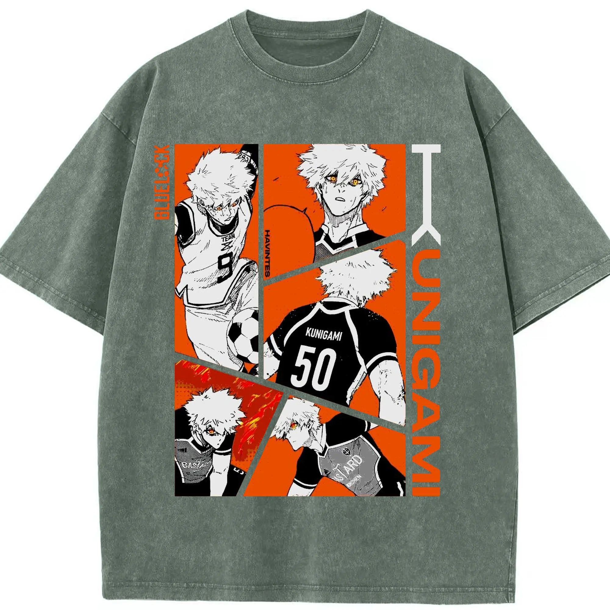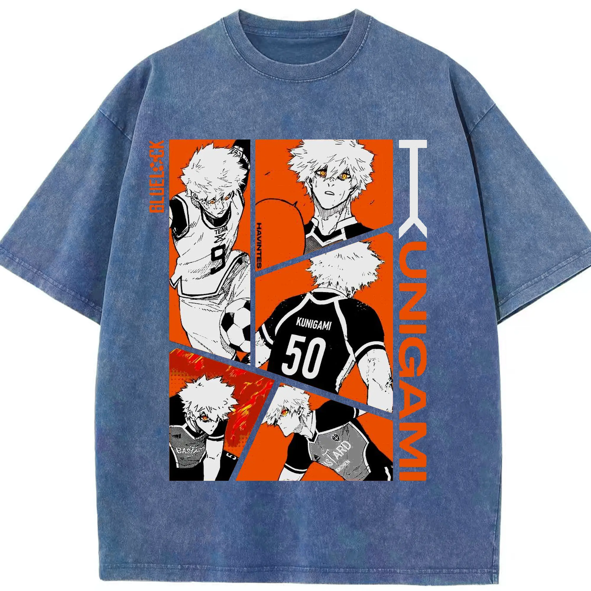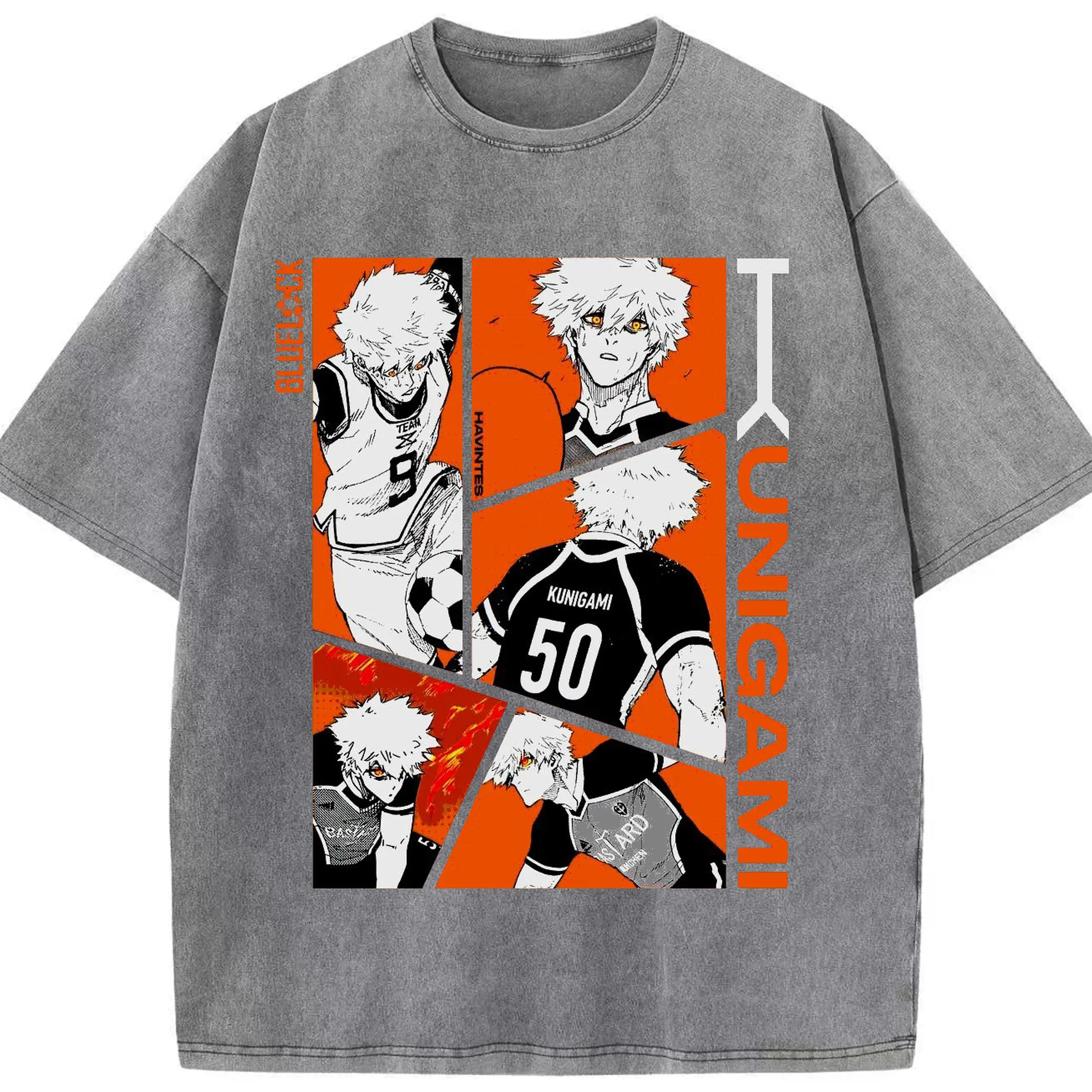 Blue Lock Kunigami Manga Panels DIY Shirt - Washed Vintage Look 230g Cotton Oversized T-Shirt With Front Heat Transfer Print – Soft, Lightweight, Stylish Fit – Comfortable Casual Wear For Sports & Everyday Use