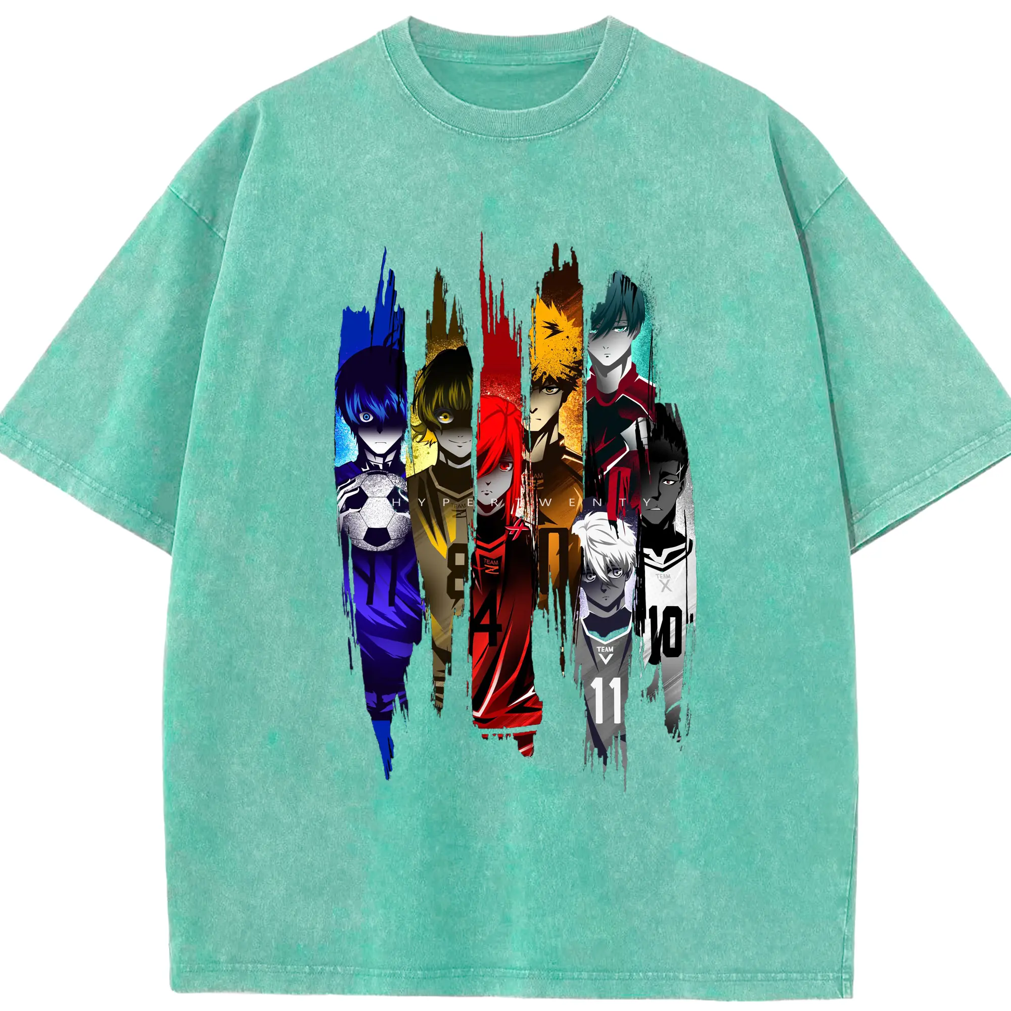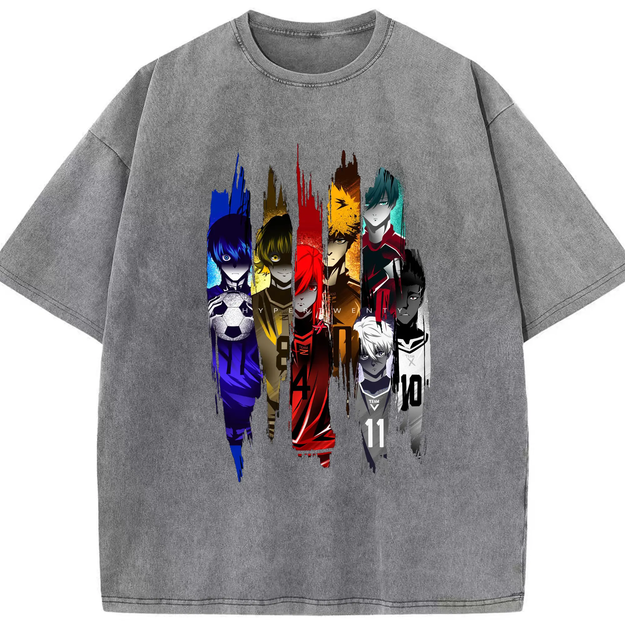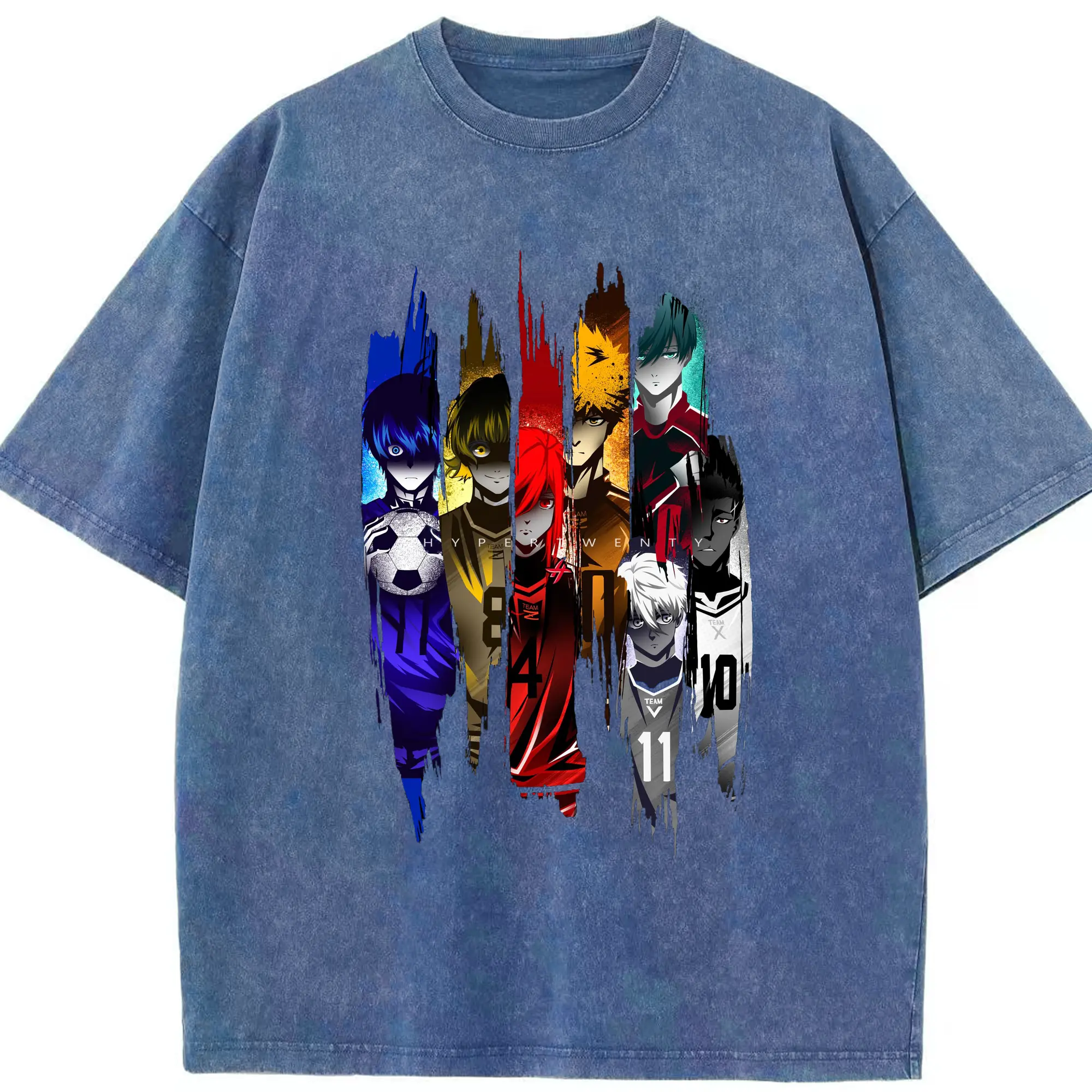 Blue Lock Soccer Anime Characters Trendy DIY Shirt - Washed Vintage Look 230g Cotton Oversized T-Shirt With Front Heat Transfer Print – Soft, Lightweight, Stylish Fit – Comfortable Casual Wear For Sports & Everyday Use