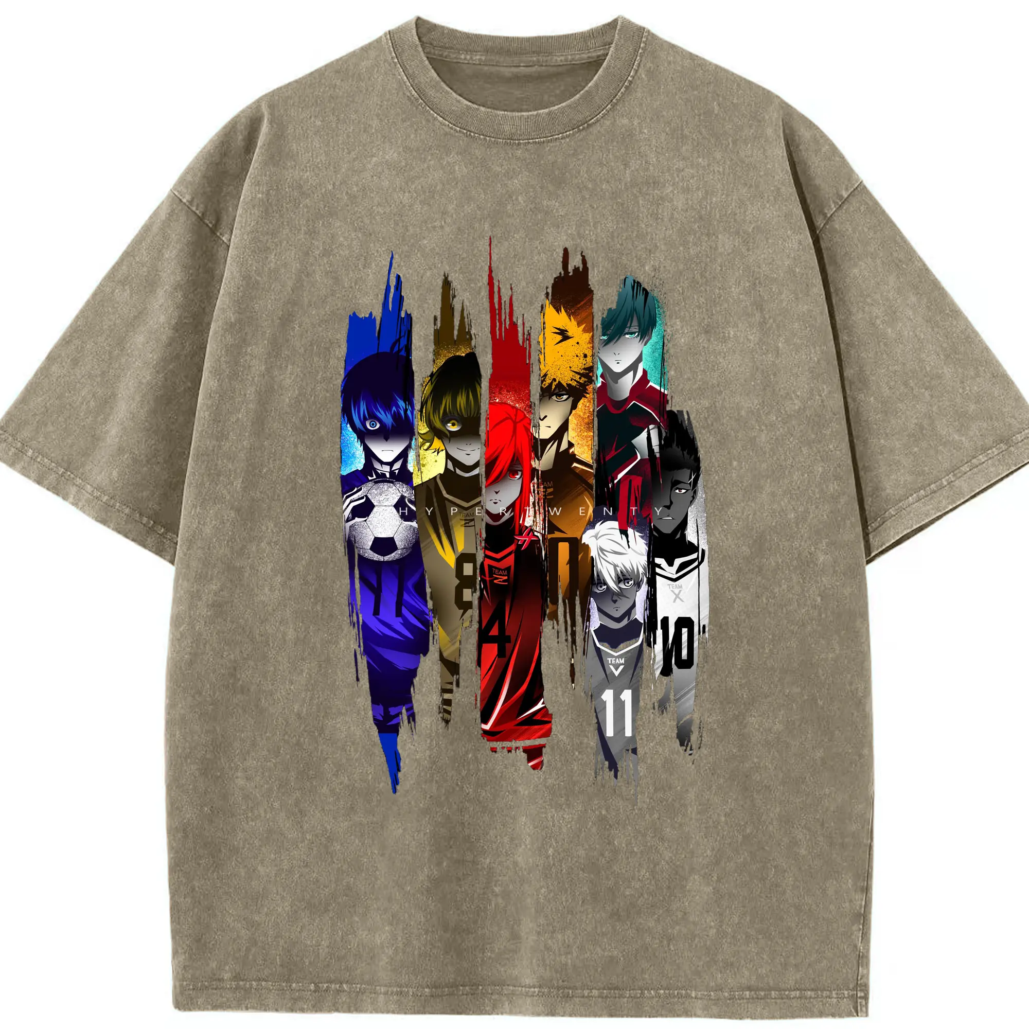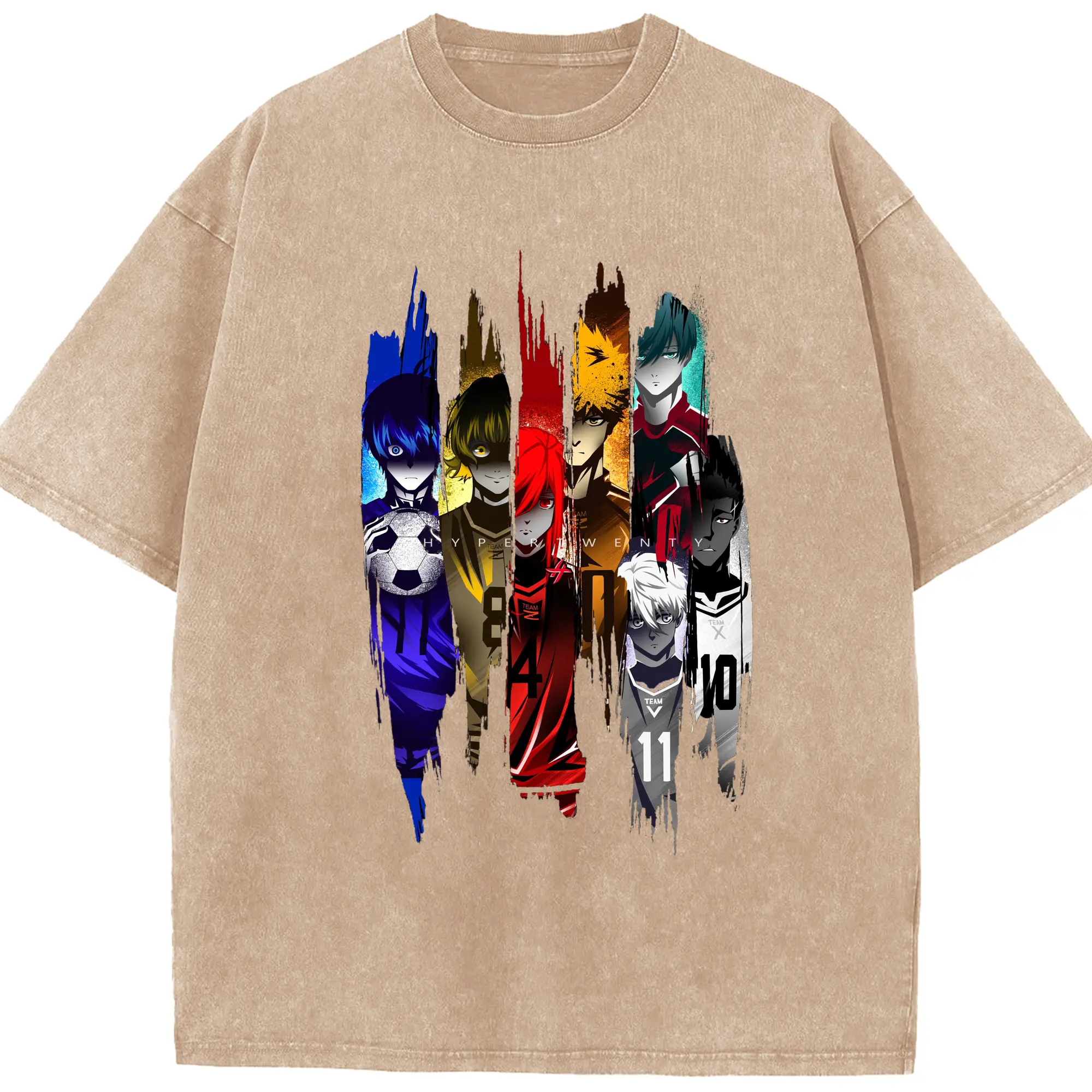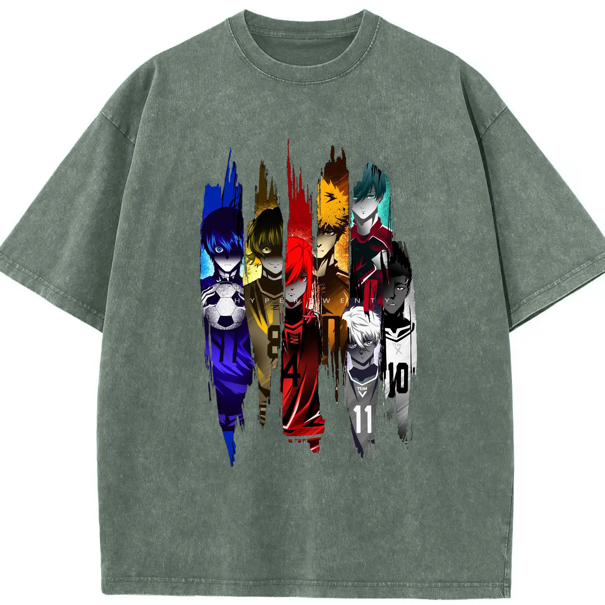 Blue Lock Soccer Anime Characters Trendy DIY Shirt - Washed Vintage Look 230g Cotton Oversized T-Shirt With Front Heat Transfer Print – Soft, Lightweight, Stylish Fit – Comfortable Casual Wear For Sports & Everyday Use