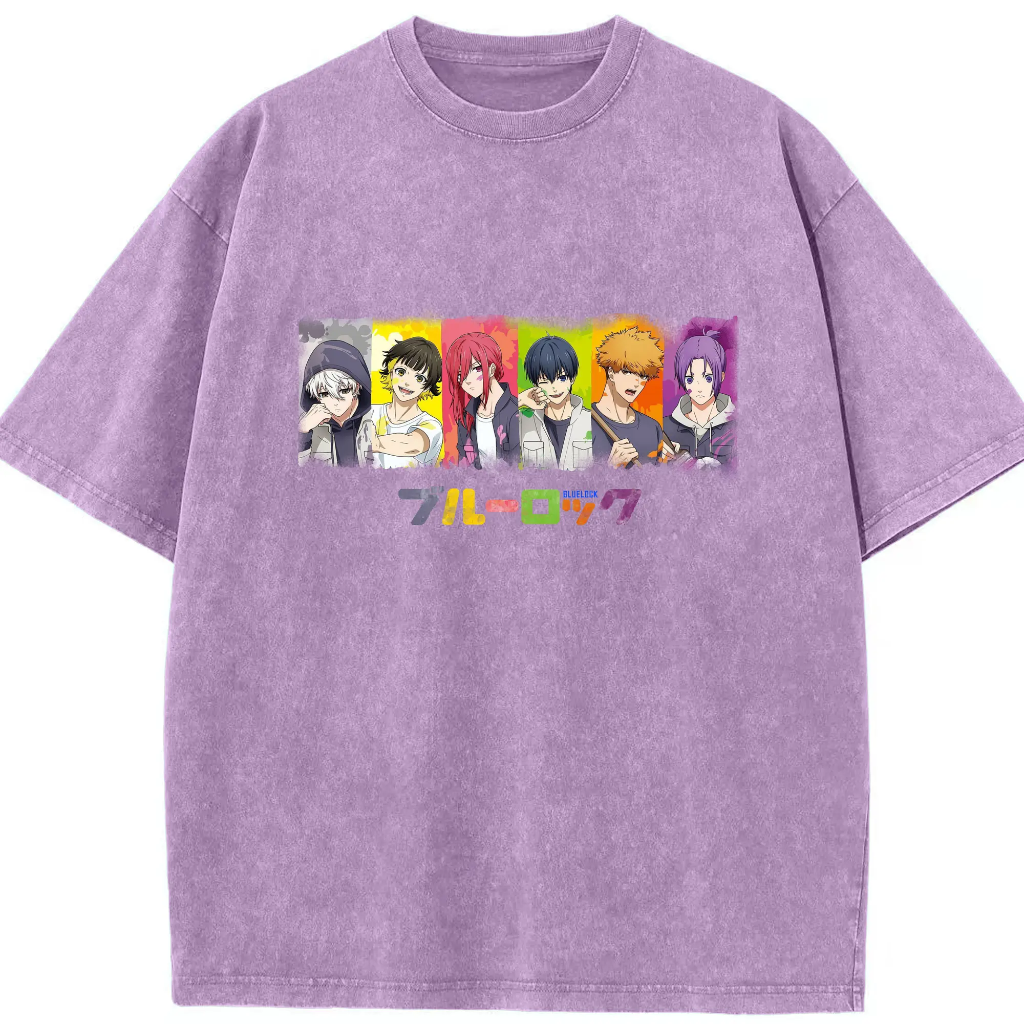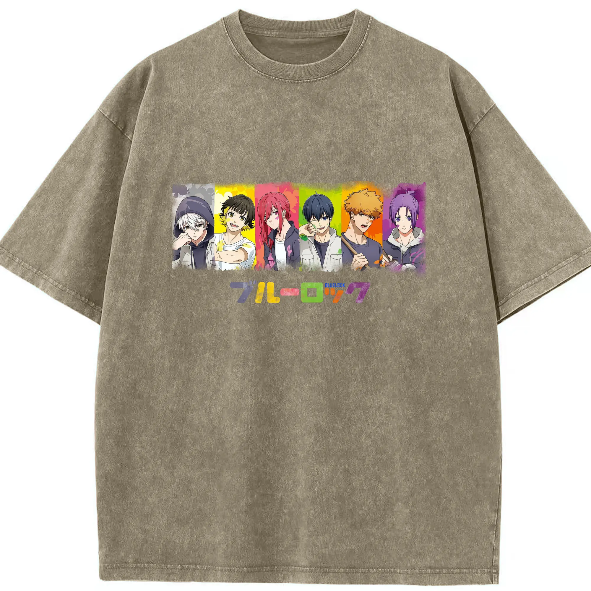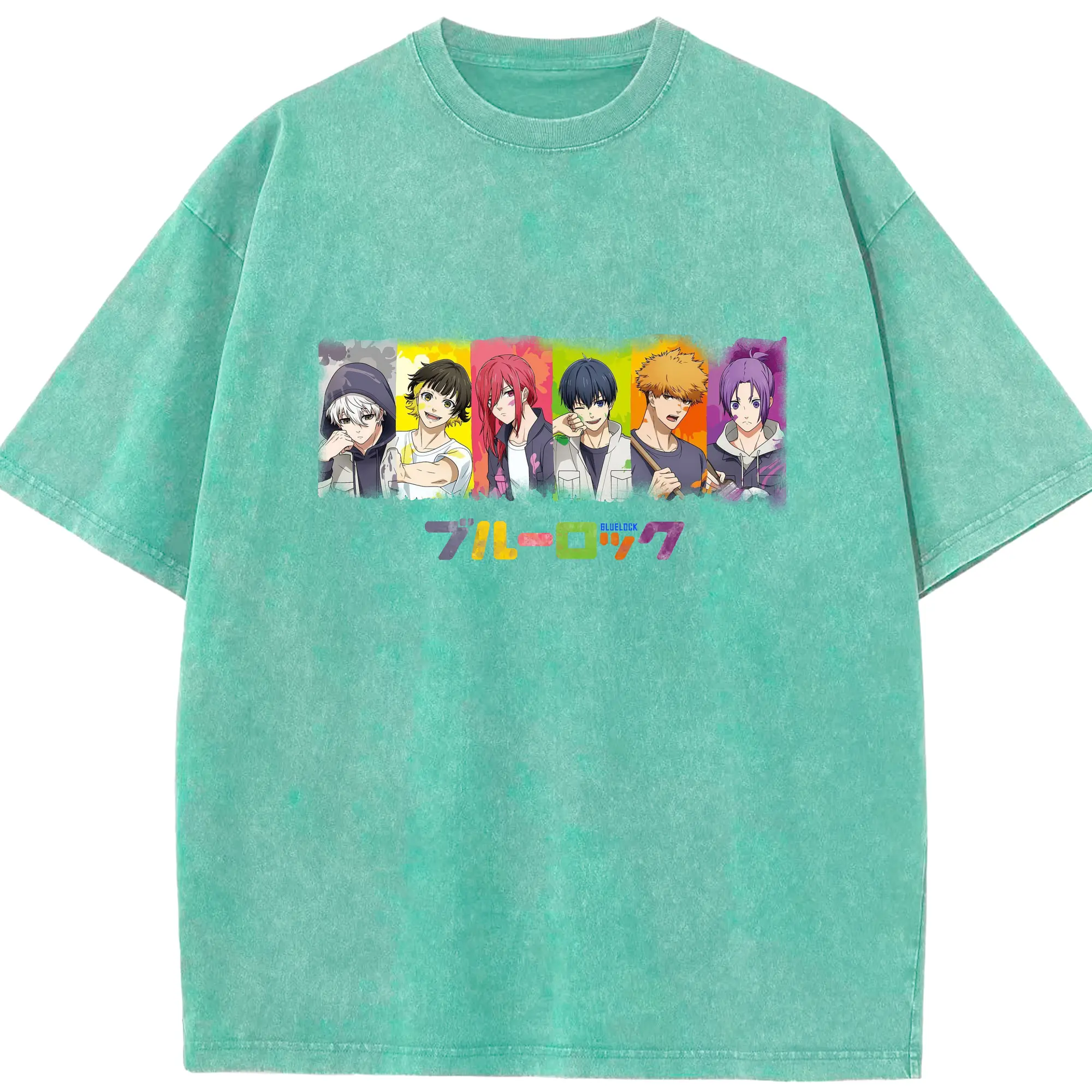 Blue Lock Watercolor Group Characters DIY Shirt - Washed Vintage Look 230g Cotton Oversized T-Shirt With Front Heat Transfer Print – Soft, Lightweight, Stylish Fit – Comfortable Casual Wear For Sports & Everyday Use