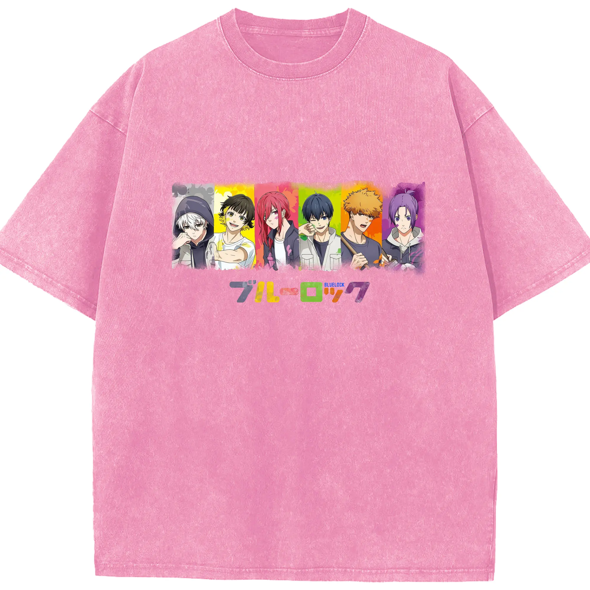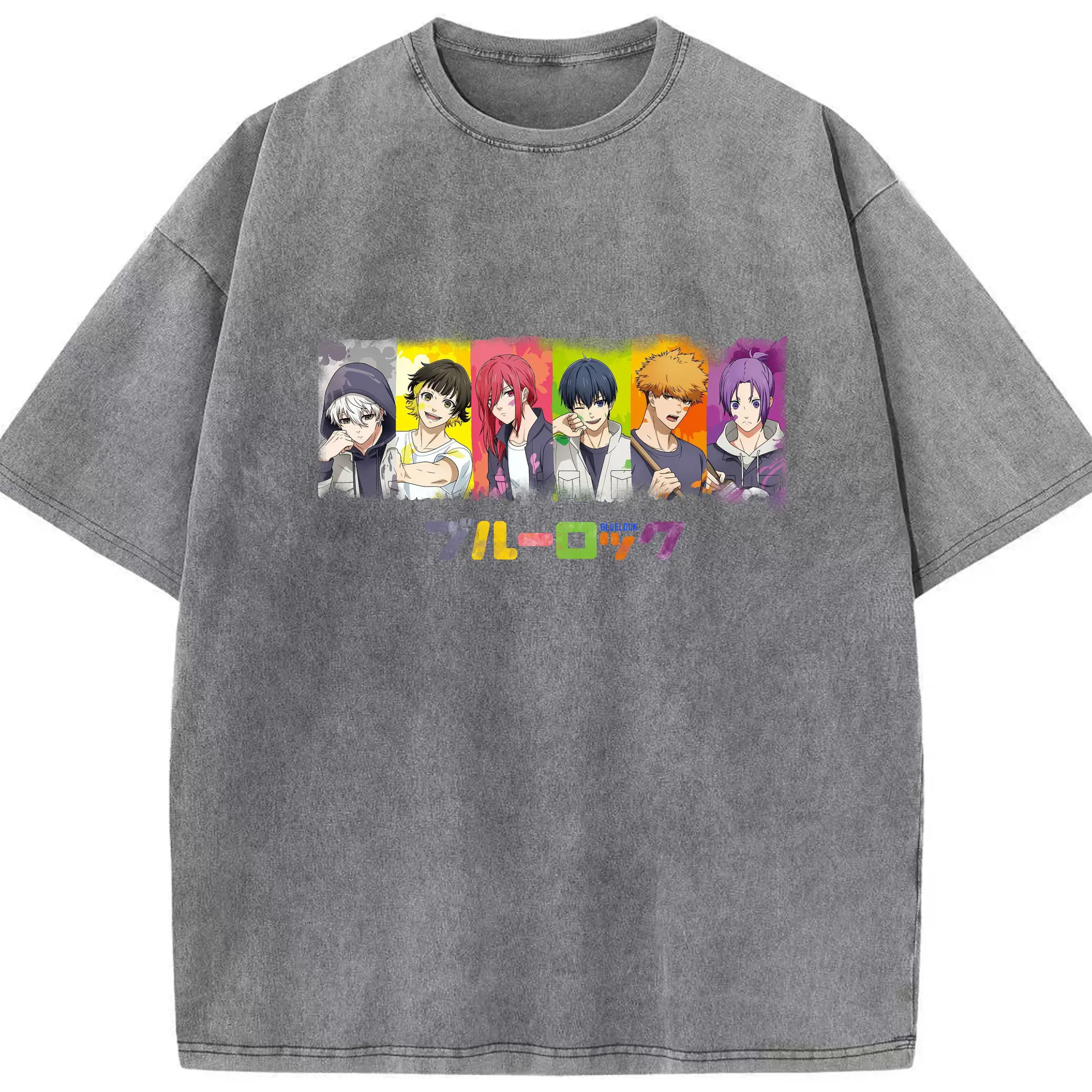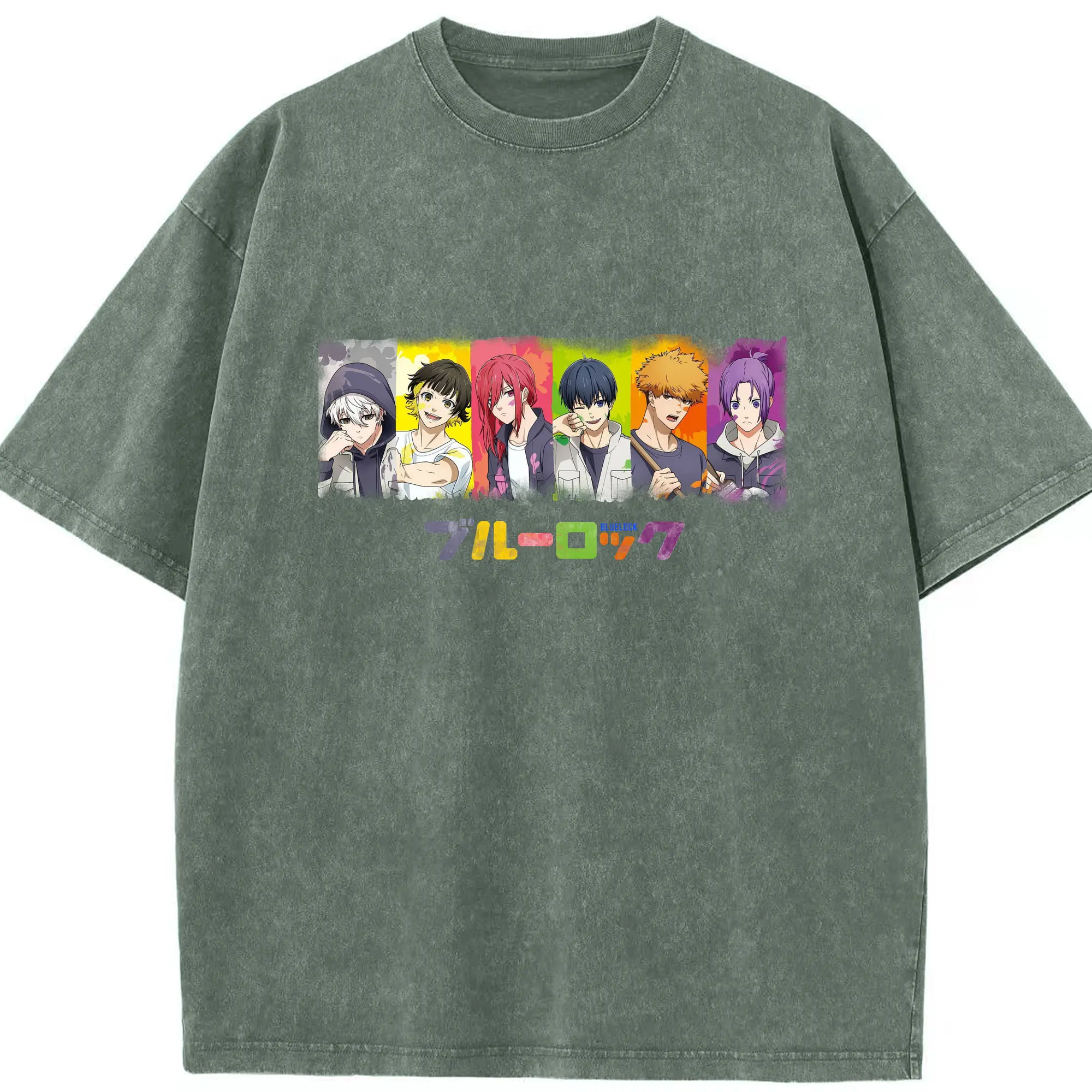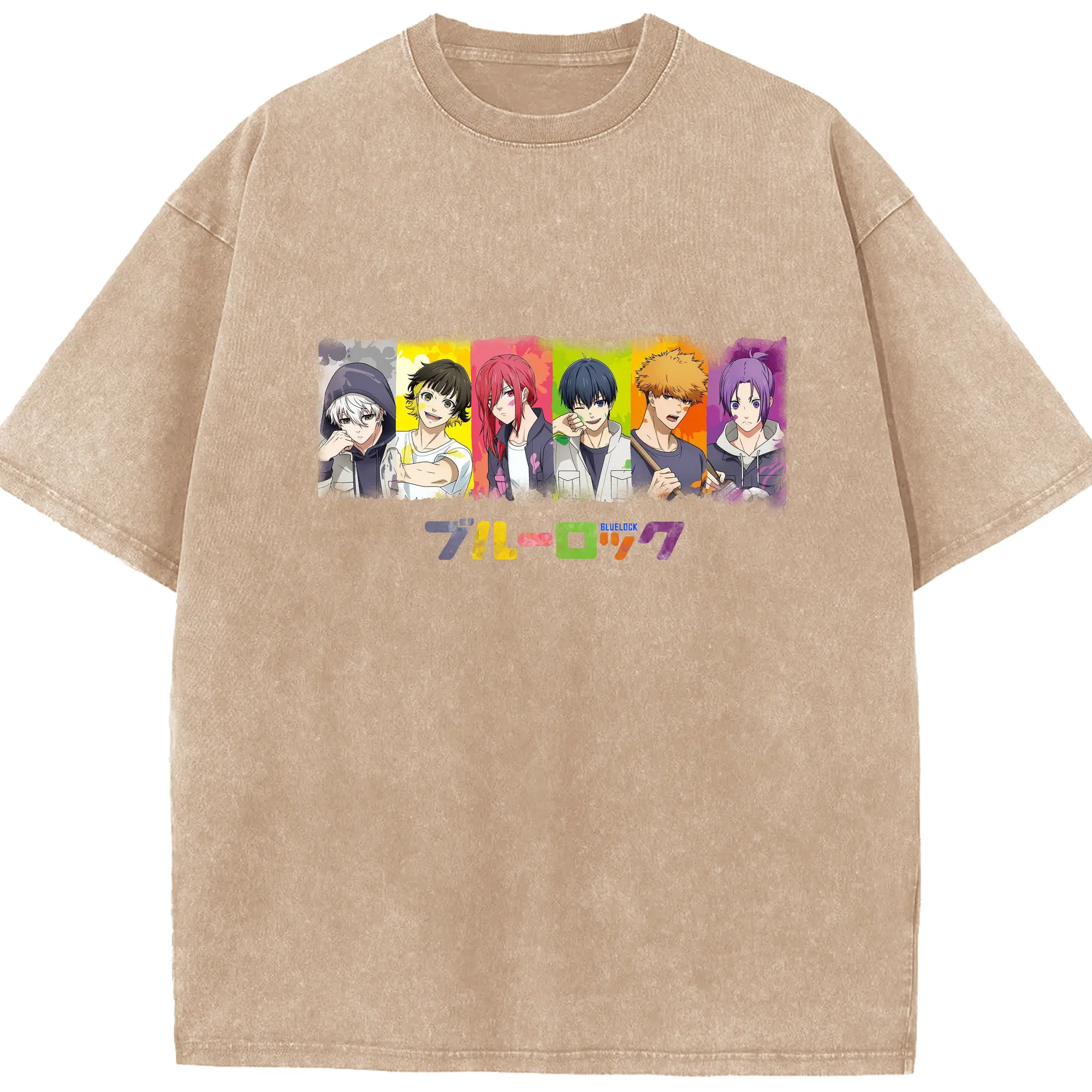 Blue Lock Watercolor Group Characters DIY Shirt - Washed Vintage Look 230g Cotton Oversized T-Shirt With Front Heat Transfer Print – Soft, Lightweight, Stylish Fit – Comfortable Casual Wear For Sports & Everyday Use
